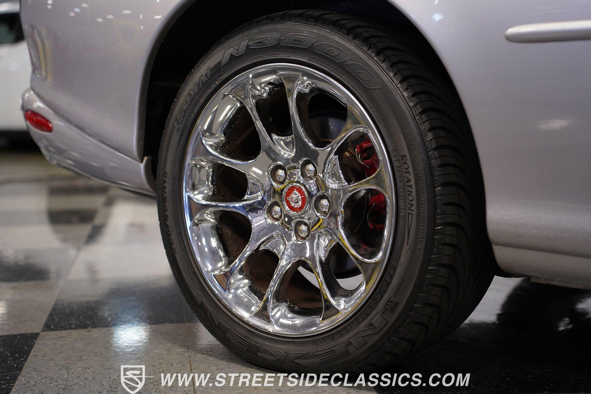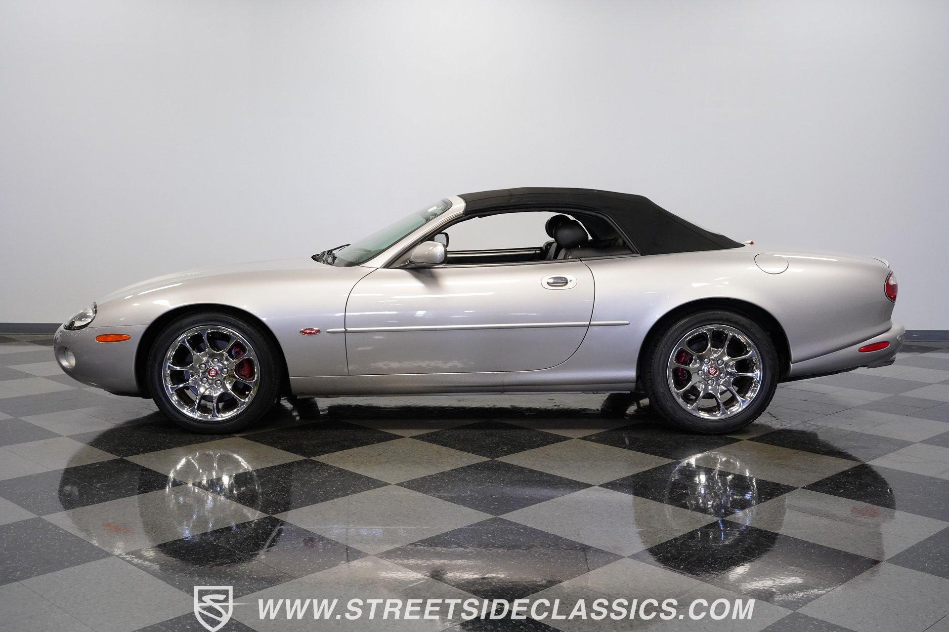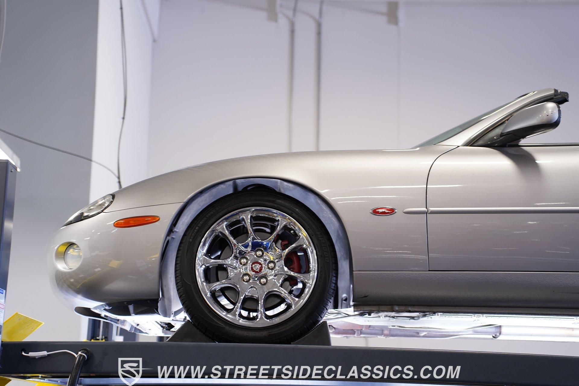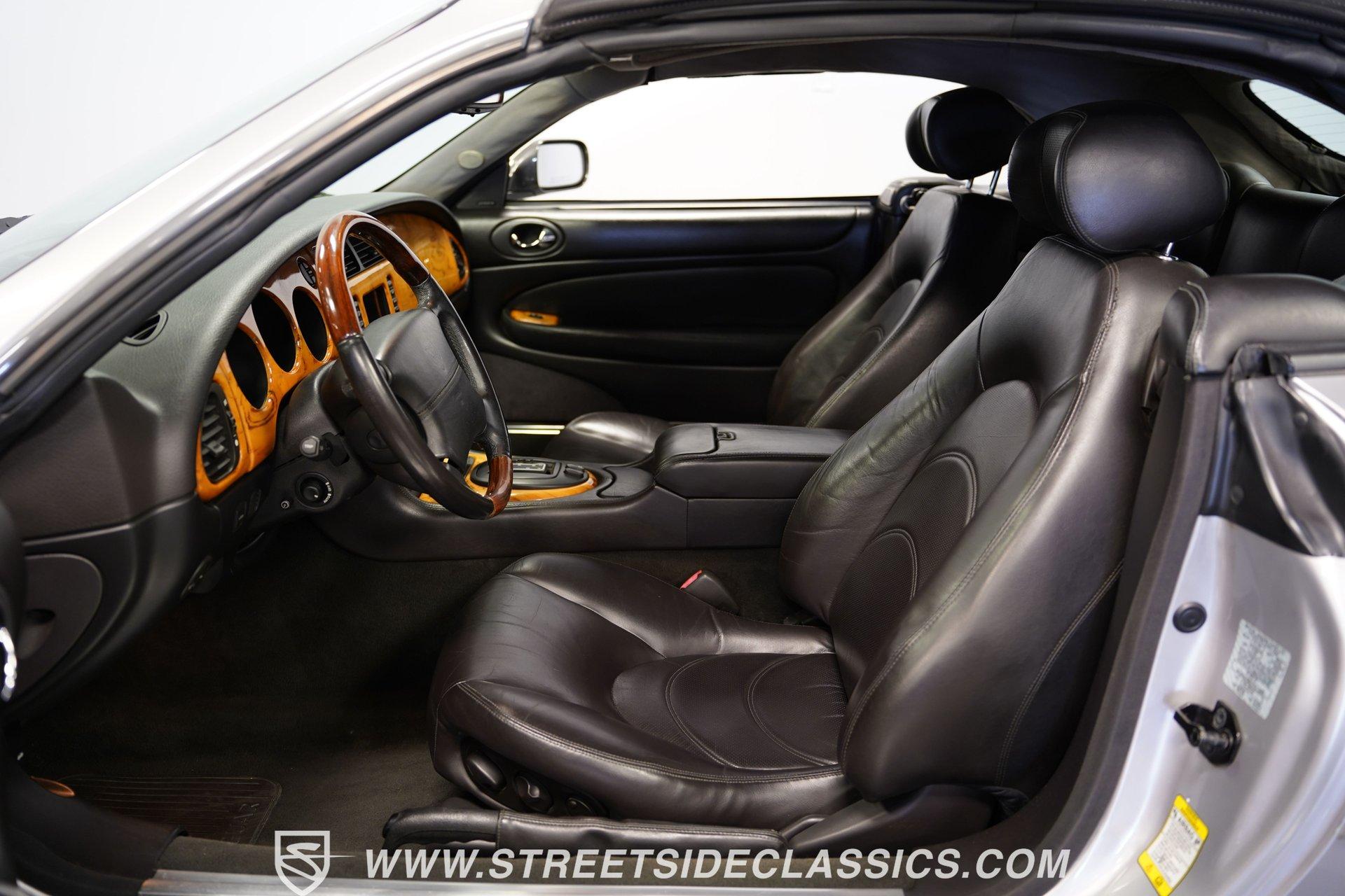 British luxury and performance meet in the flesh on the Platinum Metallic 2001 Jaguar XKR Supercharged Convertible. The aerodynamic shape displays classic Jaguar styling elements throughout, from the signature front grille to the flowing rear quarters. A black cloth convertible top allows for all-weather versatility when the mood strikes. Chrome 18-inch wheels add a touch of flash to the understated color palette, while the dual exhaust outlets announce this car's performance potential. The 245/45ZR18 front and 255/45ZR18 rear tires provide substantial grip for spirited driving situations. Black leather adorns the interior, creating an atmosphere of upscale motoring. Wood accents on the dashboard and console offer a traditional touch that contrasts nicely with the modern amenities. Heated seats offer additional comfort during cool weather drives. The comprehensive set of power features includes windows, locks, mirrors, seats, and the convertible top mechanism for effortless operation. Climate control keeps temperatures ideal, while the navigation system guides you to your destination. Entertainment comes via the AM/FM radio and cassette player, perfect for soundtrack selection during weekend getaways. A 4.0L Supercharged V8 engine serves as the main attraction in the mechanical department, generating substantial output for quick acceleration. The 5-speed automatic transmission handles gear selection duties with minimal fuss. Four-wheel power disc brakes with anti-lock technology provide stopping capabilities to match the car's performance potential. The independent front and rear suspension absorbs road irregularities while maintaining composure during cornering. Fuel injection optimizes performance and efficiency in various driving conditions. The CATS (Computer Active Technology Suspension) system further enhances the balance between ride quality and handling precision. HIGHLIGHTS: 4.0L Supercharged V8 Engine 5 Speed Automatic Transmission Fuel Injection Power Steering Four Wheel Power Disc Brakes Independent Front and Rear Suspension Dual Exhaust Platinum Metallic Paint Black Power Convertible Top 18" Chrome Wheels 245/45ZR18 Front, 255/45ZR18 Rear Tires Black Interior with Power Heated Leather Seats Power Windows Power Locks Power Mirrors Air Conditioning Cruise Control AM/FM Radio, Cassette, Nav Anti-Theft System Driver , Passenger Airbags Seatbelts Owner's Manual Fast, comfortable, and distinctly British, the 2001 Jaguar XKR Supercharged Convertible offers an excellent combination of performance and luxury. The supercharged V8 provides exhilarating acceleration, while the well-appointed cabin surrounds you with premium materials. Call today!