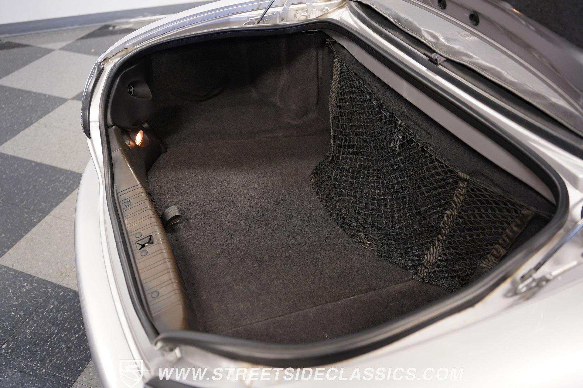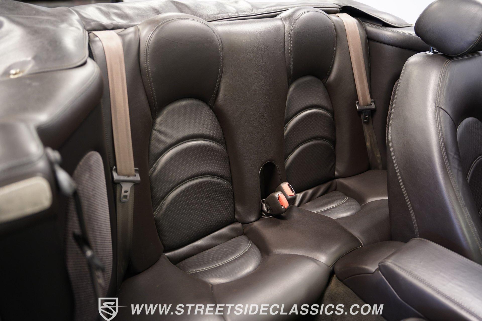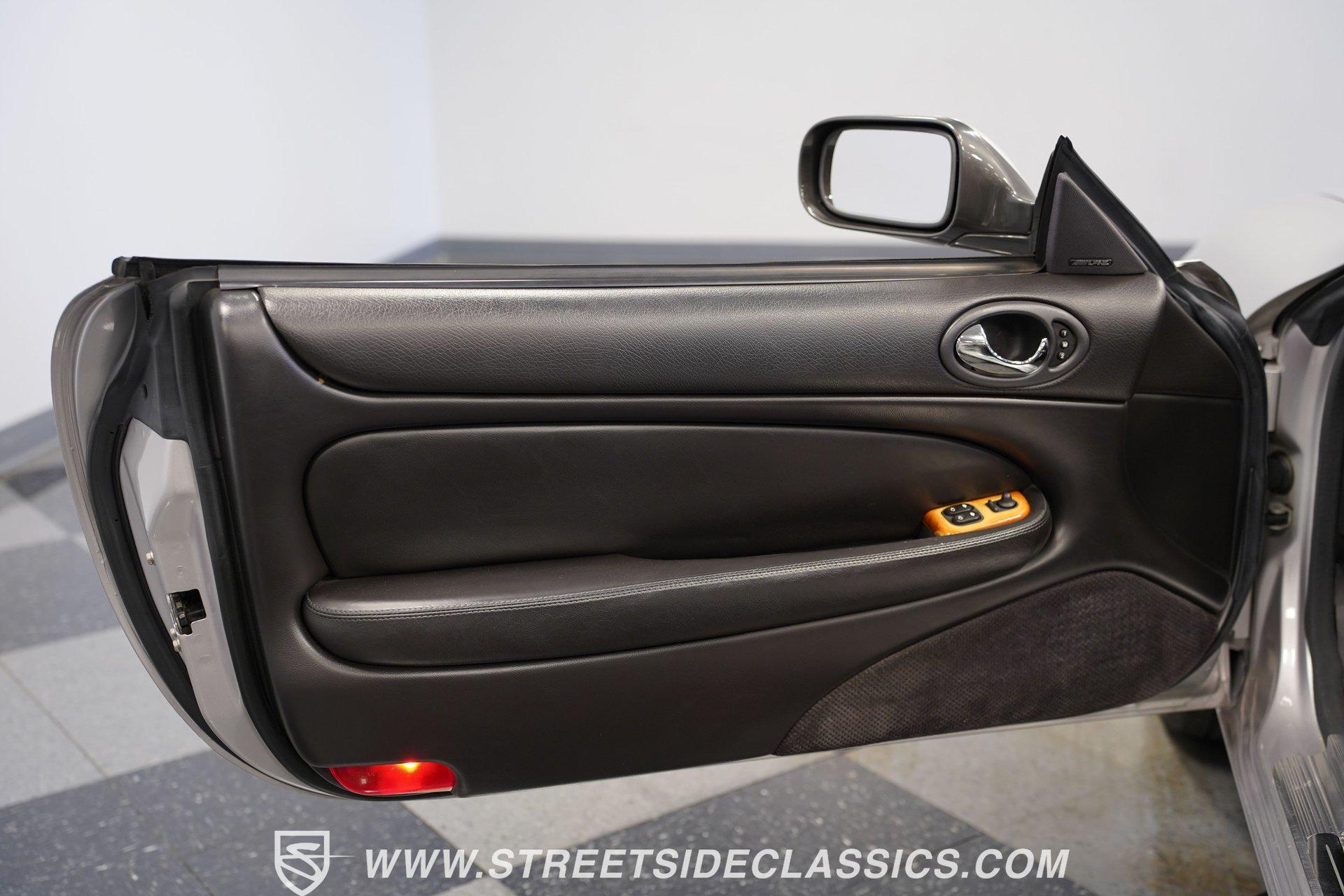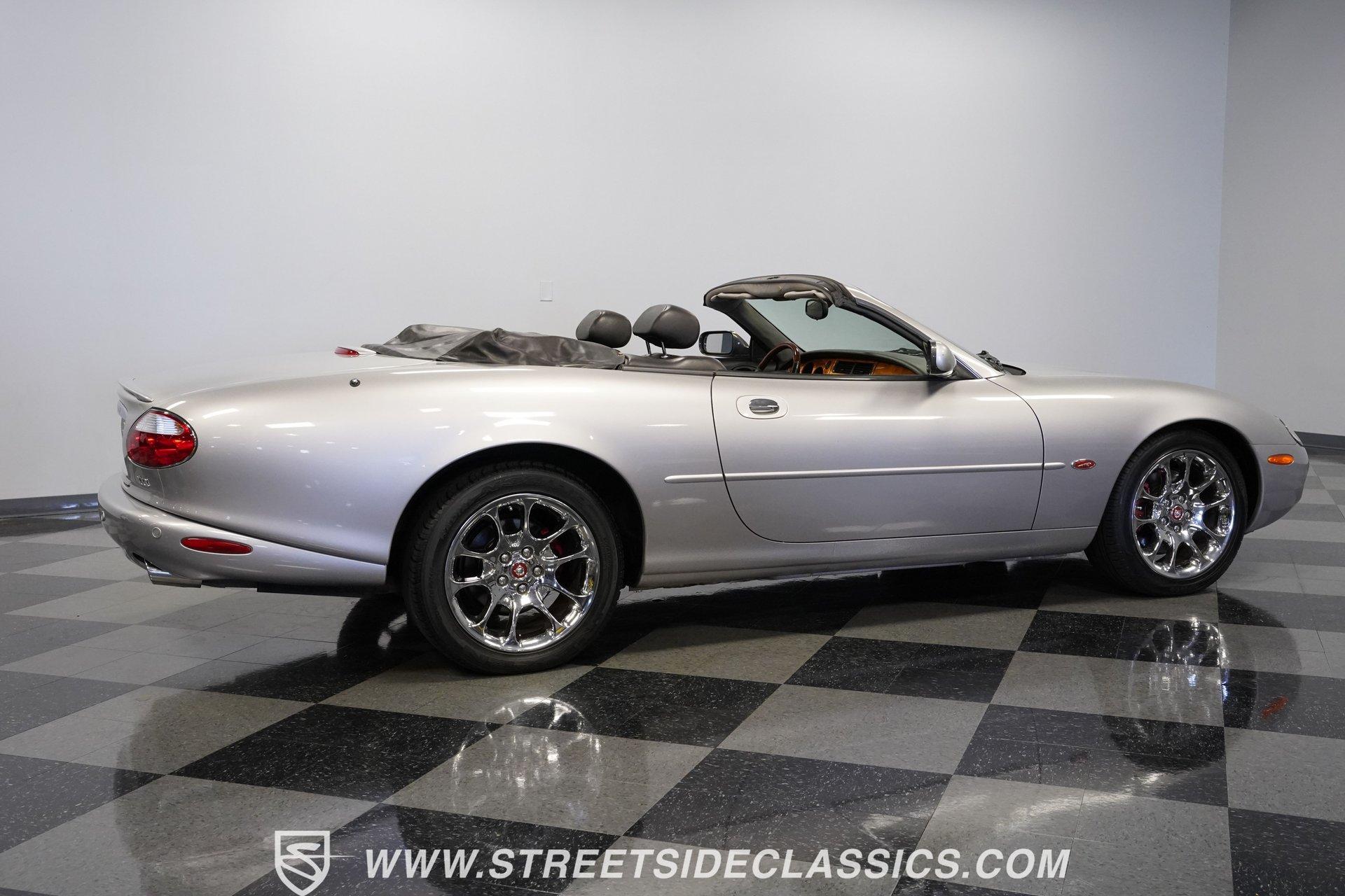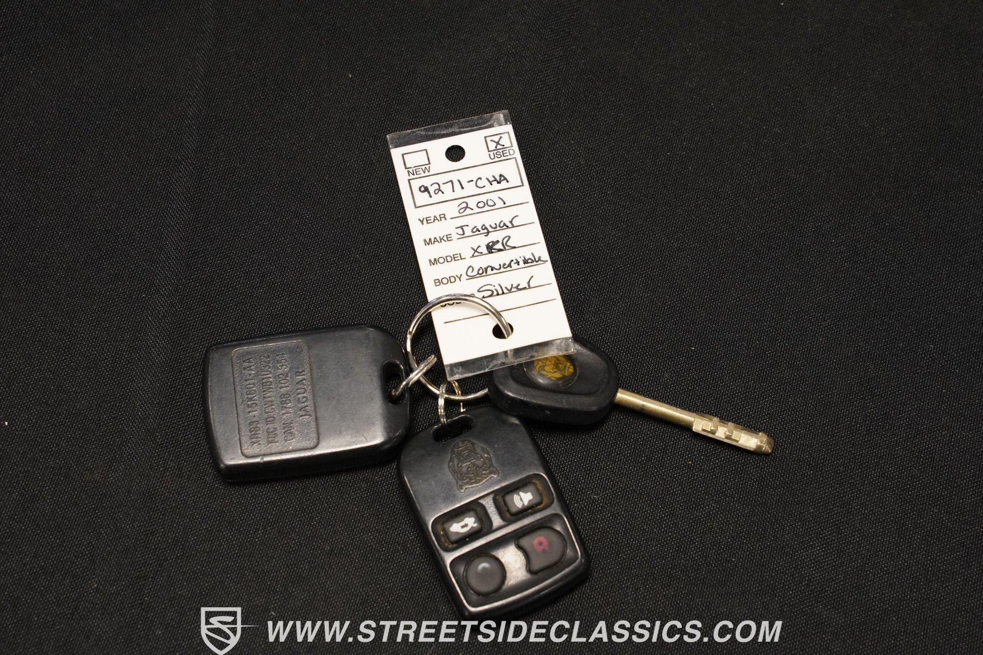 British luxury and performance meet in the flesh on the Platinum Metallic 2001 Jaguar XKR Supercharged Convertible. The aerodynamic shape displays classic Jaguar styling elements throughout, from the signature front grille to the flowing rear quarters. A black cloth convertible top allows for all-weather versatility when the mood strikes. Chrome 18-inch wheels add a touch of flash to the understated color palette, while the dual exhaust outlets announce this car's performance potential. The 245/45ZR18 front and 255/45ZR18 rear tires provide substantial grip for spirited driving situations. Black leather adorns the interior, creating an atmosphere of upscale motoring. Wood accents on the dashboard and console offer a traditional touch that contrasts nicely with the modern amenities. Heated seats offer additional comfort during cool weather drives. The comprehensive set of power features includes windows, locks, mirrors, seats, and the convertible top mechanism for effortless operation. Climate control keeps temperatures ideal, while the navigation system guides you to your destination. Entertainment comes via the AM/FM radio and cassette player, perfect for soundtrack selection during weekend getaways. A 4.0L Supercharged V8 engine serves as the main attraction in the mechanical department, generating substantial output for quick acceleration. The 5-speed automatic transmission handles gear selection duties with minimal fuss. Four-wheel power disc brakes with anti-lock technology provide stopping capabilities to match the car's performance potential. The independent front and rear suspension absorbs road irregularities while maintaining composure during cornering. Fuel injection optimizes performance and efficiency in various driving conditions. The CATS (Computer Active Technology Suspension) system further enhances the balance between ride quality and handling precision. HIGHLIGHTS: 4.0L Supercharged V8 Engine 5 Speed Automatic Transmission Fuel Injection Power Steering Four Wheel Power Disc Brakes Independent Front and Rear Suspension Dual Exhaust Platinum Metallic Paint Black Power Convertible Top 18" Chrome Wheels 245/45ZR18 Front, 255/45ZR18 Rear Tires Black Interior with Power Heated Leather Seats Power Windows Power Locks Power Mirrors Air Conditioning Cruise Control AM/FM Radio, Cassette, Nav Anti-Theft System Driver , Passenger Airbags Seatbelts Owner's Manual Fast, comfortable, and distinctly British, the 2001 Jaguar XKR Supercharged Convertible offers an excellent combination of performance and luxury. The supercharged V8 provides exhilarating acceleration, while the well-appointed cabin surrounds you with premium materials. Call today!