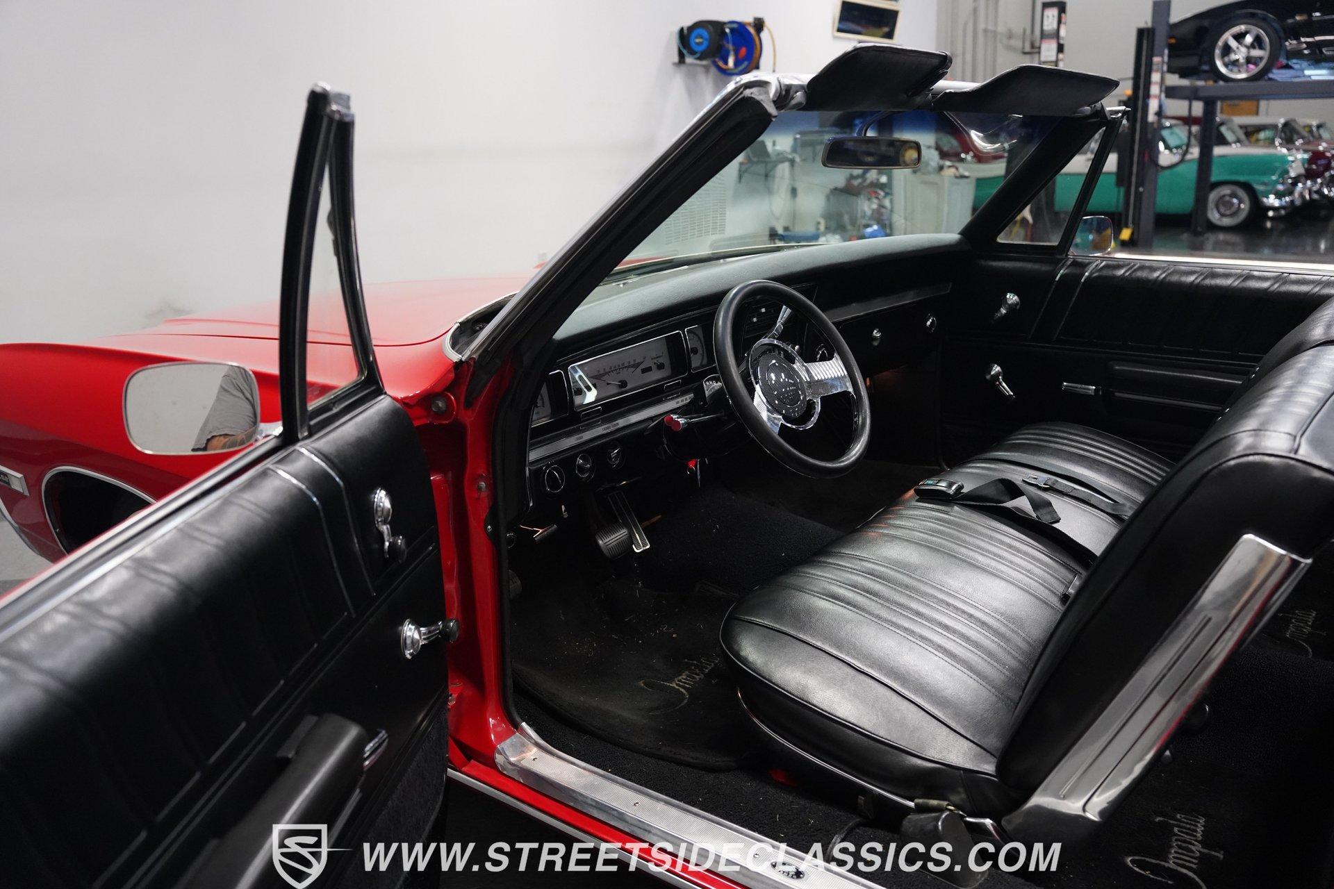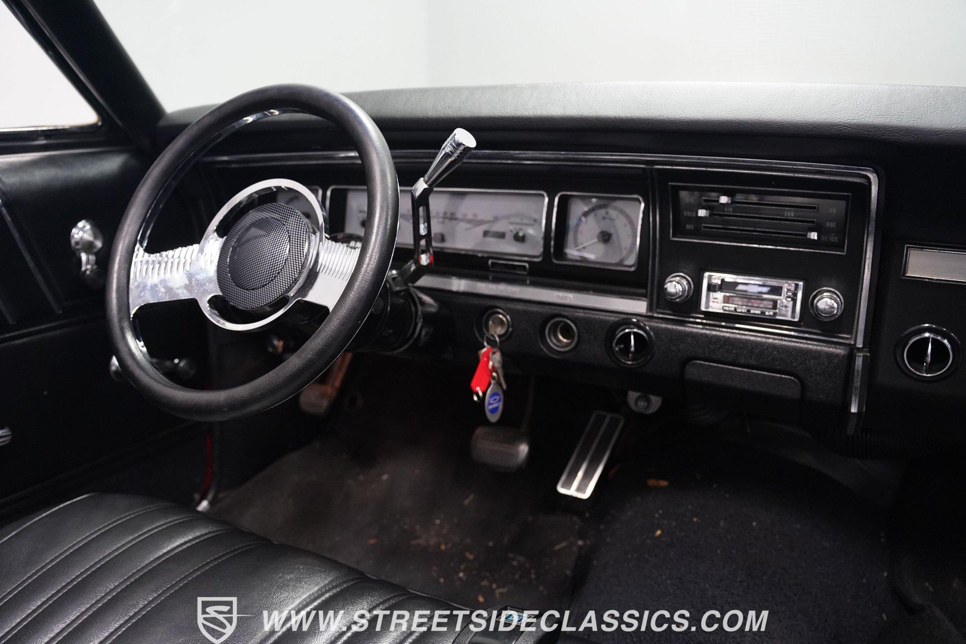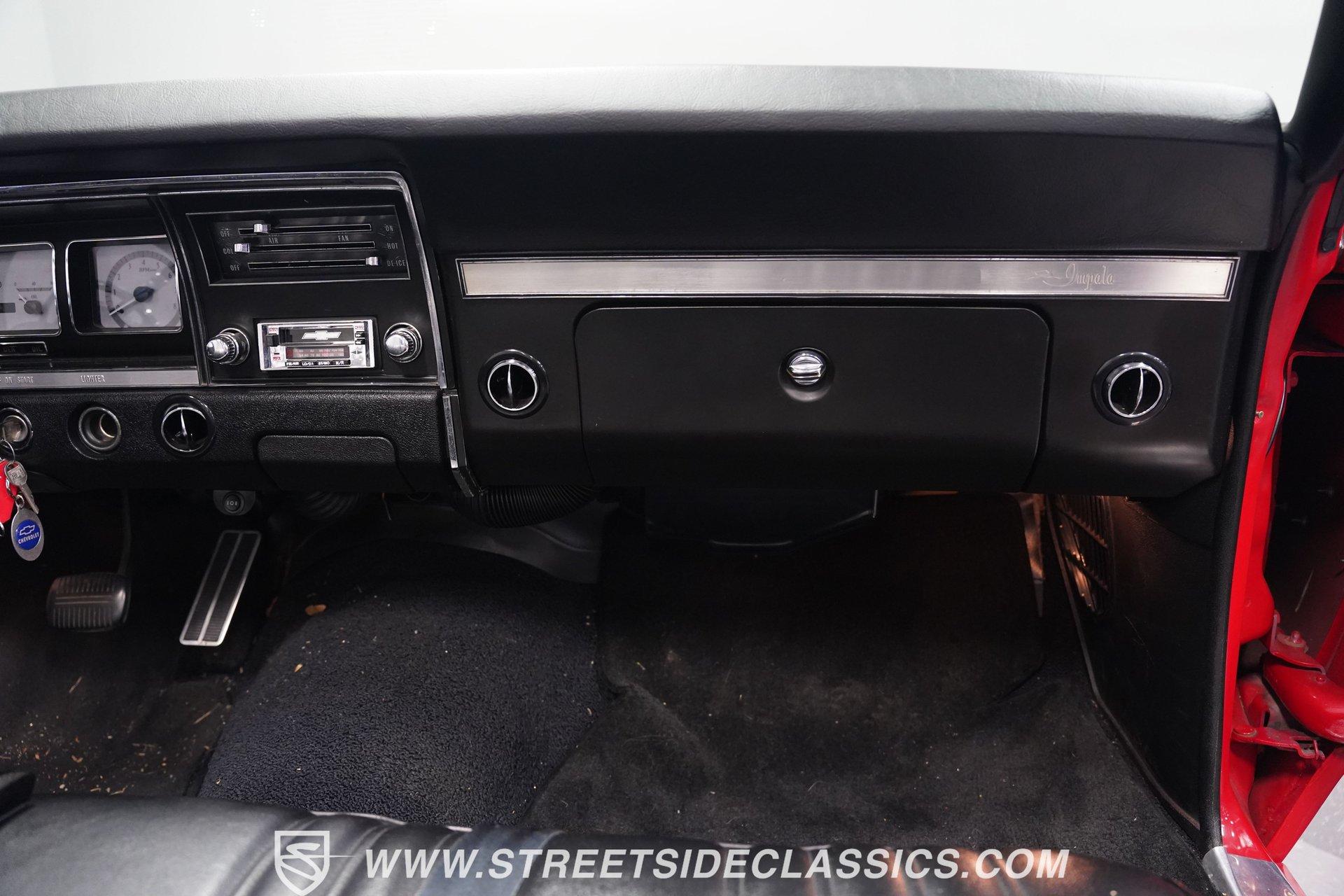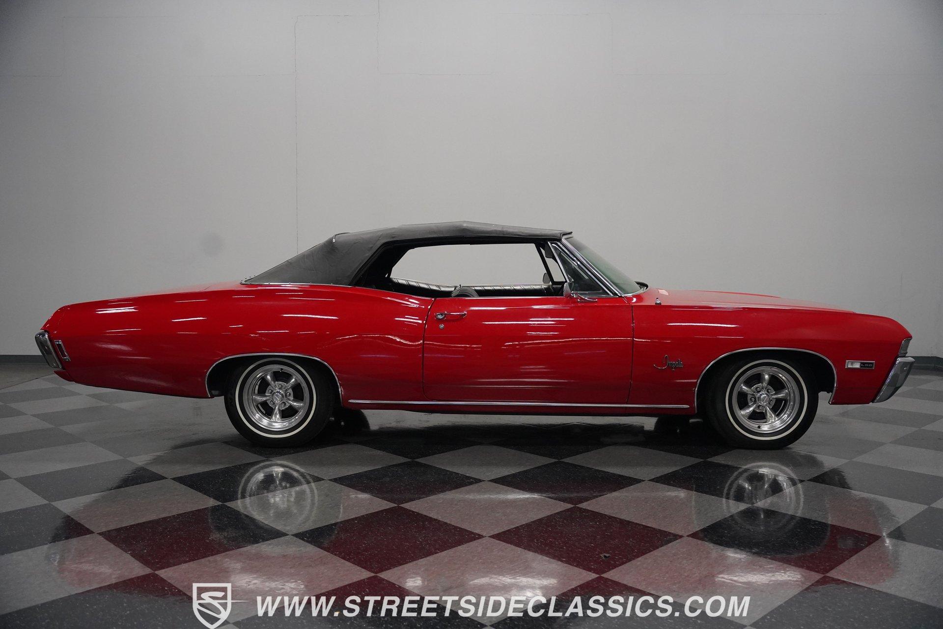Red paint flows across the body of this 1968 Chevrolet Impala Convertible LS Restomod. Black vinyl convertible top complements the exterior finish, while 15" American Eagle wheels up front and 15" American Racing wheels out back mount 205/75R15 tires. The full repaint shows well with clean panel alignment throughout the body. Black vinyl interior maintains the classic Impala character with bench seating and column shifter configuration. Dakota Digital gauges replace the original instrumentation, while a tilt column and new steering wheel enhance driver comfort. Vintage Air conditioning keeps the cabin cool, and an AM/FM radio handles entertainment duties. Black carpets cover the floor, and the vinyl seats complete the interior package. Power comes from a 6.0 Liter V8 LS2 iron block engine with Stage 2 cam, rebuilt less than 1500 miles ago. Electronic fuel injection with fuel rails and 92mm throttle body feed this motor, while a billet front runner system with serpentine belt handles accessories. The 4L60E 4-speed automatic transmission manages gear changes. Power drum brakes front and rear handle stopping duties, and the 10-bolt rear axle transfers power. Coil springs with shocks control suspension front and rear. HIGHLIGHTS: 6.0 Liter V8 LS2 Iron Block Engine (1,500 Miles Since Rebuild) Stage 2 Cam Electronic Fuel Injection with Fuel Rails 92mm Throttle Body Billet Front Runner System with Serpentine Belt 4L60E 4-Speed Automatic Transmission 10-Bolt Rear Axle Power Drum Brakes Coil Springs with Shocks Dual to Single Exhaust Aftermarket Mufflers Long Tube Headers Red Paint Black Vinyl Convertible Top 15" American Eagle Front, 15" American Racing Rear Wheels in 205/75R15 Tires Black Interior with Bench Seating Dakota Digital Gauges Tilt Column New Steering Wheel Column Shifter Vintage Air Conditioning AM/FM Radio Power Steering Restoration Completed in 2024 Dakota Digital gauges, Vintage Air comfort, and a freshly rebuilt 6.0L LS2 V8, this 1968 Chevrolet Impala Convertible LS Restomod offers both vintage appeal and contemporary reliability for weekend cruising or daily driving. Call today!