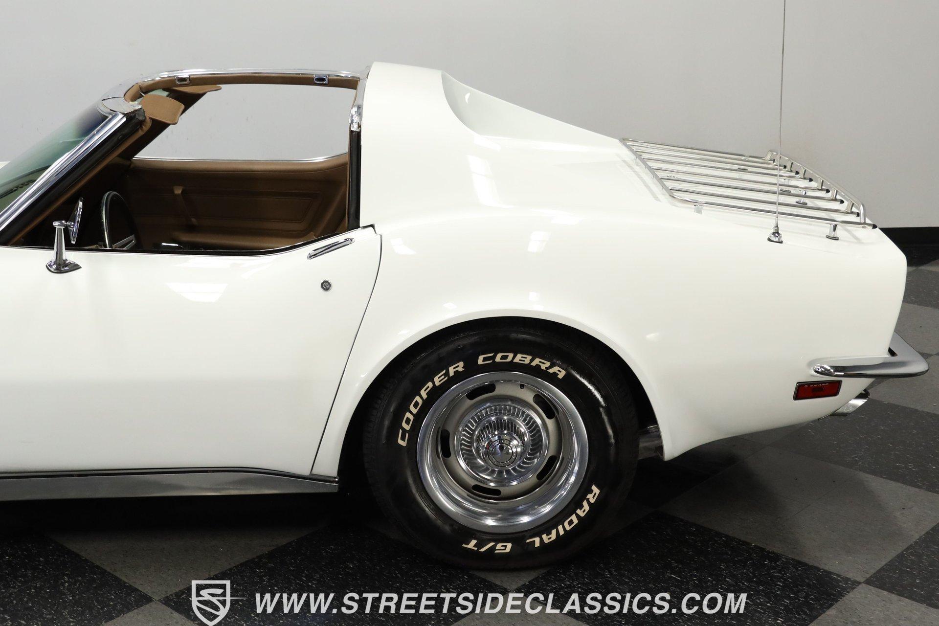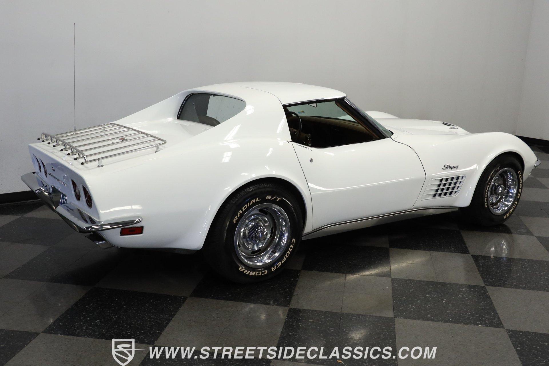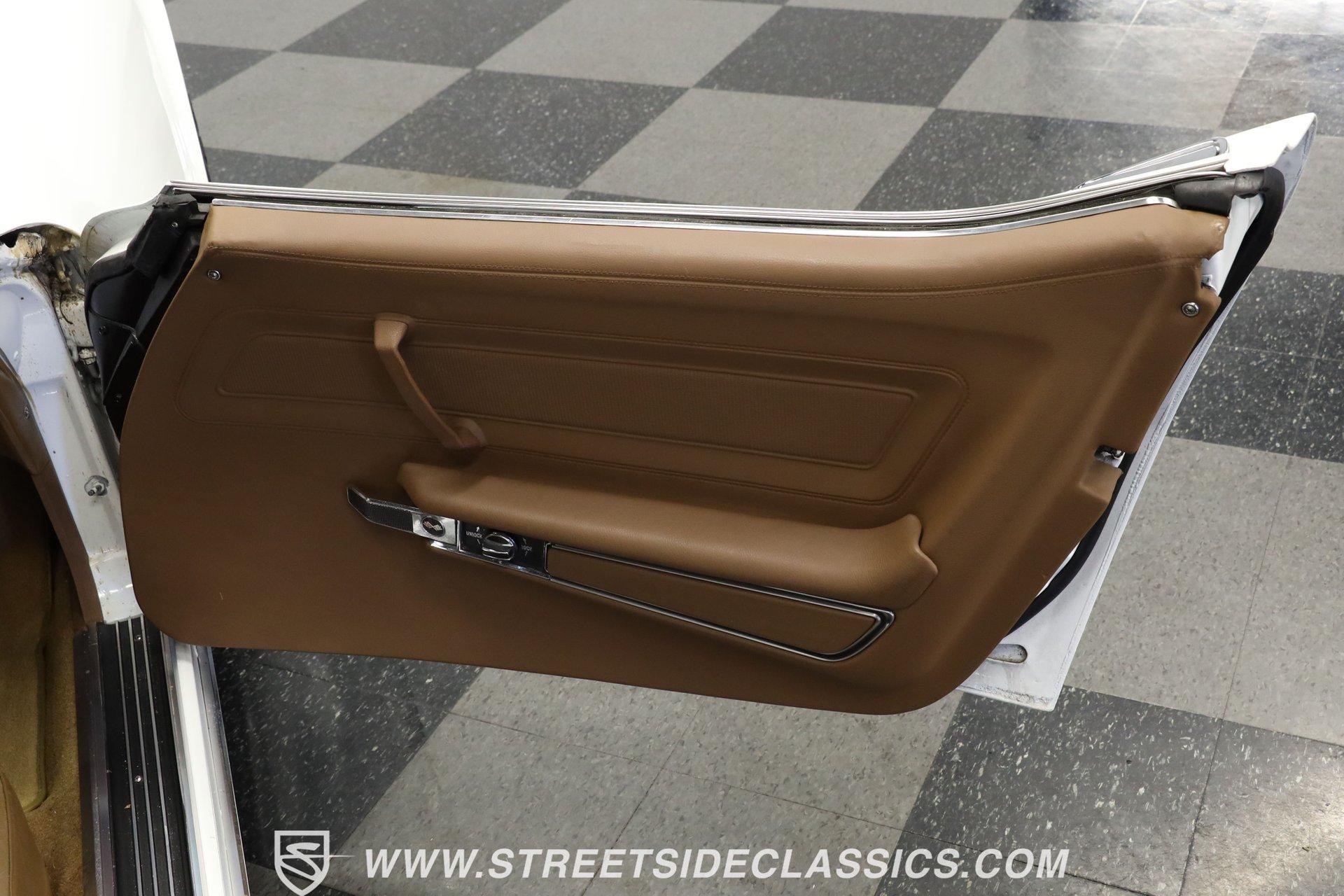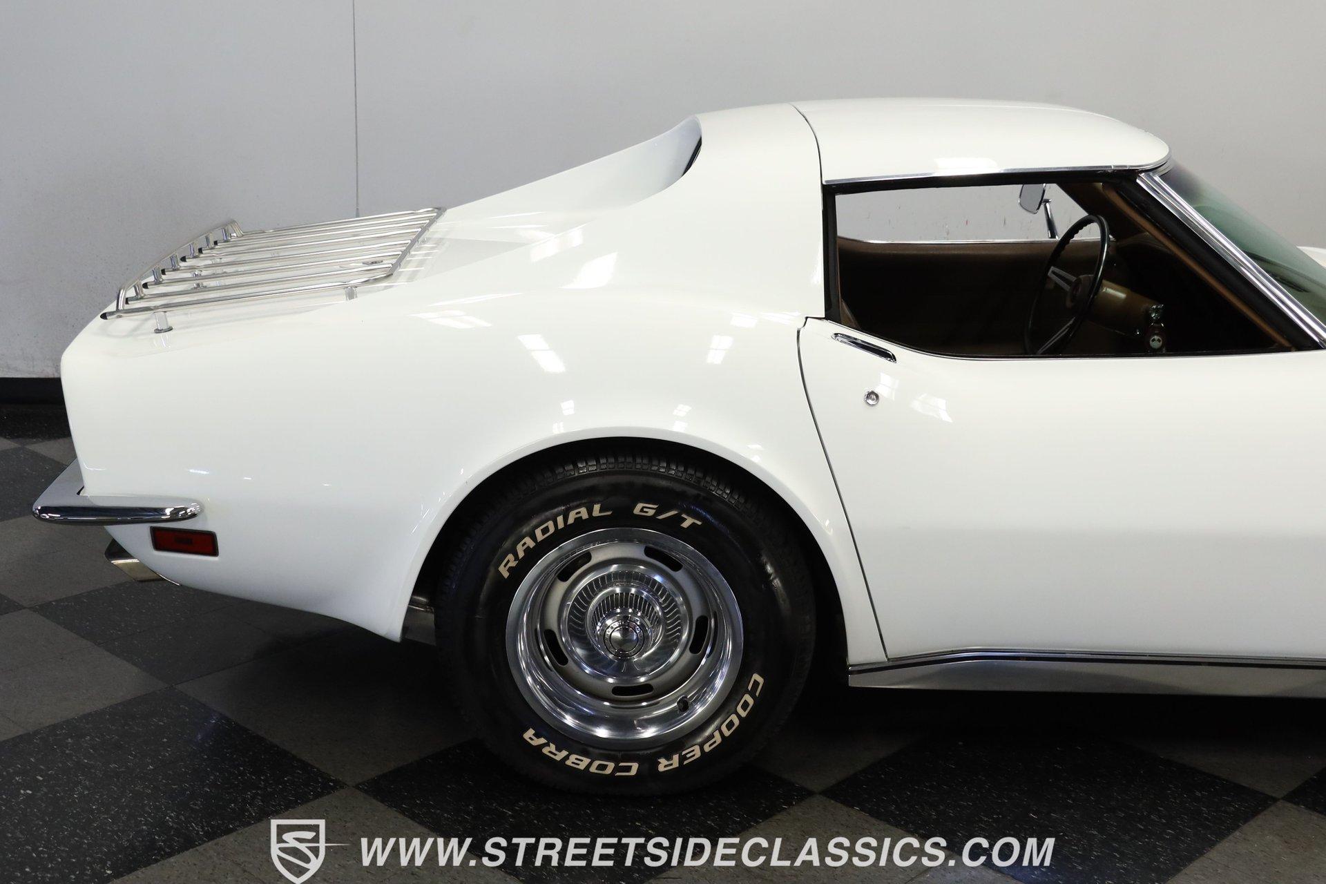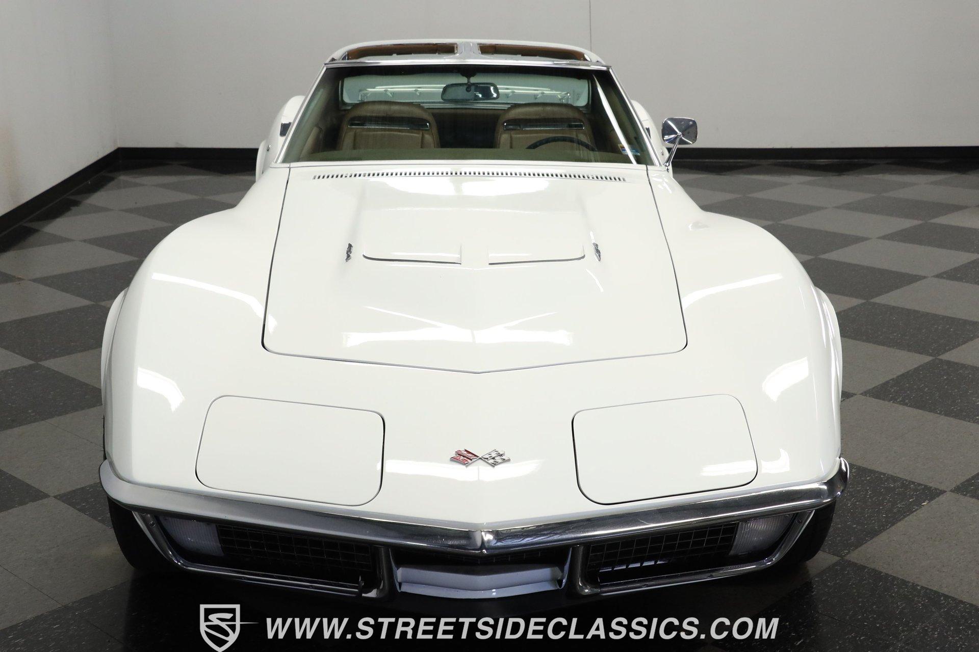Numbers-matching components verify authenticity on this 1971 Chevrolet Corvette LS5 454 finished in Classic White paint across its fiberglass body. Chrome bumpers front and rear maintain their original luster while the removable T-tops add versatility to the coupe configuration. Rolling on 15-inch chrome wheels wrapped in 225/70R15 tires, the stance remains true to its factory specifications. All exterior trim and badging present well, with glass and lighting elements remaining clear and functional throughout. Saddle vinyl bucket seats create a warm contrast against the white exterior, with the interior maintaining its original color scheme. The center console houses the shifter while the dashboard remains crack-free and properly aligned. Door panels and other interior surfaces show well, complemented by brown carpeting that covers the floor areas. Power windows operate smoothly, and the tilt steering wheel adjusts to driver preference. An AM/FM radio handles entertainment duties while maintaining the period-correct appearance. Numbers-matching 454 LS5 V8 engine connects to the original 3-speed TH400 automatic transmission, both verified by matching VIN stamps. The Quadrajet 4-barrel carburetor feeds the big block through factory-style intake manifolds, while dual exhaust exits through aftermarket mufflers. Four-wheel power disc brakes handle stopping duties with power steering reducing effort at the wheel. An upgraded aluminum radiator helps manage engine temperatures, and all belts, hoses, and soft components appear in good condition. HIGHLIGHTS: Numbers-matching 454 LS5 V8 engine Numbers-matching 3-speed TH400 automatic transmission Quadrajet 4-barrel carburetor Factory-style intake manifolds Dual exhaust with aftermarket mufflers 4-wheel power disc brakes Upgraded aluminum radiator Factory Correct Classic White paint Chrome front and rear bumpers 15-inch chrome wheels with 225/70R15 tires Removable T-tops Original exterior trim and badging Factory correct Saddle Interior with Bucket Seats Center console with shifter Power windows Tilt steering wheel AM/FM radio Power steering Owner's manual Protect-o-plate Maintenance records and receipts Numbers-matching 454 LS5 big block power, original 3-speed automatic, and classic white-over-saddle color combination make this 1971 Chevrolet Corvette LS5 454 a solid example of early C3 performance. Ready for your garage with proper documentation and mechanical integrity intact. Call today! We can assist you with getting an Extended Vehicle Service Plan from Freedom Warranty, which provides comprehensive coverage that can save thousands of dollars on unexpected repairs. Inquire for more details and pricing!