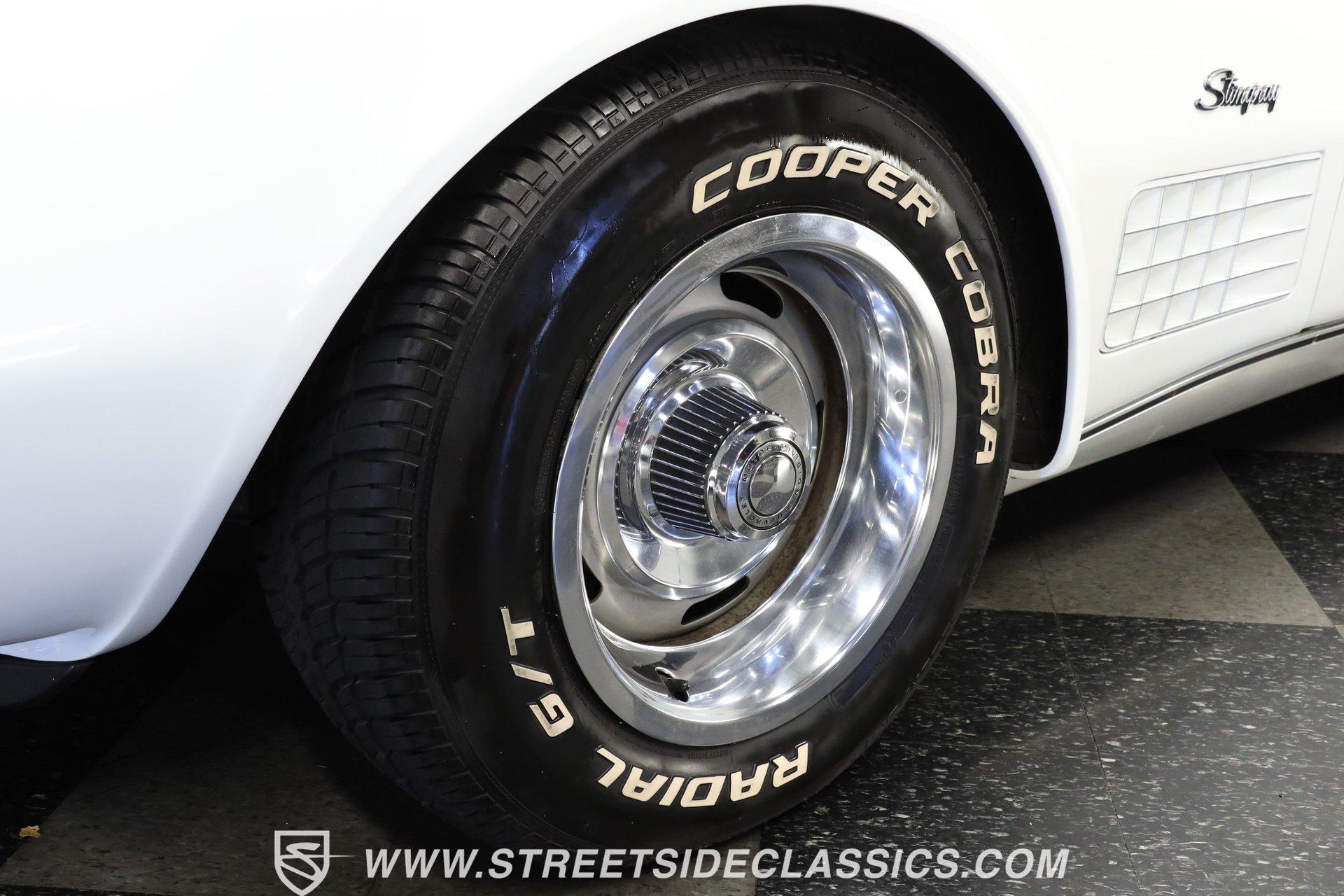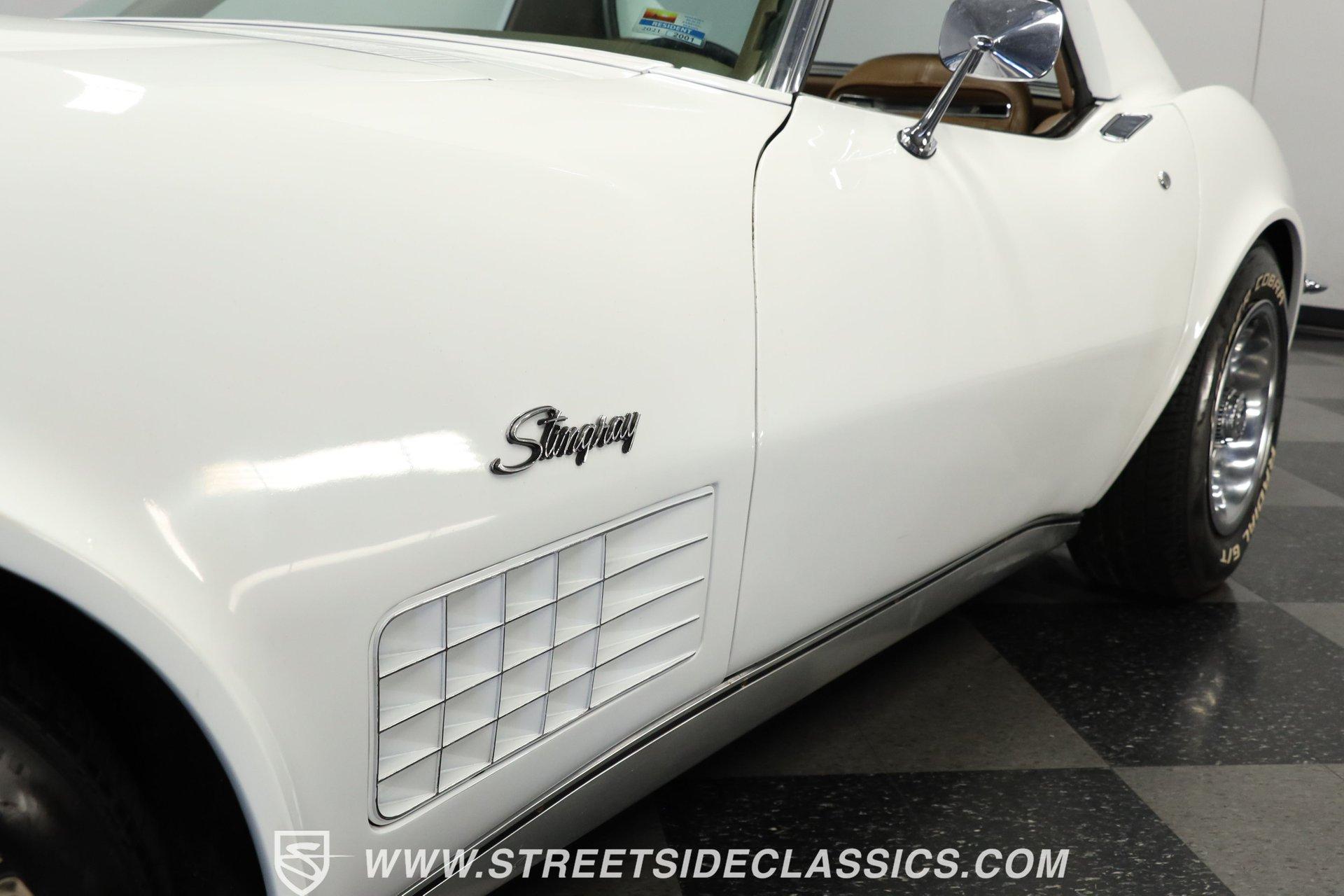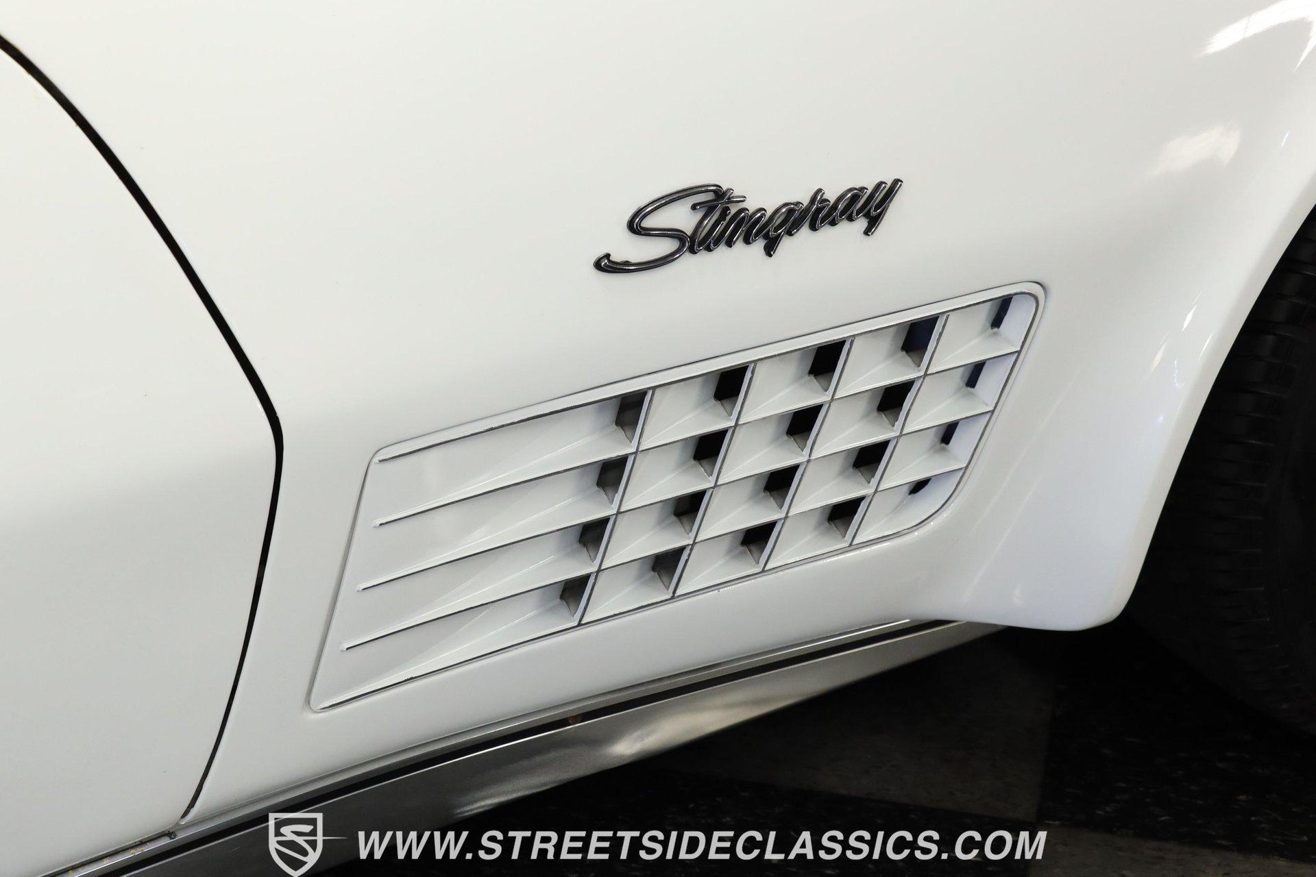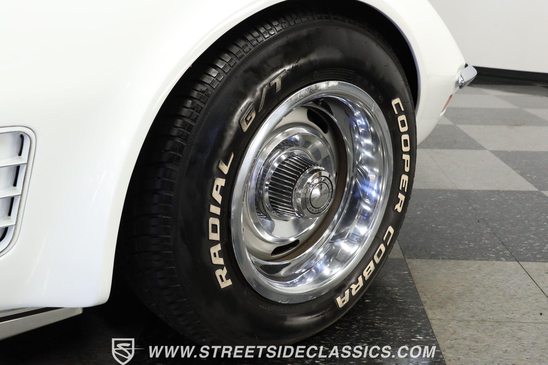 Numbers-matching components verify authenticity on this 1971 Chevrolet Corvette LS5 454 finished in Classic White paint across its fiberglass body. Chrome bumpers front and rear maintain their original luster while the removable T-tops add versatility to the coupe configuration. Rolling on 15-inch chrome wheels wrapped in 225/70R15 tires, the stance remains true to its factory specifications. All exterior trim and badging present well, with glass and lighting elements remaining clear and functional throughout. Saddle vinyl bucket seats create a warm contrast against the white exterior, with the interior maintaining its original color scheme. The center console houses the shifter while the dashboard remains crack-free and properly aligned. Door panels and other interior surfaces show well, complemented by brown carpeting that covers the floor areas. Power windows operate smoothly, and the tilt steering wheel adjusts to driver preference. An AM/FM radio handles entertainment duties while maintaining the period-correct appearance. Numbers-matching 454 LS5 V8 engine connects to the original 3-speed TH400 automatic transmission, both verified by matching VIN stamps. The Quadrajet 4-barrel carburetor feeds the big block through factory-style intake manifolds, while dual exhaust exits through aftermarket mufflers. Four-wheel power disc brakes handle stopping duties with power steering reducing effort at the wheel. An upgraded aluminum radiator helps manage engine temperatures, and all belts, hoses, and soft components appear in good condition. HIGHLIGHTS: Numbers-matching 454 LS5 V8 engine Numbers-matching 3-speed TH400 automatic transmission Quadrajet 4-barrel carburetor Factory-style intake manifolds Dual exhaust with aftermarket mufflers 4-wheel power disc brakes Upgraded aluminum radiator Factory Correct Classic White paint Chrome front and rear bumpers 15-inch chrome wheels with 225/70R15 tires Removable T-tops Original exterior trim and badging Factory correct Saddle Interior with Bucket Seats Center console with shifter Power windows Tilt steering wheel AM/FM radio Power steering Owner's manual Protect-o-plate Maintenance records and receipts Numbers-matching 454 LS5 big block power, original 3-speed automatic, and classic white-over-saddle color combination make this 1971 Chevrolet Corvette LS5 454 a solid example of early C3 performance. Ready for your garage with proper documentation and mechanical integrity intact. Call today! We can assist you with getting an Extended Vehicle Service Plan from Freedom Warranty, which provides comprehensive coverage that can save thousands of dollars on unexpected repairs. Inquire for more details and pricing!