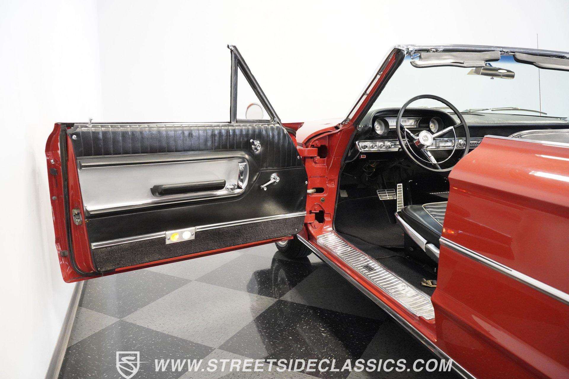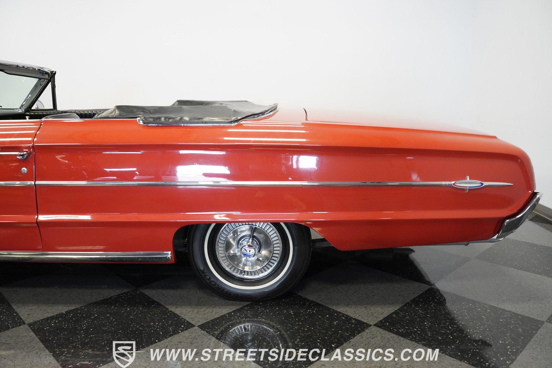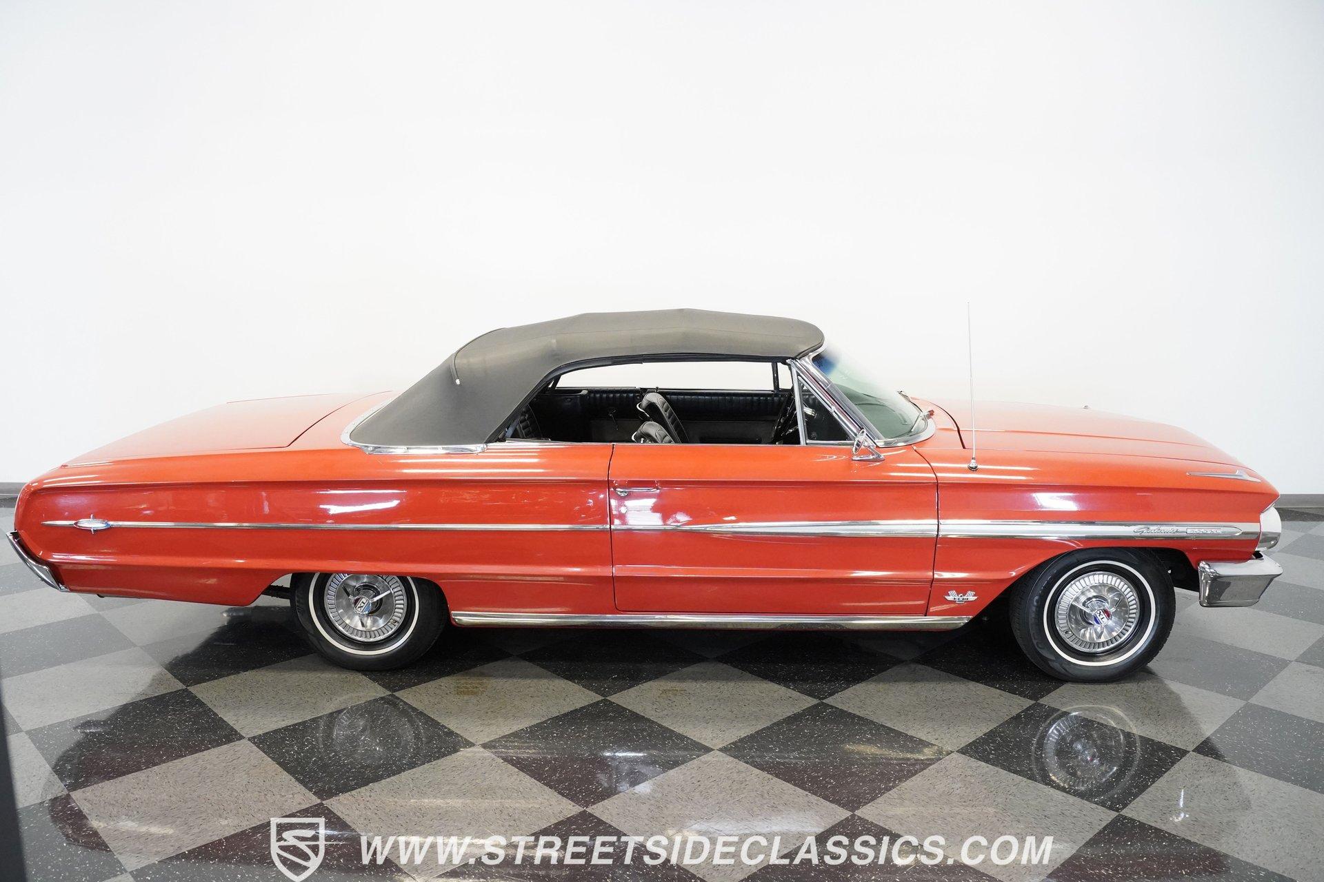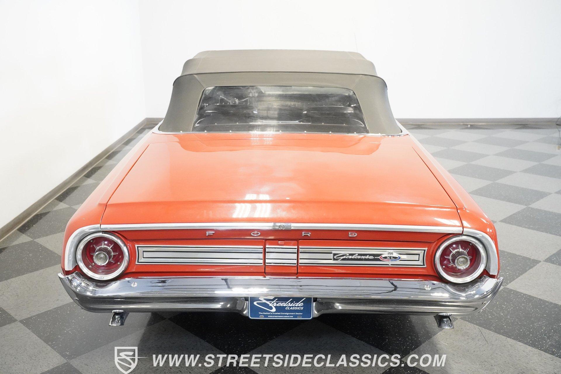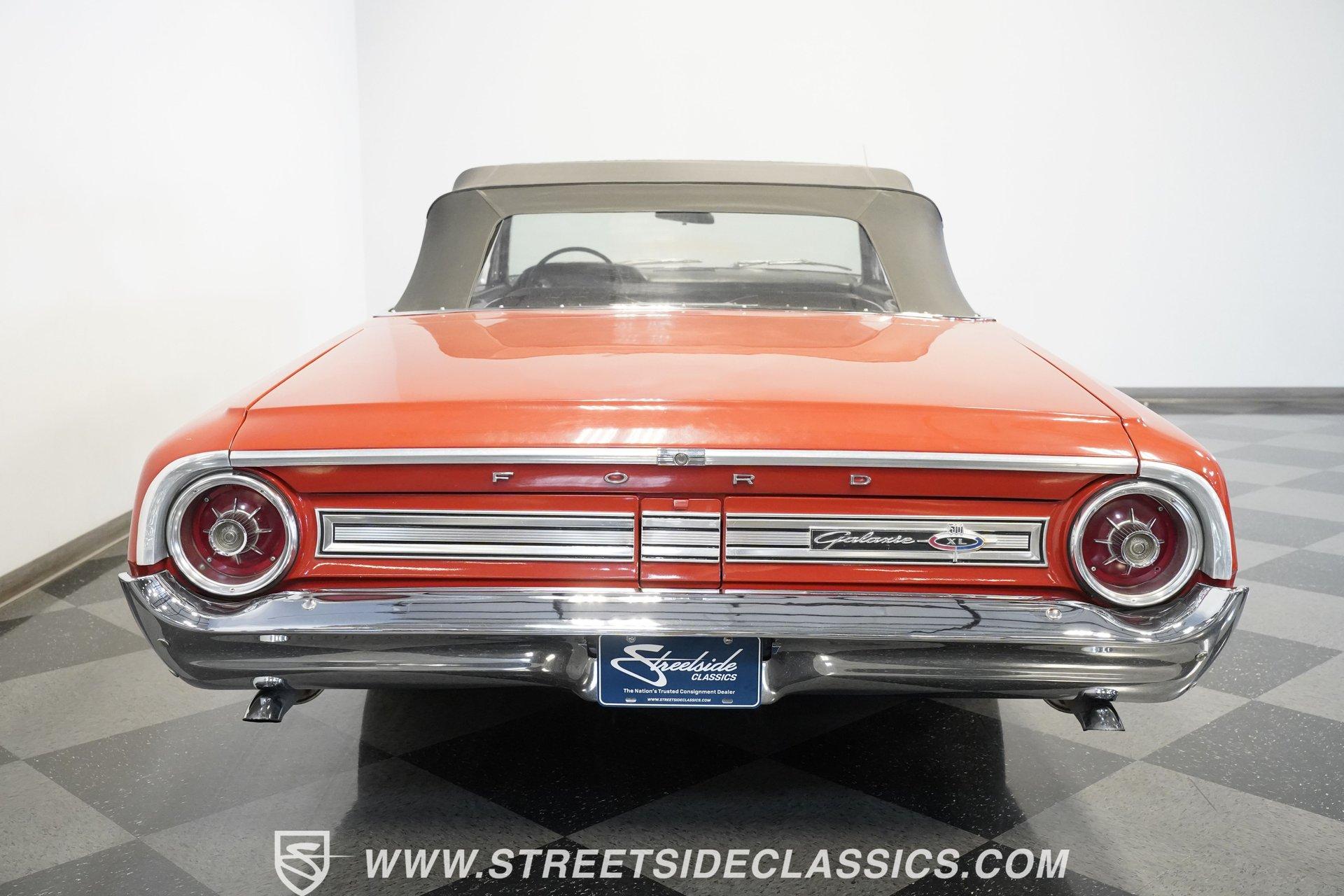 In 1964, Ford once again announced a complete makeover of their entire range. From the compact Falcon to the full-sized Galaxie and luxurious Thunderbird, the new Fords hit the mark with crisp, balanced design and a range of excellent V8 engines from the compact 289 Challenger to the mighty 427. The Galaxie 500 XL looked lower and wider than ever and was the pick for buyers after a big, stylish cruiser with plenty of muscle to back up the sharp looks. The 1964 Ford line was well received, prompting Motor Trend magazine to name the entire Ford line of cars Car of the Year. Take one look at this Rangoon Red 1964 Ford Galaxie 500XL Convertible and it is easy to understand why. This gorgeous new Galaxie 500 XL Convertible was ordered in top-line 500 XL trim, which came with a stylish interior featuring a special 500 XL upholstery pattern, special door panels with lights, a center console with floor shifter, bucket seats and bright trim work. The Black interior is dazzling, inviting, sporty and comfortable. The exterior is finished in an appealing color scheme of Rangoon Red with contrasting power-operated black convertible top in excellent condition. Additionally, this classic Ford is equipped with special XL wheel covers. HIGHLIGHTS: Top-of-the-line Ford convertible for 1964 Optional Z-code 390 engine Ford-O-Matic transmission Rangoon Red paint Power steering Power brakes Dual exhaust with glasspacks Bucket seats Console XL wheel covers Power-operated black top Under the hood is clean and detailed with the optional Z-code 390 cubic inch V8 mated to Cruise-O-Matic transmission. The engine is smooth, powerful and a pleasure to drive with its burbling dual glasspack exhaust, optional power steering and power brakes. A set of whitewall radial tires enhance both the looks and ride of this beautiful Ford. With a great deal of style and drivability, this 1964 Ford Galaxie 500XL Convertible is ready to enjoy. Call today!