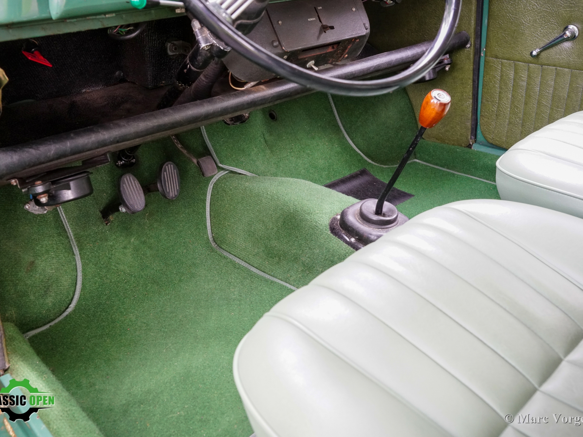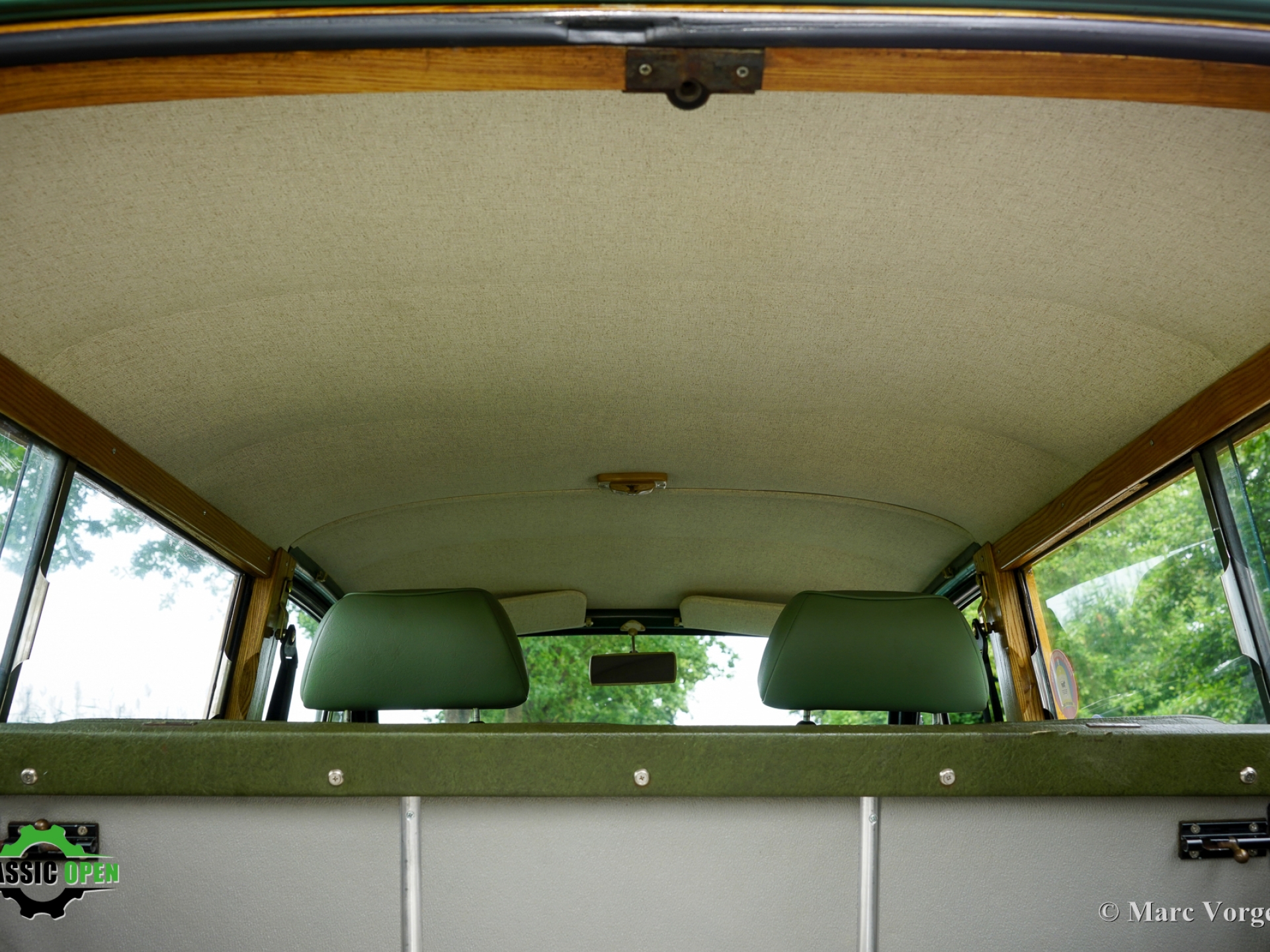 In 2007-2008, the body of this Morris Traveller was restored by a Morris Minor specialist in England. Modern seats in a matching green colour were also fitted. These seats are well adjustable and provide more comfort.