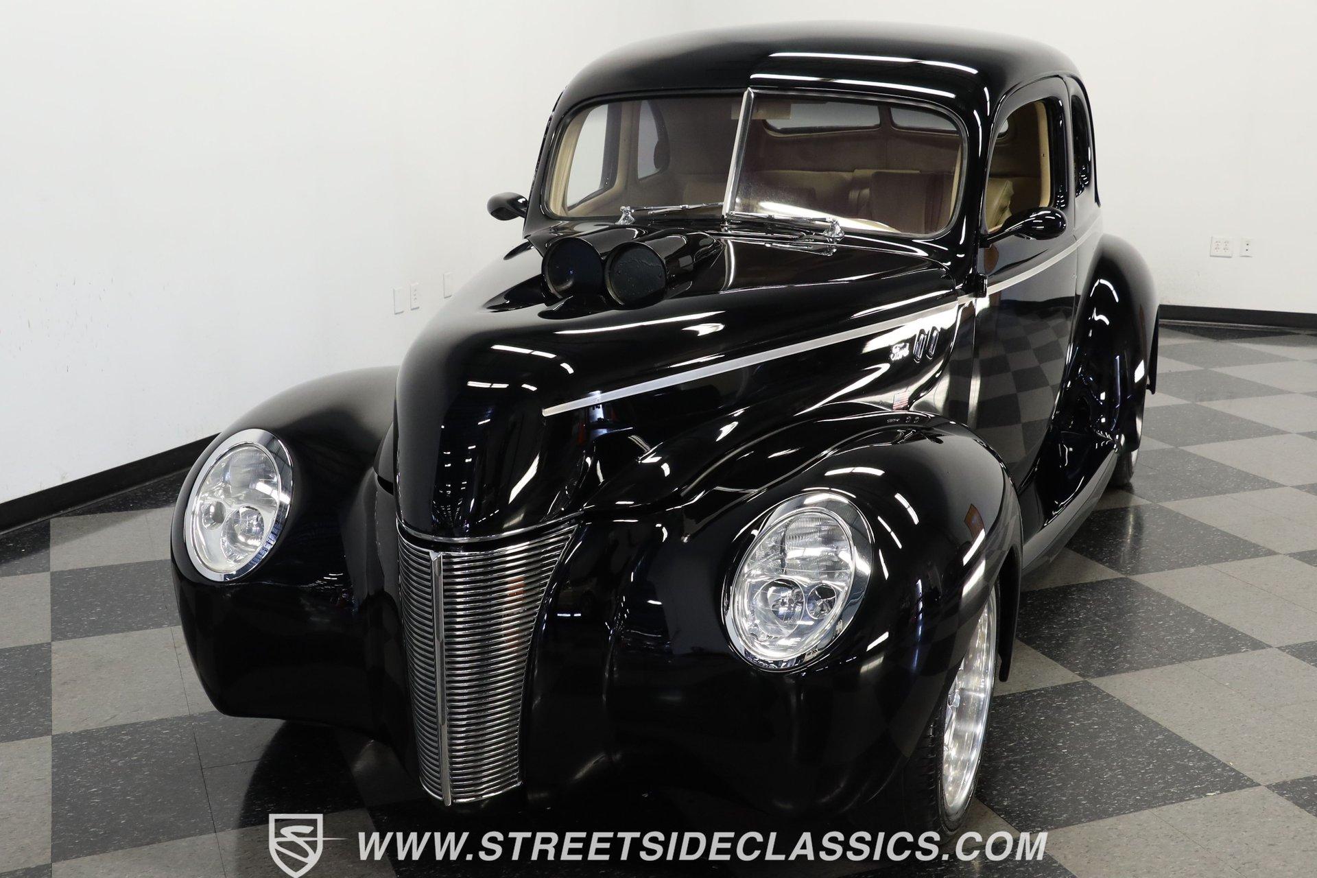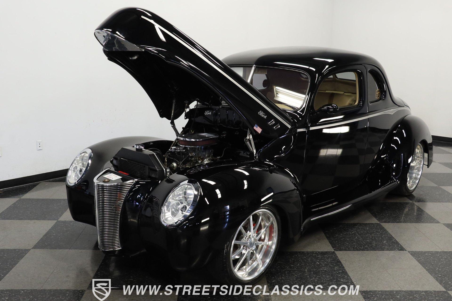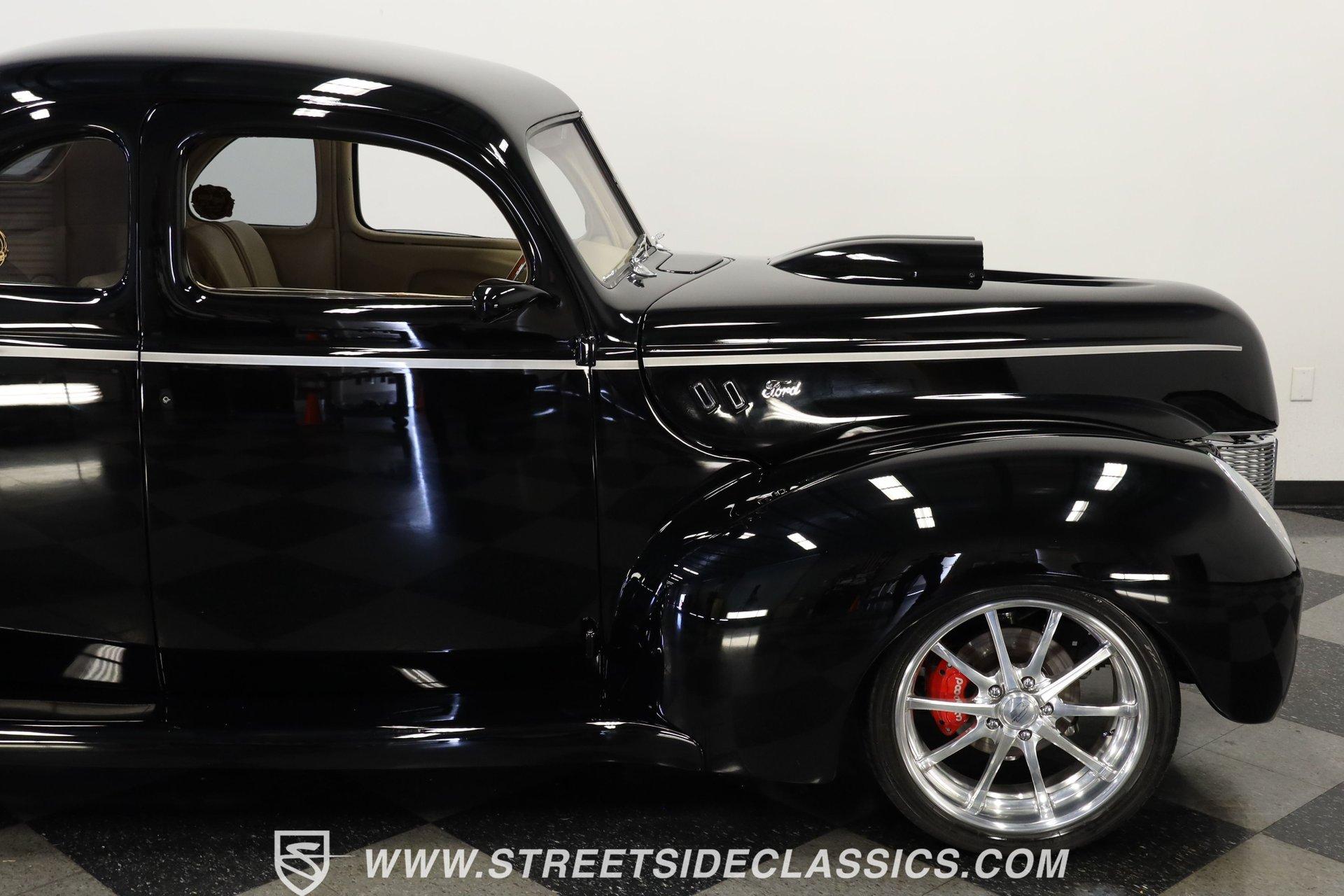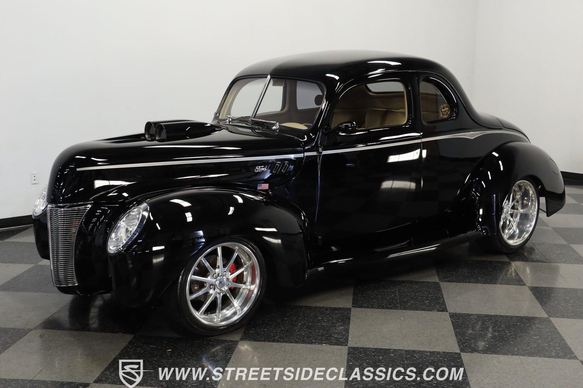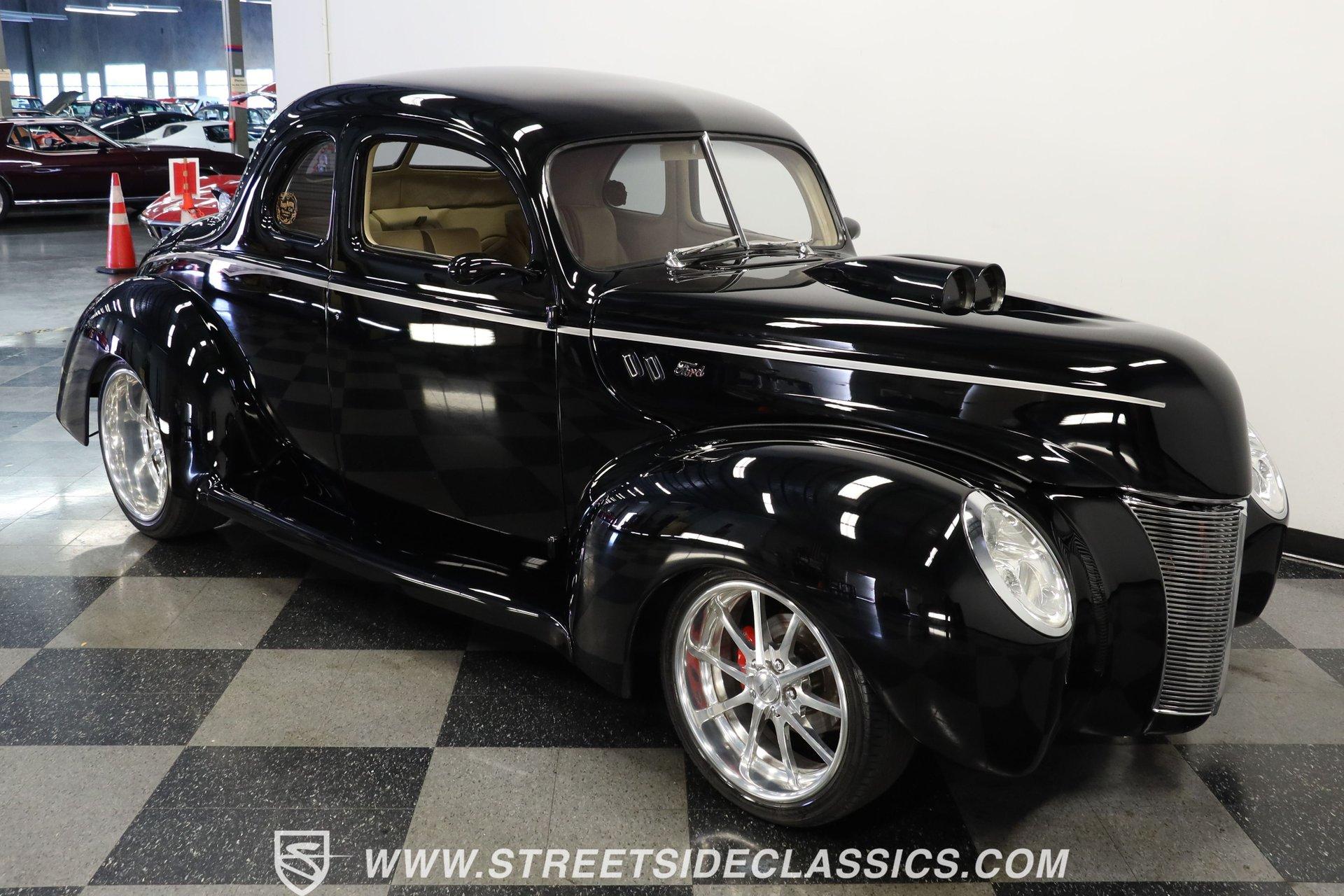 If you have always dreamed of owning an incredibly well-done classic restomod but don't have the time or energy to put everything together piece by piece through years of trial and error before being able to enjoy the fruits of your labor, then you are in for a treat. This 1940 Ford Coupe comes to us with far too much to list in the space we have available. Fully repainted in a glossy black finish, this car has had its corners, doors, and trunk rounded, while those doors and its quarter panels have been lengthened by half an inch. The running boards have been narrowed, while the rear fenders have been widened a full 3.5 inches to give this Ford an old-school cool vibe that can be felt from any angle. Inside, we find an entirely bespoke interior finished off with plush bucket seats outfitted in soft-to-the-touch premium vinyl. A GM tilt steering column capped off with a Billet Specialties wood-rimmed steering wheel sits just in front of a set of white-faced VDO gauges, which transmit all the vital information a driver needs in clear and easy-to-read style. Subtle details like the inlaid wood grain on the dashboard match that of the steering wheel. At the same time, the B&M Quicksilver floor shift is operated by a custom owner-made metal shifter that again ties back to the three-spoke steering wheel, which also uncoincidentally matches the polished American Racing wheels. A Pioneer AM/FM/CD head unit powers through nine-inch Pioneer speakers via custom enclosures that look as if they could have been factory-made, as does the third brake light supremely integrated into the overhead console. Even the carpet-lined trunk gets a mirrored Ford logo and pass-through door to give this car the perfect mix of form and function. Under the Shotgun hood scoop, we find a 347 cubic-inch Ford V-8 bored and stroked out to 352 cubic inches of displacement. Air Flow Research aluminum heads, roller rockers, and a Competition Cams Extreme Energy hydraulic roller camshaft are fed by an Edelbrock Air Gap intake topped with a Demon 750 cfm four-barrel carburetor. Custom-fabricated jet-coated headers give way to a true dual exhaust capped off by a set of FlowMaster 40-series mufflers. Power is routed through a Ford C4 three-speed automatic transmission complete with a 2,500 RPM stall converter before heading out to a 3.55 geared Eaton Positraction Ford nine-inch rear end. *Highly Modified Hot Rod *3580 Miles Since Built *Rounded Corners and Trunk *Lengthened Doors and Quarters *Narrowed Running Boards *Shotgun Hood *Mini Cooper Headlights *Ford 347 Stroker V8 *AFR Aluminum Heads *Comp Extreme Energy Cam *Edelbrock Air Gap Intake *Demon 750 CFM Carb *Ford C4 Auto *2500 RPM Stall *Nine Inch Ford Rear *3.55 Eaton Posi *Wilwood Brakes *Custom Interior *Power Driver's Seat *Pioneer CD Head Unit *VDO Gauges *Tinted Power Windows *AC *Dyno Sheet *Too Much To List This unbelievable 1940 Ford Coupe rides on an independent front suspension, with a traditional leaf spring setup out back. Two-inch dropped spindles, Heidts upper and lower polished control arms, and a set of eleven-inch power-assisted disc brakes sit at all four corners to round out the all-around impressiveness of this stellar restomod. A car that truly has so many fine details that it needs to be seen to be fully appreciated. If you've wanted an awesome throwback hot rod ready to go right now, this Ford Coupe is the car you've been waiting for. Just remember you're probably not the only one who wants a turn-key head-turner like this one, so don't wait another second. Call today! We can assist you with getting an Extended Vehicle Service Plan from Freedom Warranty, which provides comprehensive coverage that can save thousands of dollars on unexpected repairs. Inquire for more details and pricing!