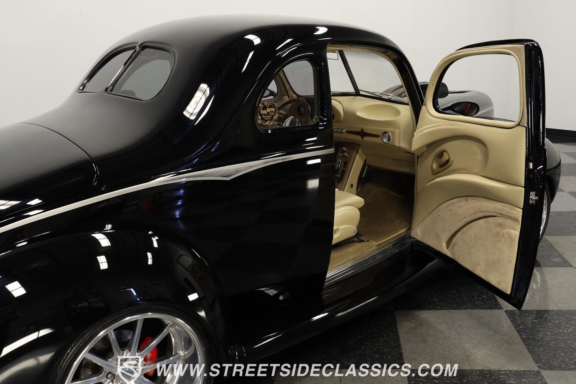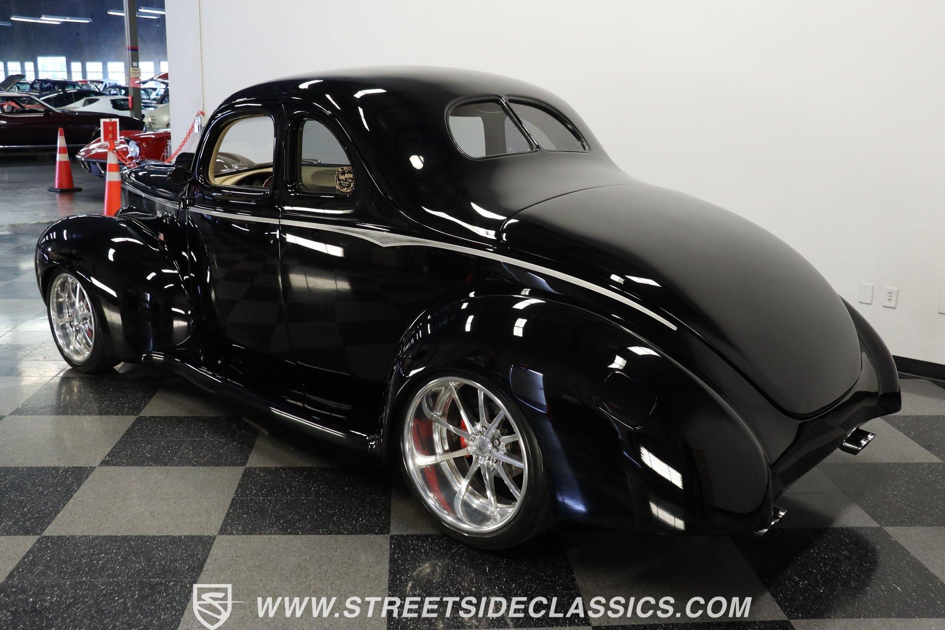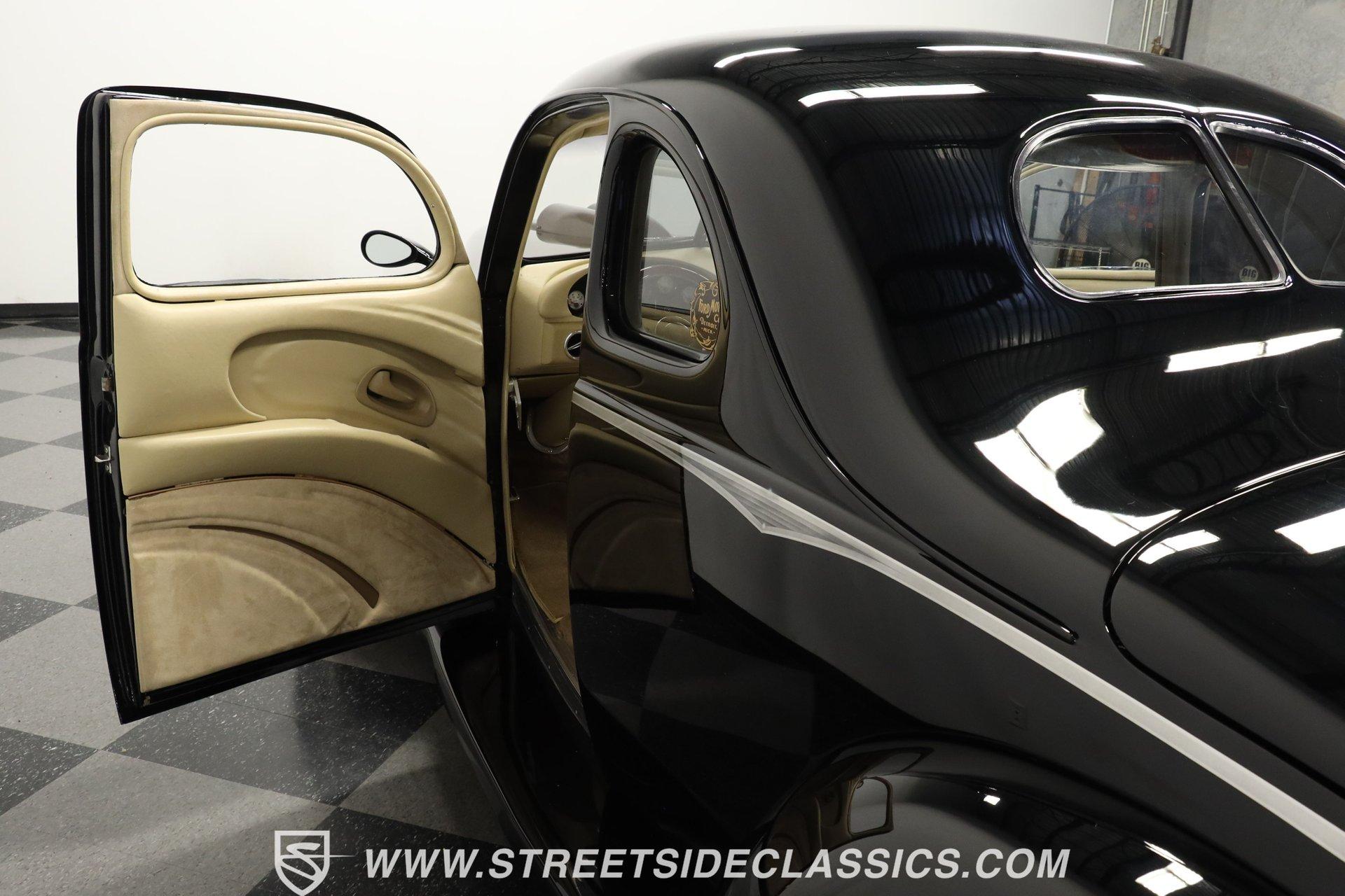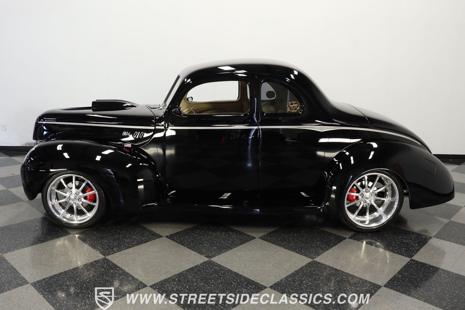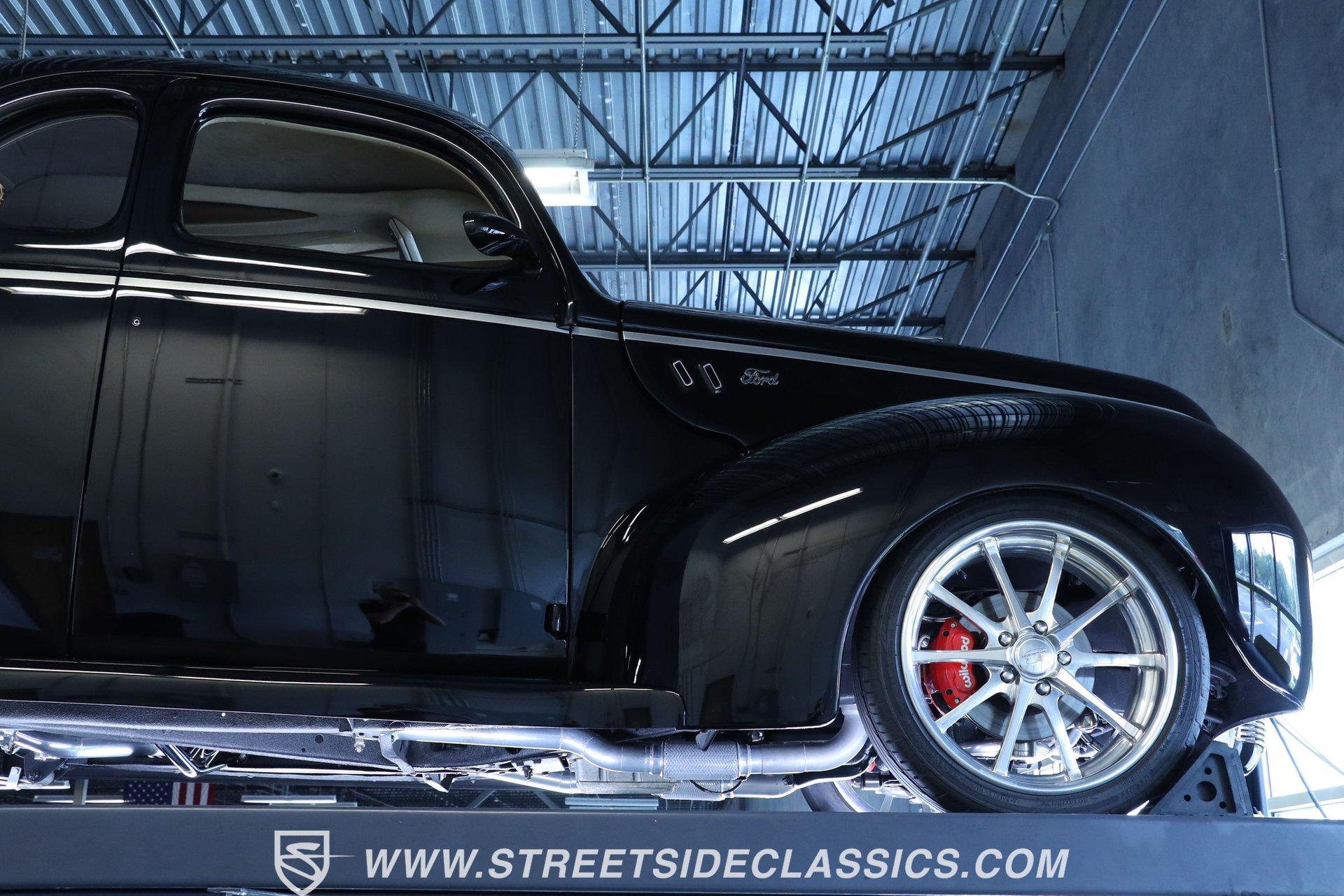 If you have always dreamed of owning an incredibly well-done classic restomod but don't have the time or energy to put everything together piece by piece through years of trial and error before being able to enjoy the fruits of your labor, then you are in for a treat. This 1940 Ford Coupe comes to us with far too much to list in the space we have available. Fully repainted in a glossy black finish, this car has had its corners, doors, and trunk rounded, while those doors and its quarter panels have been lengthened by half an inch. The running boards have been narrowed, while the rear fenders have been widened a full 3.5 inches to give this Ford an old-school cool vibe that can be felt from any angle. Inside, we find an entirely bespoke interior finished off with plush bucket seats outfitted in soft-to-the-touch premium vinyl. A GM tilt steering column capped off with a Billet Specialties wood-rimmed steering wheel sits just in front of a set of white-faced VDO gauges, which transmit all the vital information a driver needs in clear and easy-to-read style. Subtle details like the inlaid wood grain on the dashboard match that of the steering wheel. At the same time, the B&M Quicksilver floor shift is operated by a custom owner-made metal shifter that again ties back to the three-spoke steering wheel, which also uncoincidentally matches the polished American Racing wheels. A Pioneer AM/FM/CD head unit powers through nine-inch Pioneer speakers via custom enclosures that look as if they could have been factory-made, as does the third brake light supremely integrated into the overhead console. Even the carpet-lined trunk gets a mirrored Ford logo and pass-through door to give this car the perfect mix of form and function. Under the Shotgun hood scoop, we find a 347 cubic-inch Ford V-8 bored and stroked out to 352 cubic inches of displacement. Air Flow Research aluminum heads, roller rockers, and a Competition Cams Extreme Energy hydraulic roller camshaft are fed by an Edelbrock Air Gap intake topped with a Demon 750 cfm four-barrel carburetor. Custom-fabricated jet-coated headers give way to a true dual exhaust capped off by a set of FlowMaster 40-series mufflers. Power is routed through a Ford C4 three-speed automatic transmission complete with a 2,500 RPM stall converter before heading out to a 3.55 geared Eaton Positraction Ford nine-inch rear end. *Highly Modified Hot Rod *3580 Miles Since Built *Rounded Corners and Trunk *Lengthened Doors and Quarters *Narrowed Running Boards *Shotgun Hood *Mini Cooper Headlights *Ford 347 Stroker V8 *AFR Aluminum Heads *Comp Extreme Energy Cam *Edelbrock Air Gap Intake *Demon 750 CFM Carb *Ford C4 Auto *2500 RPM Stall *Nine Inch Ford Rear *3.55 Eaton Posi *Wilwood Brakes *Custom Interior *Power Driver's Seat *Pioneer CD Head Unit *VDO Gauges *Tinted Power Windows *AC *Dyno Sheet *Too Much To List This unbelievable 1940 Ford Coupe rides on an independent front suspension, with a traditional leaf spring setup out back. Two-inch dropped spindles, Heidts upper and lower polished control arms, and a set of eleven-inch power-assisted disc brakes sit at all four corners to round out the all-around impressiveness of this stellar restomod. A car that truly has so many fine details that it needs to be seen to be fully appreciated. If you've wanted an awesome throwback hot rod ready to go right now, this Ford Coupe is the car you've been waiting for. Just remember you're probably not the only one who wants a turn-key head-turner like this one, so don't wait another second. Call today! We can assist you with getting an Extended Vehicle Service Plan from Freedom Warranty, which provides comprehensive coverage that can save thousands of dollars on unexpected repairs. Inquire for more details and pricing!