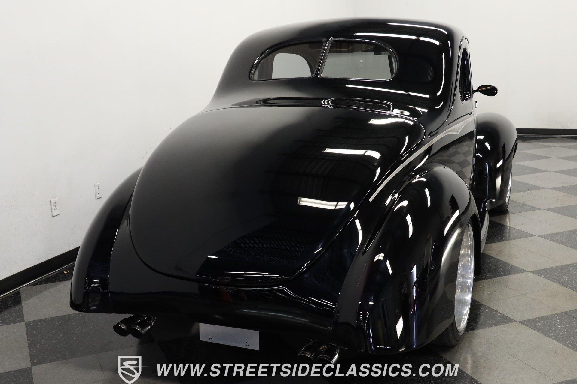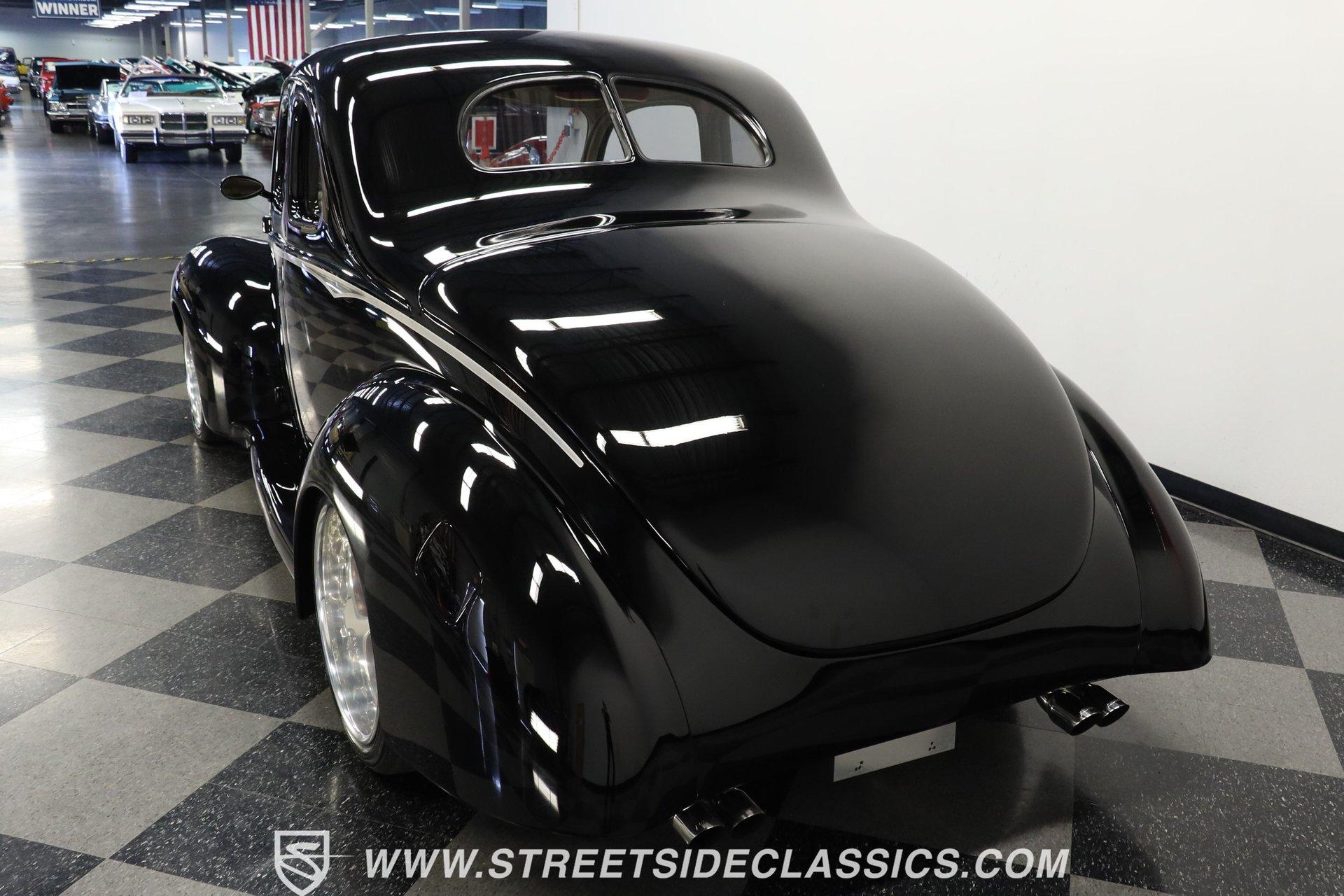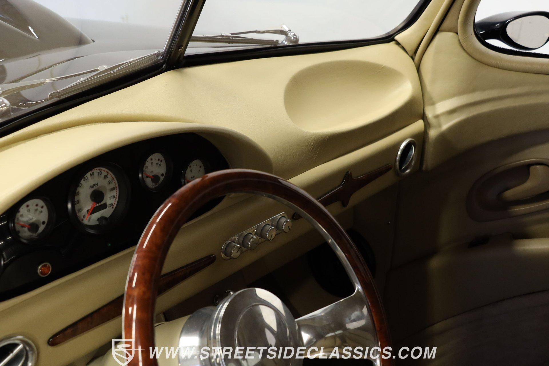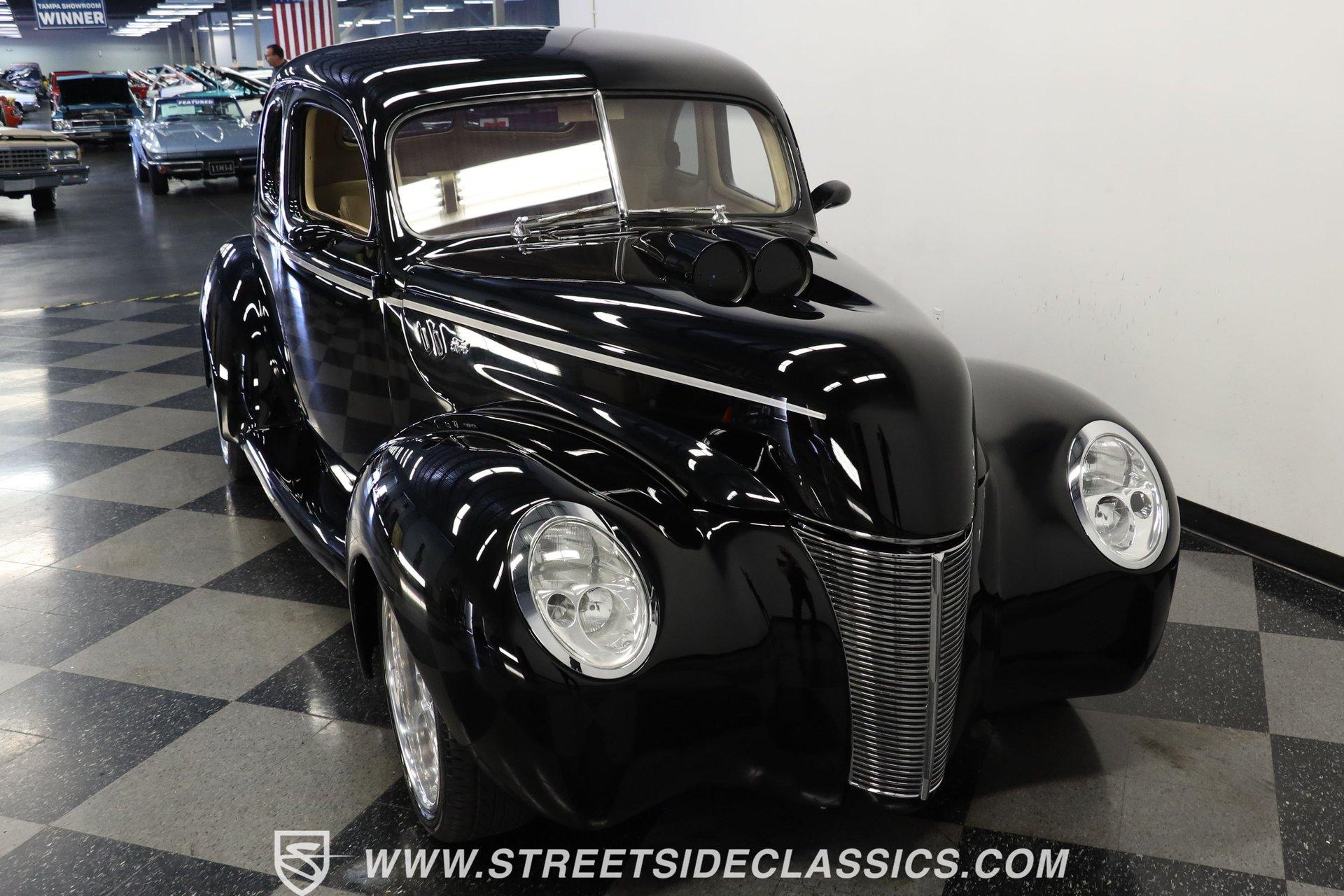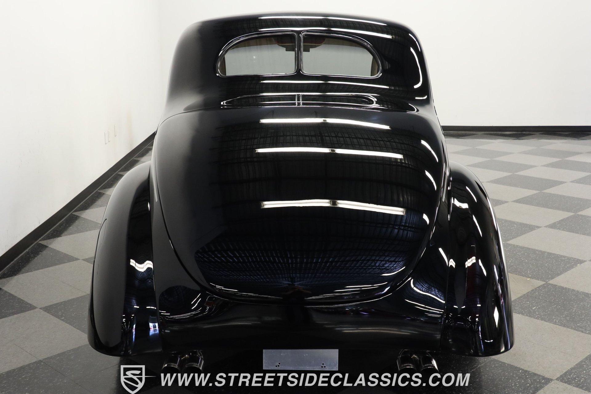 If you have always dreamed of owning an incredibly well-done classic restomod but don't have the time or energy to put everything together piece by piece through years of trial and error before being able to enjoy the fruits of your labor, then you are in for a treat. This 1940 Ford Coupe comes to us with far too much to list in the space we have available. Fully repainted in a glossy black finish, this car has had its corners, doors, and trunk rounded, while those doors and its quarter panels have been lengthened by half an inch. The running boards have been narrowed, while the rear fenders have been widened a full 3.5 inches to give this Ford an old-school cool vibe that can be felt from any angle. Inside, we find an entirely bespoke interior finished off with plush bucket seats outfitted in soft-to-the-touch premium vinyl. A GM tilt steering column capped off with a Billet Specialties wood-rimmed steering wheel sits just in front of a set of white-faced VDO gauges, which transmit all the vital information a driver needs in clear and easy-to-read style. Subtle details like the inlaid wood grain on the dashboard match that of the steering wheel. At the same time, the B&M Quicksilver floor shift is operated by a custom owner-made metal shifter that again ties back to the three-spoke steering wheel, which also uncoincidentally matches the polished American Racing wheels. A Pioneer AM/FM/CD head unit powers through nine-inch Pioneer speakers via custom enclosures that look as if they could have been factory-made, as does the third brake light supremely integrated into the overhead console. Even the carpet-lined trunk gets a mirrored Ford logo and pass-through door to give this car the perfect mix of form and function. Under the Shotgun hood scoop, we find a 347 cubic-inch Ford V-8 bored and stroked out to 352 cubic inches of displacement. Air Flow Research aluminum heads, roller rockers, and a Competition Cams Extreme Energy hydraulic roller camshaft are fed by an Edelbrock Air Gap intake topped with a Demon 750 cfm four-barrel carburetor. Custom-fabricated jet-coated headers give way to a true dual exhaust capped off by a set of FlowMaster 40-series mufflers. Power is routed through a Ford C4 three-speed automatic transmission complete with a 2,500 RPM stall converter before heading out to a 3.55 geared Eaton Positraction Ford nine-inch rear end. *Highly Modified Hot Rod *3580 Miles Since Built *Rounded Corners and Trunk *Lengthened Doors and Quarters *Narrowed Running Boards *Shotgun Hood *Mini Cooper Headlights *Ford 347 Stroker V8 *AFR Aluminum Heads *Comp Extreme Energy Cam *Edelbrock Air Gap Intake *Demon 750 CFM Carb *Ford C4 Auto *2500 RPM Stall *Nine Inch Ford Rear *3.55 Eaton Posi *Wilwood Brakes *Custom Interior *Power Driver's Seat *Pioneer CD Head Unit *VDO Gauges *Tinted Power Windows *AC *Dyno Sheet *Too Much To List This unbelievable 1940 Ford Coupe rides on an independent front suspension, with a traditional leaf spring setup out back. Two-inch dropped spindles, Heidts upper and lower polished control arms, and a set of eleven-inch power-assisted disc brakes sit at all four corners to round out the all-around impressiveness of this stellar restomod. A car that truly has so many fine details that it needs to be seen to be fully appreciated. If you've wanted an awesome throwback hot rod ready to go right now, this Ford Coupe is the car you've been waiting for. Just remember you're probably not the only one who wants a turn-key head-turner like this one, so don't wait another second. Call today! We can assist you with getting an Extended Vehicle Service Plan from Freedom Warranty, which provides comprehensive coverage that can save thousands of dollars on unexpected repairs. Inquire for more details and pricing!