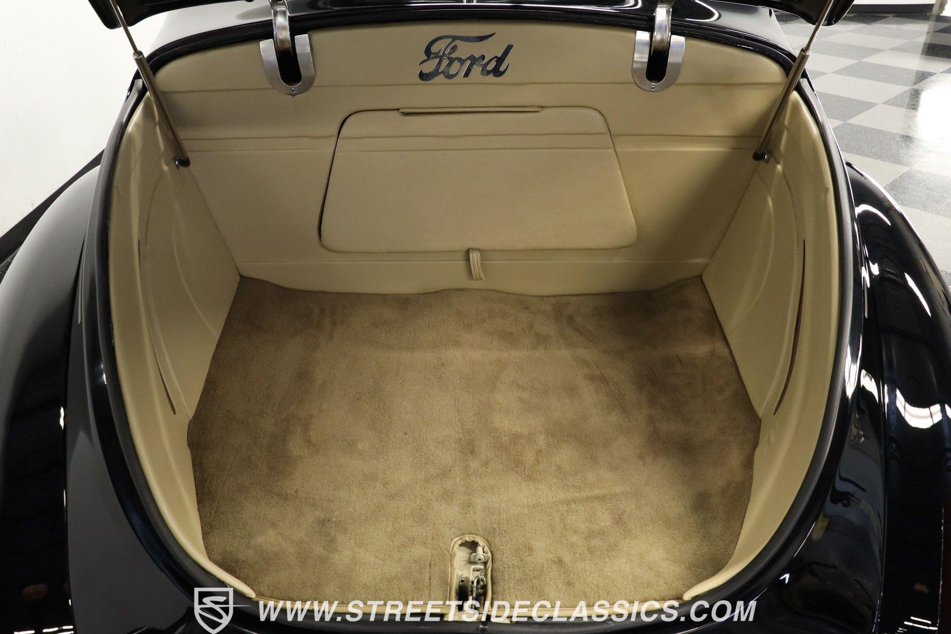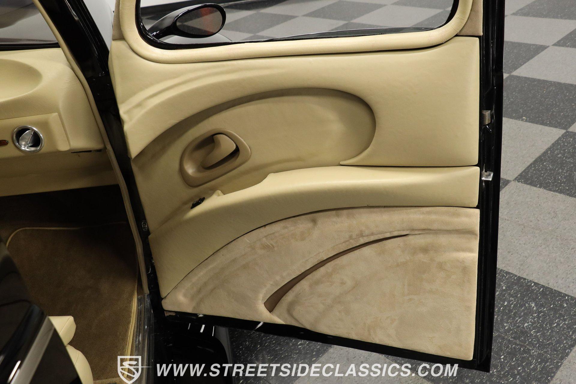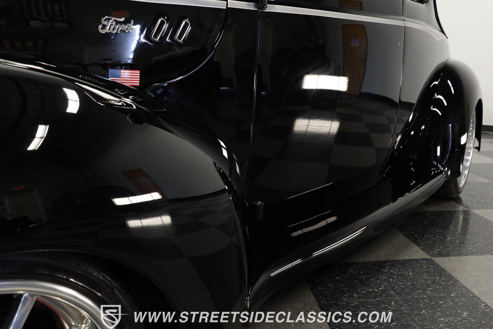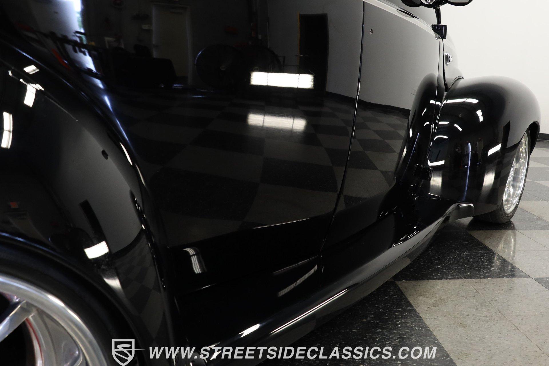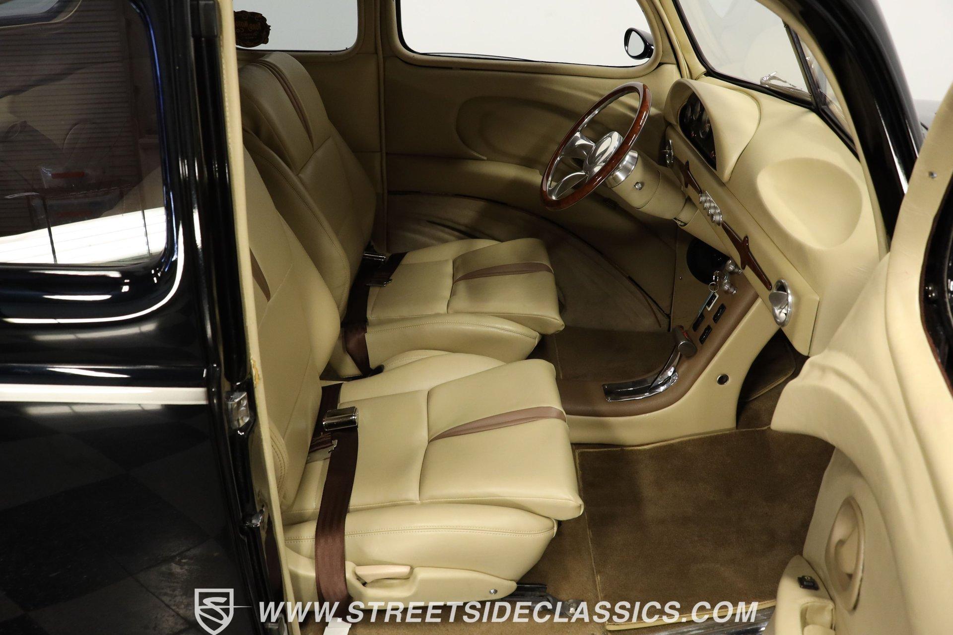 If you have always dreamed of owning an incredibly well-done classic restomod but don't have the time or energy to put everything together piece by piece through years of trial and error before being able to enjoy the fruits of your labor, then you are in for a treat. This 1940 Ford Coupe comes to us with far too much to list in the space we have available. Fully repainted in a glossy black finish, this car has had its corners, doors, and trunk rounded, while those doors and its quarter panels have been lengthened by half an inch. The running boards have been narrowed, while the rear fenders have been widened a full 3.5 inches to give this Ford an old-school cool vibe that can be felt from any angle. Inside, we find an entirely bespoke interior finished off with plush bucket seats outfitted in soft-to-the-touch premium vinyl. A GM tilt steering column capped off with a Billet Specialties wood-rimmed steering wheel sits just in front of a set of white-faced VDO gauges, which transmit all the vital information a driver needs in clear and easy-to-read style. Subtle details like the inlaid wood grain on the dashboard match that of the steering wheel. At the same time, the B&M Quicksilver floor shift is operated by a custom owner-made metal shifter that again ties back to the three-spoke steering wheel, which also uncoincidentally matches the polished American Racing wheels. A Pioneer AM/FM/CD head unit powers through nine-inch Pioneer speakers via custom enclosures that look as if they could have been factory-made, as does the third brake light supremely integrated into the overhead console. Even the carpet-lined trunk gets a mirrored Ford logo and pass-through door to give this car the perfect mix of form and function. Under the Shotgun hood scoop, we find a 347 cubic-inch Ford V-8 bored and stroked out to 352 cubic inches of displacement. Air Flow Research aluminum heads, roller rockers, and a Competition Cams Extreme Energy hydraulic roller camshaft are fed by an Edelbrock Air Gap intake topped with a Demon 750 cfm four-barrel carburetor. Custom-fabricated jet-coated headers give way to a true dual exhaust capped off by a set of FlowMaster 40-series mufflers. Power is routed through a Ford C4 three-speed automatic transmission complete with a 2,500 RPM stall converter before heading out to a 3.55 geared Eaton Positraction Ford nine-inch rear end. *Highly Modified Hot Rod *3580 Miles Since Built *Rounded Corners and Trunk *Lengthened Doors and Quarters *Narrowed Running Boards *Shotgun Hood *Mini Cooper Headlights *Ford 347 Stroker V8 *AFR Aluminum Heads *Comp Extreme Energy Cam *Edelbrock Air Gap Intake *Demon 750 CFM Carb *Ford C4 Auto *2500 RPM Stall *Nine Inch Ford Rear *3.55 Eaton Posi *Wilwood Brakes *Custom Interior *Power Driver's Seat *Pioneer CD Head Unit *VDO Gauges *Tinted Power Windows *AC *Dyno Sheet *Too Much To List This unbelievable 1940 Ford Coupe rides on an independent front suspension, with a traditional leaf spring setup out back. Two-inch dropped spindles, Heidts upper and lower polished control arms, and a set of eleven-inch power-assisted disc brakes sit at all four corners to round out the all-around impressiveness of this stellar restomod. A car that truly has so many fine details that it needs to be seen to be fully appreciated. If you've wanted an awesome throwback hot rod ready to go right now, this Ford Coupe is the car you've been waiting for. Just remember you're probably not the only one who wants a turn-key head-turner like this one, so don't wait another second. Call today! We can assist you with getting an Extended Vehicle Service Plan from Freedom Warranty, which provides comprehensive coverage that can save thousands of dollars on unexpected repairs. Inquire for more details and pricing!