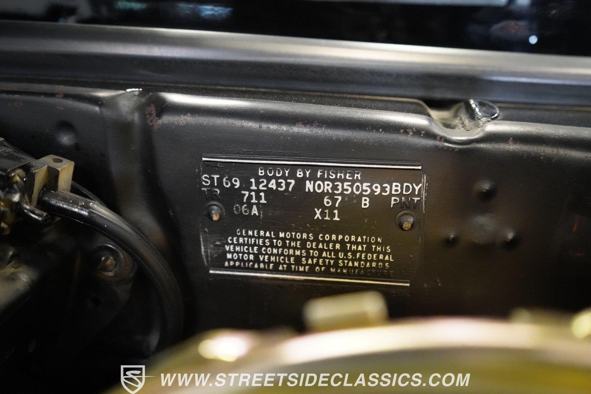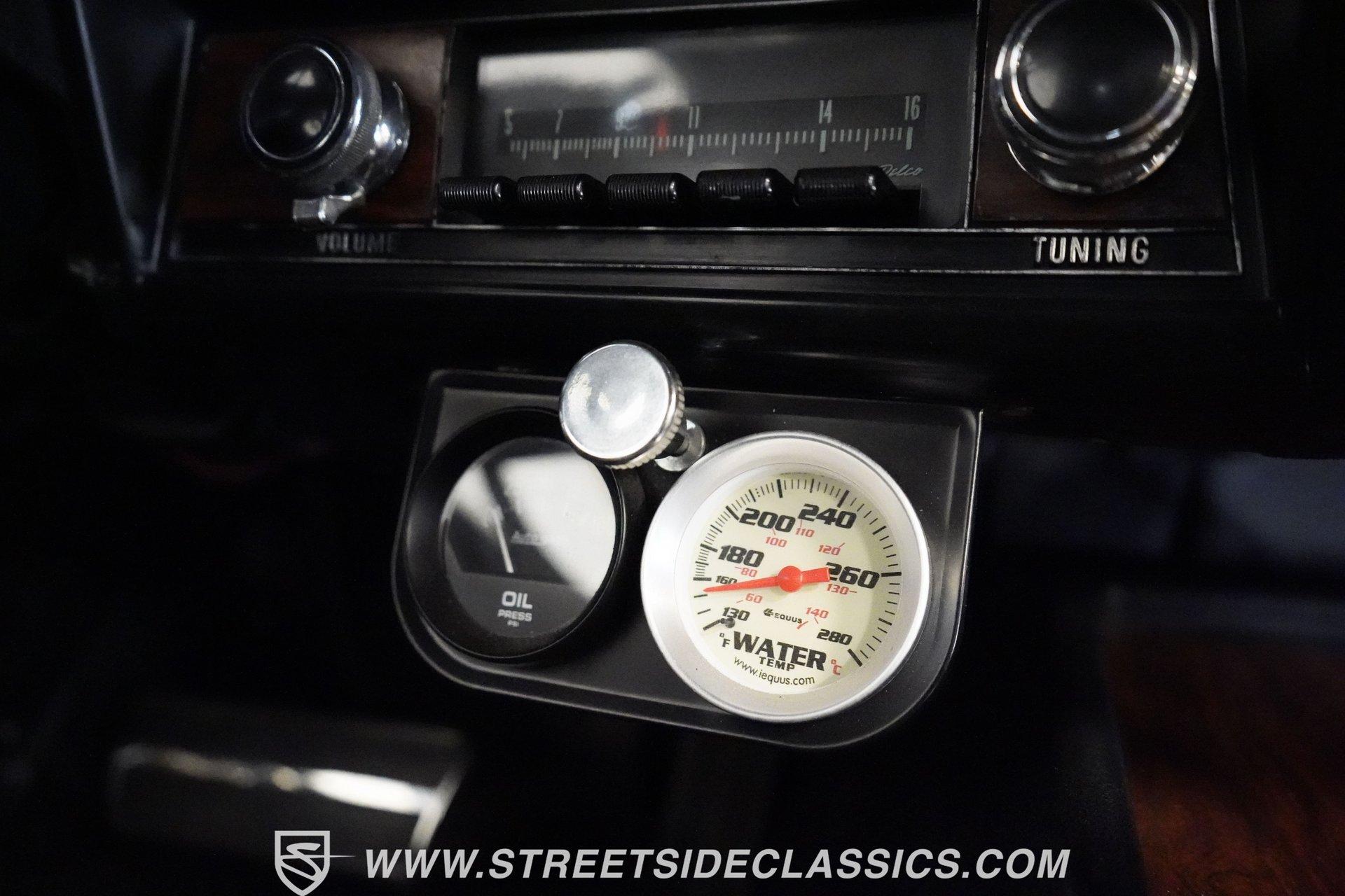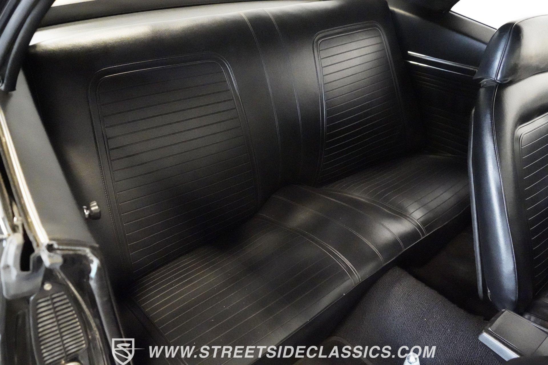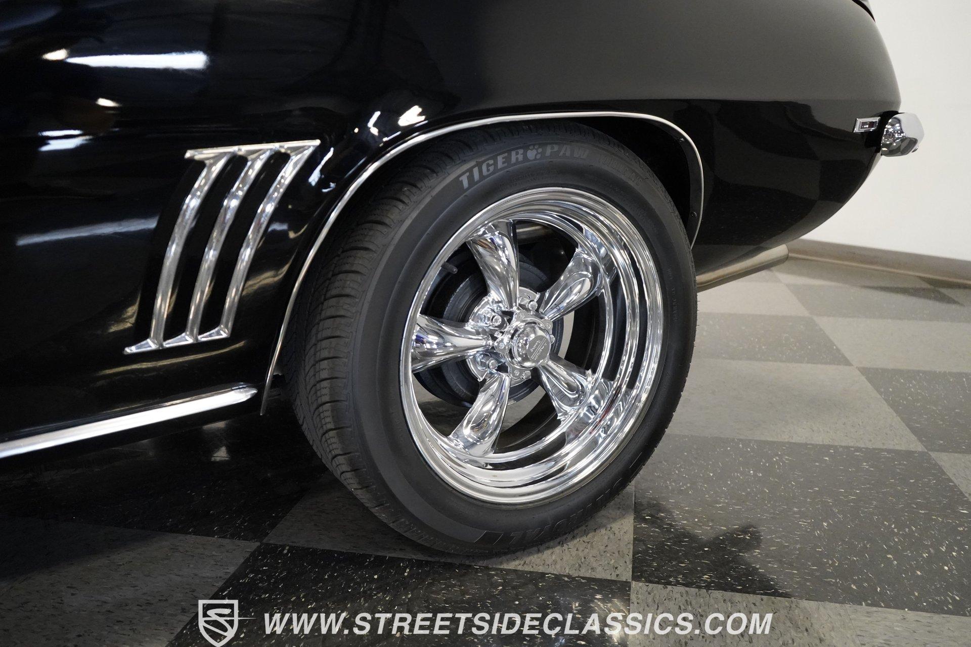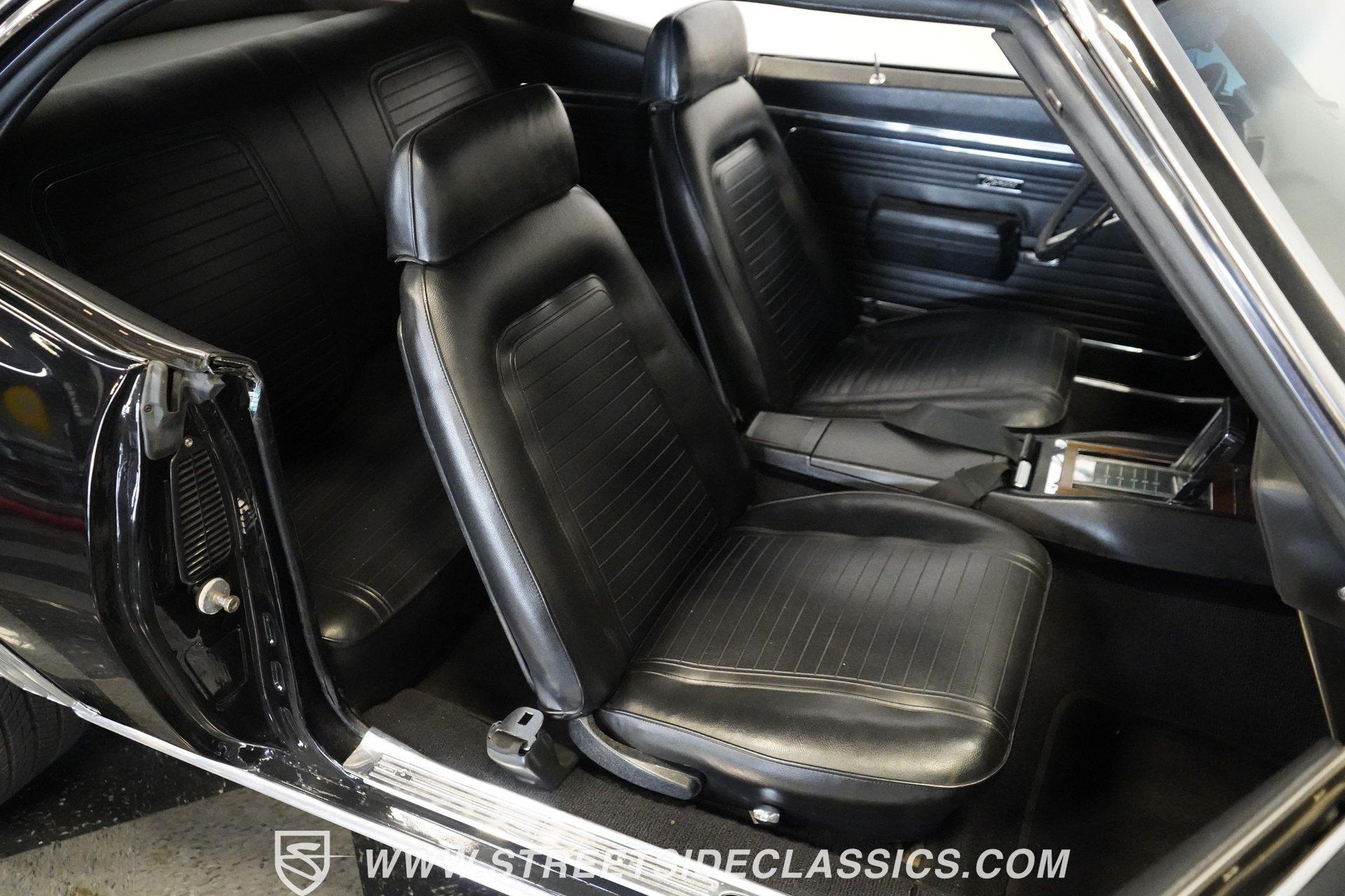 Powerful and menacing, the 1969 Chevrolet Camaro RS wears a sleek black exterior accented by dual gray stripes that run from front to back. Showing an incredibly low 71,392 actual miles, this triple-black machine features unique RS styling with distinctive headlight louvers in the grille, an RS decklid badge, strategically placed fog lights, and an athletic chin spoiler. A mild cowl hood adds visual punch while the small rear spoiler completes the look. Chrome American Racing wheels in staggered 17/18-inch sizes fill the wheel wells perfectly against the black paint. Opening the door reveals an exceptionally preserved black interior with high-back vinyl bucket seats that display classic ladder stitching, complemented by matching black door panels throughout the cabin. Additional instrumentation includes strategically mounted oil pressure and water temperature gauges positioned below the radio for quick viewing. The original floor shifter rises from the center console, while the modern Holley Sniper EFI control unit integrates cleanly into the ashtray location for easy adjustments without disrupting the factory appearance. When fired up, the 350 cubic inch V8 shows why these low-mileage classics remain so desirable. The orange-painted small block has been enhanced with an Edelbrock performer intake manifold and Holley Sniper electronic fuel injection for excellent drivability. Cooling comes via an aluminum radiator equipped with both mechanical and electric fans for reliability in all conditions. The exhaust flows through shorty headers into a dual MagnaFlow system, while the TH350 three-speed automatic transmission, power steering, and power brakes create an effortless driving experience. HIGHLIGHTS: 350 V8 engine TH350 3-speed automatic transmission Holley Sniper electronic fuel injection Edelbrock performer intake manifold Shorty headers Dual MagnaFlow exhaust Aluminum radiator with mechanical and electric fans Power brakes Black exterior with gray dual stripes RS grille with headlight louvers RS decklid badge Fog lights Chin spoiler Mild cowl hood Small rear spoiler 17" Front/18" Rear Chrome American Racing wheels 235/45R17 Front, 245/50R18 Rear Uniroyal Tigerpaw Touring A/S tires Black vinyl roof Black interior with High-back bucket seats Center console Floor shifter Power steering Oil pressure/water temperature gauges 71,392 ACTUAL MILES Low-mileage muscle cars with documented actual miles are increasingly rare today. With only 71,392 original miles, this 1969 Chevrolet Camaro RS combines classic good looks, excellent drivability from upgraded fuel injection, and an unmistakable presence on the road. The black-on-black-on-black color scheme will never go out of style. Call today!