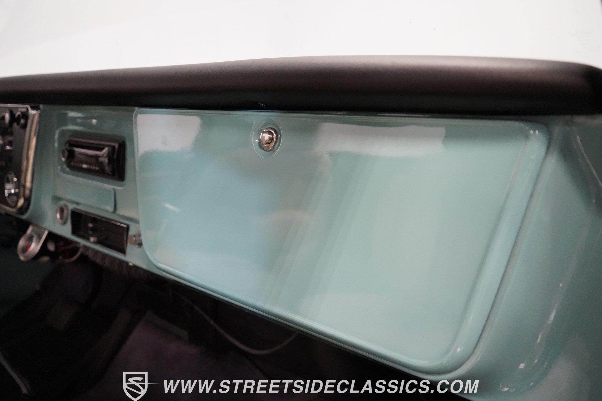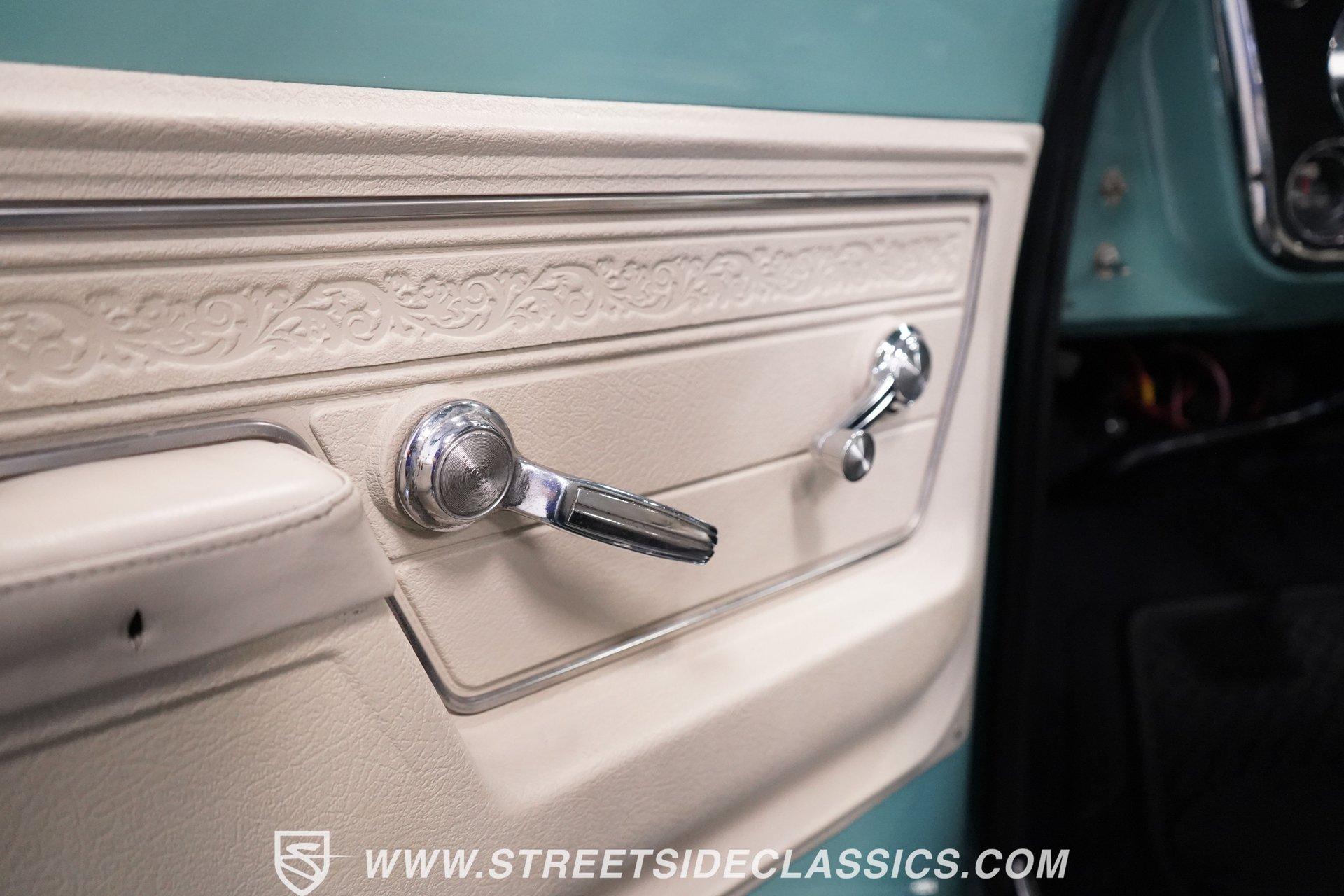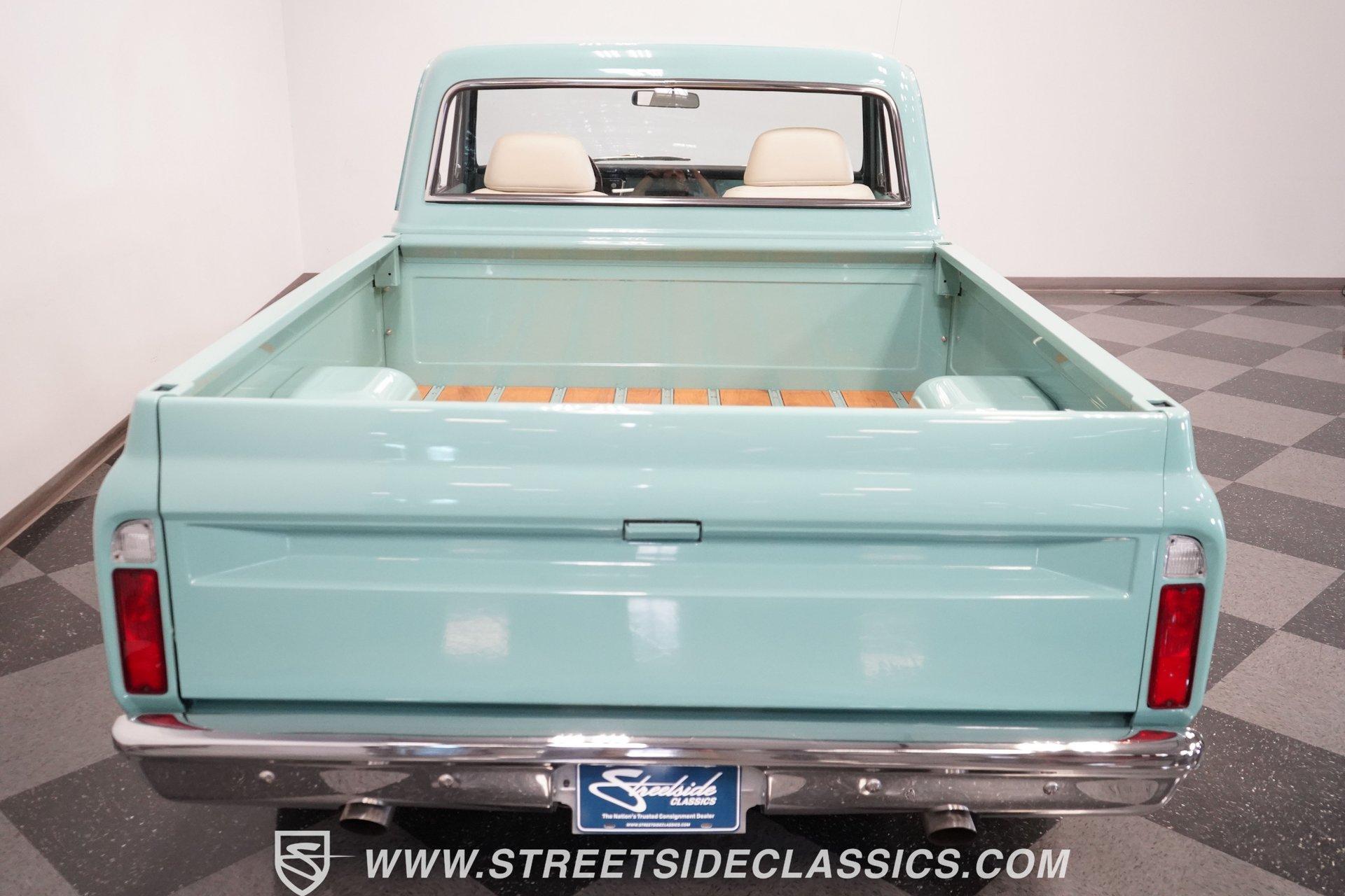 There's something about Mint Green on a classic pickup that makes it hard to ignore. This 1967 Chevrolet C10 comes finished in Mint Green, laid over a full repaint that gives the body a smooth, even finish front to back. Chrome 20-inch US Mags bring in extra width and fill out the stance. Tire sizing is staggered, with 245/45R20 up front and 285/50R20 in the rear. The front and rear suspension setup gives it a planted look, and all the trim and glass hold consistent with the truck's clean street style. Inside, this C10 features later-model bucket seats finished in white vinyl, paired with a black carpet for contrast. There's a floor-mounted shifter, and a tilt steering column adds some legroom where it counts. A CD stereo system is in place, equipped with satellite and aux input, keeping music duty easy. The cabin layout is straightforward with everything where it should be. Power steering adds ease to the effort without changing the original layout or vibe. Power comes from a 350 V8 paired with a 4-speed automatic transmission. A 4-barrel carburetor and performance intake top the motor, and long tube headers feed into a dual exhaust system with chambered mufflers. Power front disc brakes help slow things down, and the rear runs a 12-bolt axle. The front suspension is independent with coil springs, shocks, and a sway bar. Out back, it's a solid axle with control arms, coil springs, and air shocks. The overall setup feels cohesive. HIGHLIGHTS 350 V8 engine 4-speed automatic transmission 4-barrel carburetor Performance intake Power front disc brakes Long tube headers Dual exhaust with chambered mufflers Independent front suspension with coil springs, shocks, sway bar Solid rear axle with control arms, coil springs, air shocks 12-bolt rear axle Mint Green paint 20" Chrome US Mags wheels with 245/45R20 front, 285/50R20 rear tires White vinyl bucket seats CD stereo with SAT and AUX input Floor-mounted Lokar shifter Tilt steering column Power steering This 1967 Chevrolet C10 brings together a sharp look, solid powertrain, and all the right upgrades to make it a standout street truck. With its bold color, staggered wheels, and dialed stance, it's the kind of build that hits all the marks without trying too hard. Call today!