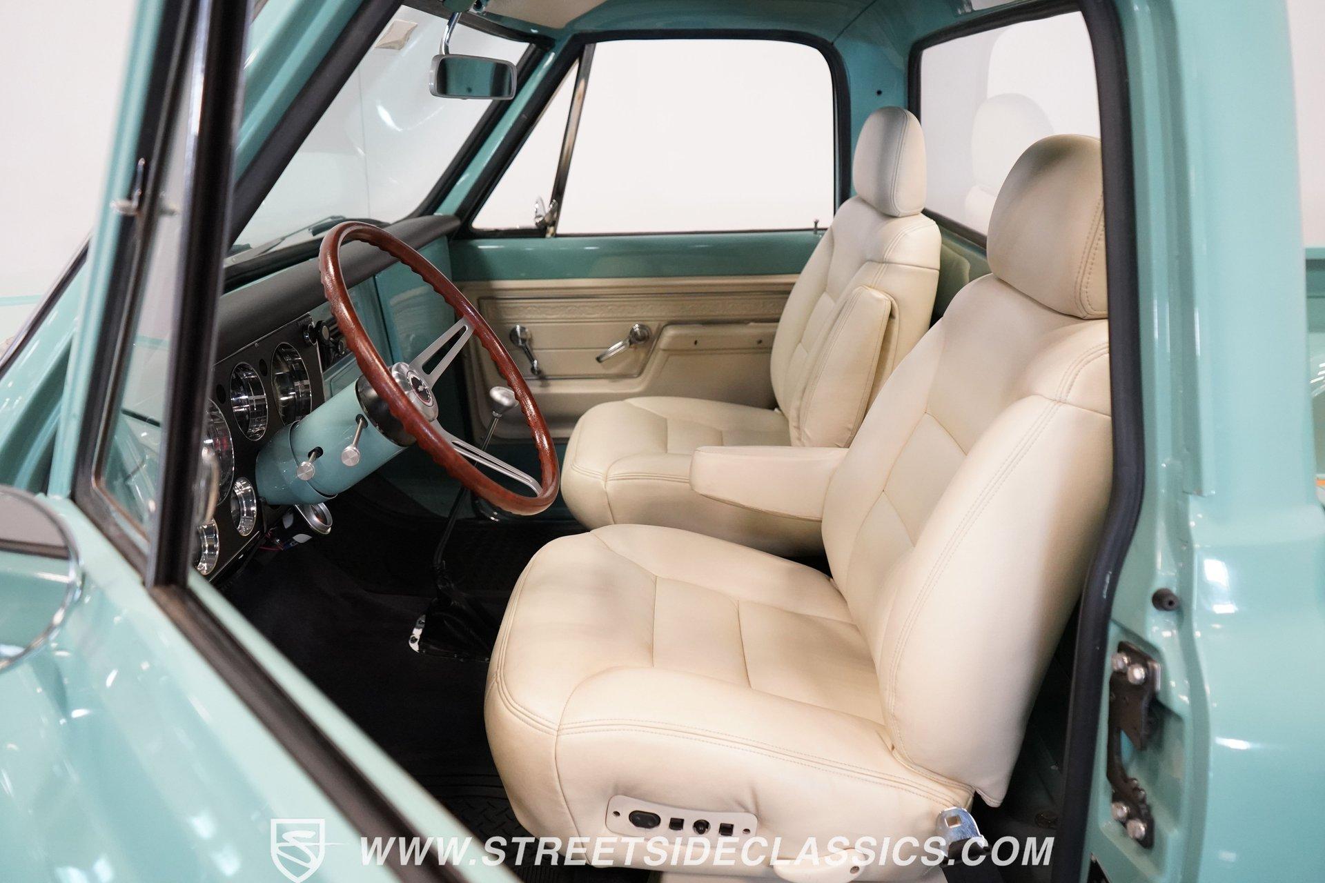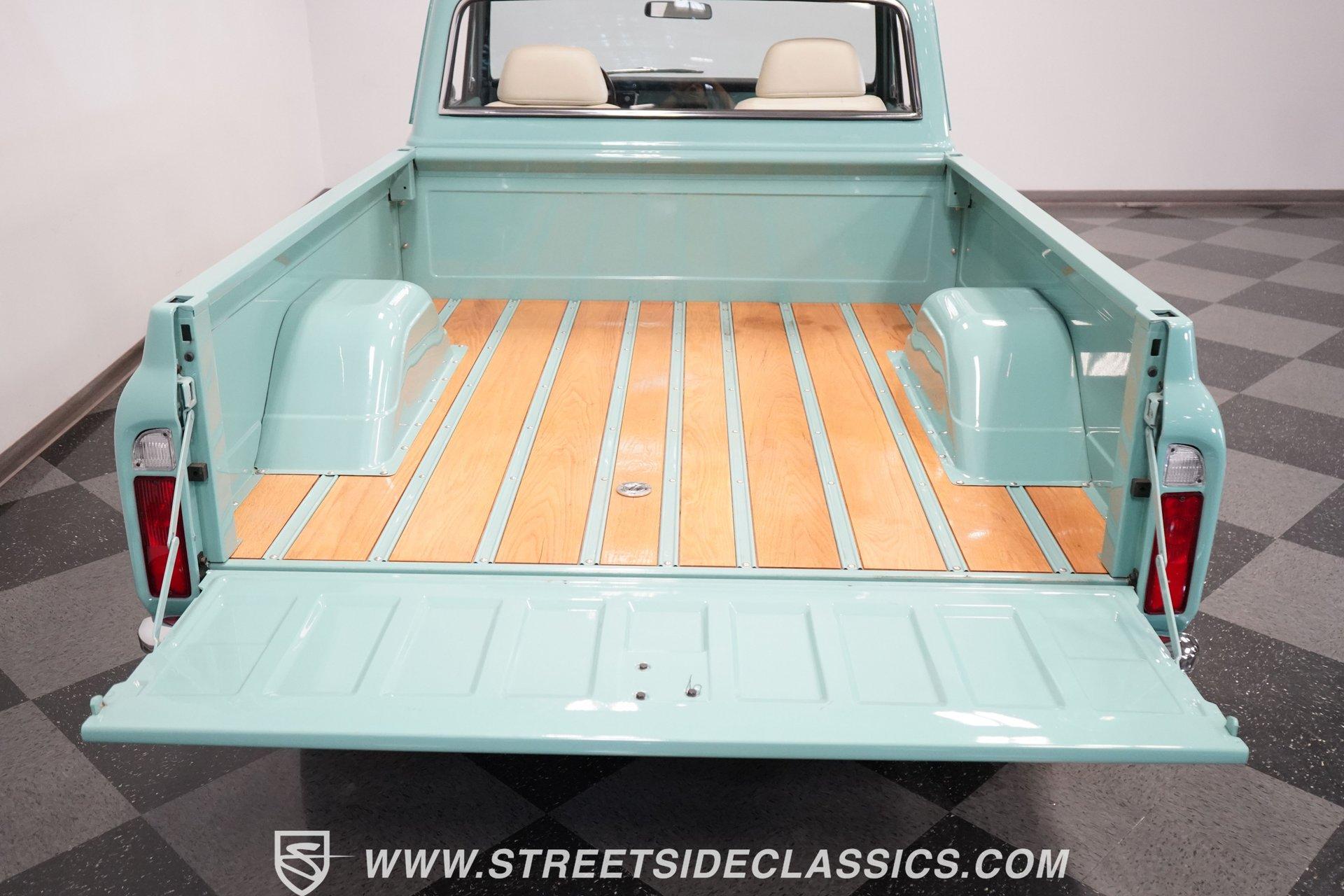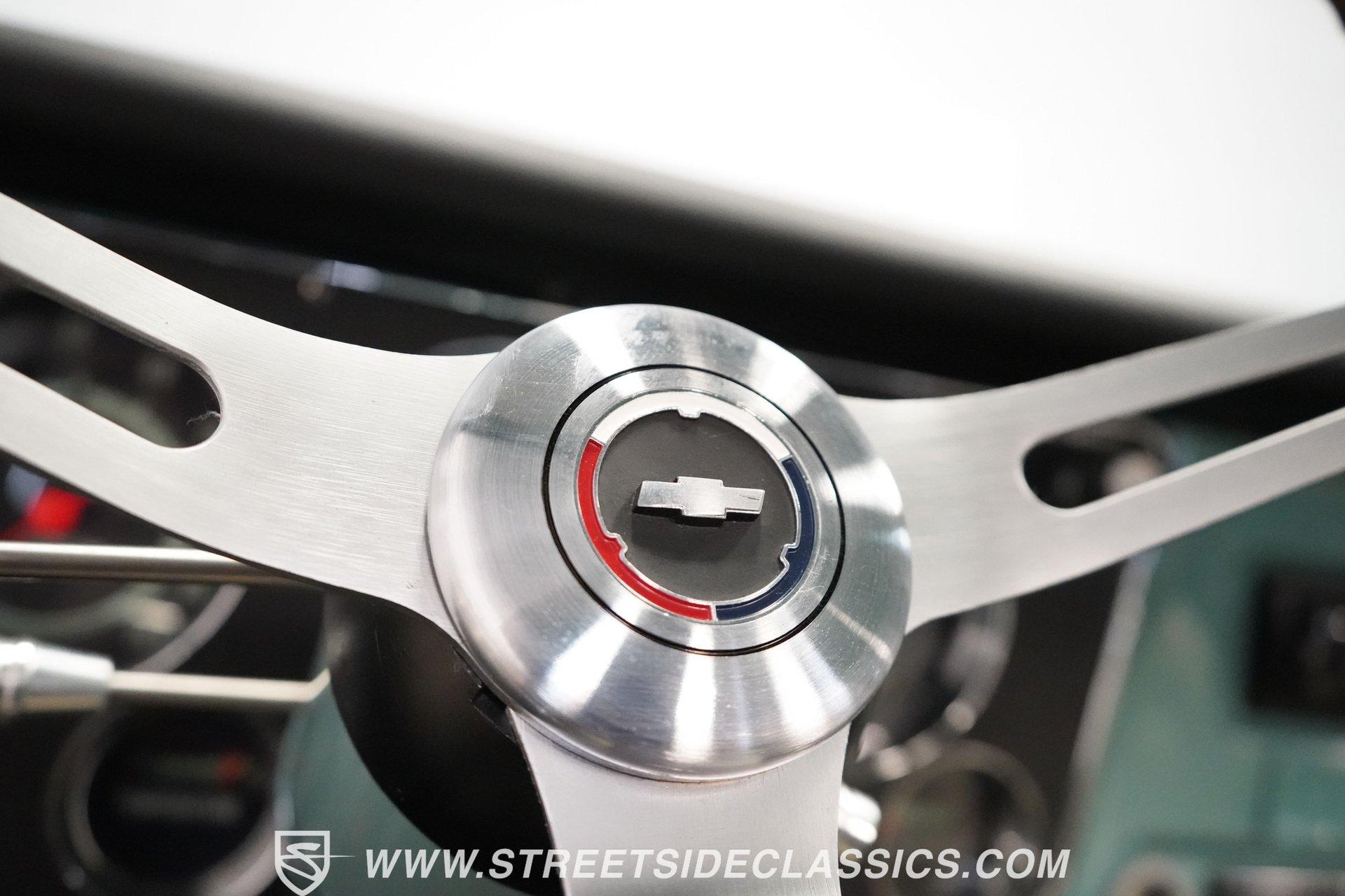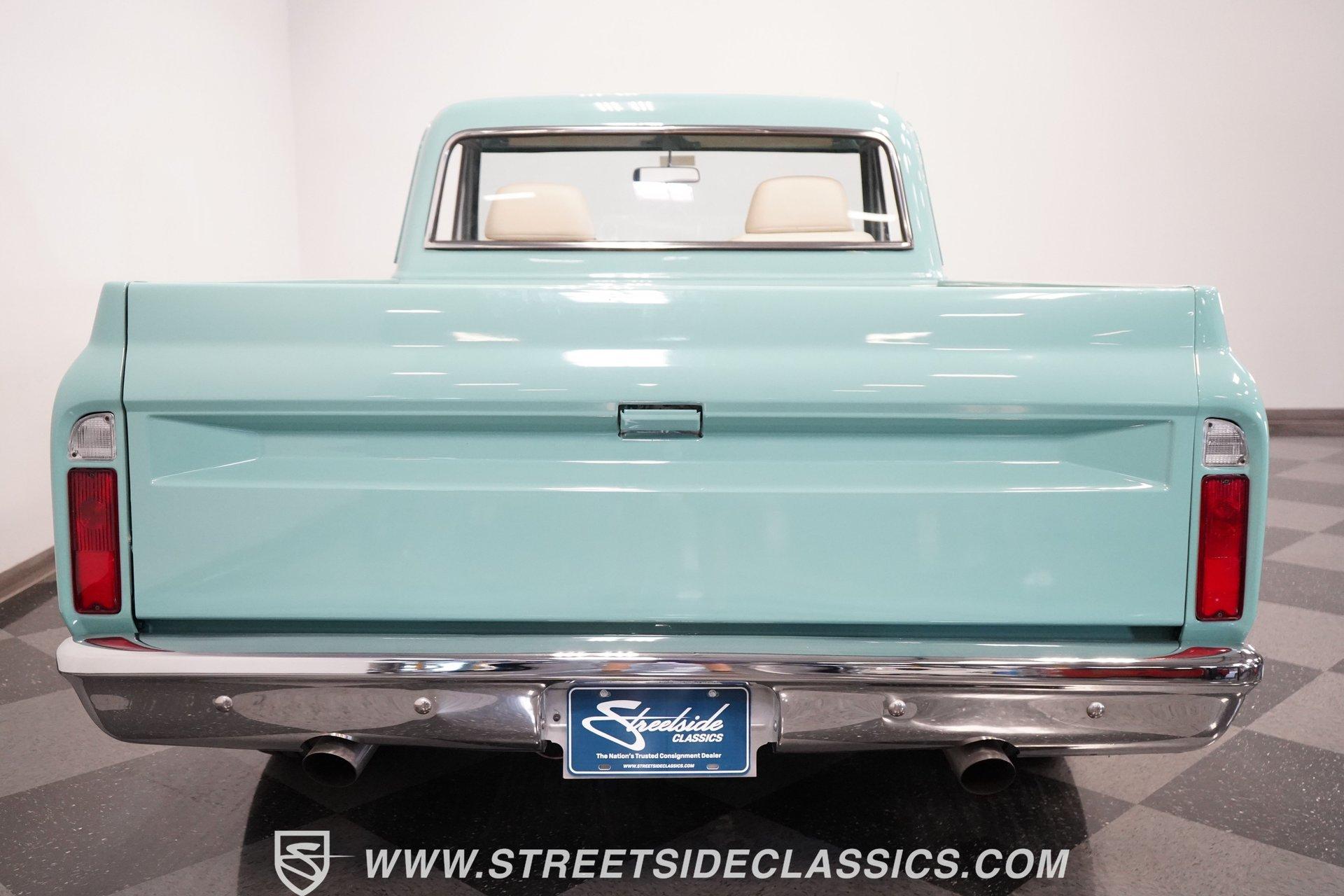There's something about Mint Green on a classic pickup that makes it hard to ignore. This 1967 Chevrolet C10 comes finished in Mint Green, laid over a full repaint that gives the body a smooth, even finish front to back. Chrome 20-inch US Mags bring in extra width and fill out the stance. Tire sizing is staggered, with 245/45R20 up front and 285/50R20 in the rear. The front and rear suspension setup gives it a planted look, and all the trim and glass hold consistent with the truck's clean street style. Inside, this C10 features later-model bucket seats finished in white vinyl, paired with a black carpet for contrast. There's a floor-mounted shifter, and a tilt steering column adds some legroom where it counts. A CD stereo system is in place, equipped with satellite and aux input, keeping music duty easy. The cabin layout is straightforward with everything where it should be. Power steering adds ease to the effort without changing the original layout or vibe. Power comes from a 350 V8 paired with a 4-speed automatic transmission. A 4-barrel carburetor and performance intake top the motor, and long tube headers feed into a dual exhaust system with chambered mufflers. Power front disc brakes help slow things down, and the rear runs a 12-bolt axle. The front suspension is independent with coil springs, shocks, and a sway bar. Out back, it's a solid axle with control arms, coil springs, and air shocks. The overall setup feels cohesive. HIGHLIGHTS 350 V8 engine 4-speed automatic transmission 4-barrel carburetor Performance intake Power front disc brakes Long tube headers Dual exhaust with chambered mufflers Independent front suspension with coil springs, shocks, sway bar Solid rear axle with control arms, coil springs, air shocks 12-bolt rear axle Mint Green paint 20" Chrome US Mags wheels with 245/45R20 front, 285/50R20 rear tires White vinyl bucket seats CD stereo with SAT and AUX input Floor-mounted Lokar shifter Tilt steering column Power steering This 1967 Chevrolet C10 brings together a sharp look, solid powertrain, and all the right upgrades to make it a standout street truck. With its bold color, staggered wheels, and dialed stance, it's the kind of build that hits all the marks without trying too hard. Call today!