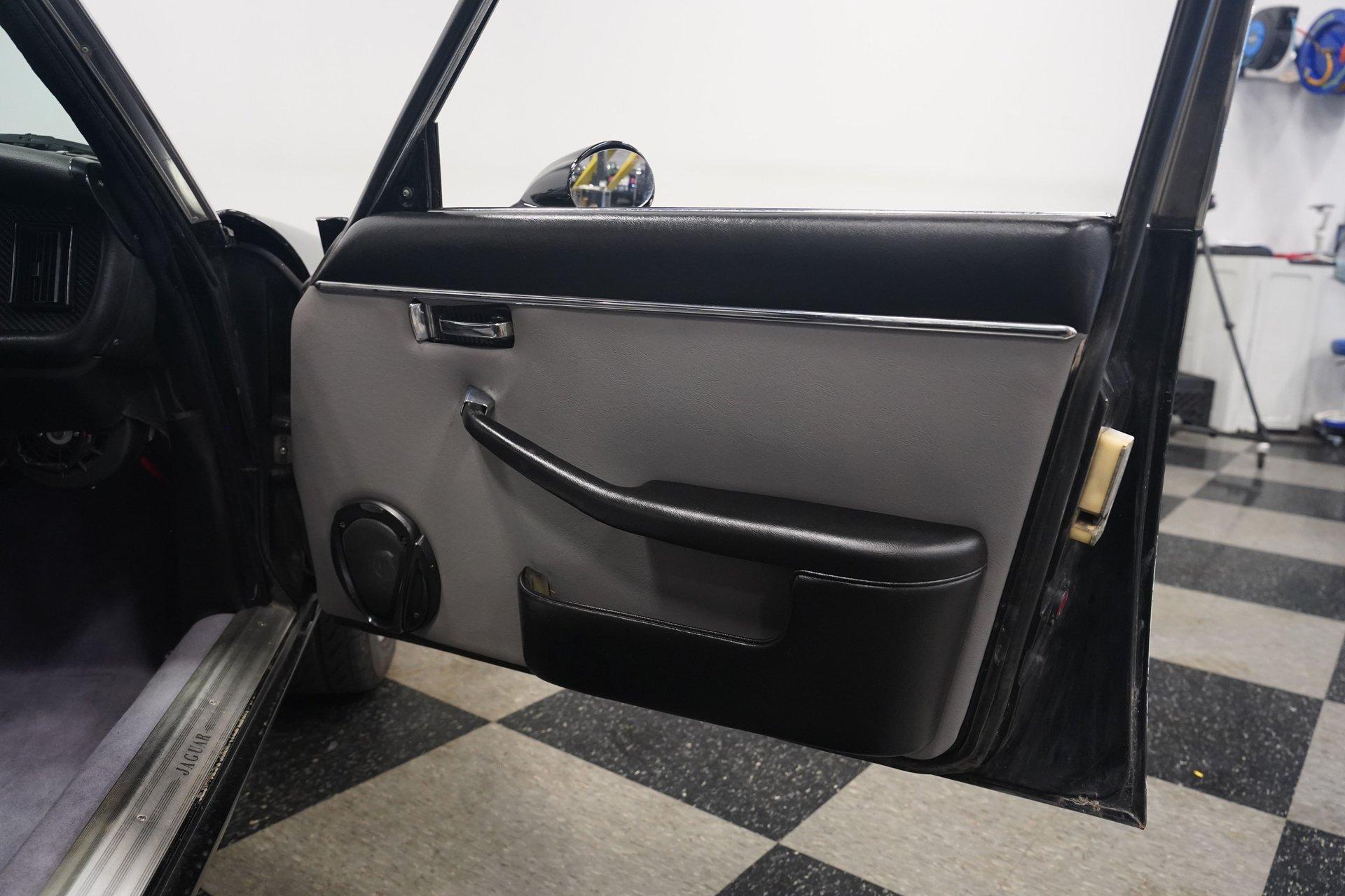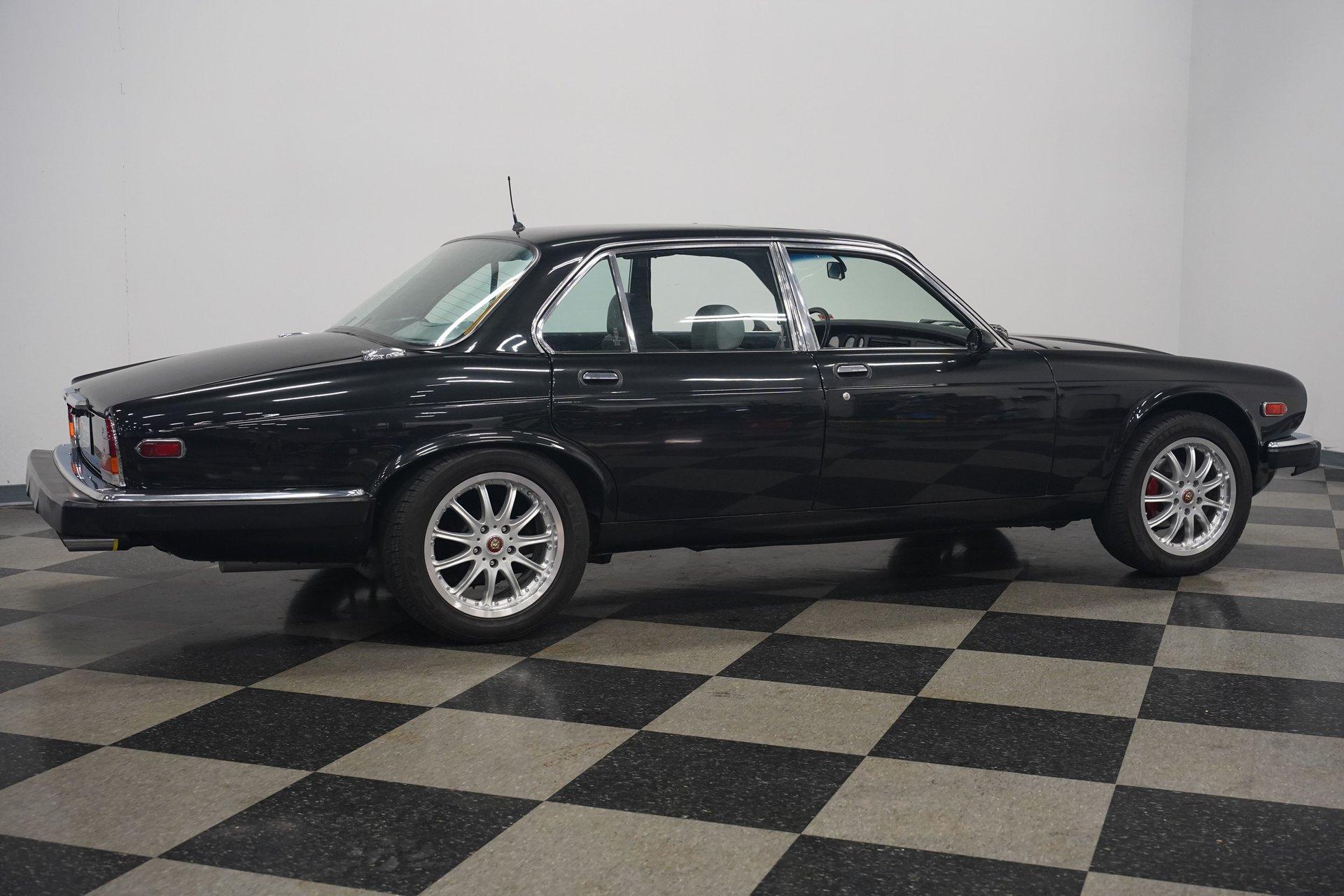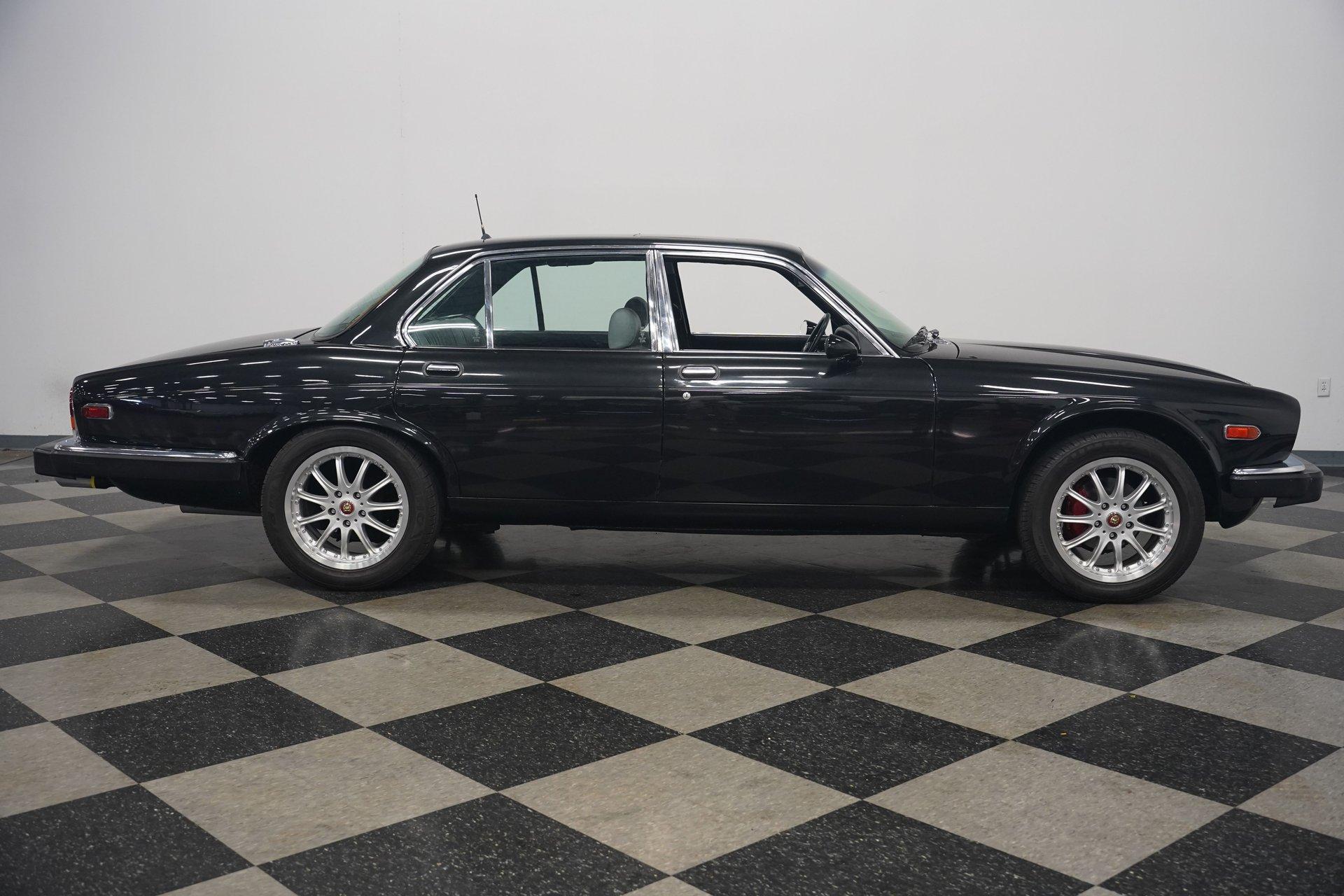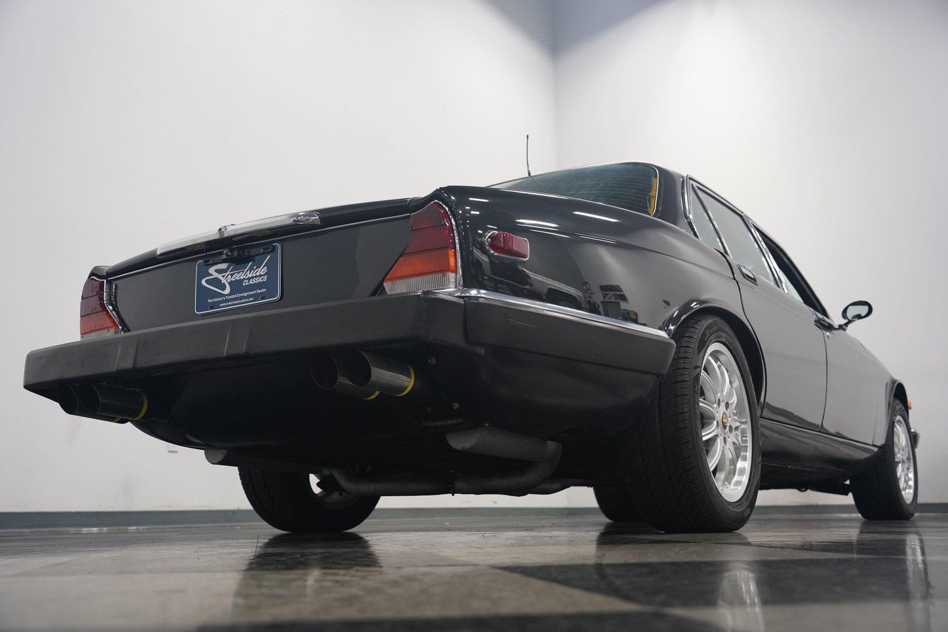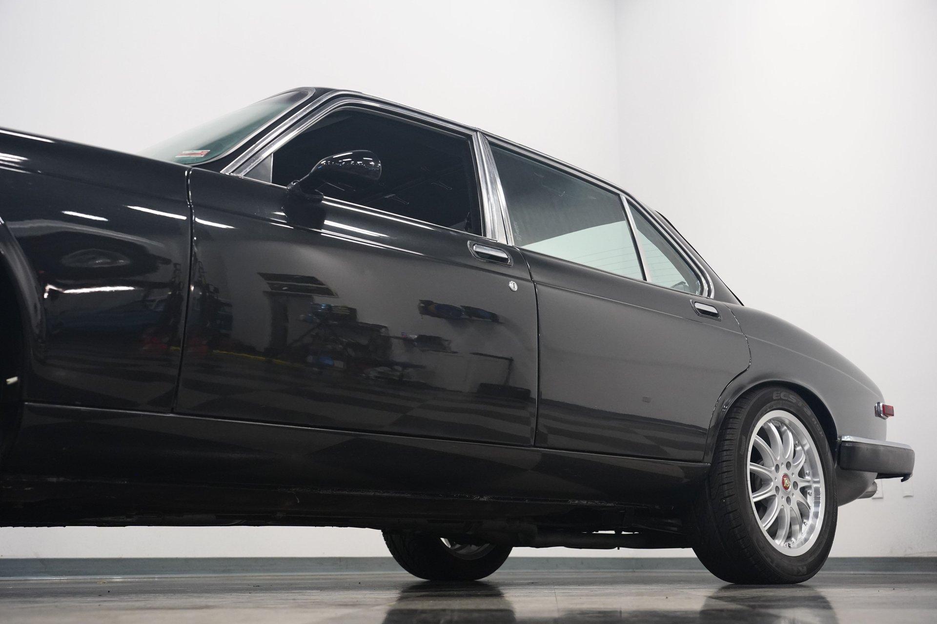 British luxury fused with American muscle - that's what makes this 1983 Jaguar XJ6 Restomod special. Finished in sleek Maraschino Black, this sedan sports a classic silhouette with updated details. The slender proportions gain athletic presence from 17" wheels originally designed for a newer Jaguar XK8. Aerodynamic, color-matched side mirrors enhance the profile while maintaining elegant symmetry. With 235/50R17 tires (dated 2006) and dual exhaust outlets, this big cat signals its performance potential without saying a word. Warm and inviting, the Biscuit-colored interior welcomes passengers with comfort and style. Vinyl-recovered seats show well and maintain their original shape. Entertainment options include a Pyle head unit with aux/USB input plus a flip-up DVD player for additional media choices. The luxury continues with power windows, power locks, and a telescopic wheel that adjusts for optimal driving position. When weather permits, the sunroof opens to allow fresh air circulation throughout the cabin. Mechanical magic happens with the mid-90s 5.7 Liter TPI V8 (Corvette LT1) now residing where Jaguar's inline-six once lived. Connected to a 4-speed 4L60E automatic transmission, this powertrain transforms the driving dynamics completely. A Flowmaster exhaust system with Hedman X-pipe produces deep, authoritative sound. Four-wheel power disc brakes supply abundant stopping capability. The stock Jaguar suspension - coil springs, shocks, and sway bars - maintains excellent ride quality while handling the increased output from the American V8. HIGHLIGHTS: 5.7 Liter TPI V8 Engine (Corvette LT1) 4 Speed 4L60E Automatic Transmission Electronic Fuel Injection Flowmaster Dual Exhaust Hedman X-Pipe Cold Air Intake Four Wheel Disc Brakes Maraschino Black Paint 17" Jaguar XK8 Style Wheels 235/50R17 Tires Aerodynamic Color-Matched Side Mirrors Sunroof Biscuit Interior With Bucket Seats Power Windows Power Locks Telescopic Wheel Power Steering AM/FM Radio CD Player, Flip-Up DVD Player Air Conditioning American fusion done right - this 1983 Jaguar XJ6 Restomod offers Corvette LT1 V8 power, overdrive automatic transmission, and stunning Maraschino Black over Biscuit color scheme. A perfect blend of British sophistication and American performance awaits your garage. Call today!