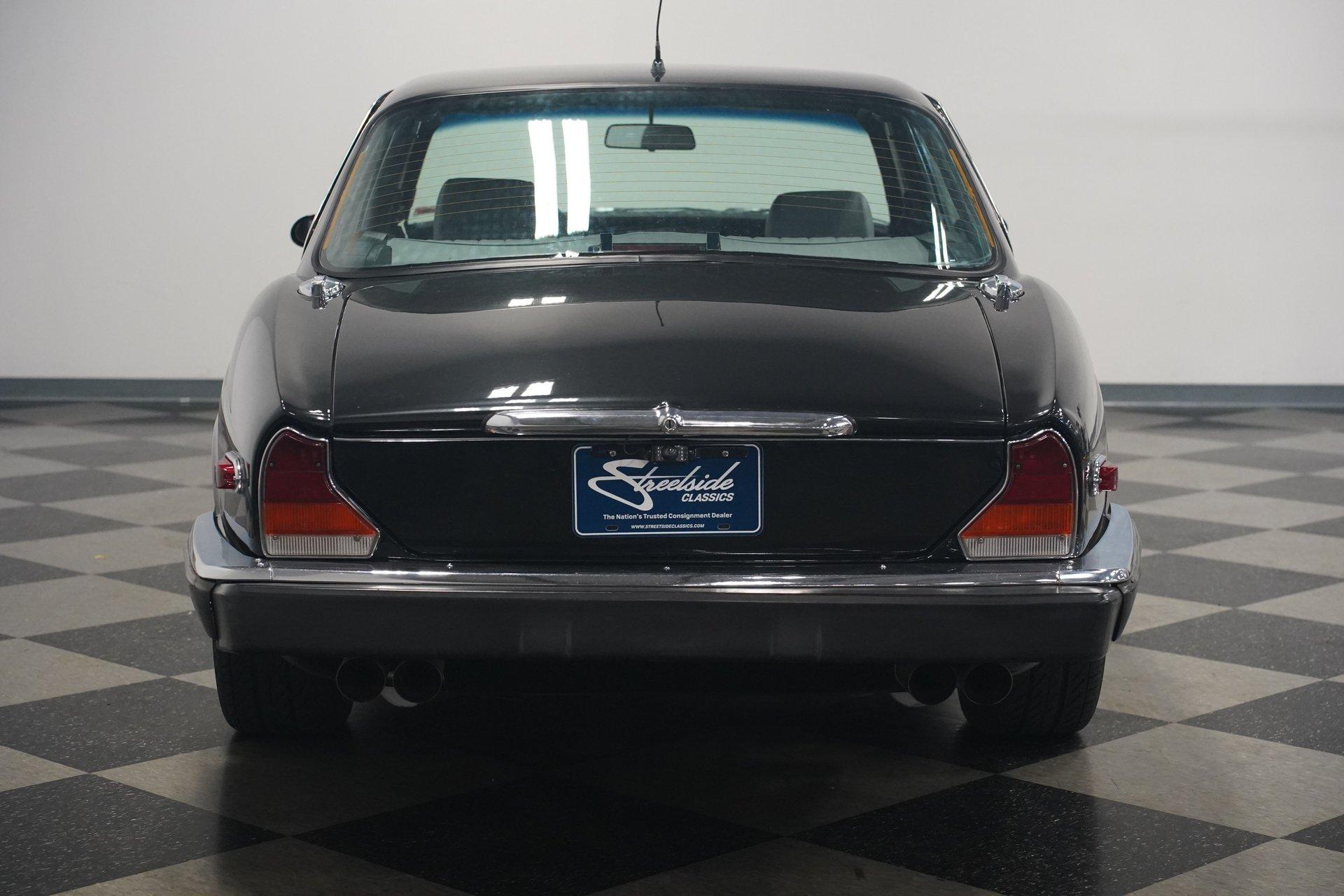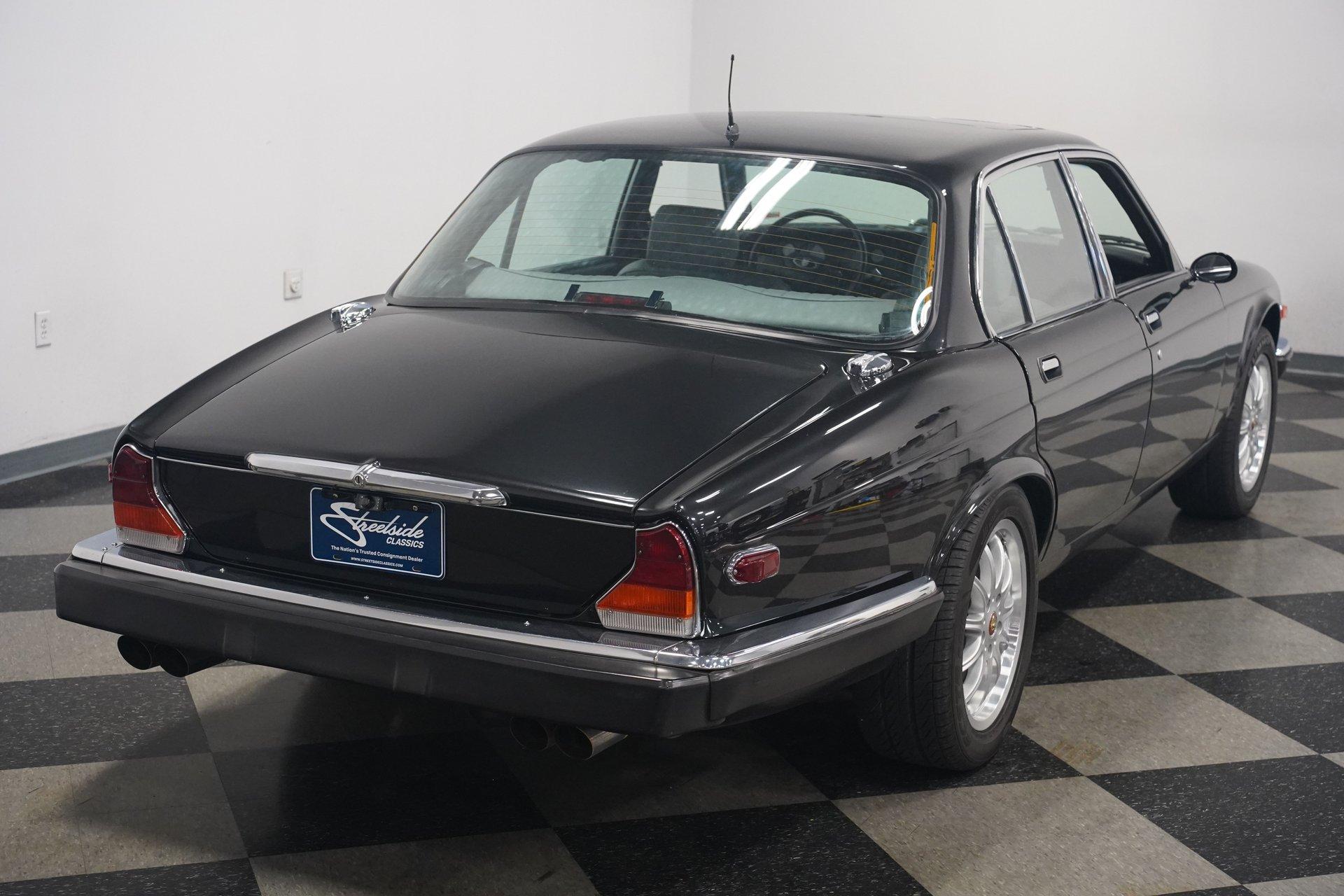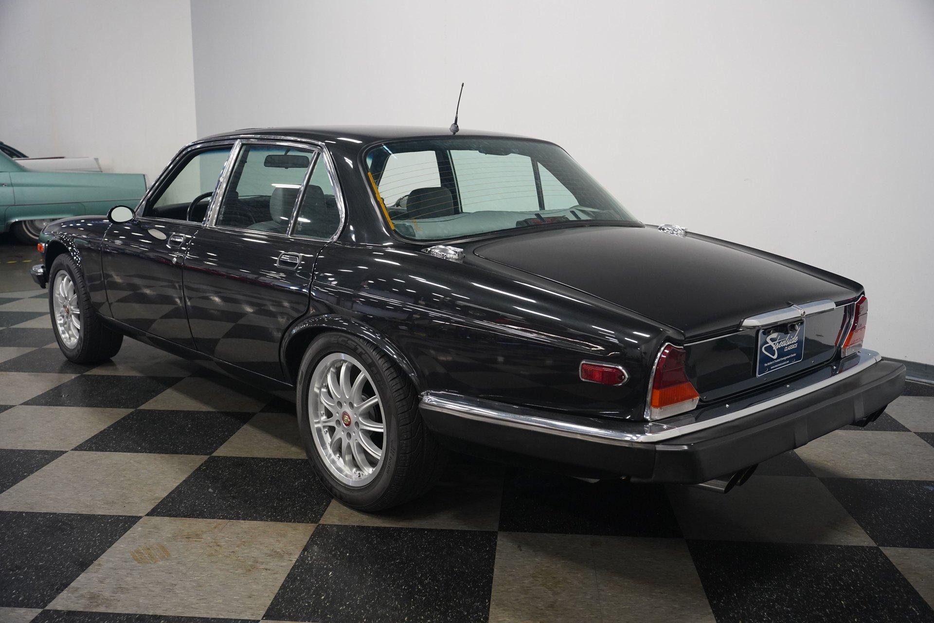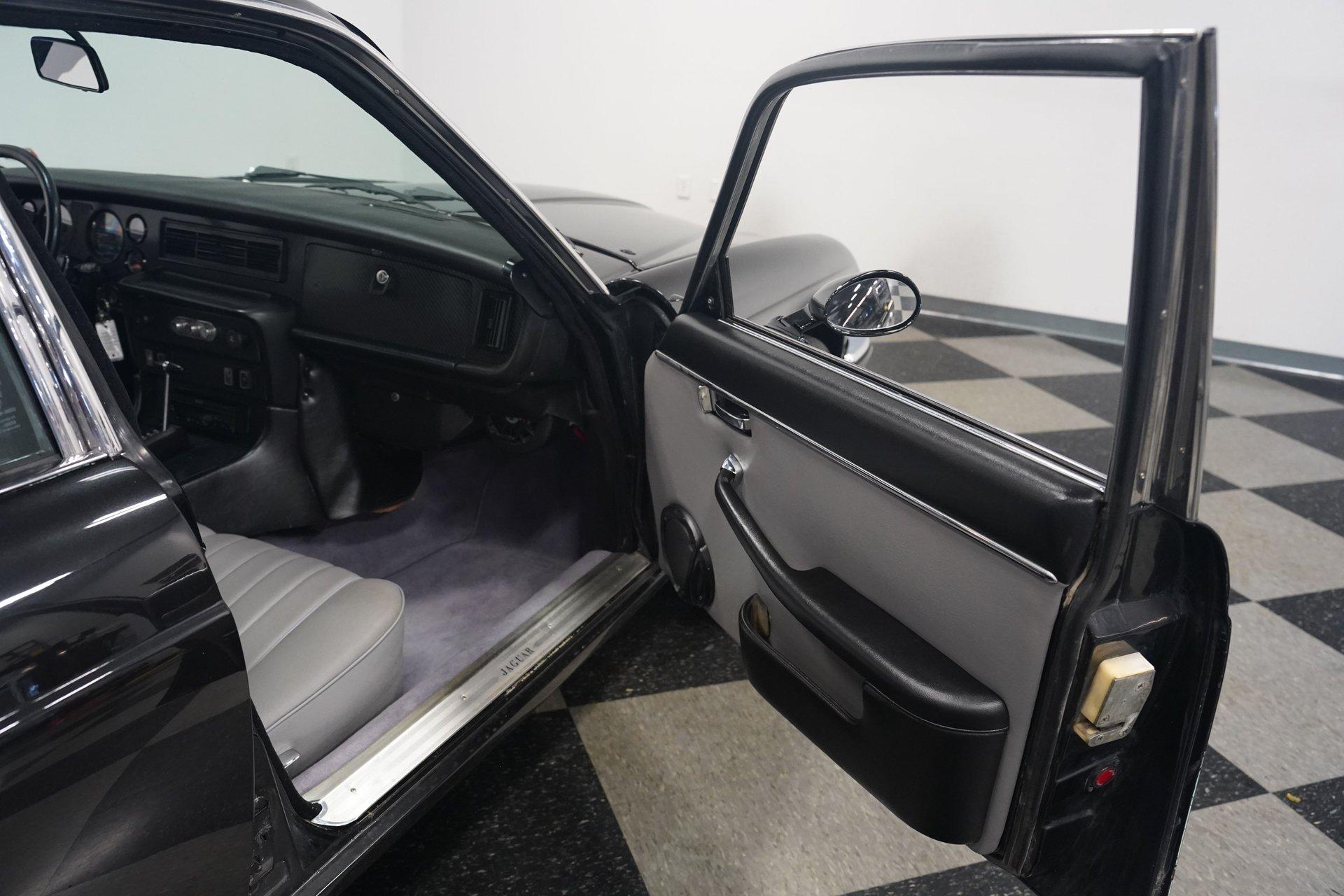 British luxury fused with American muscle - that's what makes this 1983 Jaguar XJ6 Restomod special. Finished in sleek Maraschino Black, this sedan sports a classic silhouette with updated details. The slender proportions gain athletic presence from 17" wheels originally designed for a newer Jaguar XK8. Aerodynamic, color-matched side mirrors enhance the profile while maintaining elegant symmetry. With 235/50R17 tires (dated 2006) and dual exhaust outlets, this big cat signals its performance potential without saying a word. Warm and inviting, the Biscuit-colored interior welcomes passengers with comfort and style. Vinyl-recovered seats show well and maintain their original shape. Entertainment options include a Pyle head unit with aux/USB input plus a flip-up DVD player for additional media choices. The luxury continues with power windows, power locks, and a telescopic wheel that adjusts for optimal driving position. When weather permits, the sunroof opens to allow fresh air circulation throughout the cabin. Mechanical magic happens with the mid-90s 5.7 Liter TPI V8 (Corvette LT1) now residing where Jaguar's inline-six once lived. Connected to a 4-speed 4L60E automatic transmission, this powertrain transforms the driving dynamics completely. A Flowmaster exhaust system with Hedman X-pipe produces deep, authoritative sound. Four-wheel power disc brakes supply abundant stopping capability. The stock Jaguar suspension - coil springs, shocks, and sway bars - maintains excellent ride quality while handling the increased output from the American V8. HIGHLIGHTS: 5.7 Liter TPI V8 Engine (Corvette LT1) 4 Speed 4L60E Automatic Transmission Electronic Fuel Injection Flowmaster Dual Exhaust Hedman X-Pipe Cold Air Intake Four Wheel Disc Brakes Maraschino Black Paint 17" Jaguar XK8 Style Wheels 235/50R17 Tires Aerodynamic Color-Matched Side Mirrors Sunroof Biscuit Interior With Bucket Seats Power Windows Power Locks Telescopic Wheel Power Steering AM/FM Radio CD Player, Flip-Up DVD Player Air Conditioning American fusion done right - this 1983 Jaguar XJ6 Restomod offers Corvette LT1 V8 power, overdrive automatic transmission, and stunning Maraschino Black over Biscuit color scheme. A perfect blend of British sophistication and American performance awaits your garage. Call today!