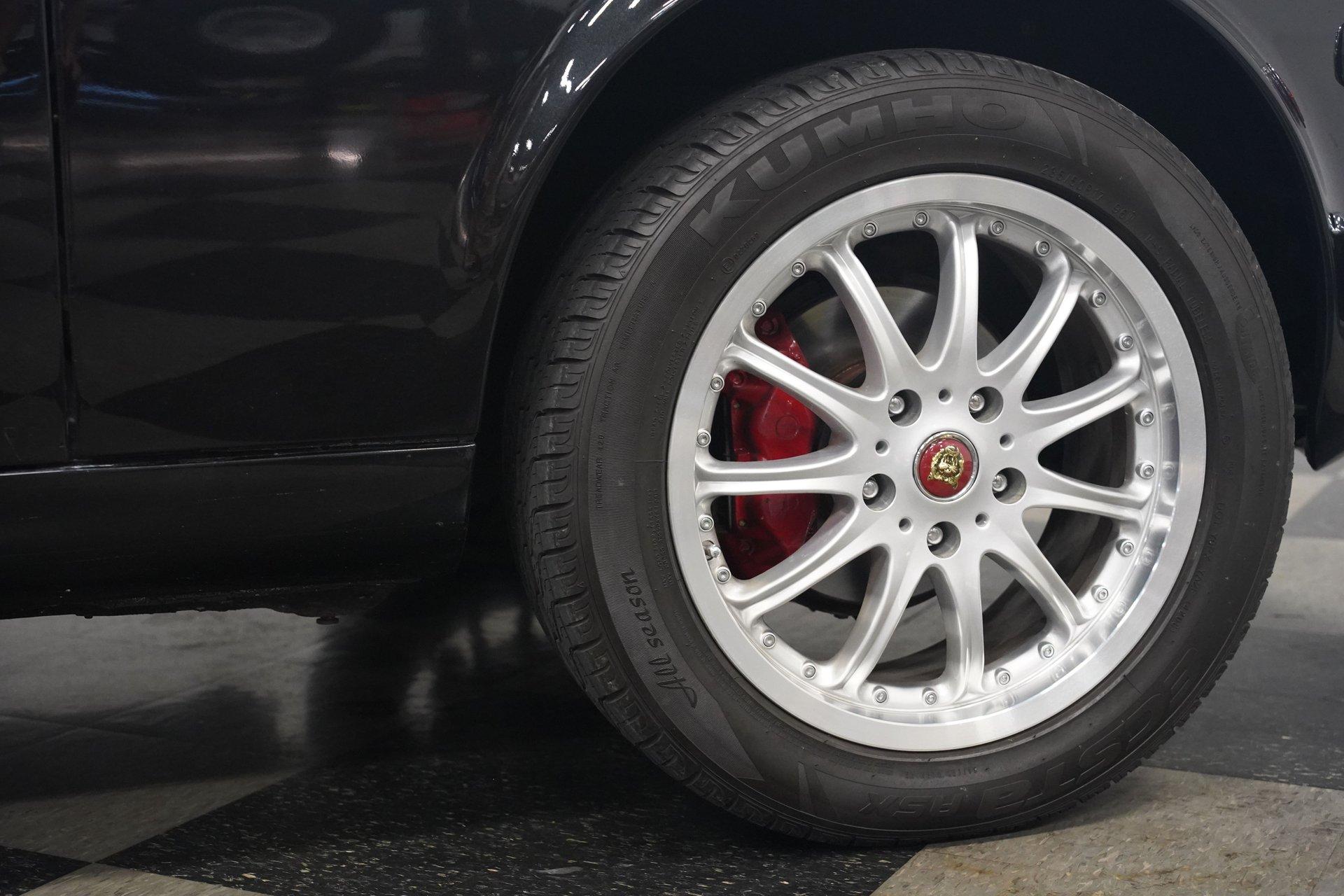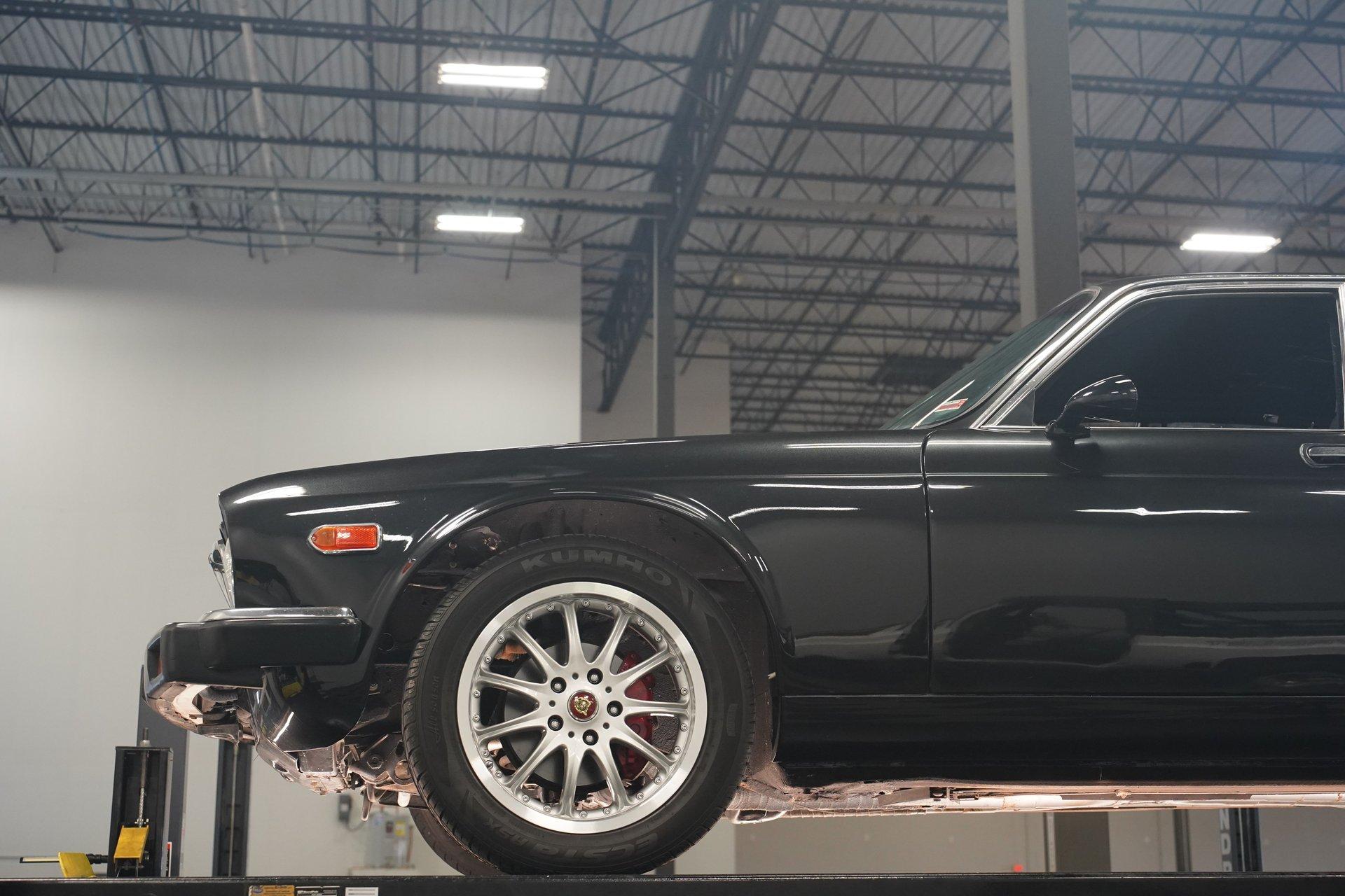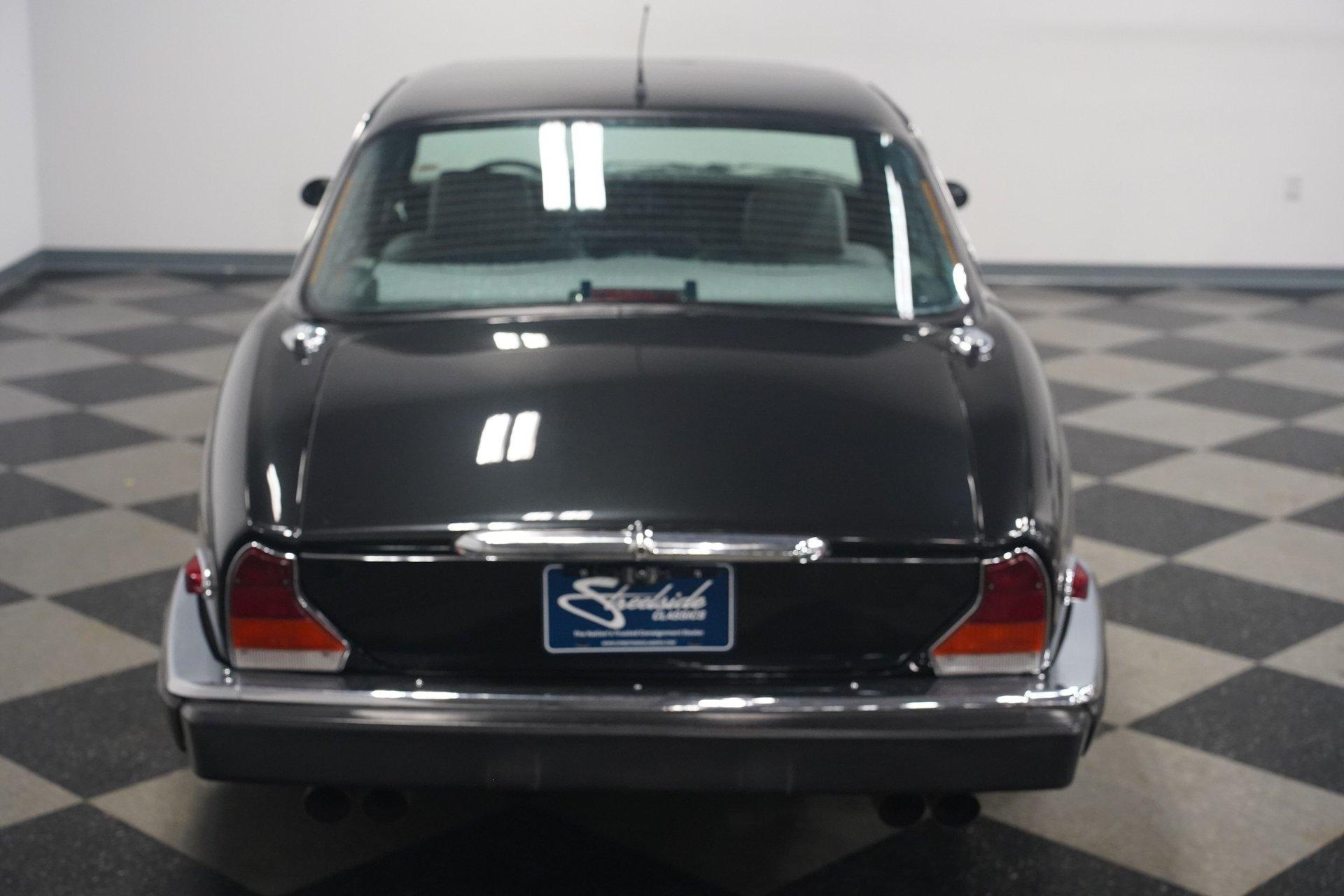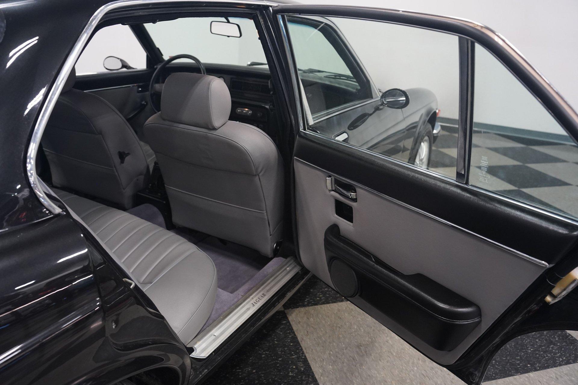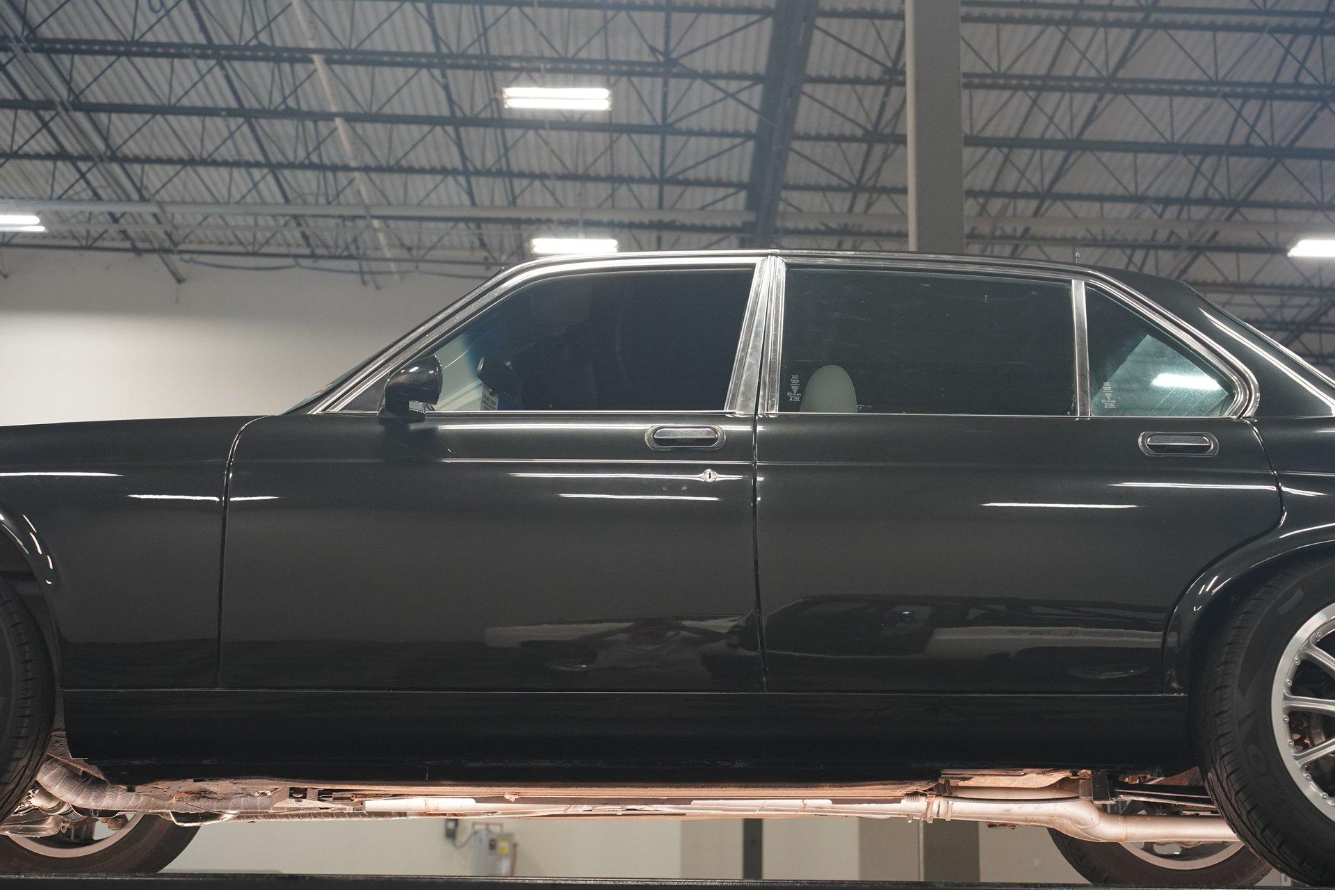 British luxury fused with American muscle - that's what makes this 1983 Jaguar XJ6 Restomod special. Finished in sleek Maraschino Black, this sedan sports a classic silhouette with updated details. The slender proportions gain athletic presence from 17" wheels originally designed for a newer Jaguar XK8. Aerodynamic, color-matched side mirrors enhance the profile while maintaining elegant symmetry. With 235/50R17 tires (dated 2006) and dual exhaust outlets, this big cat signals its performance potential without saying a word. Warm and inviting, the Biscuit-colored interior welcomes passengers with comfort and style. Vinyl-recovered seats show well and maintain their original shape. Entertainment options include a Pyle head unit with aux/USB input plus a flip-up DVD player for additional media choices. The luxury continues with power windows, power locks, and a telescopic wheel that adjusts for optimal driving position. When weather permits, the sunroof opens to allow fresh air circulation throughout the cabin. Mechanical magic happens with the mid-90s 5.7 Liter TPI V8 (Corvette LT1) now residing where Jaguar's inline-six once lived. Connected to a 4-speed 4L60E automatic transmission, this powertrain transforms the driving dynamics completely. A Flowmaster exhaust system with Hedman X-pipe produces deep, authoritative sound. Four-wheel power disc brakes supply abundant stopping capability. The stock Jaguar suspension - coil springs, shocks, and sway bars - maintains excellent ride quality while handling the increased output from the American V8. HIGHLIGHTS: 5.7 Liter TPI V8 Engine (Corvette LT1) 4 Speed 4L60E Automatic Transmission Electronic Fuel Injection Flowmaster Dual Exhaust Hedman X-Pipe Cold Air Intake Four Wheel Disc Brakes Maraschino Black Paint 17" Jaguar XK8 Style Wheels 235/50R17 Tires Aerodynamic Color-Matched Side Mirrors Sunroof Biscuit Interior With Bucket Seats Power Windows Power Locks Telescopic Wheel Power Steering AM/FM Radio CD Player, Flip-Up DVD Player Air Conditioning American fusion done right - this 1983 Jaguar XJ6 Restomod offers Corvette LT1 V8 power, overdrive automatic transmission, and stunning Maraschino Black over Biscuit color scheme. A perfect blend of British sophistication and American performance awaits your garage. Call today!