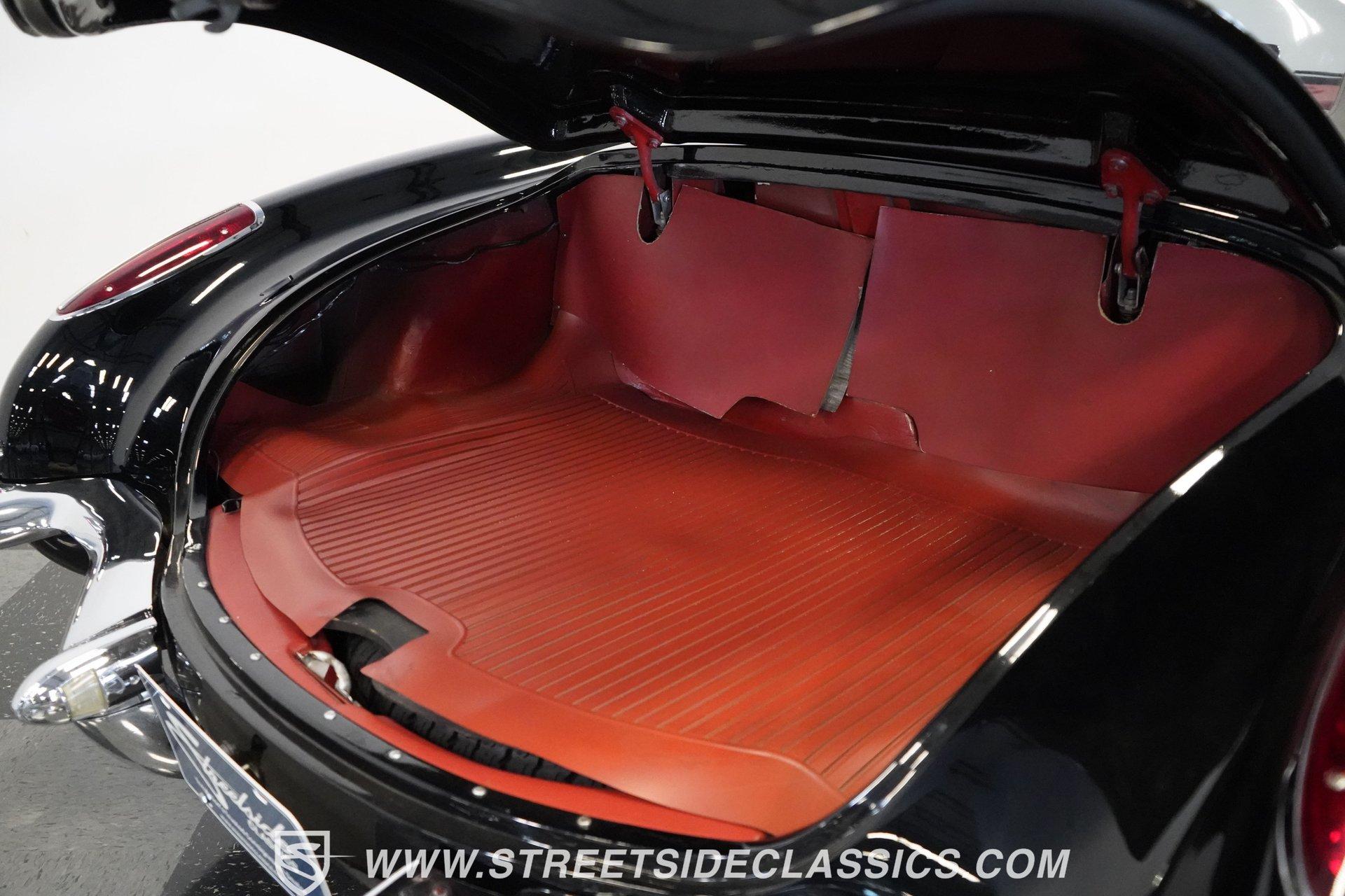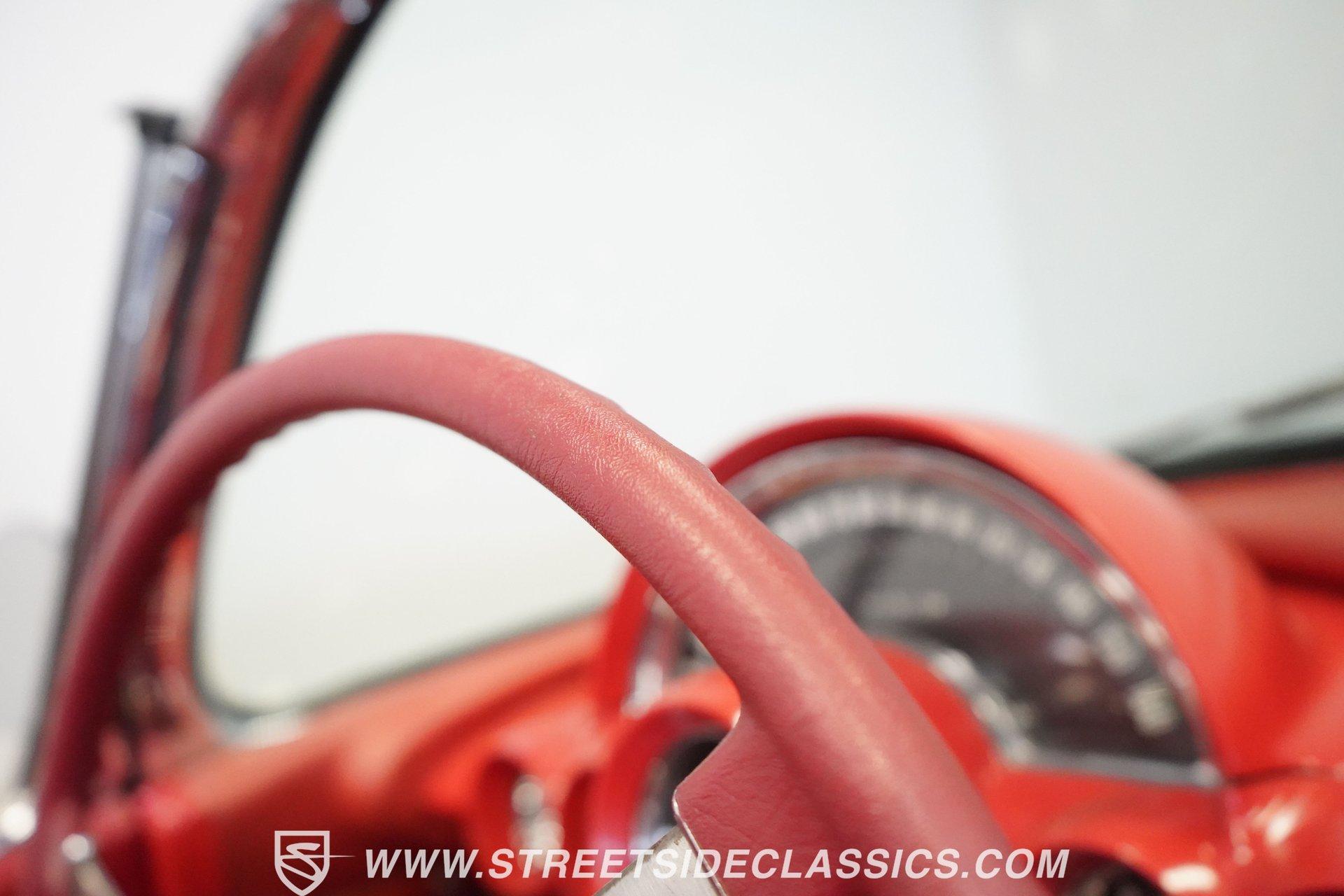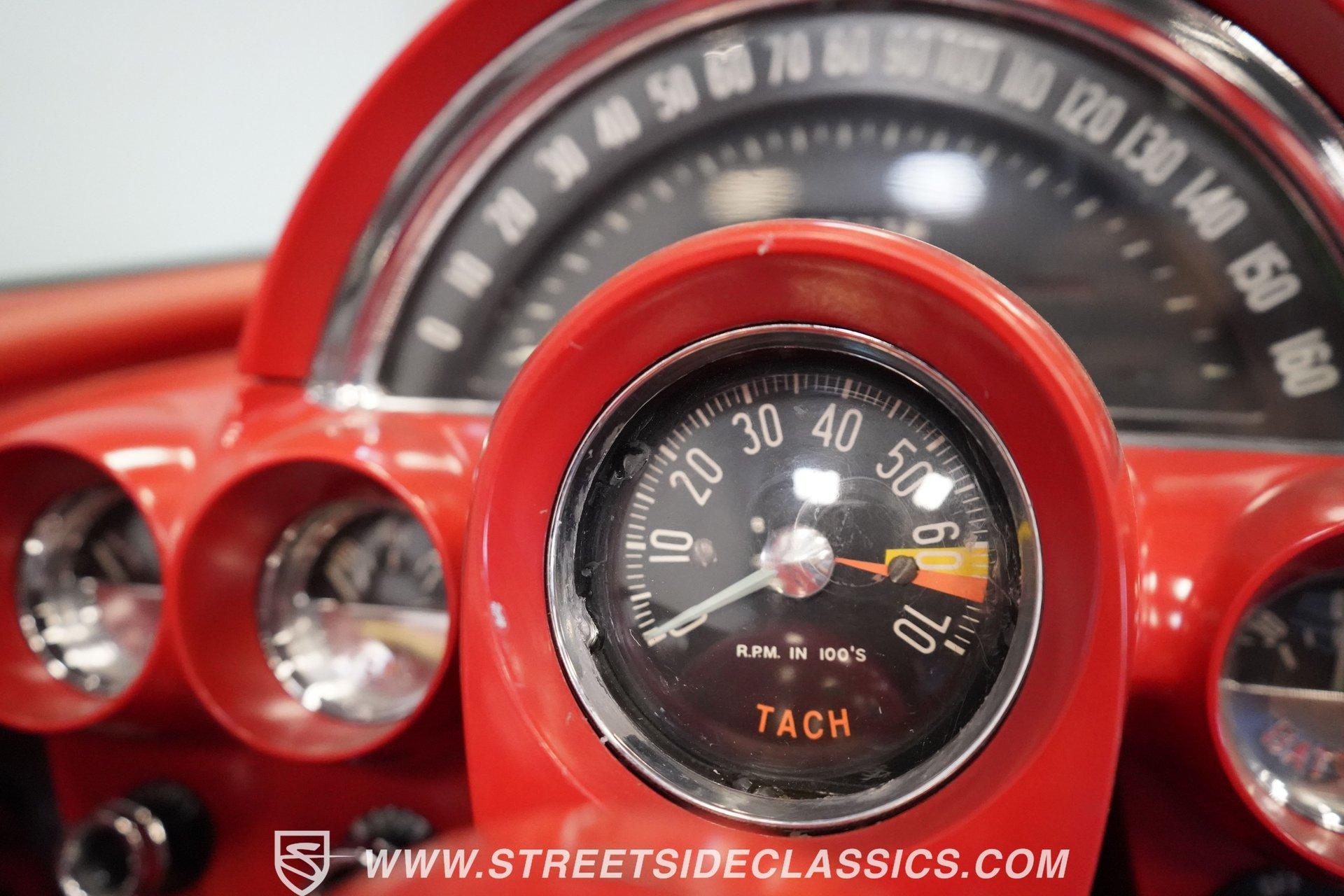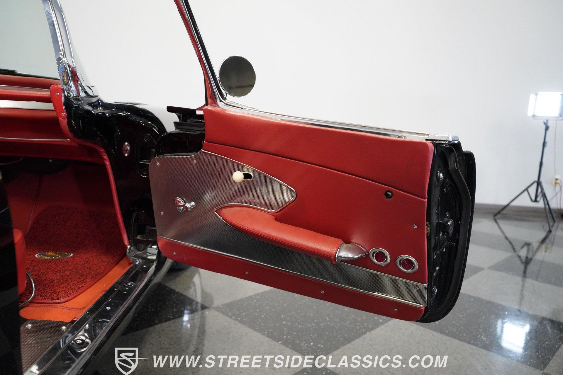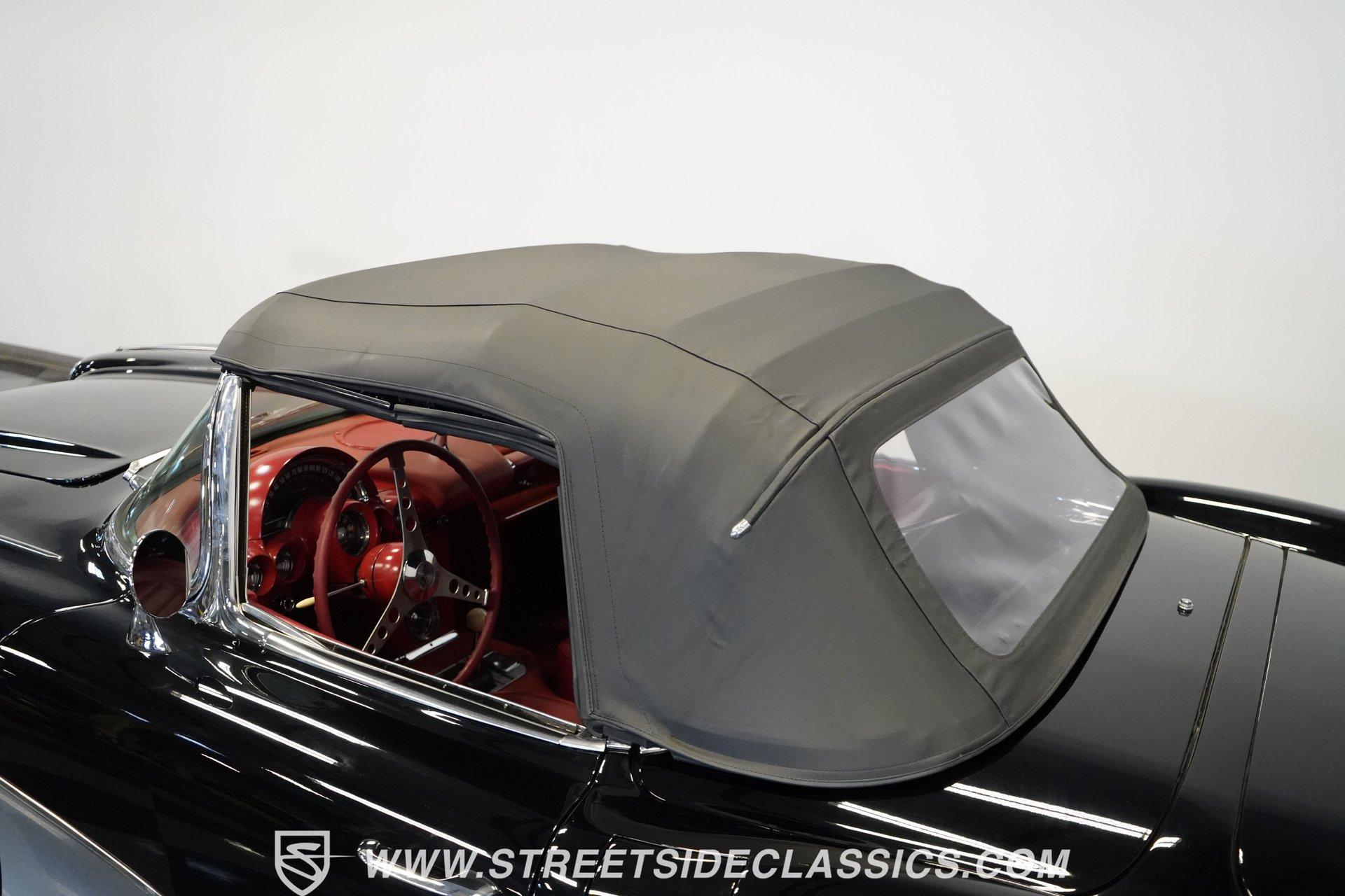 In 1959, Chevrolet cleaned up some of the Corvette's 1958 affectations, getting rid of the waffled hood and the overdone chrome strips on the trunk. Sales remained steady at 9,670, at the base price was $3,875, up about $300 from the year before. Engines for the 1959 Chevrolet Corvette ranged from the base 283-cubic inch V8, with 230 horsepower, to the Rochester fuel-injected 290-horsepower setup. Door panels were redesigned to increase elbow room, instruments were changed to make them more legible, with tachometers now reading to 7,000rpm. A storage bin was added underneath the passenger's grab bar, which was more padded. Four-speed cars now had a "T" shift handle with positive lockout from reverse gear. This handsome restored Corvette is finished strikingly in Tuxedo Black with Inca Silver cove and a black convertible top. The classic styling is complemented by a set of wide whitewall Coker Classic radial tires that appear period correct, but with enhanced drivability. The red interior pops against the Black exterior color and is restored to stock specifications, including the optional factory Wonderbar signal-seeking radio. HIGHLIGHTS: 283 V-8 engine 4-Speed manual transmission Factory 2 4-barrel carburetors Coker Classic wide whitewall radial tires Optional factory Wonderbar radio Fully restored and in excellent condition Desirable Tuxedo Black with Inca Silver cove Red interior Correct spinner wheel covers Hurst shifter Black convertible top Red interior Under the hood is an authentic appearing 283 cubic-inch V8 with optional dual Carter 4-barrel carburetors paired with a 4-speed manual transmission with a Hurst shifter that makes this classic Corvette a pleasure to drive. A pioneering automobile and an icon of American culture, the first-generation Chevrolet Corvette is one of those rare machines that transcends the world of collector cars, drawing in and winning over all who lay eyes on it. A model as usable as it is historically significant, this 1959 Chevrolet Corvette would be just as at home cruising to "cars and coffee" events as it would serving as the cornerstone of a serious collection of American muscle. Call today!