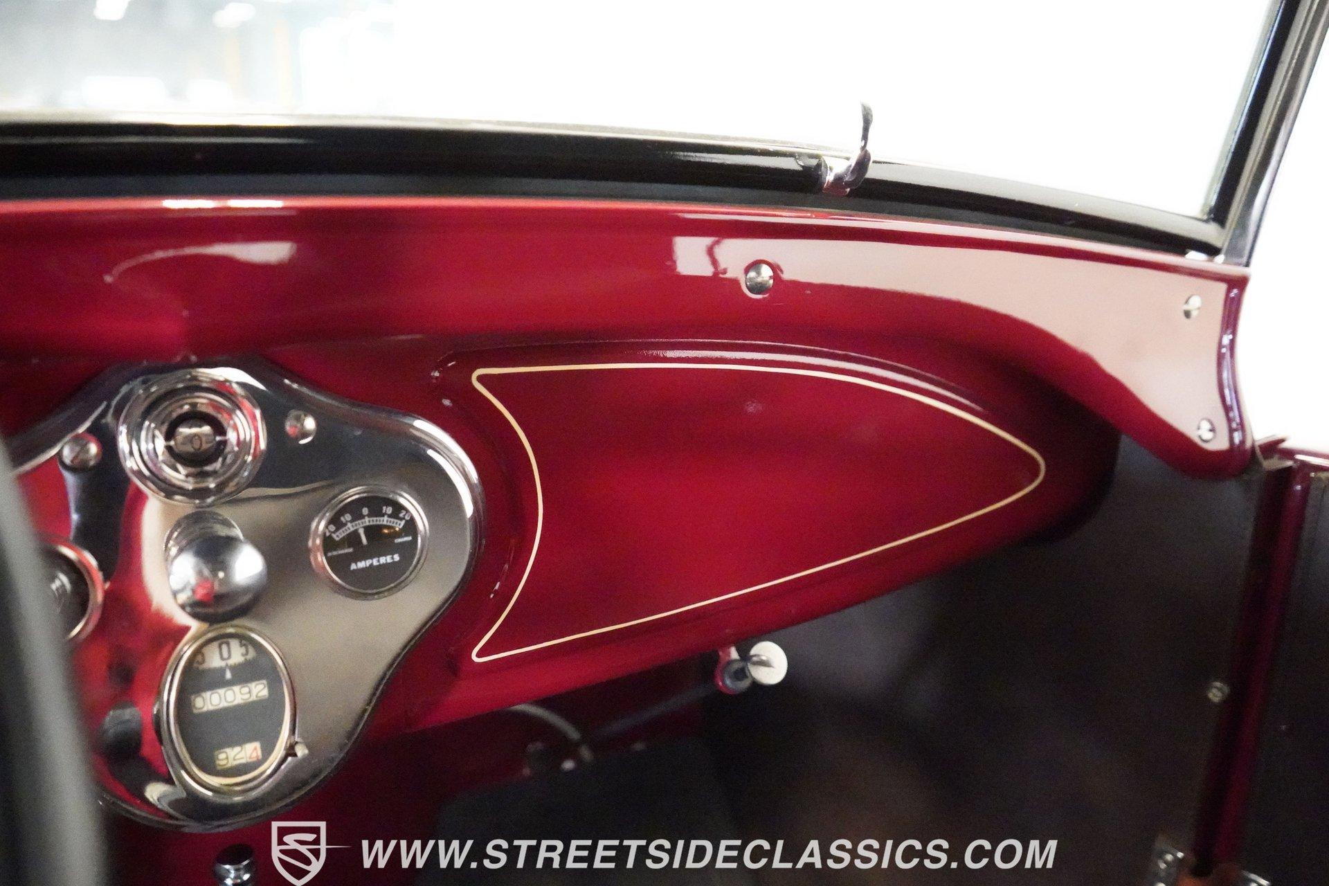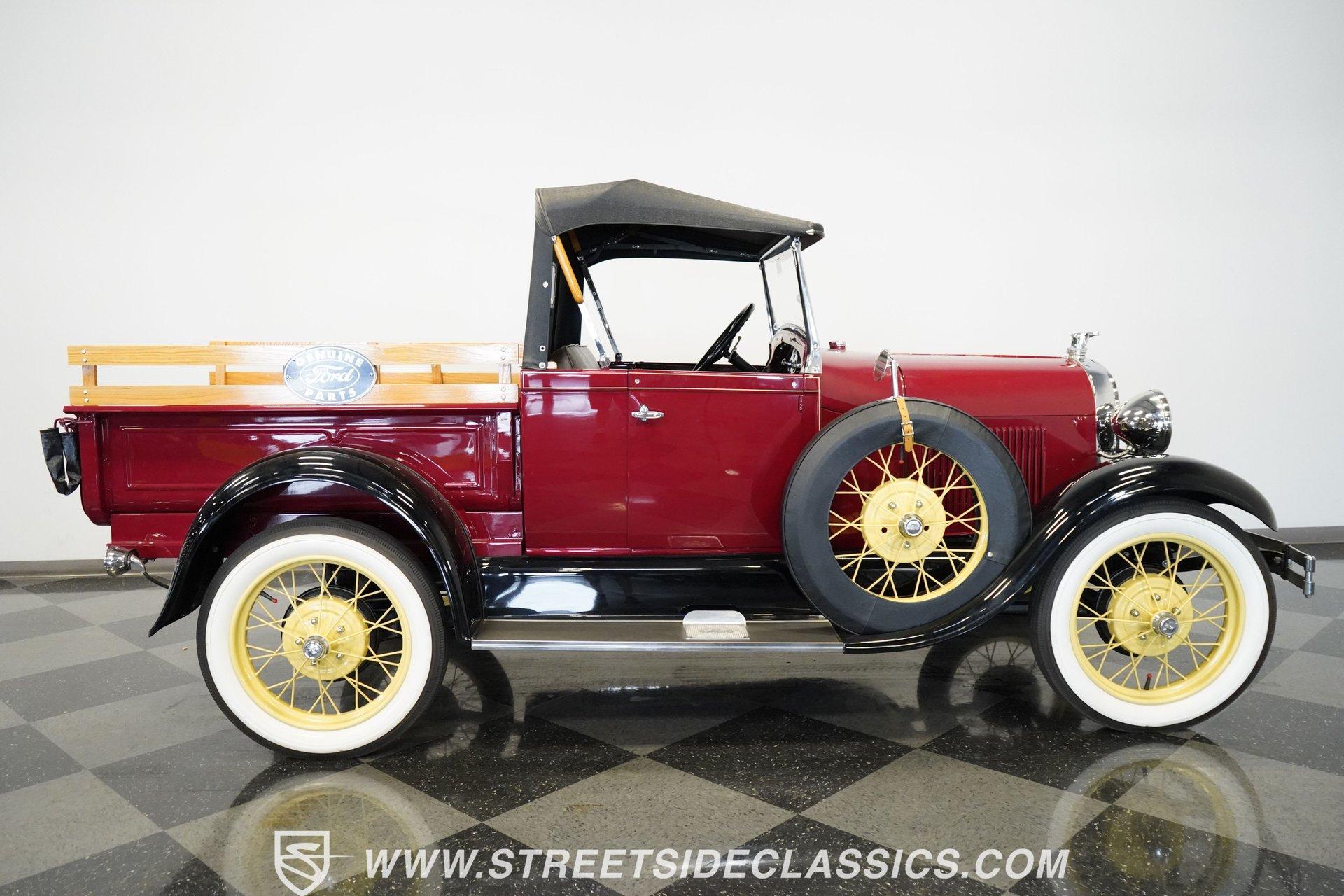 Vintage styling and open-air fun in this 1929 Ford Model A Roadster Pickup. Burgundy paint adorns this classic body, complemented by 21-inch wire wheels and 4.40/4.50-21 BFG Silvertown whitewall tires. This wooden slat bed features wooden stake inserts along with "Ford Genuine Parts" signs mounted on both sides-authentic details true to this period. When weather allows, this manual convertible top can be folded down for an incredible driving experience with the wind in your hair and sun on your face. Brown vinyl covers this interior surfaces with a simple bench seat that accommodates driver and passenger without fuss. All controls remain within easy reach, arranged logically across this dash panel. This floor-mounted shifter provides direct access to gear selection, adding to the hands-on nature of driving this truck. Remarkably clean and well-maintained, this interior actually looks better than this exterior, showing minimal signs of age or use throughout this cabin space. A 201 CI flathead 4-cylinder engine works with a Zenith carburetor to provide reliable power. This 3-speed manual transmission requires double-clutching between gears due to its unsynchronized design-a driving technique that has become something of a lost art. This suspension consists of an I-beam setup at the front with a solid axle and leaf springs supporting the rear. Stopping power comes from mechanical drum brakes at all four corners. Modern upgrades include a 12-volt electrical conversion and a battery cut-off switch located on the driver's side of this engine compartment. HIGHLIGHTS: 201 CI Flathead 4-Cylinder Engine 3-Speed Manual Transmission Zenith Carburetor Mechanical Drum Brakes I-Beam Front Suspension Solid Axle Rear with Leaf Springs 12-Volt Conversion Battery Cut-Off Switch Burgundy Paint 21" Wire Wheels 4.40/4.50-21 BFG Silvertown Whitewall Tires Manual Convertible Top Wood Slat Bed with Wooden Stake Inserts "Ford Genuine Parts" Signs on Bed Sides Short Bed Brown Interior with Bench Seat Floor Shifter 5-Digit Odometer Full Restoration Completely restored and ready for the road, this 1929 Ford Model A Roadster Pickup combines classic styling with genuine driving character. Perfect for parades, car shows, or weekend drives through the countryside. Call today!