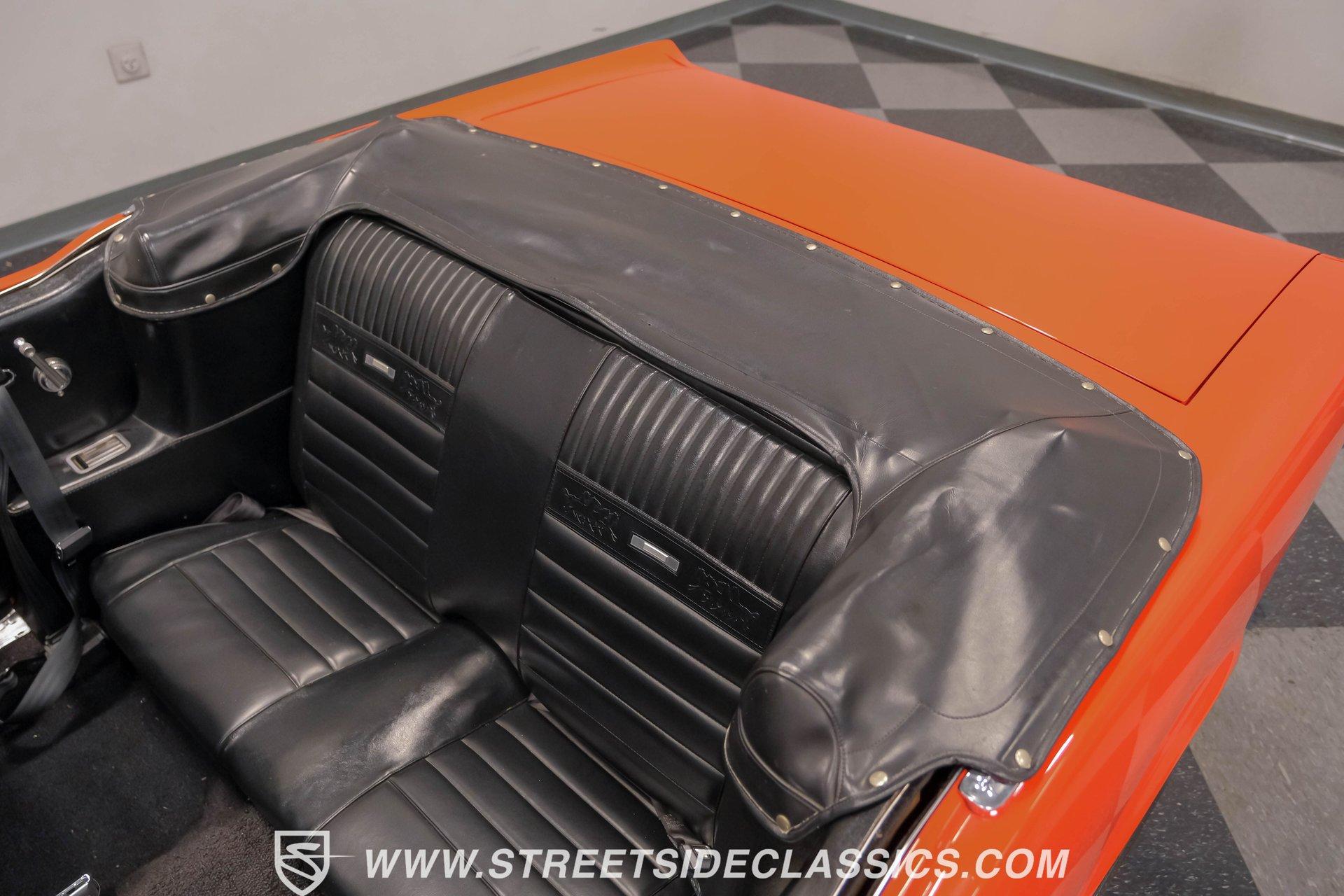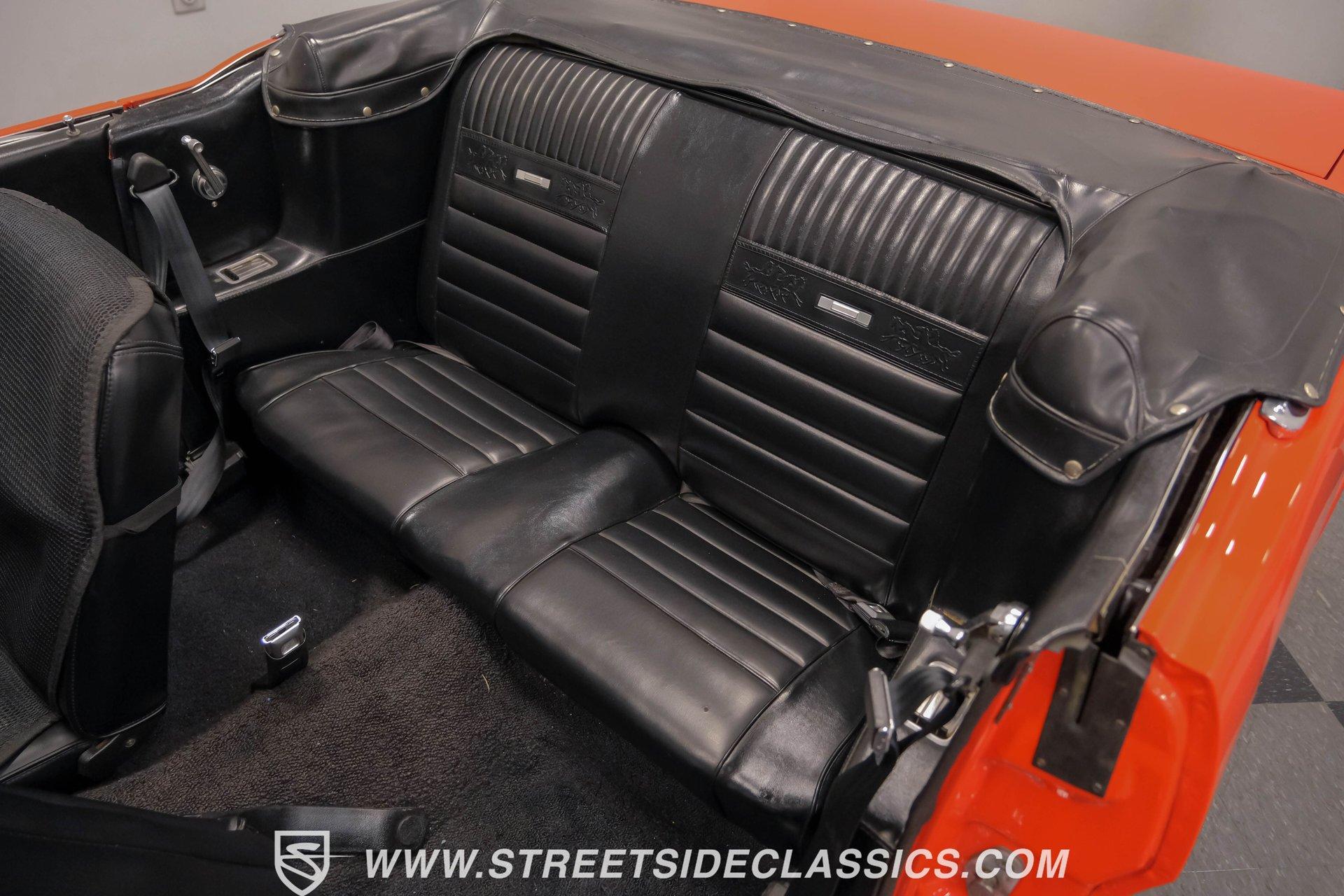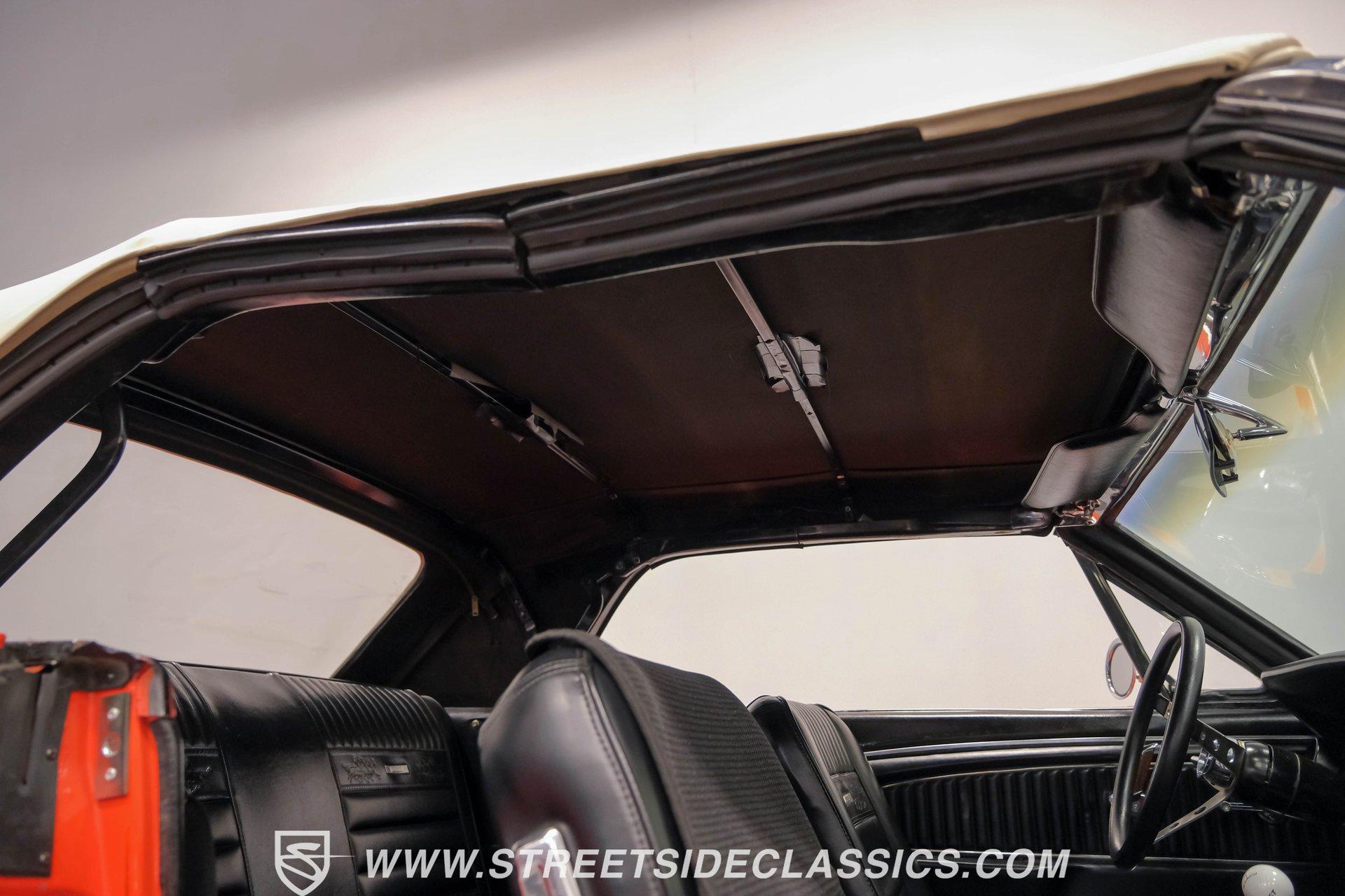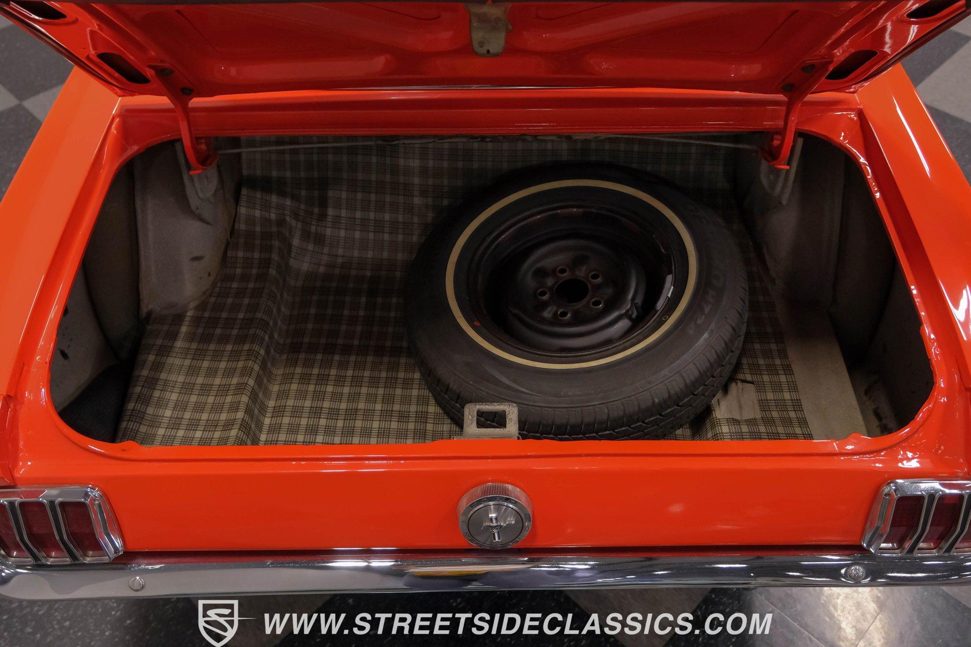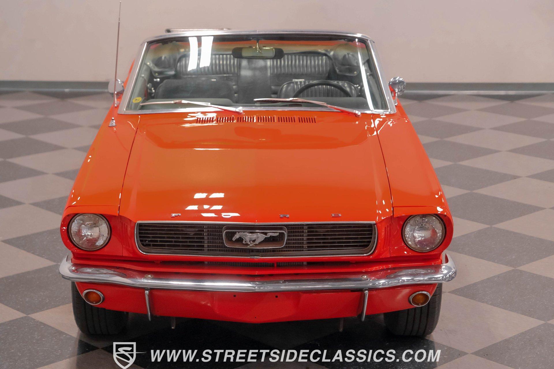 Open-air thrills and raw American muscle, that's what this 1966 Ford Mustang Convertible delivers. Splashed in vibrant Poppy Red that gleams with an orange hue, this drop-top pony car looks fast even when parked. This crisp white vinyl top folds down at the push of a button for instant summer fun. Those 15-inch American Racing chrome wheels add the perfect custom touch, rolling on 205/60R15 front and 215/60R15 rear tires for a slightly aggressive stance. This front disc brakes add both visual appeal and real stopping muscle, while this dual exhaust signals that this Mustang means business on the boulevard. Black vinyl wraps the interior in classic muscle car style. This upgraded Pony package bucket seats add both comfort and period-correct flair to the cabin. A clean dash houses the factory gauges, while this column-mounted tach lets you keep an eye on the revs as you row through the gears. Music comes courtesy of an upgraded AM/FM radio with Bluetooth capability-classic looks with modern sound. Fresh black carpeting runs throughout, contrasting nicely with the bucket seats. One push of a button and this power-operated top retracts for unlimited headroom. Muscle matters, and this 289 cubic inch V8 supplies plenty of it. Paired with a four-speed manual transmission, every gear change puts you in direct control of the power. This engine bay shows off with chrome valve covers and air cleaner-perfect for when guys gather around to check out what's making all that rumble. An aluminum radiator keeps temperatures in check even in traffic. Long tube manifolds feed into an aftermarket dual exhaust system that produces a sound that'll make you smile every time you press the accelerator. New suspension components give this Mustang solid handling with that classic feel. HIGHLIGHTS: 289 V8 Engine 4-Speed Manual Transmission Single 4-Barrel Carburetor Front Disc Brakes Dual Exhaust System Long Tube Manifolds Aftermarket Mufflers Aluminum Radiator Upgraded Strut Mount Bars Stock Suspension With All New Components Poppy Red Paint White Vinyl Convertible Top 15" American Racing Chrome Wheels 205/60R15 Front, 215/60R15 Rear Tires Power Convertible Top Black Interior With Pony Package Bucket Seats Column Mounted Tachometer Manual Steering Manual Brakes AM/FM Radio With Bluetooth For weekend cruises or daily fun, this 1966 Ford Mustang Convertible gives you the genuine article. V8 power, manual shifting, top-down style, and the cool factor that only comes with a classic pony car. Get your hands on one of the most iconic American convertibles ever made. Call today!