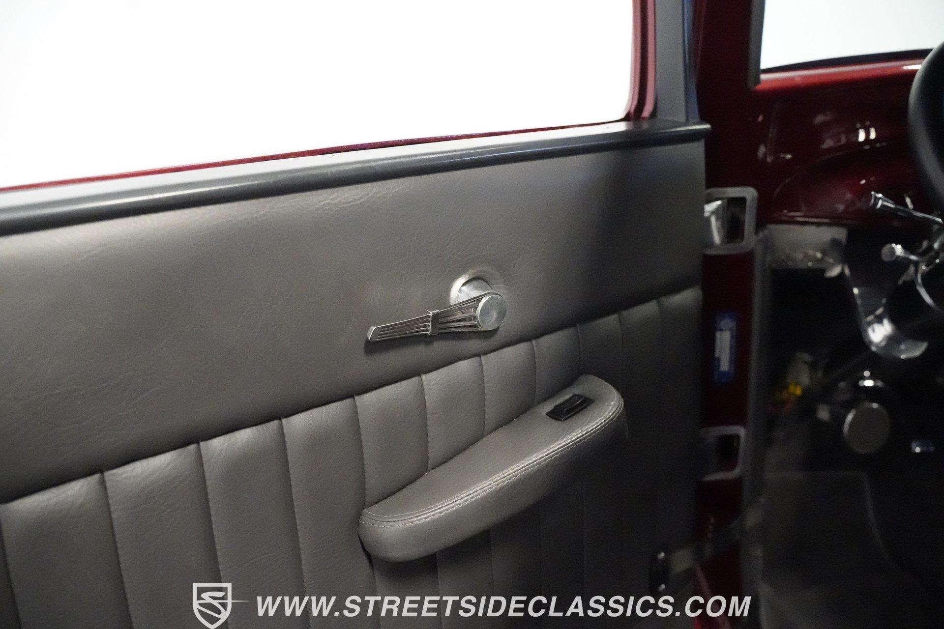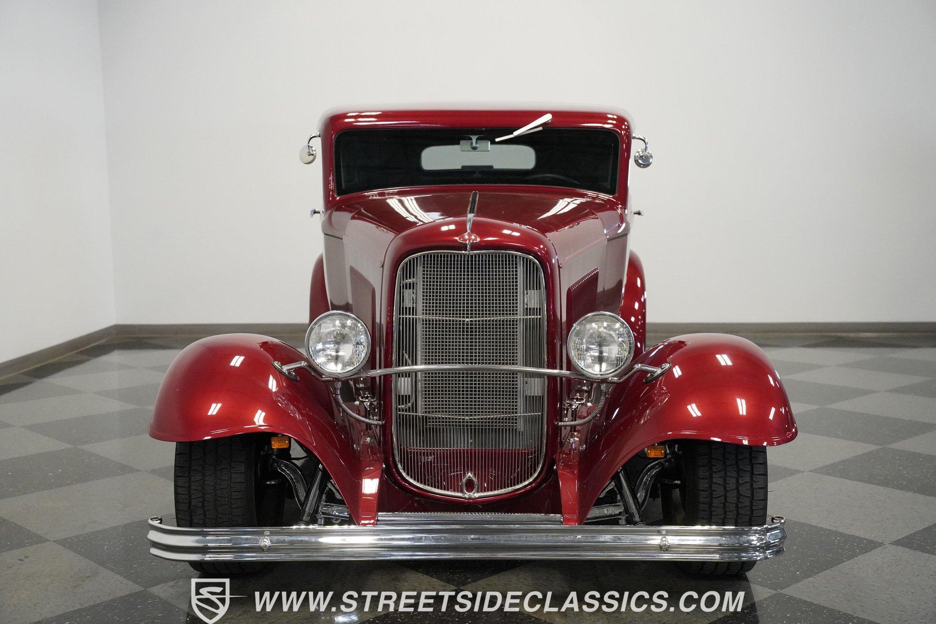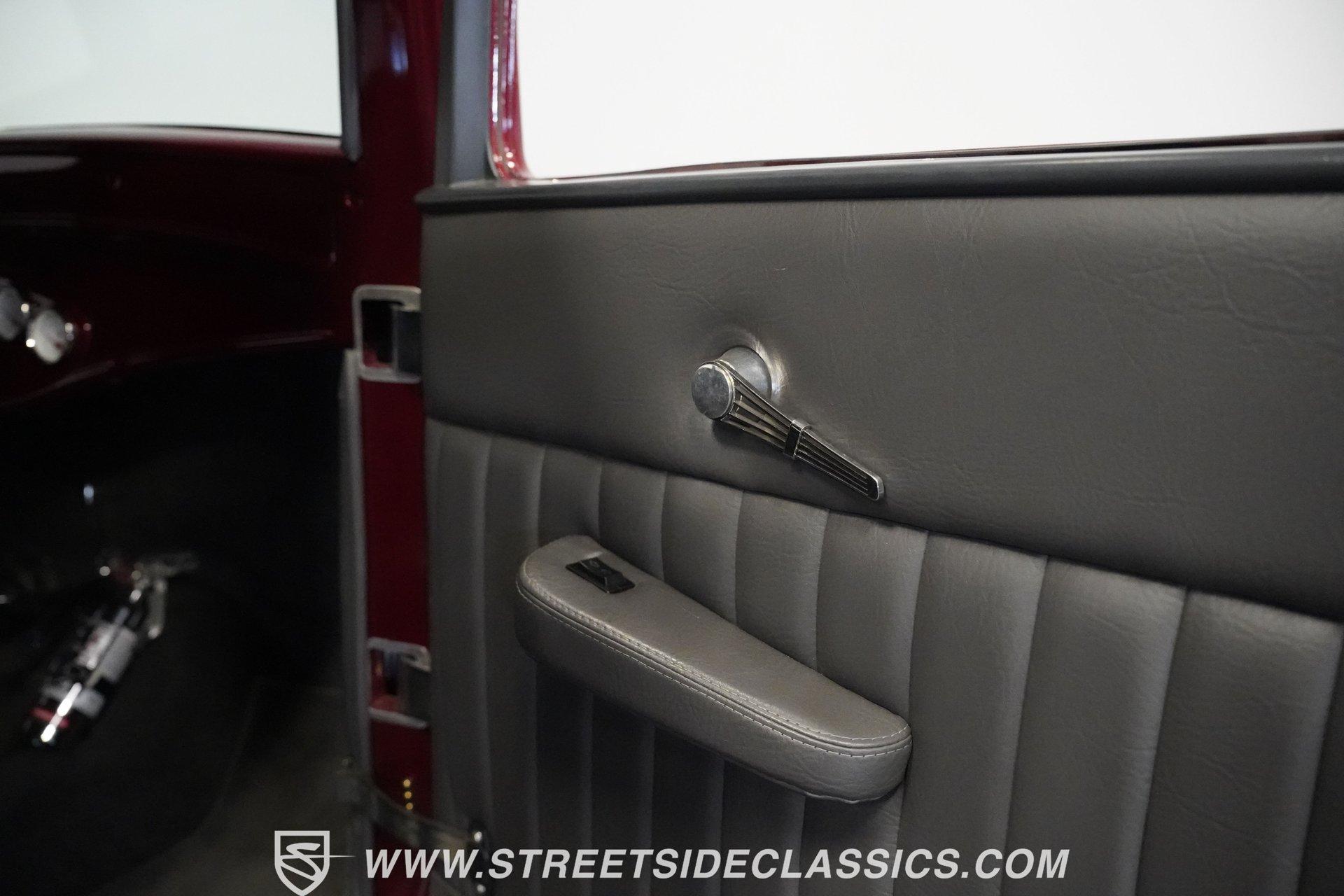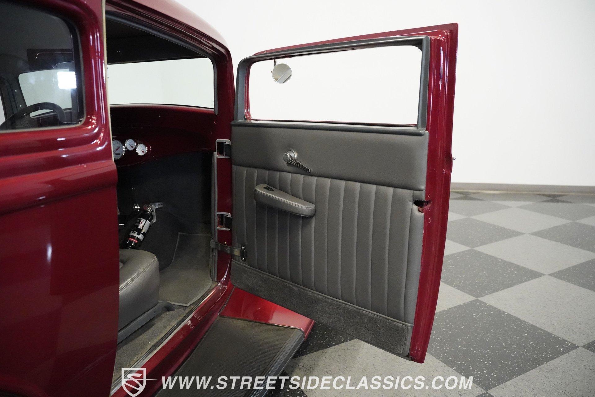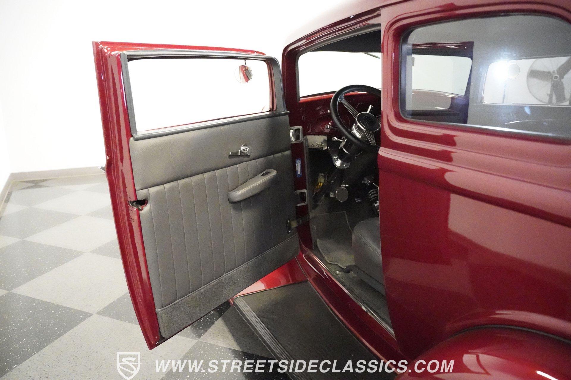 Glass construction gives exceptional strength while maintaining the classic lines of this 1932 Ford Victoria, dressed in burgundy paint that shows off every curve of its body. The stance is low and aggressive, with the perfect hot rod rake achieved through custom suspension. Aluminum wheels measuring 15 inches on all corners provide the perfect foundation, with BFG Radial TA tires sized 205/60R15 up front and wider 275/60R15 in back for that classic hot rod look. The front grille and headlights remain faithful to the original design, while chrome bumpers front and rear add a finished touch to this glass-bodied cruiser. The dark gray vinyl interior offers a clean look without excessive flash. Front bucket seats and a rear bench provide comfortable seating for passengers. The dash is painted to match the exterior, creating a unified appearance throughout. A Grant chrome steering wheel offers a touch of class, complemented by the column shifter for easy gear selection. The center console adds storage and style, while power windows provide modern functionality. Clean carpet and mats cover the floor, and the headliner remains in excellent condition. For added safety, a fire extinguisher is mounted under the dash. Powering this Victoria is a Ford 302 cubic inch V8 engine equipped with dual Edelbrock 4-barrel carburetors on an Edelbrock intake manifold. The engine pairs with a 4-speed AOD automatic transmission, making for easy cruising at any speed. The suspension consists of an I-beam front with coil springs and shocks, while the rear uses a solid axle with a 4-link setup and coil-overs for improved handling. A Ford 9-inch rear end puts the power to the pavement. Four-wheel power disc brakes provide excellent stopping ability, and the dual exhaust with Flowmaster mufflers and shorty headers produces a proper V8 sound. HIGHLIGHTS: 302 V8 Engine Dual Edelbrock 4-Barrel Carburetors Edelbrock Intake Manifold 4-Speed AOD Automatic Transmission Ford 9-inch Rear End 4-Wheel Power Disc Brakes I-Beam Front Suspension with Coil Springs 4-Link Rear Suspension with Coil-Overs Dual Exhaust Flowmaster Mufflers Shorty Headers Burgundy Paint 15" Aluminum Wheels 205/60R15 Front, 275/60R15 Rear BFG Radial TA Tires Glass Body Construction Chrome Front and Rear Bumpers Dark Gray Interior with Bucket Front Seats Bench Rear Seat Power Windows Grant Chrome Steering Wheel Column Shifter Center Console Color-Matched Dashboard Fire Extinguisher Ford styling and modern V8 power come together in this 1932 Victoria. The glass body, custom suspension, and 302 cubic inch engine make for a hot rod that's as fun to drive as it is to look at. Burgundy paint and gray interior create a tough, no-nonsense appearance. Call today!