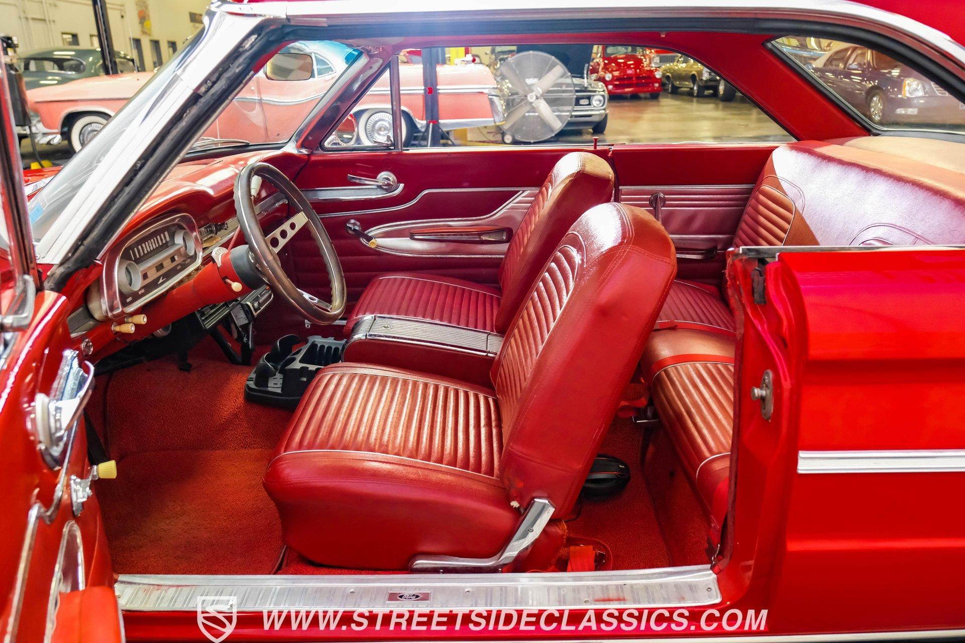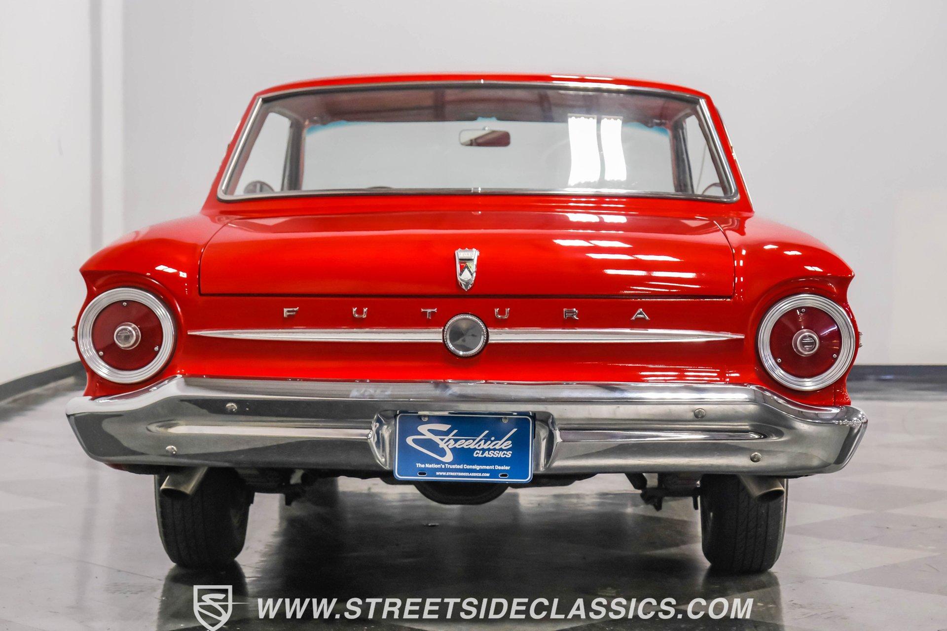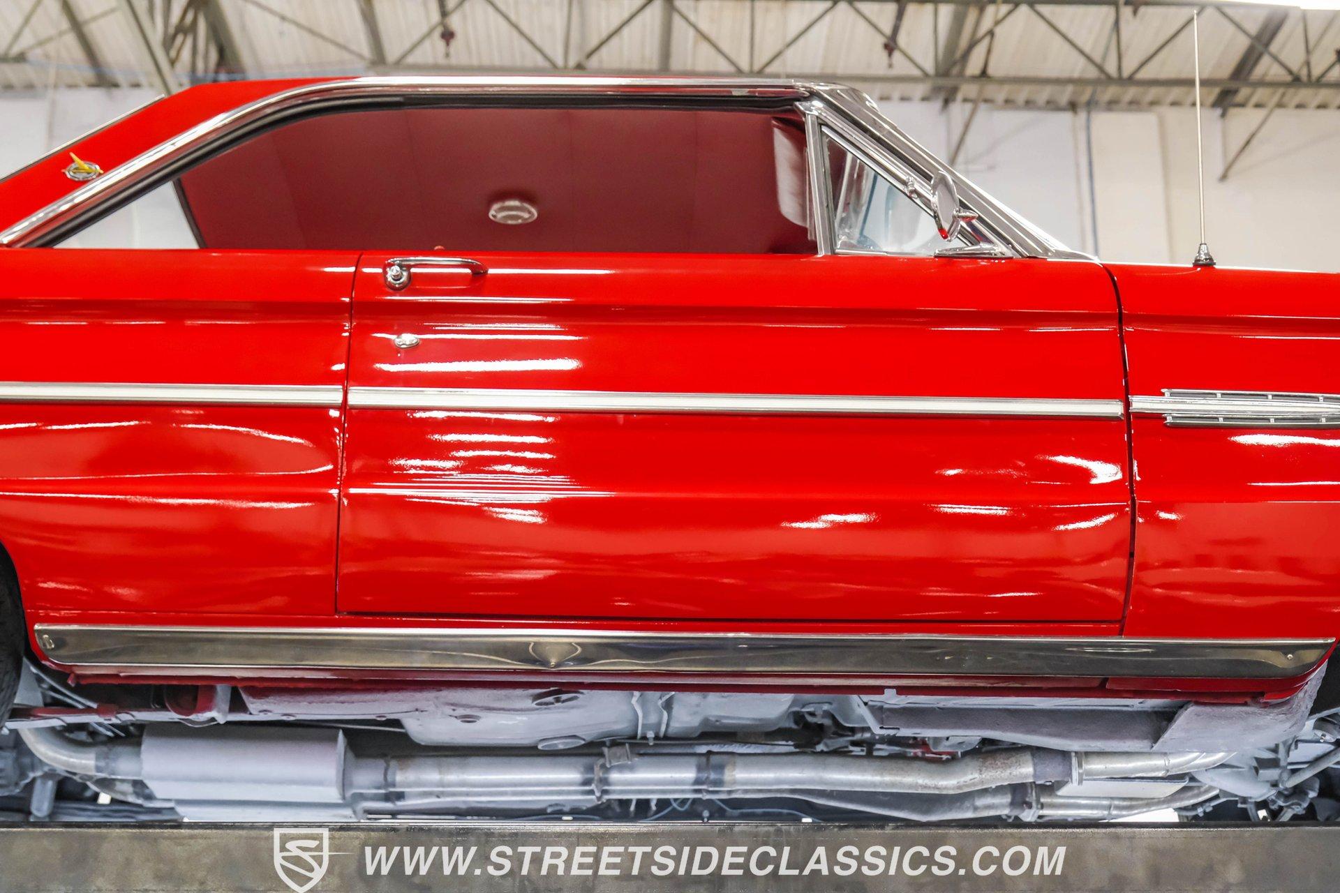Red paint gives this 1963 Ford Falcon Futura a bold look. The compact body features crisp lines and well-proportioned dimensions, accented by bright chrome trim that runs along the sides. Both front and rear chrome bumpers remain in excellent condition, framing the car nicely. The original front grille shows quality preservation, maintaining factory authenticity. Sitting on 14" American Racing wheels wrapped in 185/75R14 Toyo tires, this Falcon has an improved stance while maintaining its classic appeal. Red vinyl upholstery creates a perfect color-matched interior that complements the exterior perfectly. Comfortable bucket seats offer good support, while the middle console adds both style and function with integrated cup holders. The dash retains its factory gauge cluster and stock knobs, giving a period-correct appearance. A woodgrain steering wheel adds a touch of class to the driving experience. The original AM radio remains in place for authenticity, while an underdash DUAL brand AM/FM/AUX/BT radio with USB ports provides modern audio options. A 289 cubic inch V8 engine gives this Falcon impressive acceleration. The motor is fed by a Holley 4-barrel carburetor and breathes through long tube headers connected to a dual FlowMaster exhaust system. An aluminum Northern radiator with an electric fan keeps everything running cool. Power flows through a C4 3-speed automatic transmission for effortless cruising. The suspension system features front coil springs with shocks and sway bar, complemented by a solid rear axle with leaf springs and 8" rear end. HIGHLIGHTS: 289 V8 Engine C4 3-Speed Automatic Transmission Holley 4-Barrel Carburetor Long Tube Headers Dual FlowMaster Exhaust 8" Rear Axle Aluminum Northern Radiator with Electric Fan Front Coil Springs with Sway Bar and Shocks Red Paint Front and Rear Chrome Bumpers 14" American Racing Wheels in 185/75R14 Toyo Tires Red Interior with Bucket Seats Center Console with Cup Holders Wood Rim Steering Wheel Factory Gauges DUAL Brand AM/FM/AUX/BT Radio Compact yet powerful, the 1963 Ford Falcon Futura combines V8 muscle with manageable size. Its red-on-red color scheme, bucket seat interior, and performance upgrades make for an enjoyable classic driving experience without excessive bulk or weight. Call today!