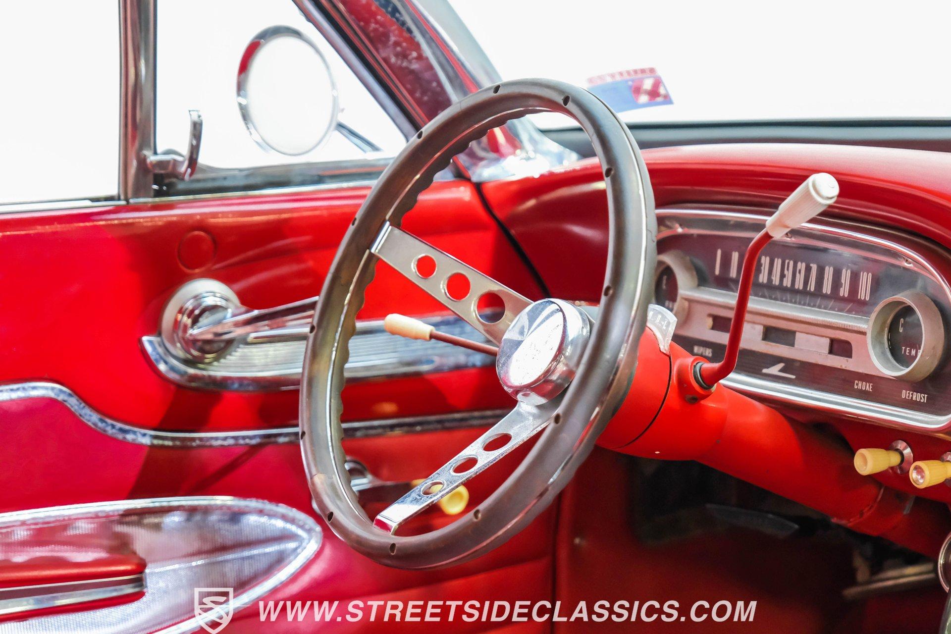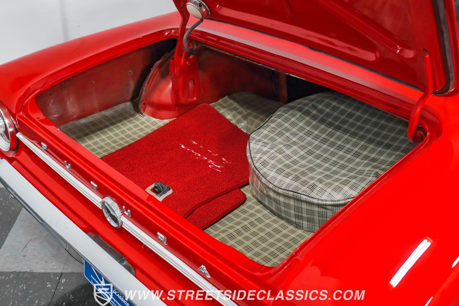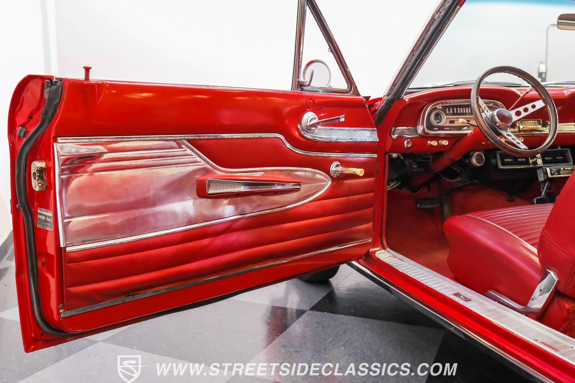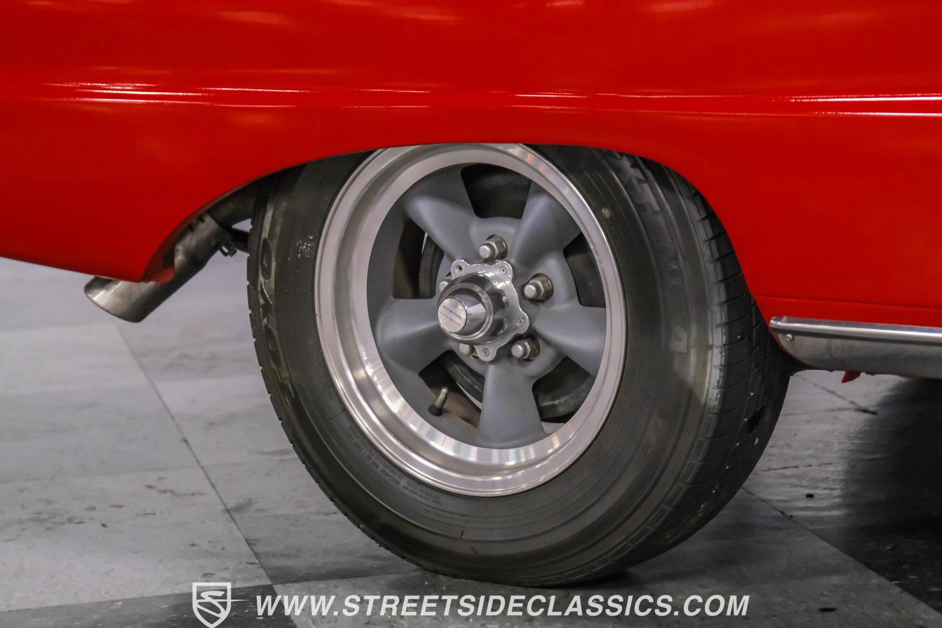Red paint gives this 1963 Ford Falcon Futura a bold look. The compact body features crisp lines and well-proportioned dimensions, accented by bright chrome trim that runs along the sides. Both front and rear chrome bumpers remain in excellent condition, framing the car nicely. The original front grille shows quality preservation, maintaining factory authenticity. Sitting on 14" American Racing wheels wrapped in 185/75R14 Toyo tires, this Falcon has an improved stance while maintaining its classic appeal. Red vinyl upholstery creates a perfect color-matched interior that complements the exterior perfectly. Comfortable bucket seats offer good support, while the middle console adds both style and function with integrated cup holders. The dash retains its factory gauge cluster and stock knobs, giving a period-correct appearance. A woodgrain steering wheel adds a touch of class to the driving experience. The original AM radio remains in place for authenticity, while an underdash DUAL brand AM/FM/AUX/BT radio with USB ports provides modern audio options. A 289 cubic inch V8 engine gives this Falcon impressive acceleration. The motor is fed by a Holley 4-barrel carburetor and breathes through long tube headers connected to a dual FlowMaster exhaust system. An aluminum Northern radiator with an electric fan keeps everything running cool. Power flows through a C4 3-speed automatic transmission for effortless cruising. The suspension system features front coil springs with shocks and sway bar, complemented by a solid rear axle with leaf springs and 8" rear end. HIGHLIGHTS: 289 V8 Engine C4 3-Speed Automatic Transmission Holley 4-Barrel Carburetor Long Tube Headers Dual FlowMaster Exhaust 8" Rear Axle Aluminum Northern Radiator with Electric Fan Front Coil Springs with Sway Bar and Shocks Red Paint Front and Rear Chrome Bumpers 14" American Racing Wheels in 185/75R14 Toyo Tires Red Interior with Bucket Seats Center Console with Cup Holders Wood Rim Steering Wheel Factory Gauges DUAL Brand AM/FM/AUX/BT Radio Compact yet powerful, the 1963 Ford Falcon Futura combines V8 muscle with manageable size. Its red-on-red color scheme, bucket seat interior, and performance upgrades make for an enjoyable classic driving experience without excessive bulk or weight. Call today!