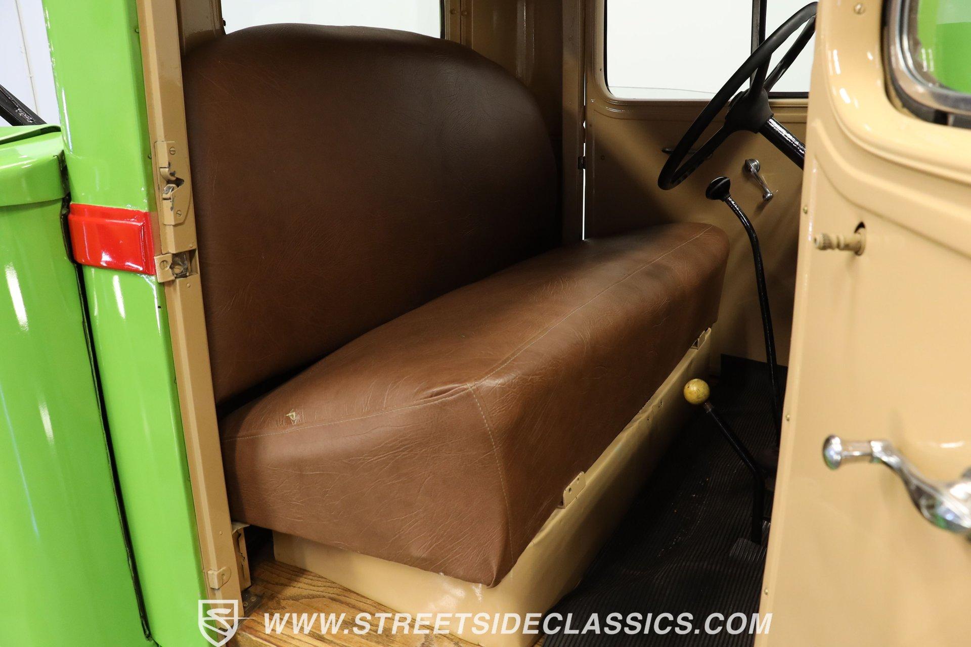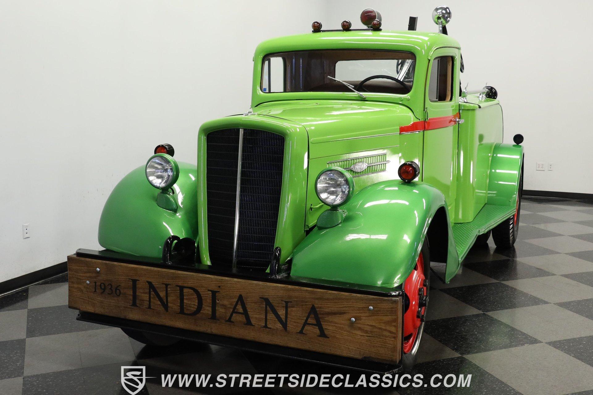 Among the scarcest pre-war commercial trucks available anywhere, this 1936 Indiana Wrecker stands as a genuine American automotive artifact. Green Apple paint covers the exterior with excellent gloss, while the bold red painted stripe along the flanks adds visual interest and period-correct styling. The tough all-steel body construction includes a front steel bumper with wooden reinforcement, and the original-style tow boom remains attached for authentic appearance. Side-mounted storage compartments on both driver and passenger sides contain refurbished vintage tools, and the replica gas tanks mounted at the rear complete the authentic industrial look. The massive 7.50 X 20 front and 8.25-20 rear tires on 20" wheels give this truck the correct stance and proportions. Inside, the tan vinyl upholstery covers a straightforward bench seat - exactly what you'd want in a commercial truck from this period. The gauge cluster appears original-style and sits front and center in the dash, with essential controls within easy reach. A manual floor shifter handles the gears, accompanied by the emergency brake lever, while the PTO floor lever remains in place but has been locked off. No unnecessary luxuries like radio or climate control exist here - just the raw, basic controls needed to operate a hard-working machine from nearly nine decades ago. Mechanical power comes from a 206 cubic inch inline six-cylinder engine (code 64167-HE Chevrolet Stovebolt) linked to a manual transmission. Fuel flows through a Zenith downdraft carburetor for good performance. The suspension uses leaf springs and solid axles at both ends, with drum brakes at all four corners. Manual steering and brakes provide direct control, while a standard belt-driven cooling fan and radiator maintain proper operating temperatures. For safety, the 12V battery includes a nearby shut-off switch and sits tucked inside the left rear compartment/tool box. HIGHLIGHTS: 206 CID Inline 6-Cylinder Engine (Code 64167-HE Chevrolet Stovebolt) Manual Transmission Zenith Downdraft Carburetor Drum Brakes Leaf Spring Solid Axle Suspension Standard Belt-Driven Cooling Fan and Radiator Green Apple Paint with Red Stripe 20" Wheels 7.50 X 20 Front, 8.25-20 Rear Tires All-Steel Body Front Steel Bumper with Wood Reinforcement Tow Boom (Non-Operational) Storage Compartments on Both Sides Replica Gas Tanks in Rear Tan Vinyl Bench Seat Original-Style Gauge Cluster Manual Floor Shifter PTO Floor Lever (Locked Off) Collectors of unusual commercial trucks will find few options as distinctive and interesting as this 1936 Indiana Wrecker. From its uncommon manufacturer to its specialized function, this truck offers something truly different for truck aficionados looking beyond the usual Ford and Chevrolet offerings. Call today! We can assist you with getting an Extended Vehicle Service Plan from Freedom Warranty, which provides comprehensive coverage that can save thousands of dollars on unexpected repairs. Inquire for more details and pricing!