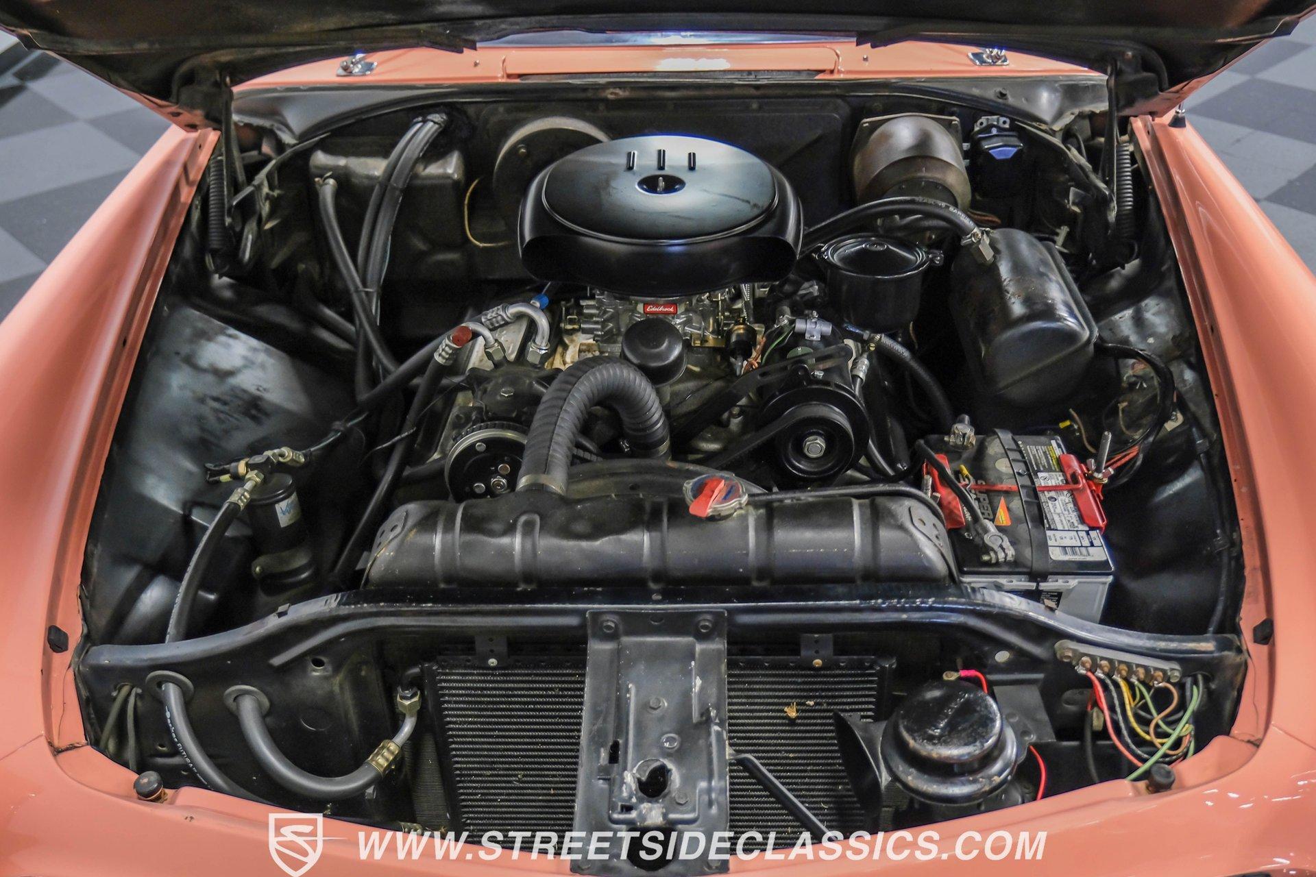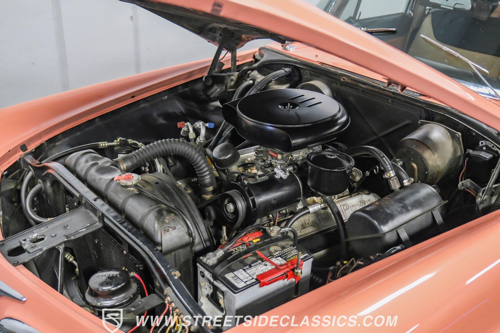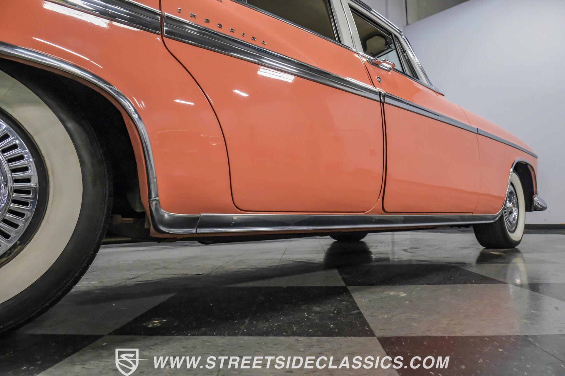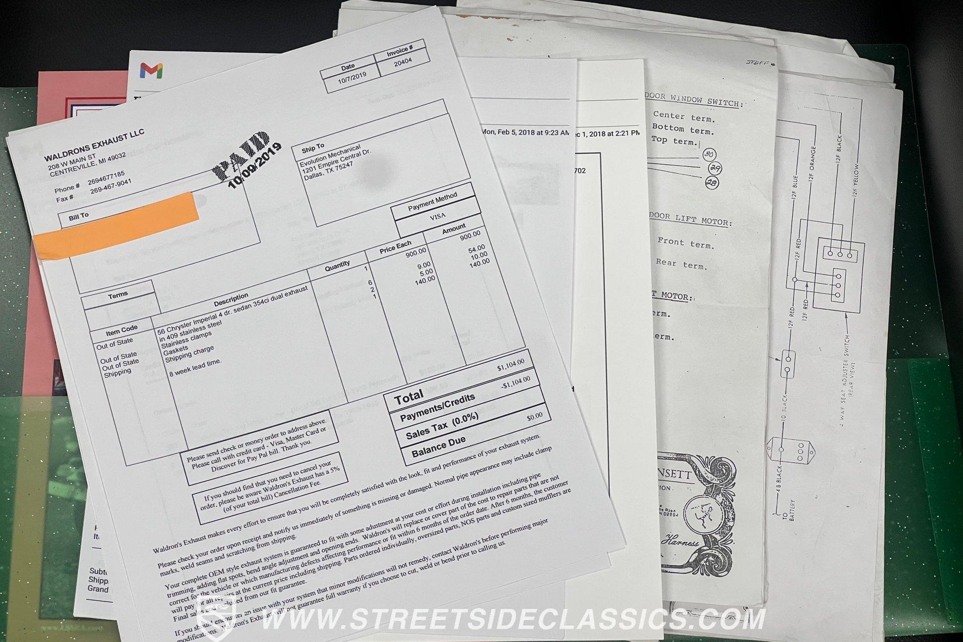 Among the most exclusive automobiles of its day, this 1956 Chrysler Imperial four-door sedan offered premium levels beyond what standard Chrysler models provided. The Rosewood Tan paint gives a rich, luxurious look across the massive body panels. From front to back, the design shows incredible attention to detail with its distinctive front grille, long hood, and signature tailfins. Chrome accents throughout add classic contrast against the paint, highlighting the Imperial's unique style. The 15" wheels paired with 235/75R15 American Classic tires complete the look while maintaining period accuracy for this exceptional automobile. Inside, the black and pink combination creates an unexpected yet appealing contrast. The vinyl and cloth bench seats provide excellent comfort for long drives. Taking center stage on the dashboard is the innovative push-button transmission selector, which adds a unique touch to the driving controls. Additional luxury options include power windows and the rare factory power seats – features that were cutting-edge for 1956. The original signal-seeking AM radio remains in place, while the under-dash air conditioning unit keeps passengers cool during summer cruises. For motivation, a 354 cubic inch HEMI V8 engine sits front and center. The Edelbrock four-barrel carburetor helps this big V8 run smoothly and efficiently. Power transfers through a two-speed PowerFlite automatic transmission for easy driving. Extensive mechanical work includes a stainless steel exhaust system, fully rebuilt transmission, new power steering pump with hoses, and a rebuilt generator modified for increased electrical output. The drum brakes have received attention as well, ensuring proper stopping capability when needed. HIGHLIGHTS: 354 V8 HEMI Engine 2 Speed Automatic PowerFlite Transmission Edelbrock 4 Barrel Carburetor Dual Exhaust with Aftermarket Mufflers Drum Brakes Stainless Steel Exhaust Rosewood Tan Exterior 15" Wheels with 235/75R15 American Classic Tires Chrome Accents Full Chrome Bumpers Black & Pink Interior with Power Bench Seats Push Button Transmission Shifter Power Windows Air Conditioning AM Signal Seeking Radio Power Steering New Carpet (In Trunk) Magazine Feature Maintenance Records Owner's Manual One of the most luxurious and substantial automobiles available in 1956, this Imperial combines HEMI V8 power with advanced features like power seats, power windows, and air conditioning. Well-maintained and ready for cruising, it awaits a new owner who appreciates true automotive luxury. Call today!