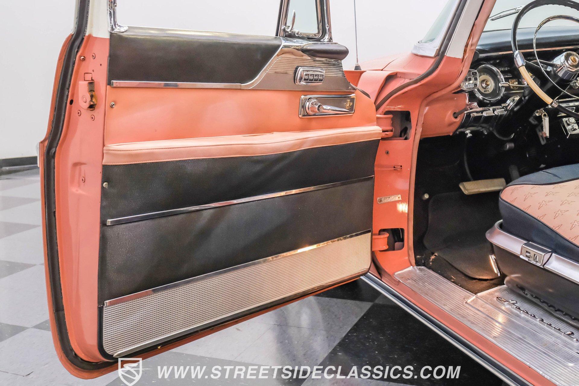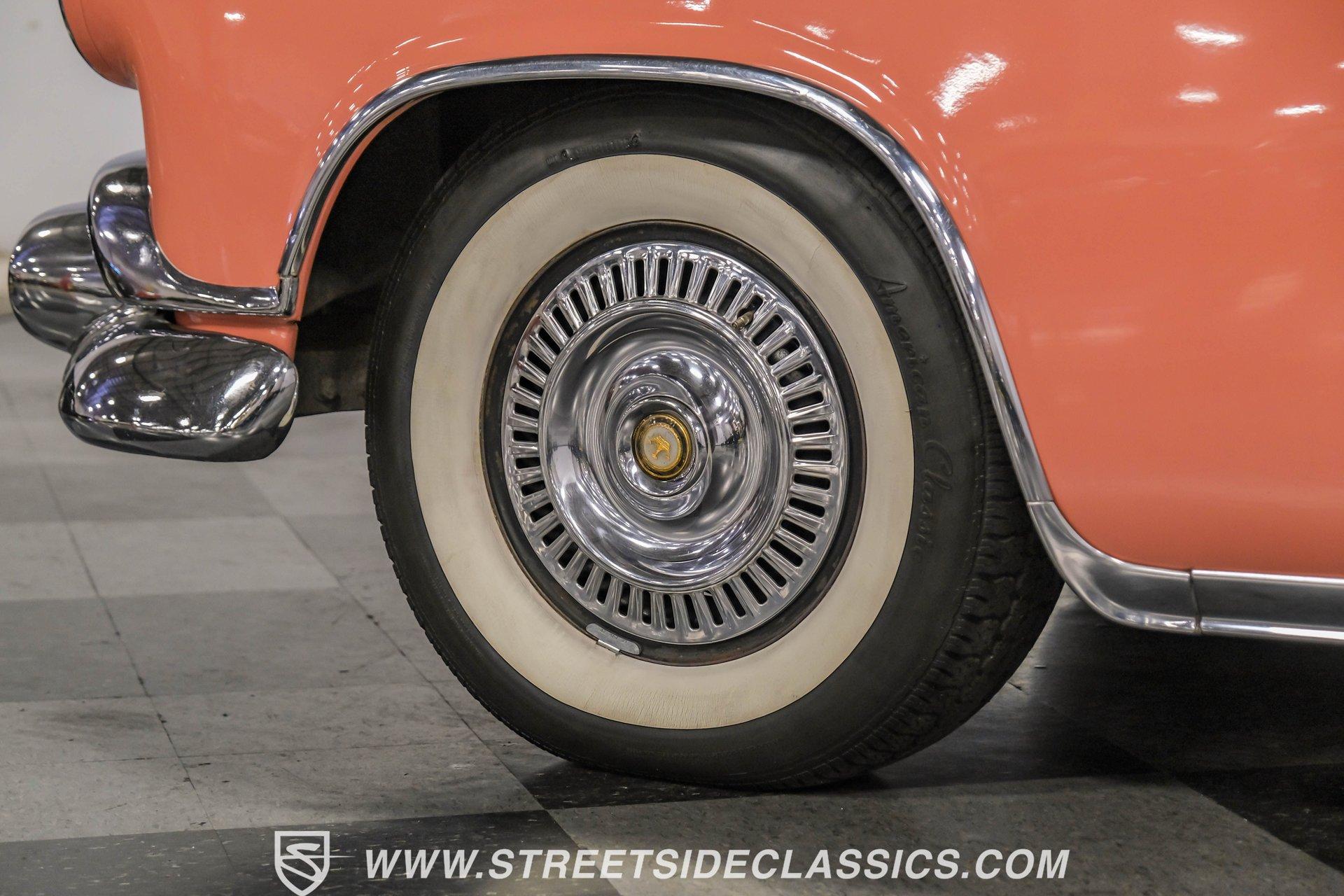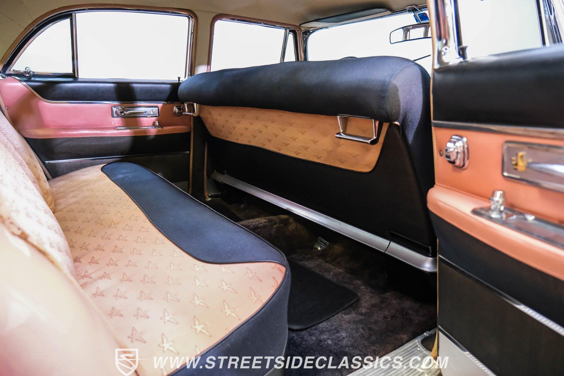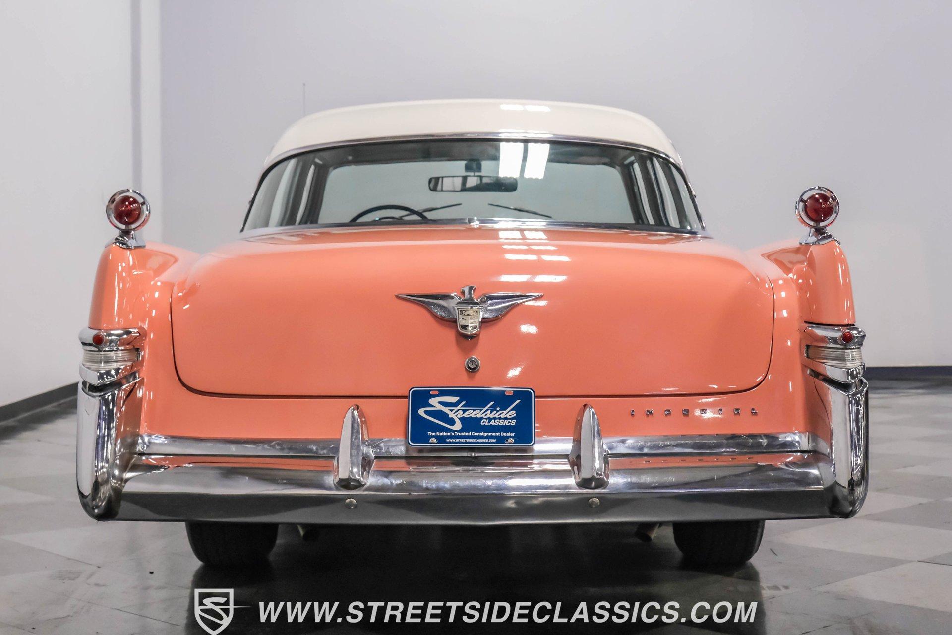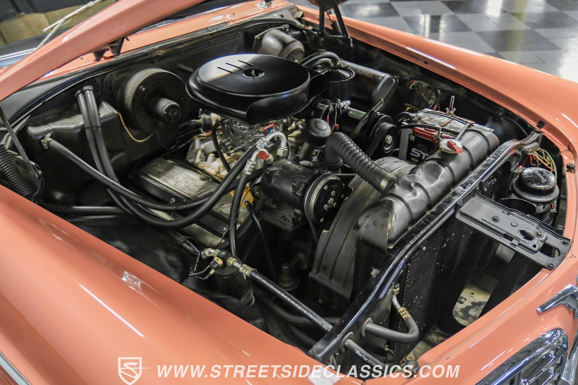 Among the most exclusive automobiles of its day, this 1956 Chrysler Imperial four-door sedan offered premium levels beyond what standard Chrysler models provided. The Rosewood Tan paint gives a rich, luxurious look across the massive body panels. From front to back, the design shows incredible attention to detail with its distinctive front grille, long hood, and signature tailfins. Chrome accents throughout add classic contrast against the paint, highlighting the Imperial's unique style. The 15" wheels paired with 235/75R15 American Classic tires complete the look while maintaining period accuracy for this exceptional automobile. Inside, the black and pink combination creates an unexpected yet appealing contrast. The vinyl and cloth bench seats provide excellent comfort for long drives. Taking center stage on the dashboard is the innovative push-button transmission selector, which adds a unique touch to the driving controls. Additional luxury options include power windows and the rare factory power seats – features that were cutting-edge for 1956. The original signal-seeking AM radio remains in place, while the under-dash air conditioning unit keeps passengers cool during summer cruises. For motivation, a 354 cubic inch HEMI V8 engine sits front and center. The Edelbrock four-barrel carburetor helps this big V8 run smoothly and efficiently. Power transfers through a two-speed PowerFlite automatic transmission for easy driving. Extensive mechanical work includes a stainless steel exhaust system, fully rebuilt transmission, new power steering pump with hoses, and a rebuilt generator modified for increased electrical output. The drum brakes have received attention as well, ensuring proper stopping capability when needed. HIGHLIGHTS: 354 V8 HEMI Engine 2 Speed Automatic PowerFlite Transmission Edelbrock 4 Barrel Carburetor Dual Exhaust with Aftermarket Mufflers Drum Brakes Stainless Steel Exhaust Rosewood Tan Exterior 15" Wheels with 235/75R15 American Classic Tires Chrome Accents Full Chrome Bumpers Black & Pink Interior with Power Bench Seats Push Button Transmission Shifter Power Windows Air Conditioning AM Signal Seeking Radio Power Steering New Carpet (In Trunk) Magazine Feature Maintenance Records Owner's Manual One of the most luxurious and substantial automobiles available in 1956, this Imperial combines HEMI V8 power with advanced features like power seats, power windows, and air conditioning. Well-maintained and ready for cruising, it awaits a new owner who appreciates true automotive luxury. Call today!