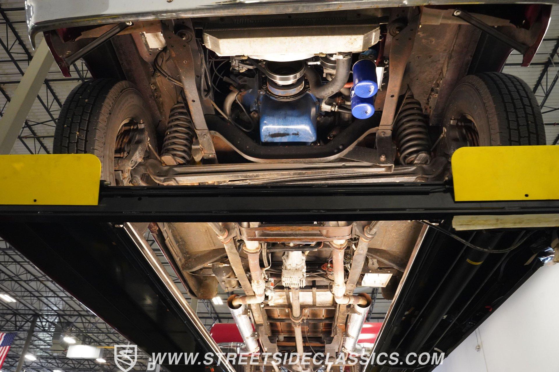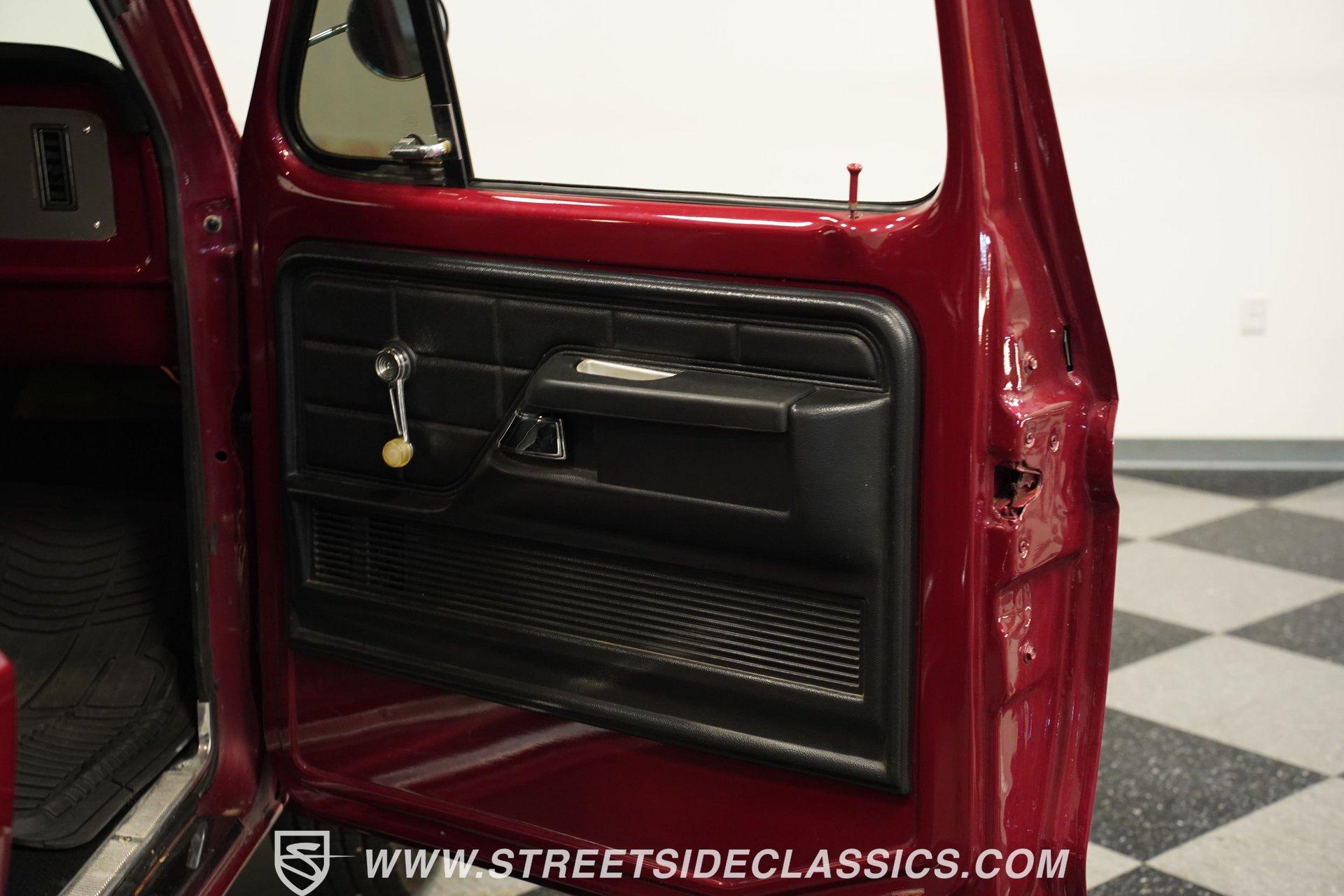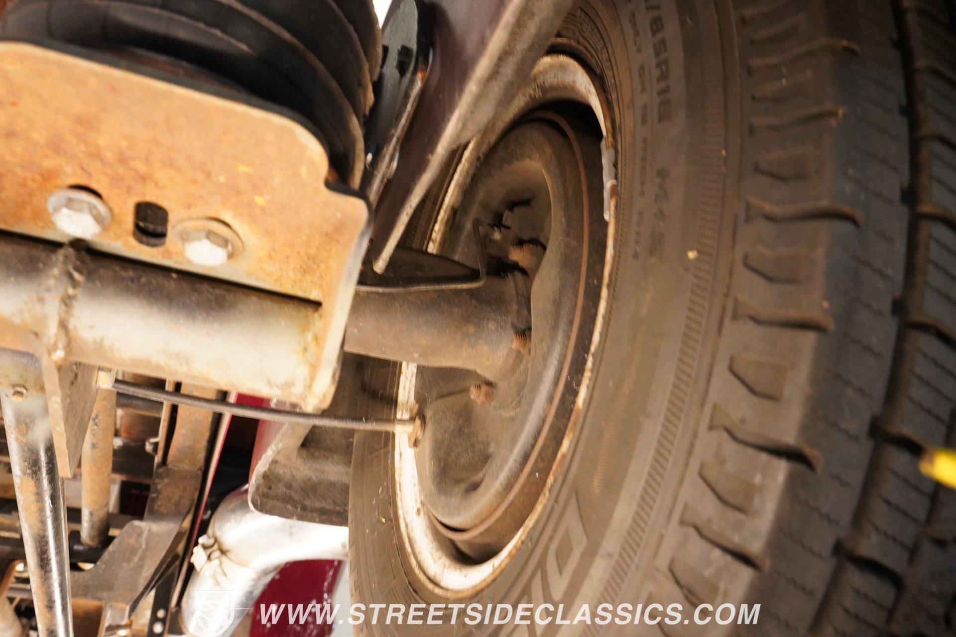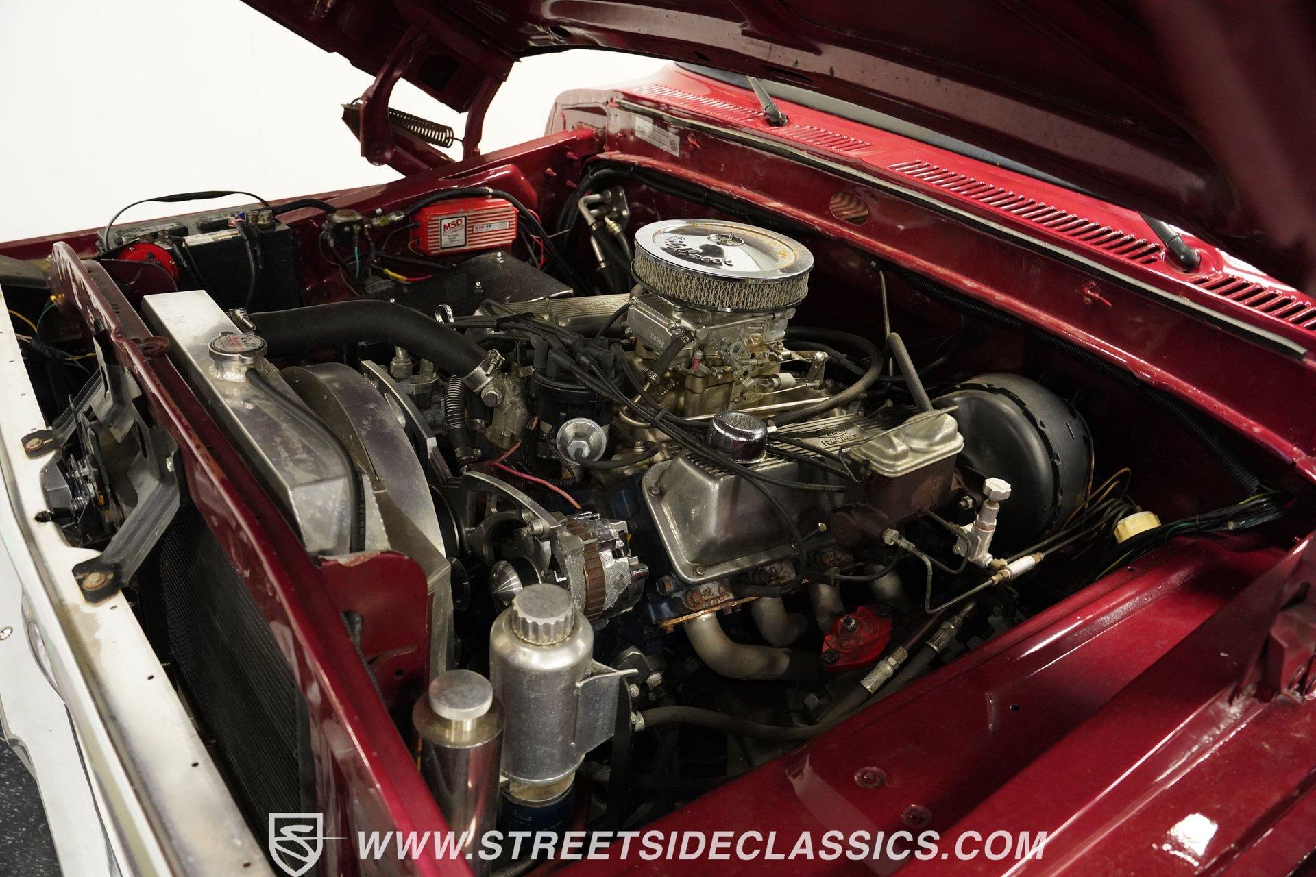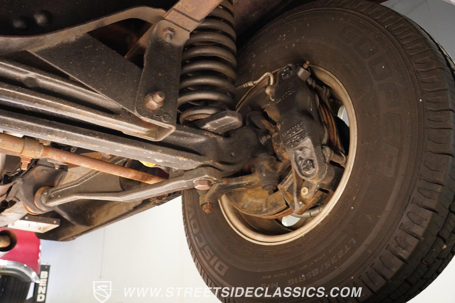 Finished in bold Maroon, this 1974 Ford F-350 Custom Dually carries a squared-up deck built right over the chassis. Cab roof lights add just the right touch of big rig attitude, and clear headlights sharpen the front end. It sits tall on 16" polished aluminum wheels, all wrapped in 235/85R16 tires with the right stance and spacing to make that dual rear axle count. Black vinyl bucket seats fill the cab and kick out the factory bench for something more fitting. A B&M ratchet shifter anchors the floor, while a Billet Specialties steering wheel sits on a tilt column. Digital gauges replace the original cluster, giving the dash a purpose-built upgrade. Above, the custom headliner houses a Bluetooth radio, and a row of toggles wired in above the driver visor runs the ignition and accessories. Power comes from a 400ci V8 with aluminum Ford valve covers, an Edelbrock aluminum intake, Holley 4-barrel carburetor, and MSD ignition. Long tube headers feed a set of dual 5-inch pipes that dump just before the rear wheels. Backing that up is a C6 3-speed automatic paired with a Gear Vendors overdrive. Cooling is handled by an aluminum radiator. The suspension setup features a Twin I-Beam up front and trailing arms with airbags out back. Steering assist and front disc brakes finish the mechanical package. HIGHLIGHTS 400 V8 Engine C6 3-Speed Automatic Transmission Gear Vendors Overdrive Holley 4-Barrel Carburetor Edelbrock Aluminum Intake Aluminum Ford Valve Covers Long Tube Headers Dual Side Exit Exhaust Aluminum Radiator Power Front Disc Brakes Dana 70 Rear End Rear Suspension with Trailing Arms, Shocks, and Airbags Maroon Paint Custom Flat Deck over Boxed Frame Cab Roof Lights 16" Polished Aluminum Wheels IN 235/85R16 Tires Black Interior with Bucket Seats Digital Gauges Power Steering B&M Floor Shifter Billet Specialties Steering Wheel Tilt Steering Column Toggle Switch Ignition System Ceiling-Mounted Bluetooth Radio Large Binder with Receipts Straight-cut and built with muscle in mind, the 1974 Ford F-350 Custom Dually brings a heavy-duty look with a hot rod soul. It's got presence, style, and all the hardware to match. Call today!