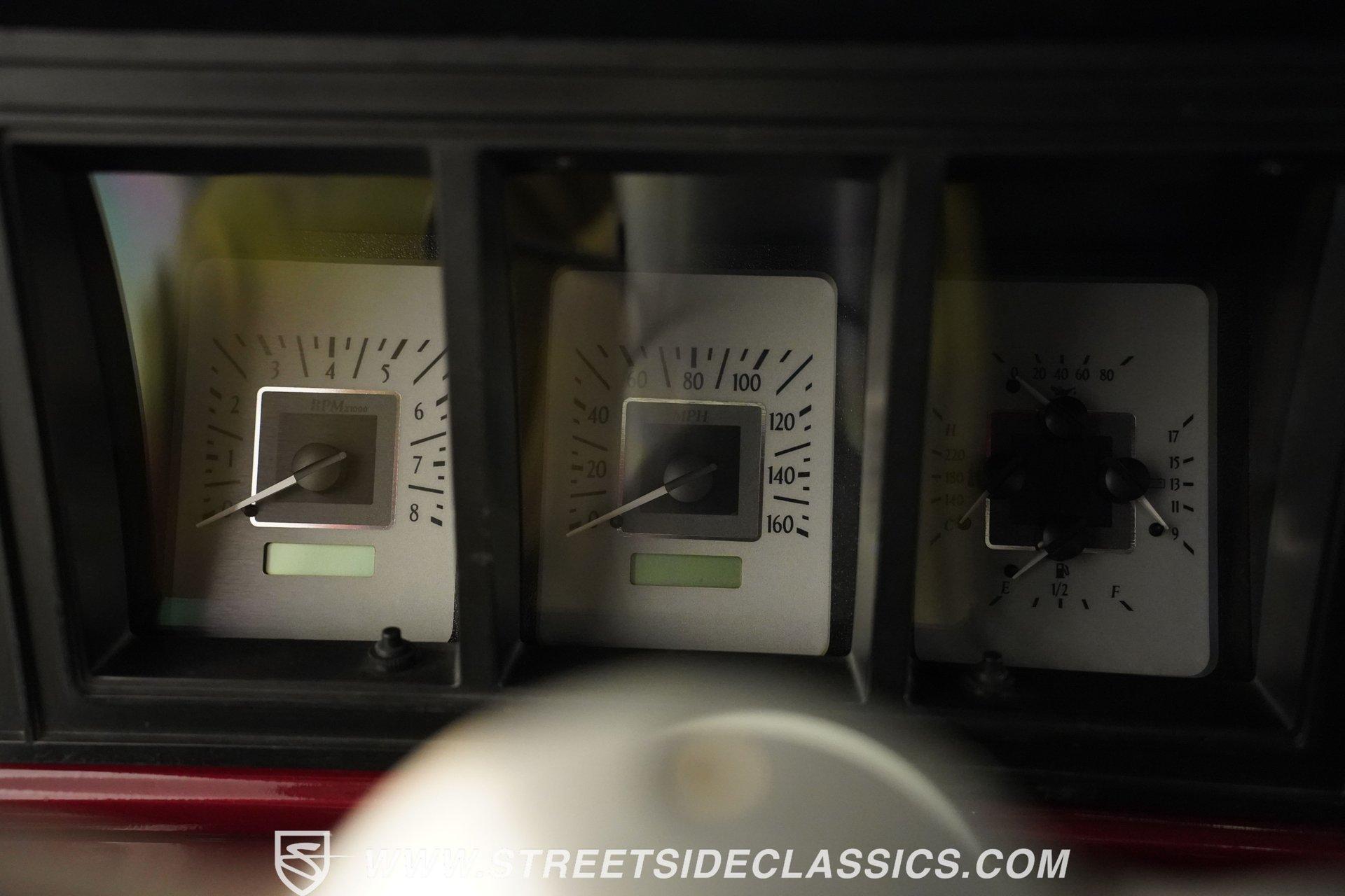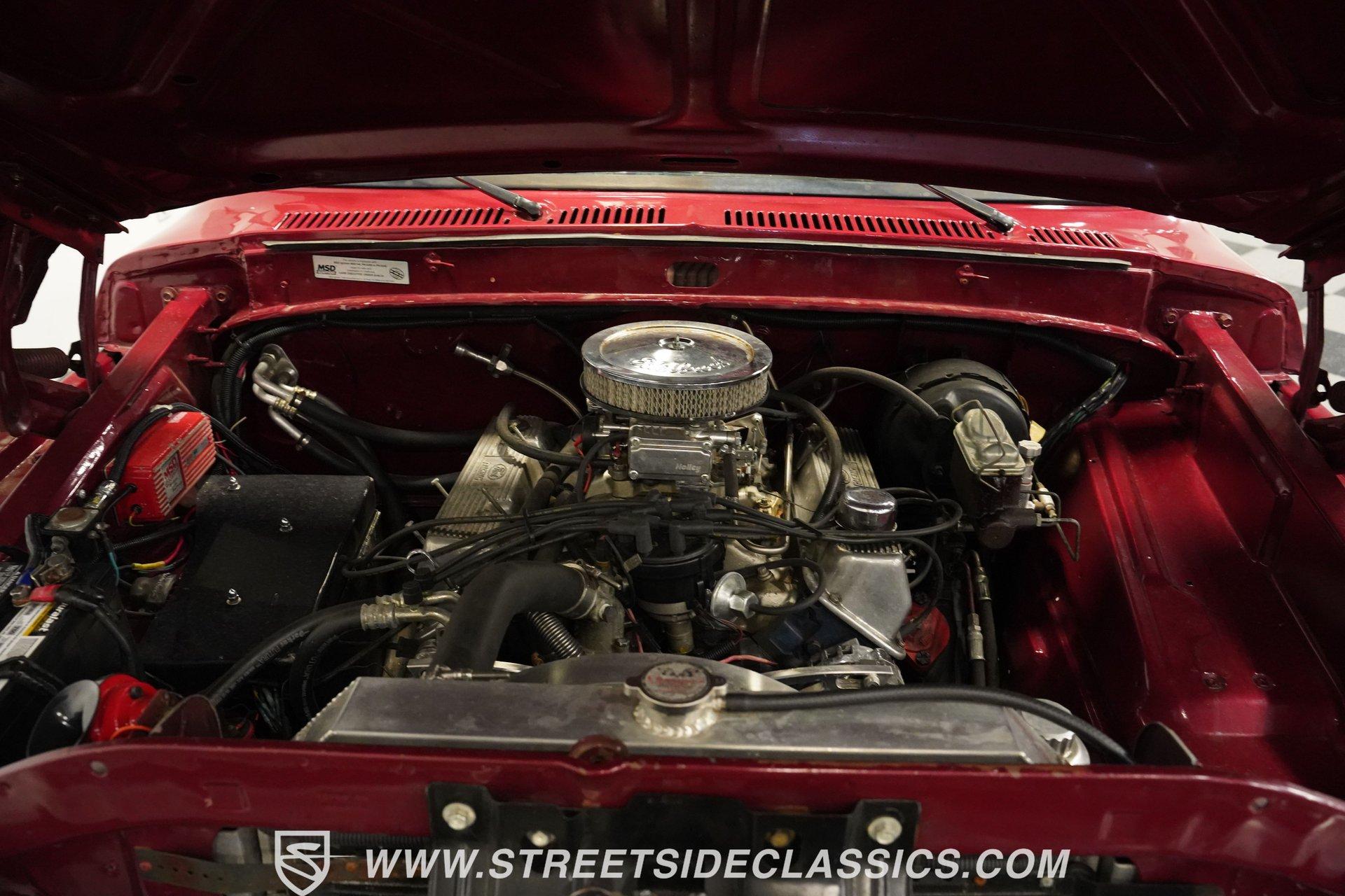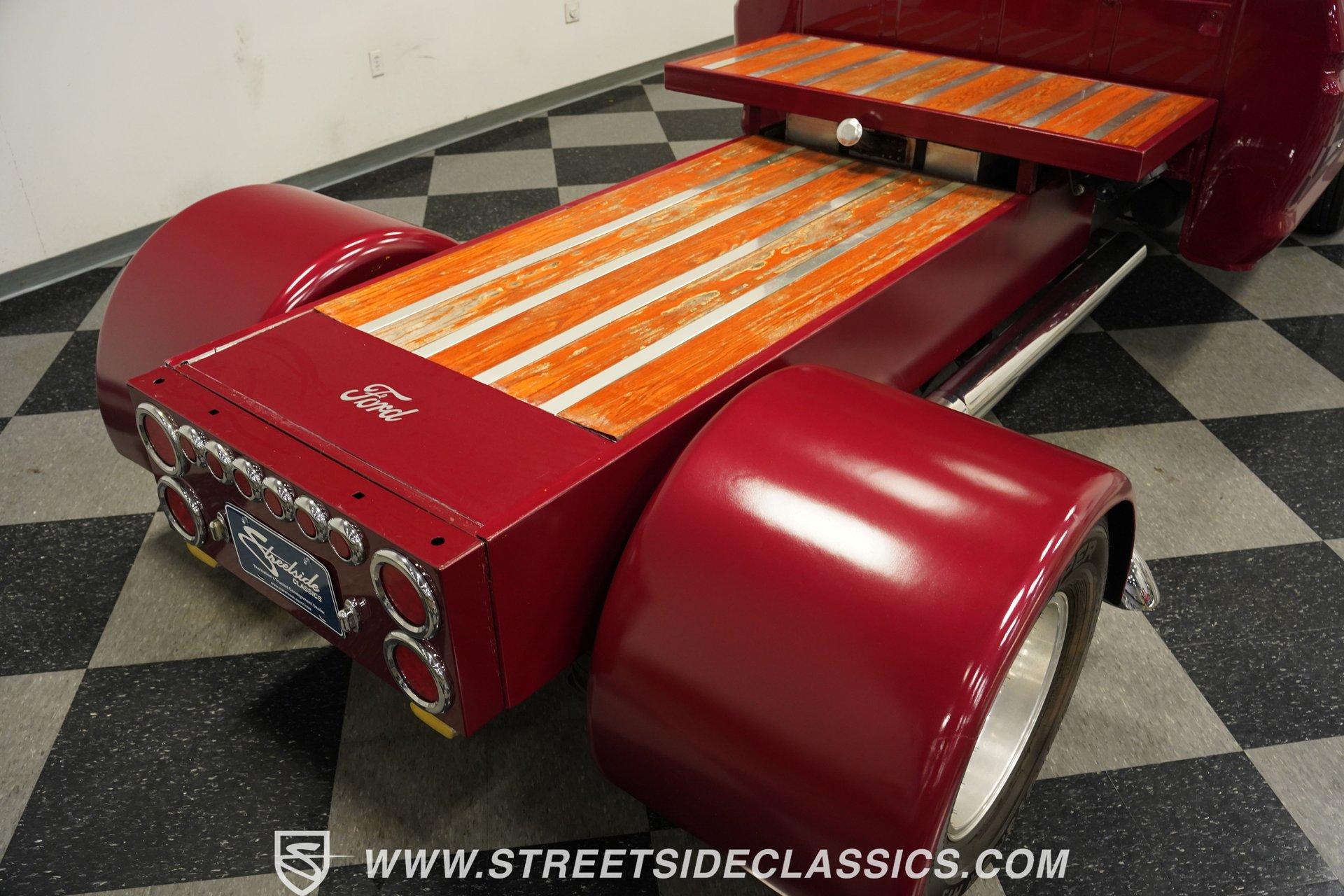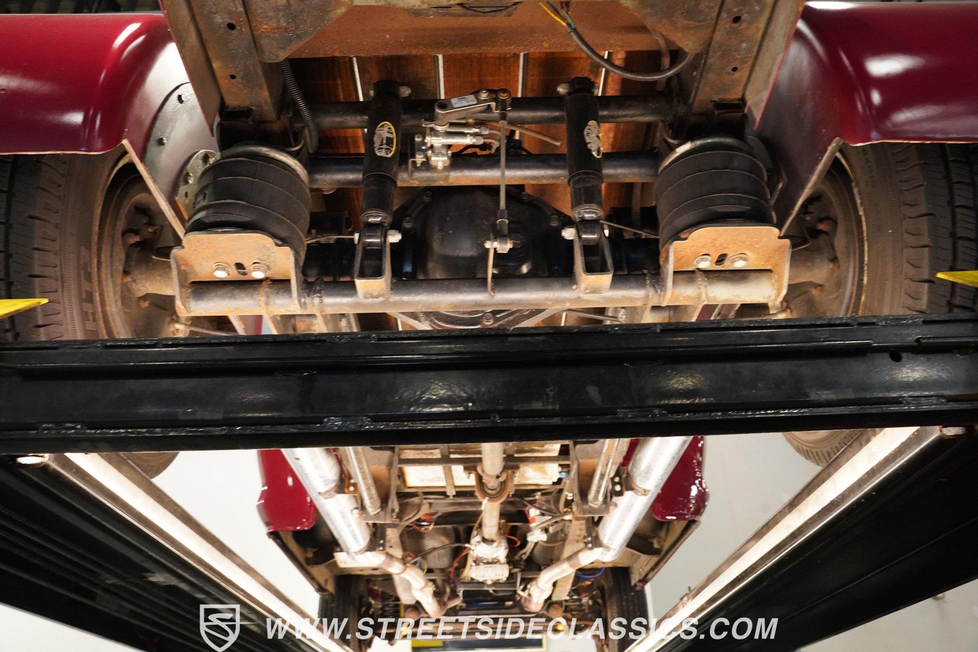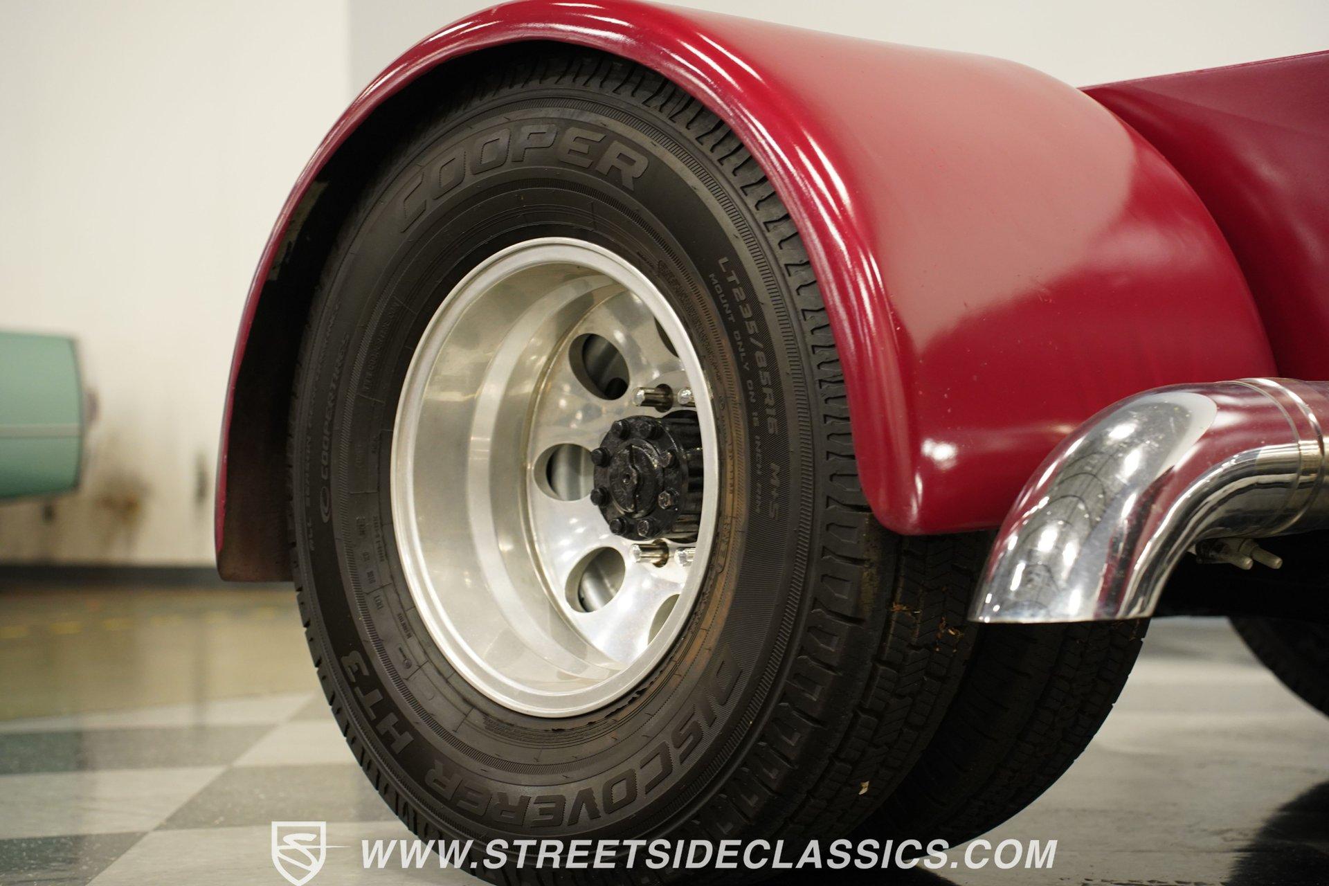 Finished in bold Maroon, this 1974 Ford F-350 Custom Dually carries a squared-up deck built right over the chassis. Cab roof lights add just the right touch of big rig attitude, and clear headlights sharpen the front end. It sits tall on 16" polished aluminum wheels, all wrapped in 235/85R16 tires with the right stance and spacing to make that dual rear axle count. Black vinyl bucket seats fill the cab and kick out the factory bench for something more fitting. A B&M ratchet shifter anchors the floor, while a Billet Specialties steering wheel sits on a tilt column. Digital gauges replace the original cluster, giving the dash a purpose-built upgrade. Above, the custom headliner houses a Bluetooth radio, and a row of toggles wired in above the driver visor runs the ignition and accessories. Power comes from a 400ci V8 with aluminum Ford valve covers, an Edelbrock aluminum intake, Holley 4-barrel carburetor, and MSD ignition. Long tube headers feed a set of dual 5-inch pipes that dump just before the rear wheels. Backing that up is a C6 3-speed automatic paired with a Gear Vendors overdrive. Cooling is handled by an aluminum radiator. The suspension setup features a Twin I-Beam up front and trailing arms with airbags out back. Steering assist and front disc brakes finish the mechanical package. HIGHLIGHTS 400 V8 Engine C6 3-Speed Automatic Transmission Gear Vendors Overdrive Holley 4-Barrel Carburetor Edelbrock Aluminum Intake Aluminum Ford Valve Covers Long Tube Headers Dual Side Exit Exhaust Aluminum Radiator Power Front Disc Brakes Dana 70 Rear End Rear Suspension with Trailing Arms, Shocks, and Airbags Maroon Paint Custom Flat Deck over Boxed Frame Cab Roof Lights 16" Polished Aluminum Wheels IN 235/85R16 Tires Black Interior with Bucket Seats Digital Gauges Power Steering B&M Floor Shifter Billet Specialties Steering Wheel Tilt Steering Column Toggle Switch Ignition System Ceiling-Mounted Bluetooth Radio Large Binder with Receipts Straight-cut and built with muscle in mind, the 1974 Ford F-350 Custom Dually brings a heavy-duty look with a hot rod soul. It's got presence, style, and all the hardware to match. Call today!