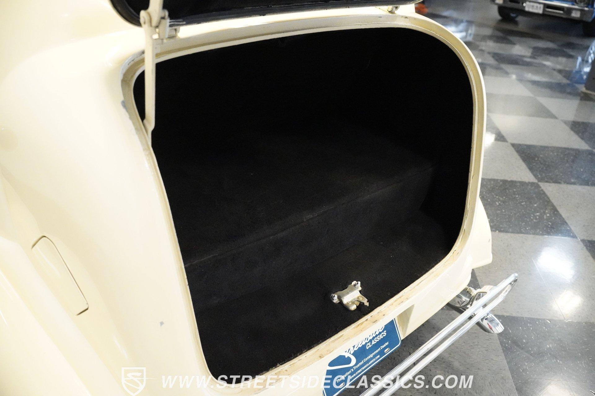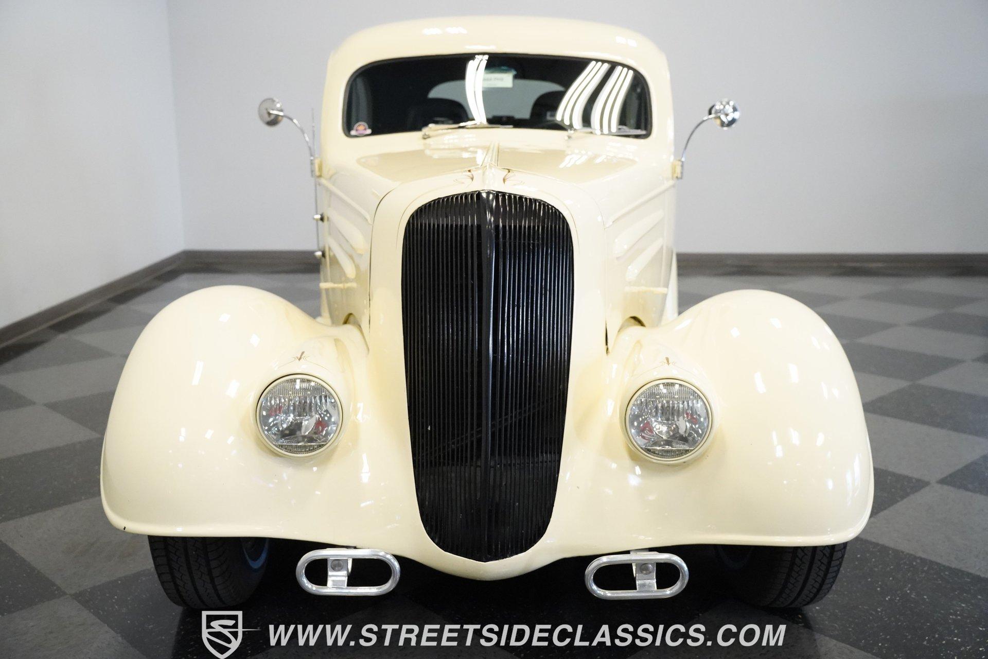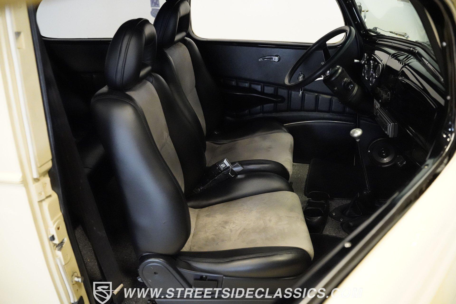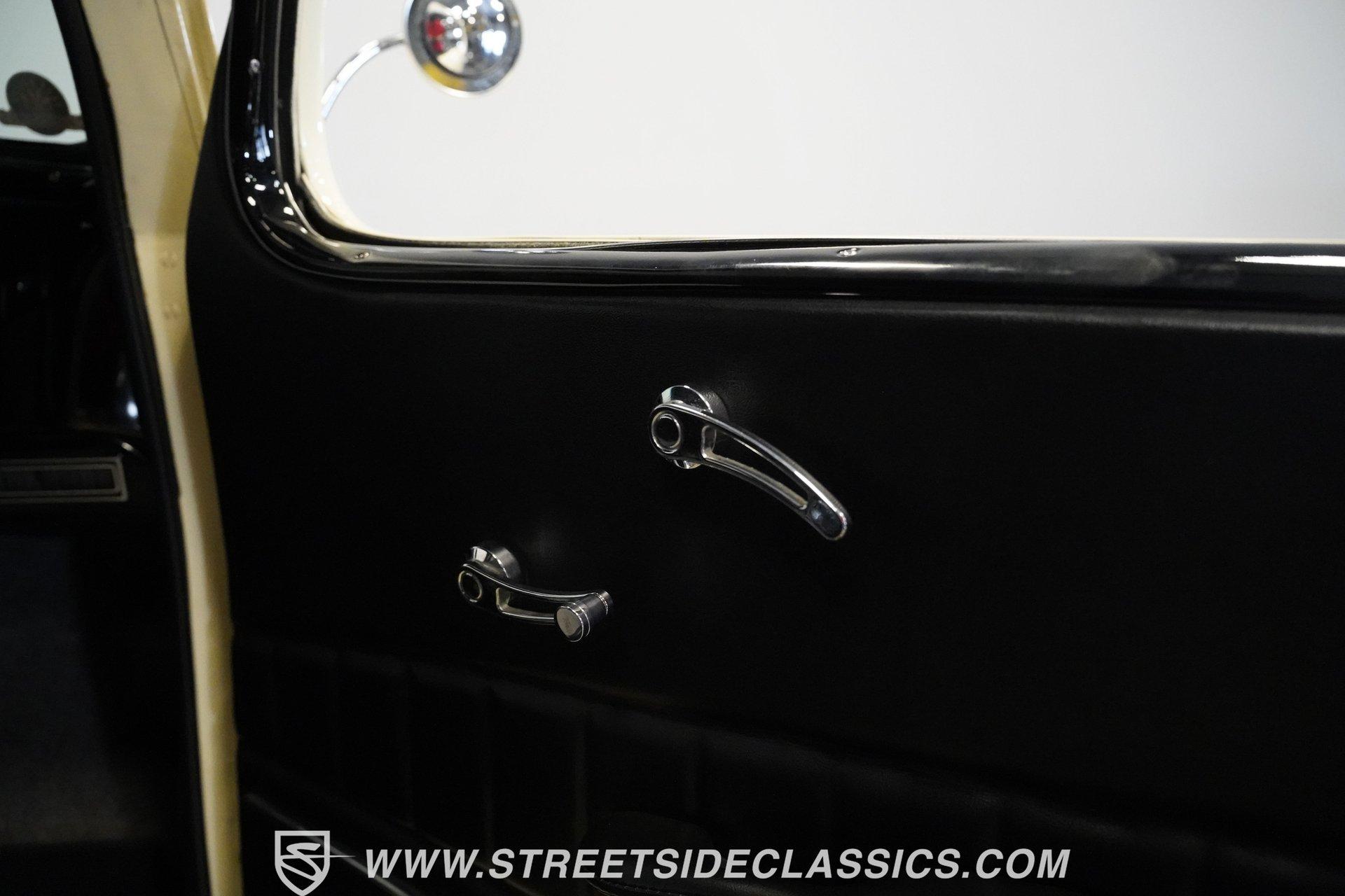 Custom modifications abound on this rare 1936 Chevrolet Master, painted in cream and enhanced with detailed pinstriping across its body. The front fenders house integrated headlights for a cleaner look, while the blacked-out grille adds contrast to the exterior. The door handles have been shaved for a smoother appearance. Several upgrades include a one-piece windshield, integrated gas cap, and unique tail lights that set it apart. The 15" American Racing aluminum wheels are fitted with 205/75R15 Uniroyal Tigerpaw tires that grip the road effectively. Black vinyl and gray suede cover the interior, creating a unified theme from front to back. Bucket seats provide support up front, with a matching vinyl rear bench for passengers. The black custom-painted dash contains clear gauges that monitor essential functions. A tilt steering column adds driving comfort, and an AM/FM CD player supplies music during travel. Black carpeting with matching floor mats lines the floor, while door panels finished in black vinyl complete the well-executed cabin design. The 350 cubic inch V8 engine comes equipped with an Edelbrock 4-barrel carburetor mounted on an Edelbrock intake manifold. A 700R4 4-speed automatic transmission handles gear changes efficiently. The upgraded front suspension uses an independent setup with tubular upper and lower control arms, coilovers, and rack and pinion steering for responsive handling. At the rear, a 9" Ford axle with leaf springs and air shocks manages the load. With four-wheel power disc brakes and dual exhaust with street flow mufflers. HIGHLIGHTS: 350 V8 Engine 700R4 4-Speed Automatic Transmission Edelbrock 4-Barrel Carburetor Edelbrock Intake Manifold Four-Wheel Power Disc Brakes Independent Front Suspension with Tubular Control Arms 9" Rear End with Leaf Springs and Air Shocks Dual Exhaust with Street Flow Mufflers Cream Exterior Paint Custom Pinstriping 15" American Racing Aluminum Wheels 205/75R15 Uniroyal Tigerpaw Tires Shaved Door Handles Integrated Headlights Custom Front Fenders One-Piece Windshield Integrated Gas Cap Custom Tail Lights Blacked-Out Front Grille Black with Gray Suede Interior with Bucket Seats Rear Bench Seat Custom Black Dash Custom Gauges Tilt Steering Column Power Steering AM/FM CD Player Featuring a mix of 1930s styling and modern performance, the 1936 Chevrolet Master gives you V8 power and upgraded driving dynamics. The tasteful exterior mods and comfortable interior make for an enjoyable classic Chevy you can drive anywhere. Call today!