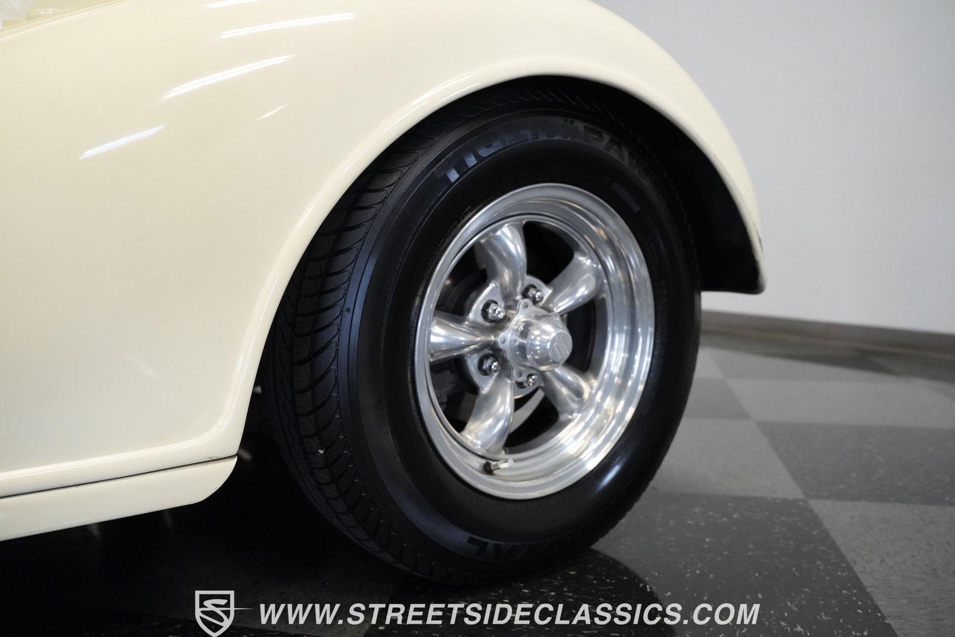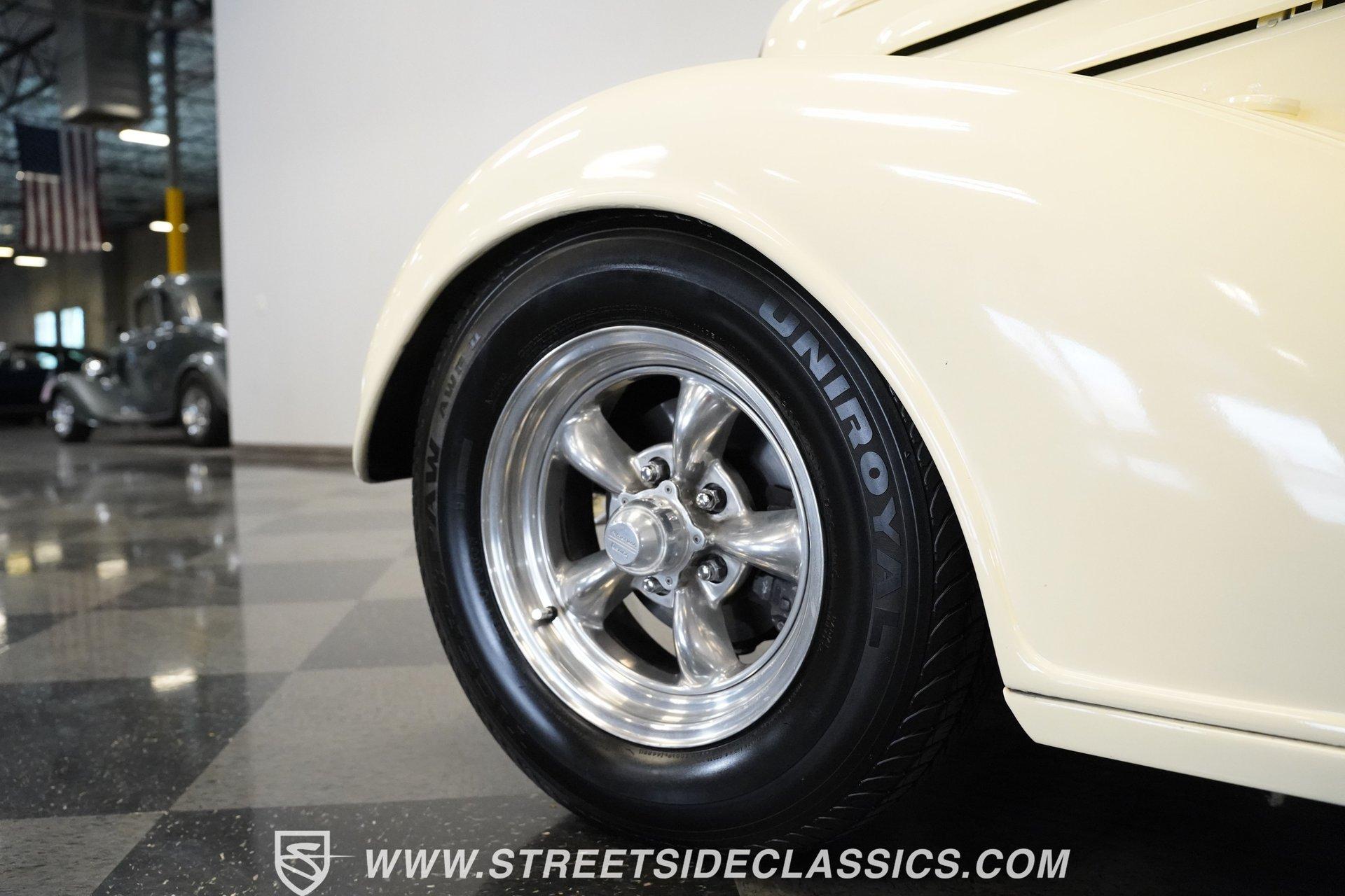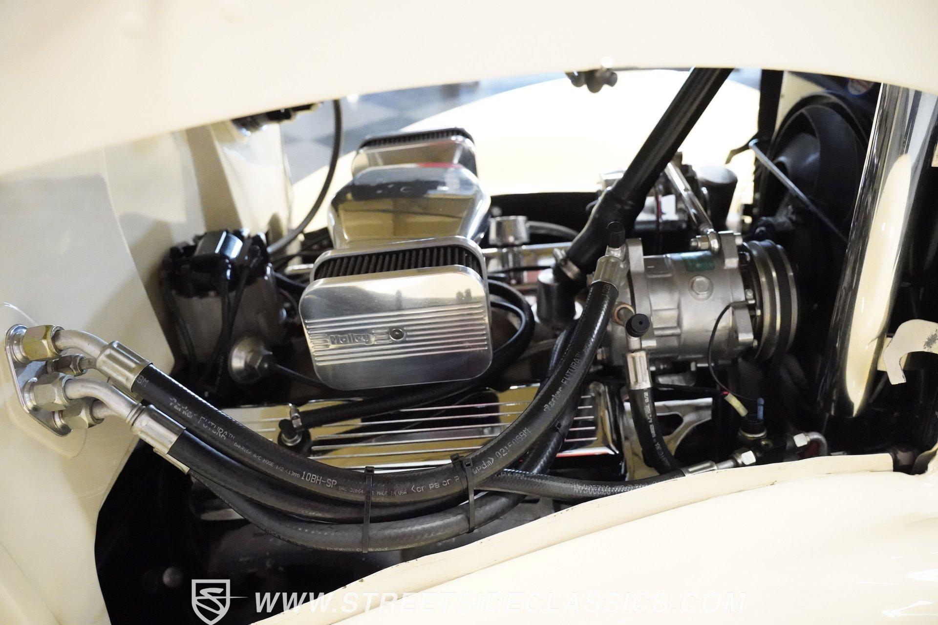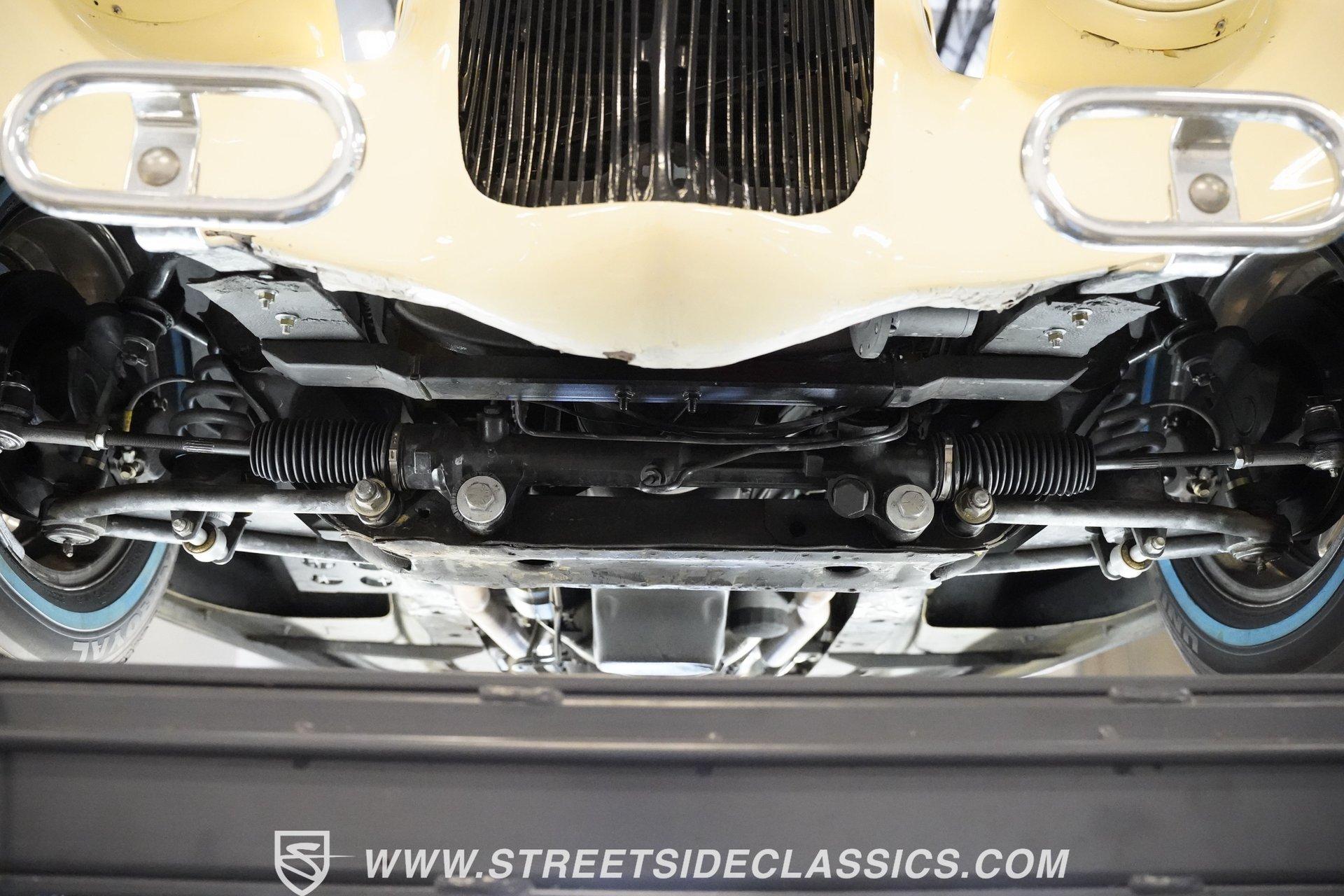 Custom modifications abound on this rare 1936 Chevrolet Master, painted in cream and enhanced with detailed pinstriping across its body. The front fenders house integrated headlights for a cleaner look, while the blacked-out grille adds contrast to the exterior. The door handles have been shaved for a smoother appearance. Several upgrades include a one-piece windshield, integrated gas cap, and unique tail lights that set it apart. The 15" American Racing aluminum wheels are fitted with 205/75R15 Uniroyal Tigerpaw tires that grip the road effectively. Black vinyl and gray suede cover the interior, creating a unified theme from front to back. Bucket seats provide support up front, with a matching vinyl rear bench for passengers. The black custom-painted dash contains clear gauges that monitor essential functions. A tilt steering column adds driving comfort, and an AM/FM CD player supplies music during travel. Black carpeting with matching floor mats lines the floor, while door panels finished in black vinyl complete the well-executed cabin design. The 350 cubic inch V8 engine comes equipped with an Edelbrock 4-barrel carburetor mounted on an Edelbrock intake manifold. A 700R4 4-speed automatic transmission handles gear changes efficiently. The upgraded front suspension uses an independent setup with tubular upper and lower control arms, coilovers, and rack and pinion steering for responsive handling. At the rear, a 9" Ford axle with leaf springs and air shocks manages the load. With four-wheel power disc brakes and dual exhaust with street flow mufflers. HIGHLIGHTS: 350 V8 Engine 700R4 4-Speed Automatic Transmission Edelbrock 4-Barrel Carburetor Edelbrock Intake Manifold Four-Wheel Power Disc Brakes Independent Front Suspension with Tubular Control Arms 9" Rear End with Leaf Springs and Air Shocks Dual Exhaust with Street Flow Mufflers Cream Exterior Paint Custom Pinstriping 15" American Racing Aluminum Wheels 205/75R15 Uniroyal Tigerpaw Tires Shaved Door Handles Integrated Headlights Custom Front Fenders One-Piece Windshield Integrated Gas Cap Custom Tail Lights Blacked-Out Front Grille Black with Gray Suede Interior with Bucket Seats Rear Bench Seat Custom Black Dash Custom Gauges Tilt Steering Column Power Steering AM/FM CD Player Featuring a mix of 1930s styling and modern performance, the 1936 Chevrolet Master gives you V8 power and upgraded driving dynamics. The tasteful exterior mods and comfortable interior make for an enjoyable classic Chevy you can drive anywhere. Call today!