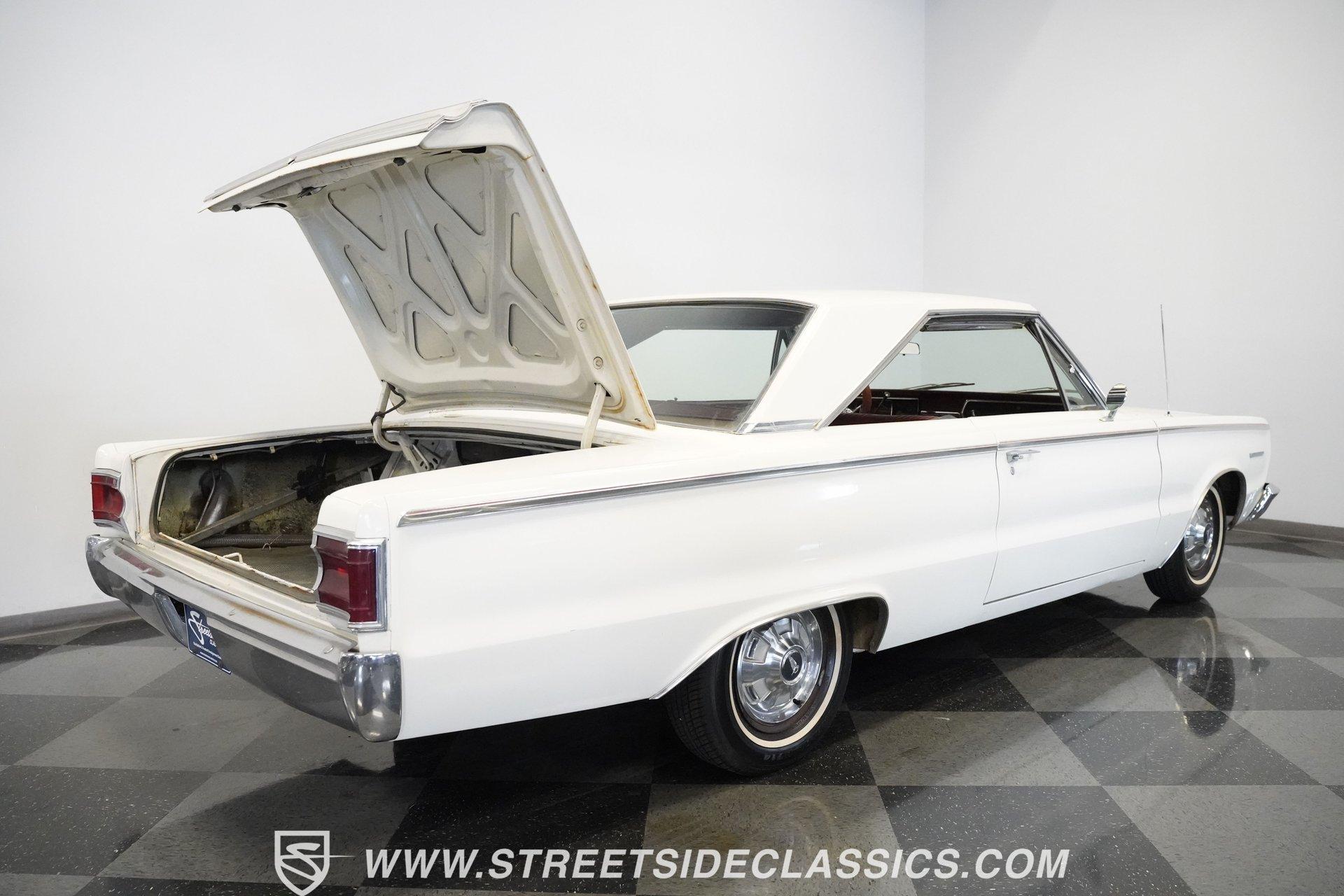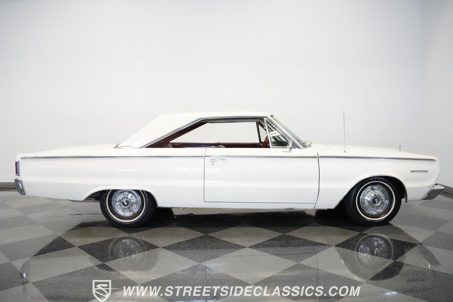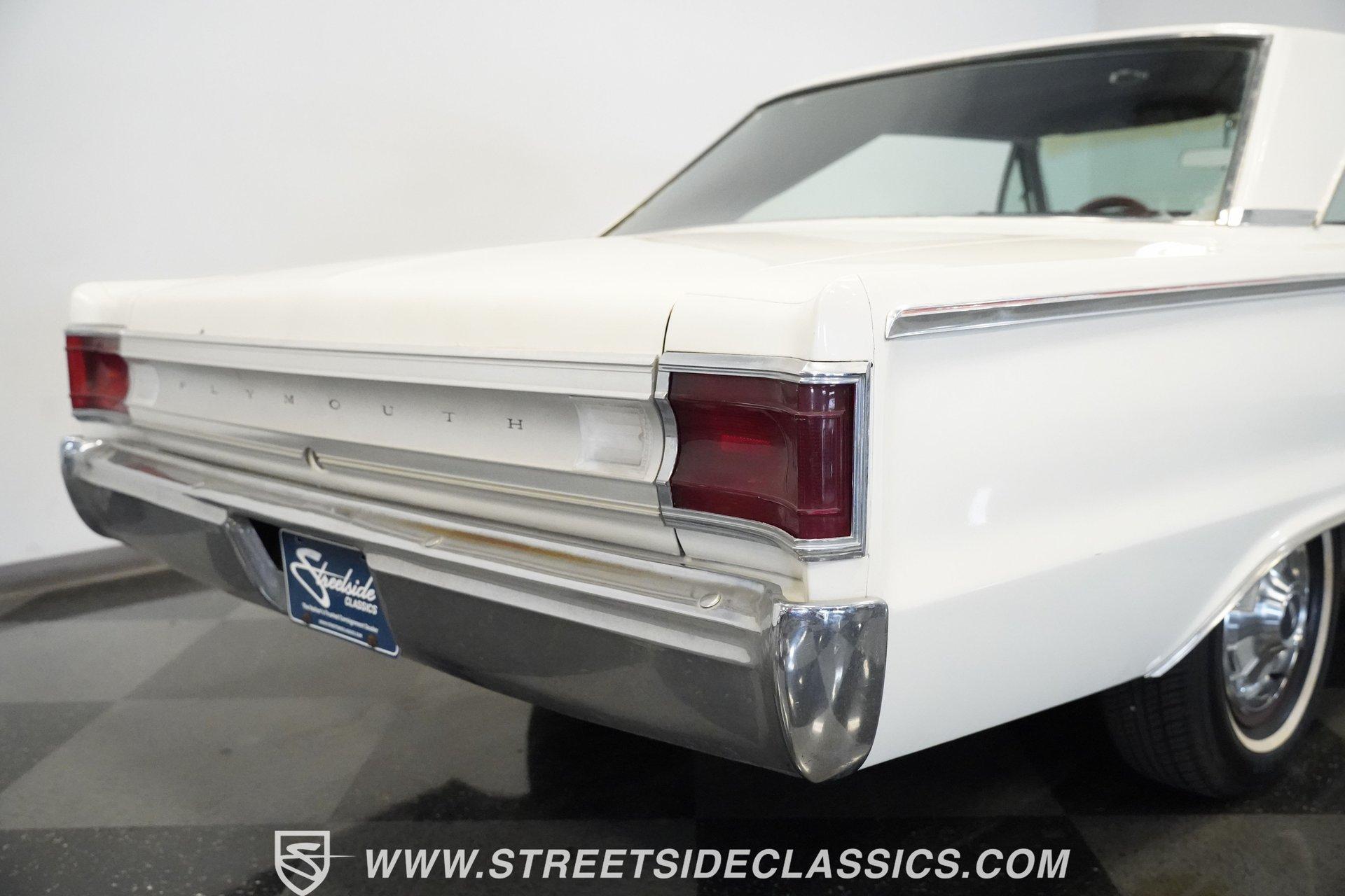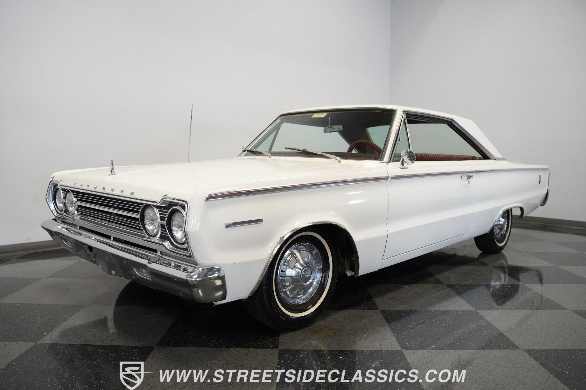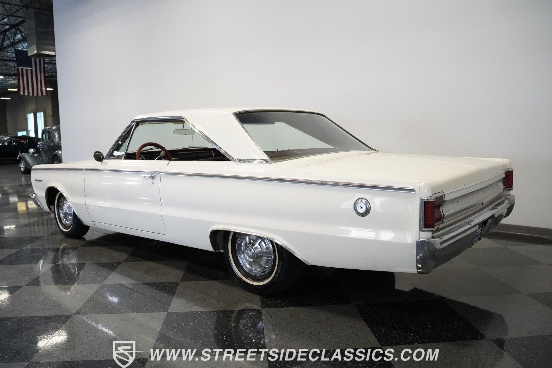 Wide-bodied and full-sized, the 1967 Plymouth Belvedere comes coated in white paint with clean overall appearance. A two-door hardtop with a proper mid-60s Mopar layout, this Belvedere sports the long hood to short deck ratio that made Plymouth famous. The factory-correct 14" steel wheels hold hubcaps that match the original look, with 205/75R14 Hankook tires making contact with the road. Chrome trim and bumpers provide contrast against the white paint, creating a complete package that shows off the straight body lines and classic design. Red vinyl upholstery fills the cabin with brightness that jumps against the white exterior. Both front and rear bench seats offer comfortable seating for passengers while staying true to the original design. The dashboard contains standard gauges that monitor the basic functions of the vehicle. An AM radio provides some entertainment during cruises. The column shifter for the automatic transmission keeps the floor space open for more legroom. Power steering allows for easier handling of this full-size Plymouth, and seatbelts add safety for all occupants. A 318 cubic inch V8 occupies the engine bay, featuring the factory-correct single Carter 2-barrel carburetor mounted on the stock manifold. Dating from February 17, 1967, according to the 21767 date code, with casting number 2536030 318-5, this motor is all Mopar. The A727 Torqueflite 3-speed automatic transmission shifts through the gears with mechanical efficiency. Suspension consists of independent front with torsion bars and solid axle rear with leaf springs, combined with an 8 3/4 rear end. Drum brakes at all corners provide stopping capability. HIGHLIGHTS: 318 V8 Engine Carter Carburetor 3-Speed A727 Torqueflite Automatic Transmission Independent Front Suspension with Torsion Bars Solid Axle Rear Suspension with Leaf Springs 8 3/4 Rear Axle Drum Brakes White Exterior Paint 2-Door Hardtop 14" Steel Wheels with Factory-Style Hubcaps 205/75R14 Hankook Tires Red Vinyl Interior with Bench Seats Column-Mounted Shifter Power Steering AM Radio Owner's Manual From the white exterior to the red interior, from the 318 V8 to the A727 transmission, the 1967 Plymouth Belvedere gives you classic American motoring. Full-sized comfort meets straight-line power in this white-on-red hardtop, offering an authentic slice of 60s Mopar muscle. Call today!
