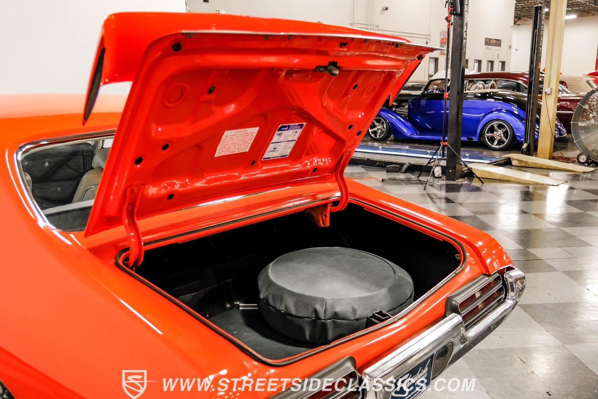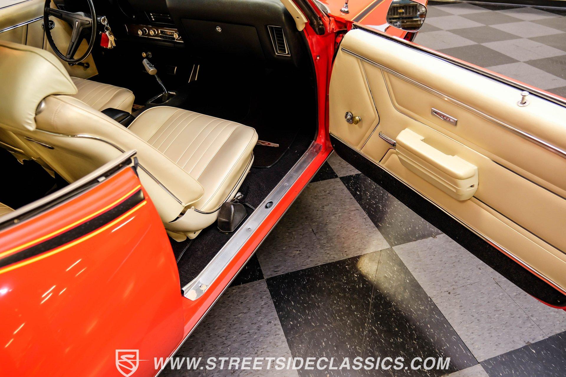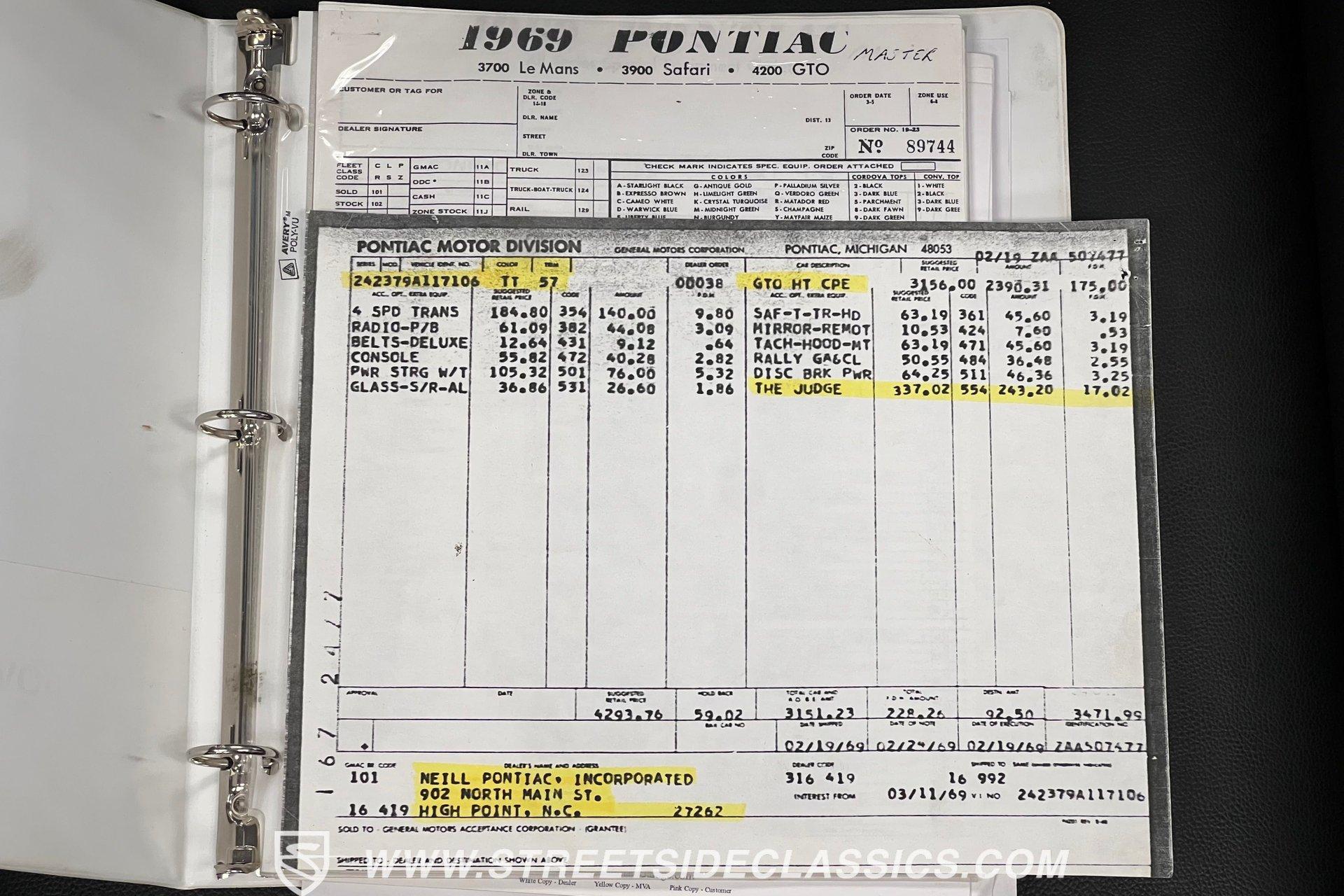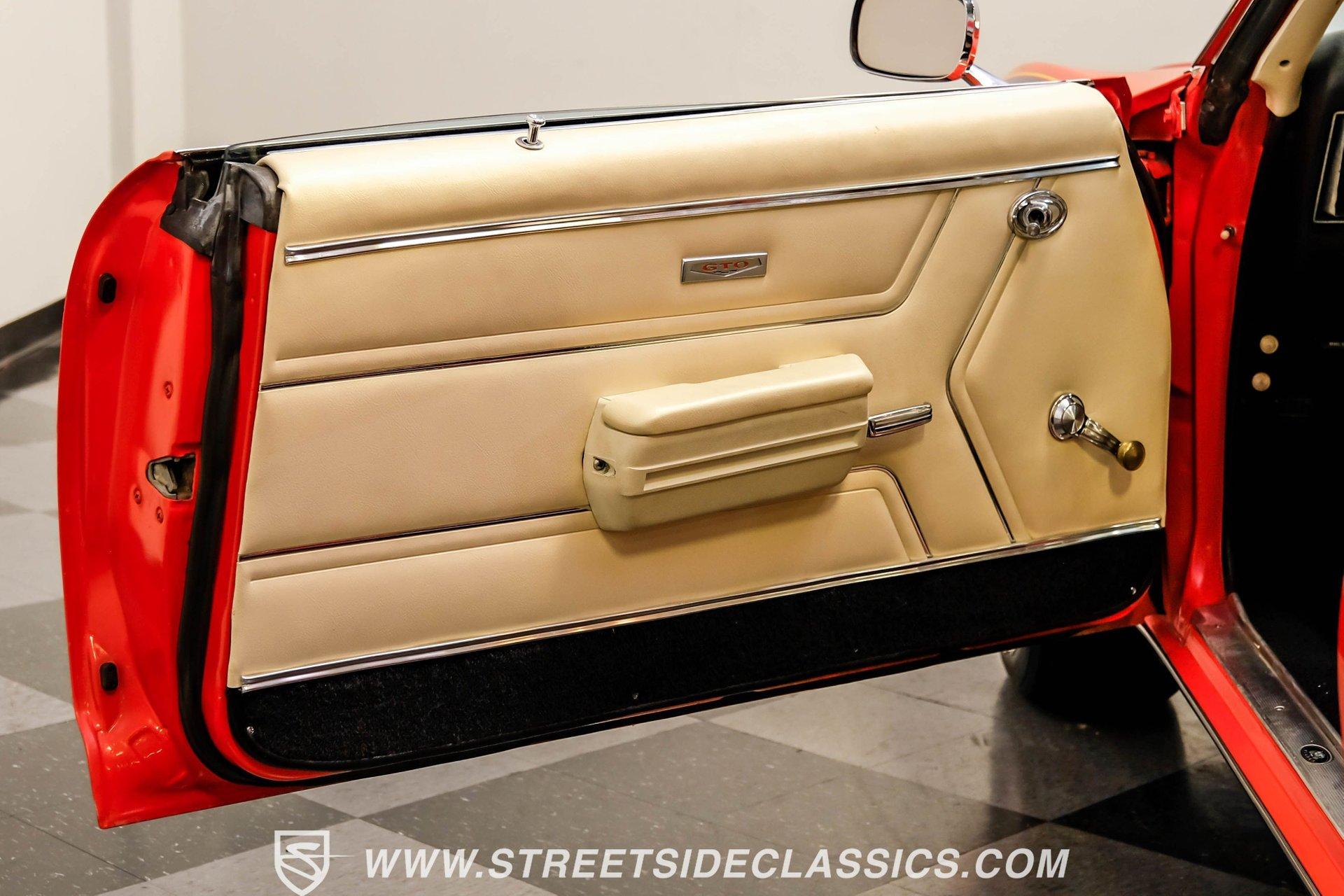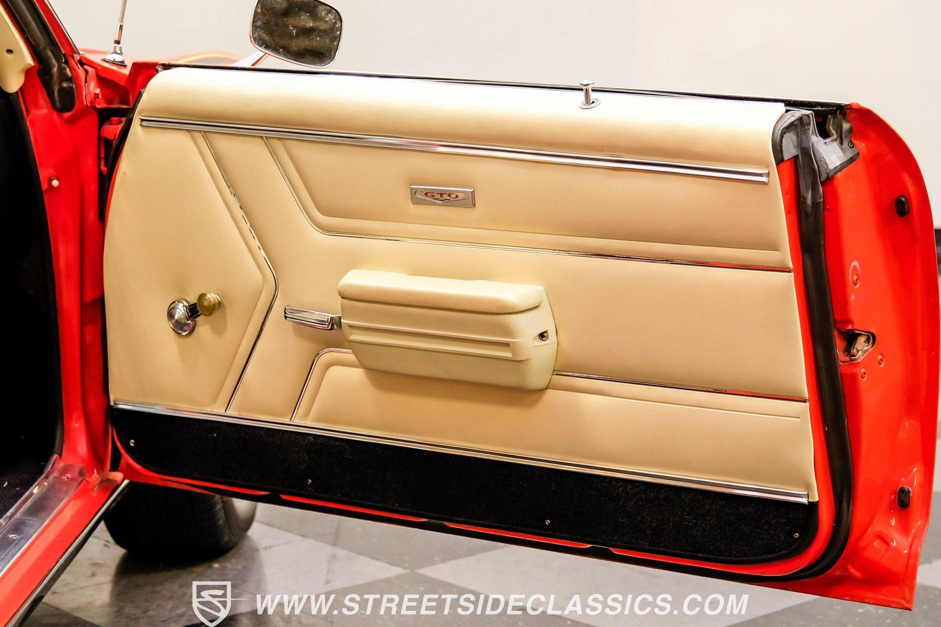 When it comes to collectible cars, the criteria by which we judge a vehicle can vary from person to person. However, almost all enthusiasts can agree that authenticity counts for a great deal. That's why, when a car like this numbers-matching 1969 Pontiac GTO Judge comes along with its official Pontiac Historic Services documentation, the verdict is a unanimous mix of awe and excitement. Fully repainted in its original Carousel Red, the muscular lines of this Judge present a compelling case for why this GTO may just be the G.O.A.T. of Goats. Inside, we find a stock and correctly outfitted interior, featuring an inviting Parchment and black motif, complemented by a touch of woodgrain trim along the dash. A three-pod Rally gauge cluster sits front and center of the power-assisted (and rare) wooden three-spoke steering wheel, featuring (from left to right) a multi-purpose fuel/oil/temperature readout, a big 140 mph speedometer, and a unique and equally large analog clock closest to the passenger side. If you're unfamiliar with the GTO, you might be asking yourself, "But where is the tach?" You need only look just above the dashboard and out the windshield to find an ingenious hood-mounted 8,000 rpm external tachometer, which not only looks unbelievably cool but makes it that much easier to keep your eyes on the fast-approaching road while still being able to hit that perfect 1-2 shift courtesy of a Hurst T-bar handle. The factory console and matching carpets and Vintage brand air conditioning add a touch of comfort. At the same time, the original AM radio remains on display, because, if we're honest, you'll never get tired of listening to that rumble emanating from the dual exhaust just beneath you anyway. Under that dual nostril, we find a clean engine bay, home to a functional Ram Air system. Beneath that curiously clever air-cleaner power package, we find a numbers-matching 400 cubic-inch Ram Air III V-8 engine. Topped with a single four-barrel Rochester Quadrajet carburetor, this mighty motor made use of a 10.75:1 compression ratio to pump out an advertised 366 horsepower and 445 pound-feet of torque. That prodigious power is routed through a numbers-matching Muncie four-speed manual transmission before being sent out to the original factory ten-bolt Safe-T-Trak rear end. Thanks to Positraction, those ponies are transferred to the pavement via a set of correct 15-inch Rally II wheels shod in staggered BFGoodrich tires measuring 245/60R-15. In contrast, a narrower 235/60R-15 set handles steering duties up front while simultaneously adding to this GTO's aggressive muscle car stance. HIGHLIGHTS: Authentic GTO Judge PHS Certified Numbers Matching Ram Air III V8 Numbers Matching Muncie 4 Speed Functional Ram Air Hood Correct Carousel Red Repaint Correct Parchment Vinyl Interior Hurst Shifter Rally Dash Hood Tach Vintage AC Power Steering Power Brakes Front Disc Brakes Safe T Track Rear Receipts Rare and Real Car Riding on a heavy-duty suspension upgraded with higher-rate springs and stiffer shocks, this 1969 Pontiac GTO Judge was capable of cornering markedly better than the base model, while a set of power brakes featuring front discs reins in speed at a moment's notice. While deliberating on which Golden Age muscle car is the best will likely end in a deadlock, there is no debate that this PHS-certified, numbers-matching authentic Judge will go a long way to endow its next owner with life, liberty, and especially the pursuit of happiness. And in the court of public opinion, the only thing you'll be guilty of (provided you keep your eye on the speedometer) is inspiring fits of jealousy anywhere you go behind the wheel of this undeniably amazing and rare machine. Don't wait, call today!