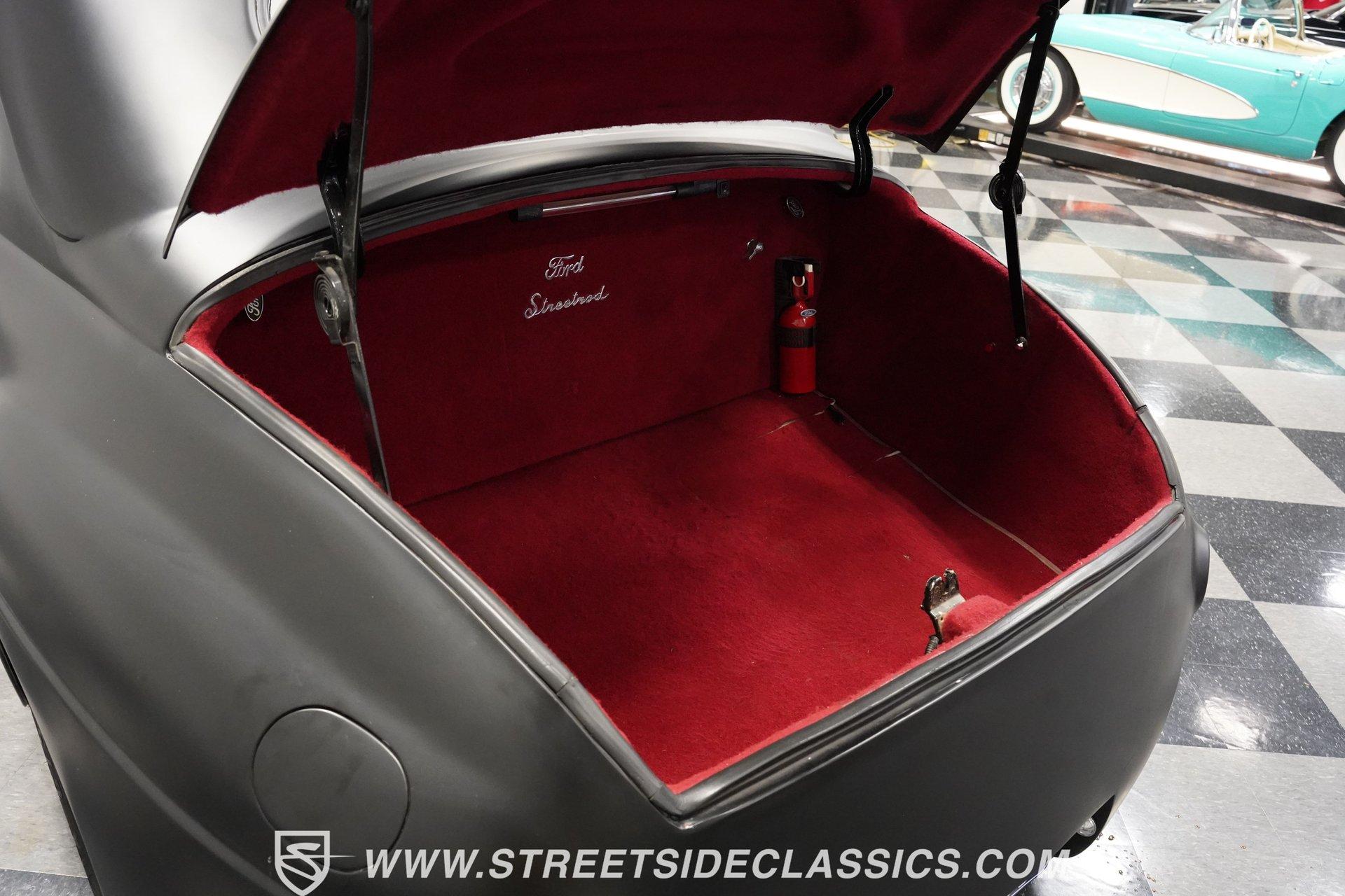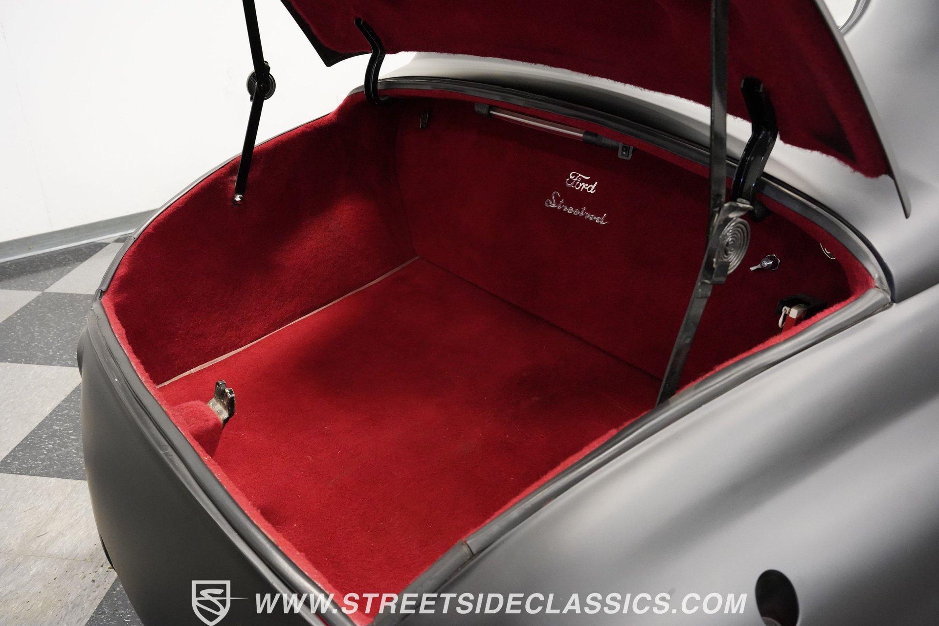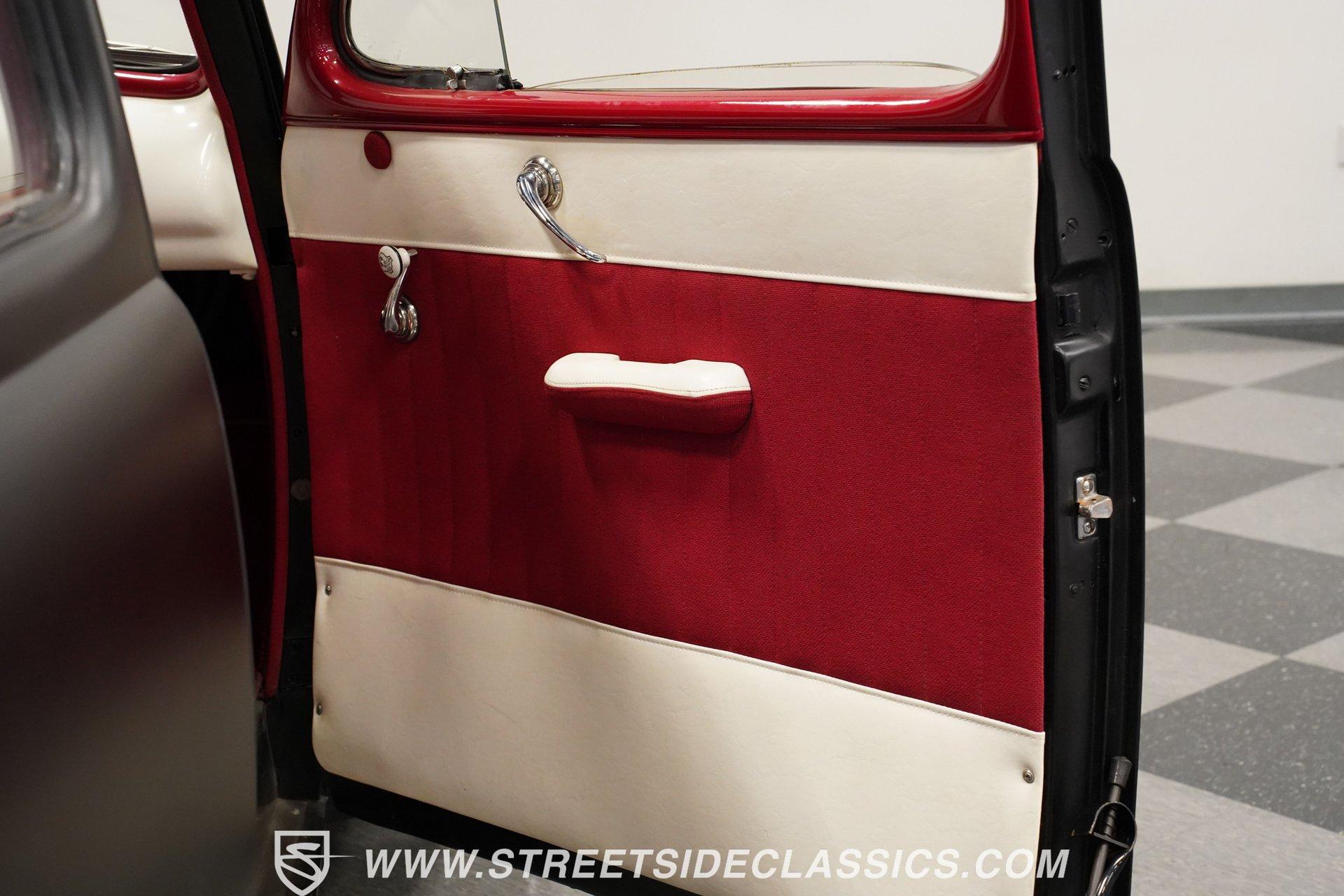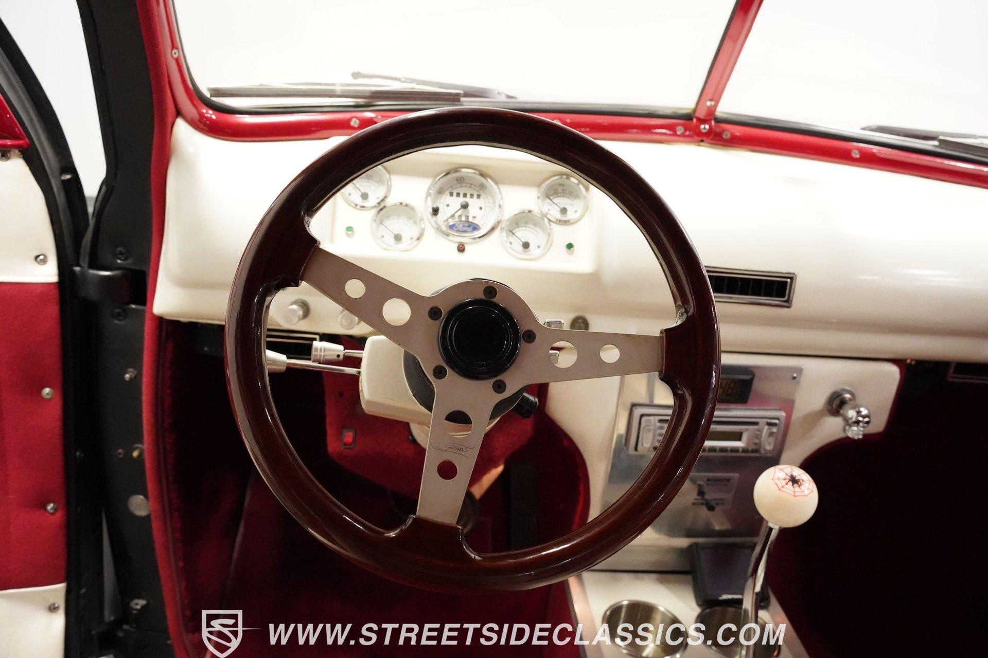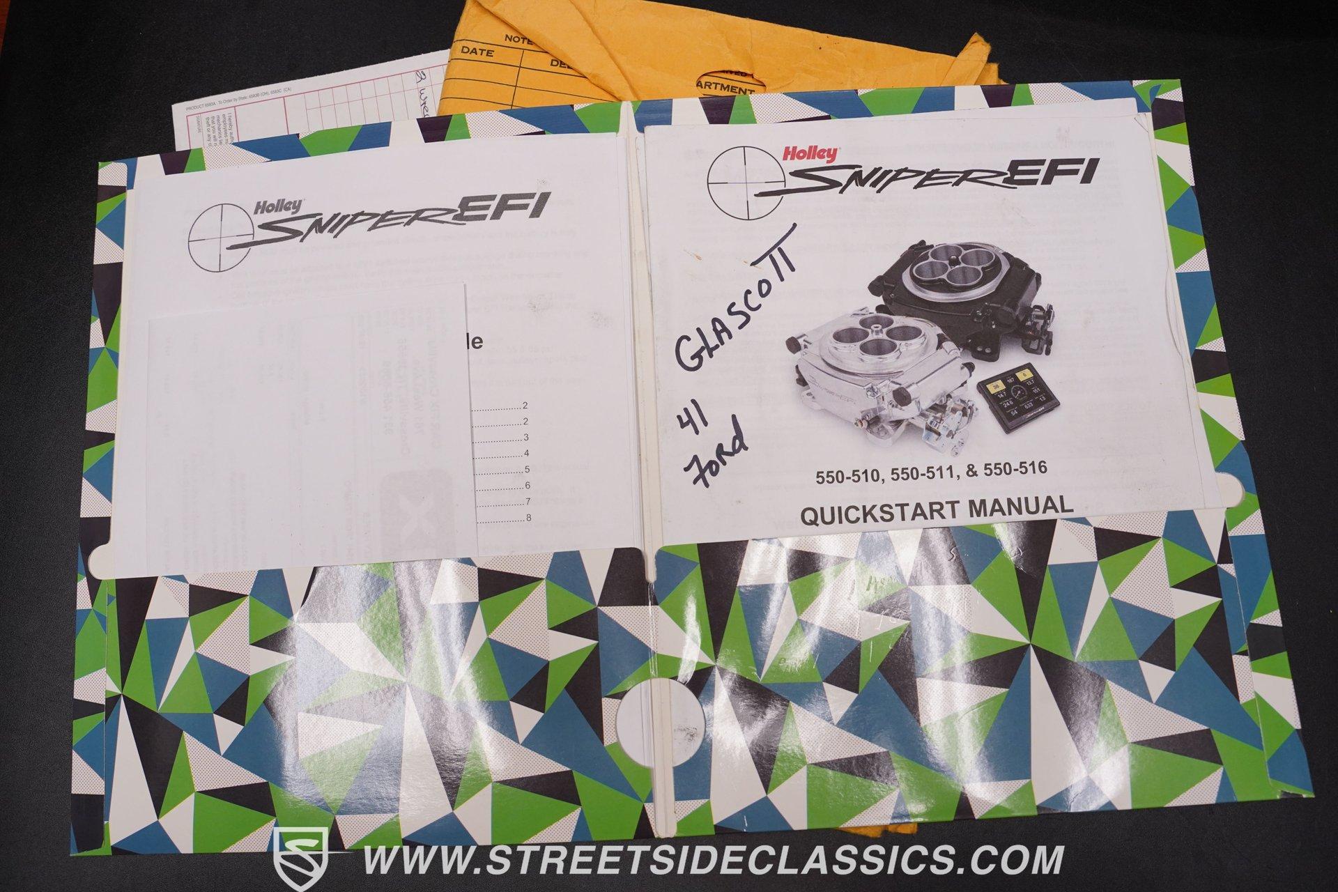 From hot rod culture to modern street machine, this 1941 Ford Coupe sports custom bodywork painted in matte black with silver flames accenting the sides. The modified exterior features custom rear tail lights, a frenched antenna, and a frenched license plate with deleted bumpers for a clean look. The low-slung profile comes from a carefully adjusted suspension that gives this Ford an authentic hot rod appearance. Rolling on 15" wheels with 185/65R15 front and 255/70R15 rear tires, this coupe maintains proper proportions while adding contemporary street cred to a classic American design. Open the doors to reveal a red and white two-tone interior that combines style with function. The vinyl and cloth bucket seats provide comfort during long drives while maintaining the proper hot rod aesthetic. VDO gauges mounted in the custom dashboard display all vital information clearly. The floor shifter puts control directly where you need it. Comfort comes standard with air conditioning for year-round enjoyment. The AM/FM radio with CD player allows for perfect cruising music, while the remote door openers add modern convenience to this classic package. A 383 Stroker V8 sits front and center, equipped with Holley Sniper electronic fuel injection and an Edelbrock intake for reliable performance. The TH350 3-speed automatic transmission transfers power efficiently to the 10-bolt rear axle. Long tube headers connect to a dual exhaust system with FlowMaster mufflers for a distinctive sound. The chassis features a Chevrolet front end with coils and shocks, while the rear utilizes leaf springs with shocks, lowered by approximately 2 inches on blocks. Power steering and power disc brakes provide excellent control and stopping ability. HIGHLIGHTS: 383 Stroker V8 Engine Holley Sniper Electronic Fuel Injection Edelbrock Intake TH350 3-Speed Automatic Transmission Long Tube Headers Dual Exhaust with FlowMaster Mufflers 10 Bolt Rear Axle Front Power Disc Brakes Chevrolet Front Suspension Matte Black Paint with Silver Flames Custom Rear Tail Lights Frenched Antenna Frenched License Plate 15" Wheels in 185/65R15 Front, 255/70R15 Rear Tires Red and White Two-Tone Interior Vinyl and Cloth Bucket Seats VDO Gauges Floor Shifter Air Conditioning AM/FM Radio with CD Player Power Steering Remote Door Openers A well-executed blend of classic styling and modern performance make this 1941 Ford Coupe an outstanding custom ride. With its 383 Stroker V8, custom paint scheme, and fully updated mechanical systems, you'll appreciate every mile behind the wheel. Call today!