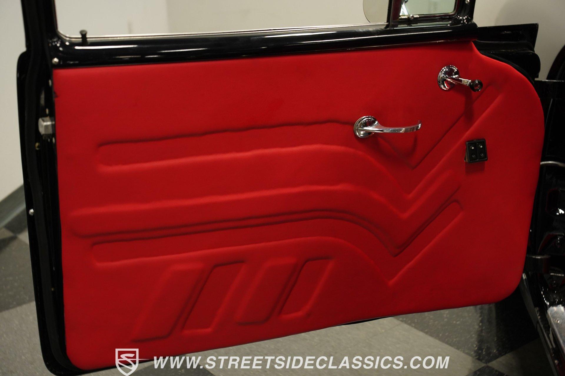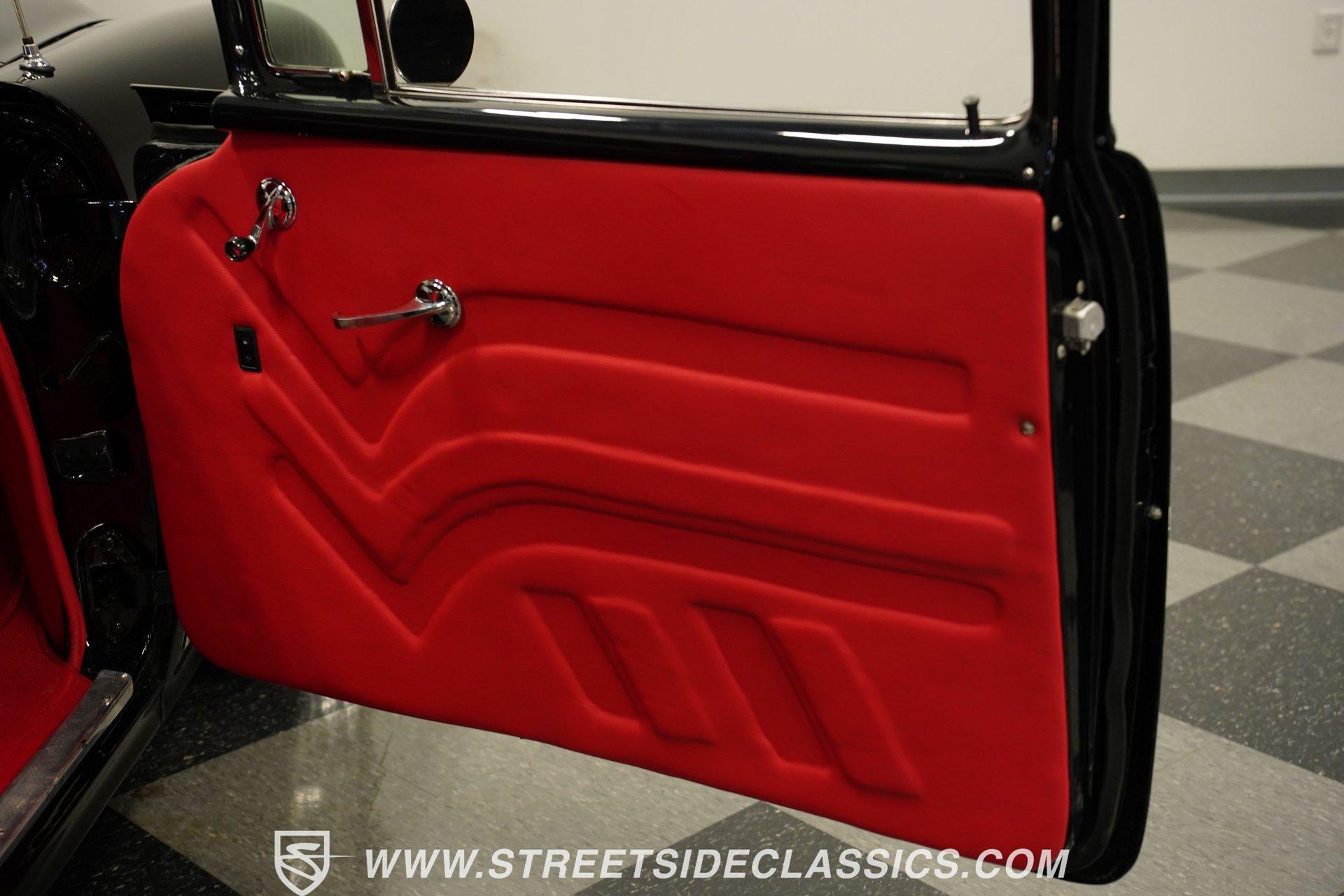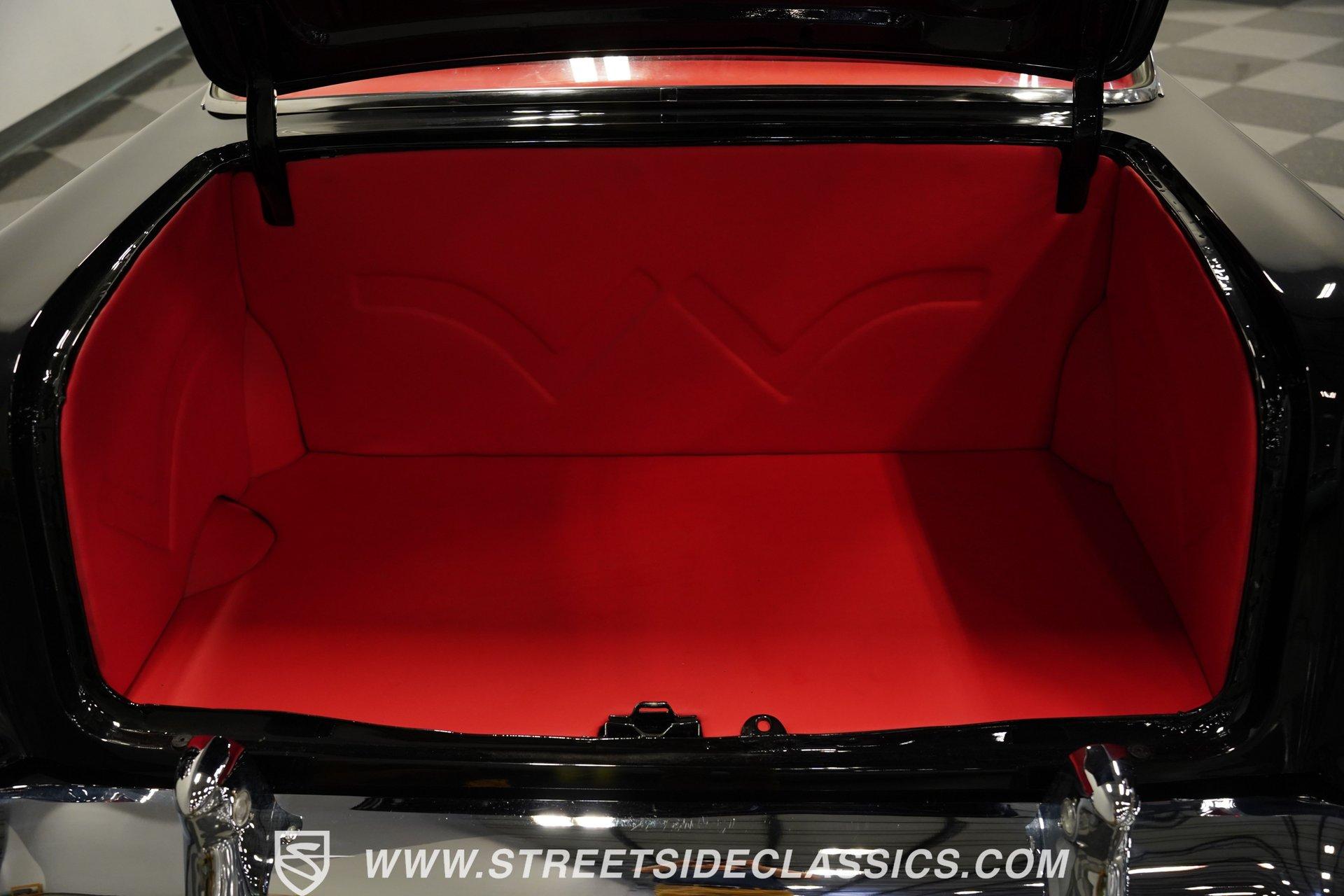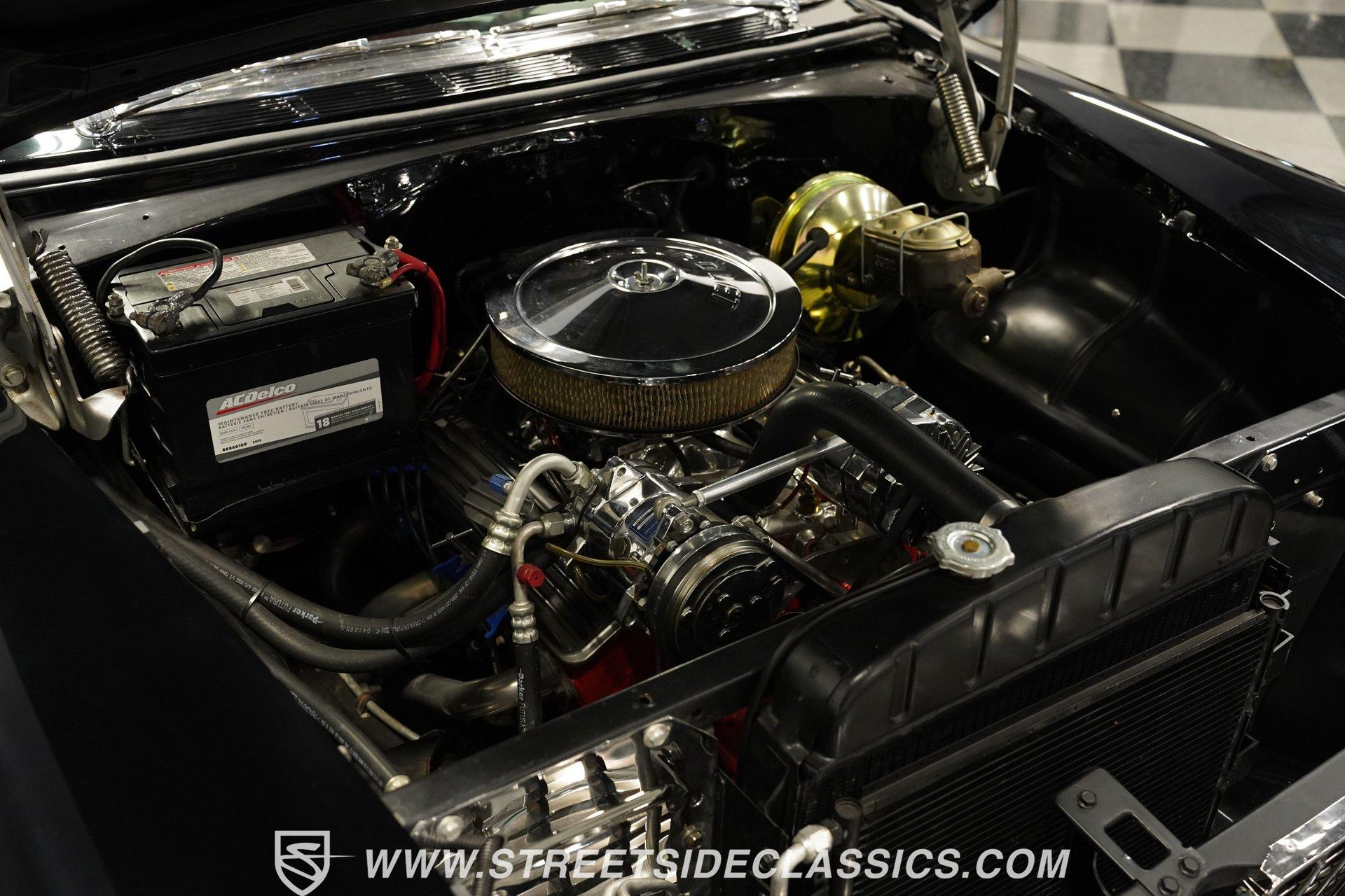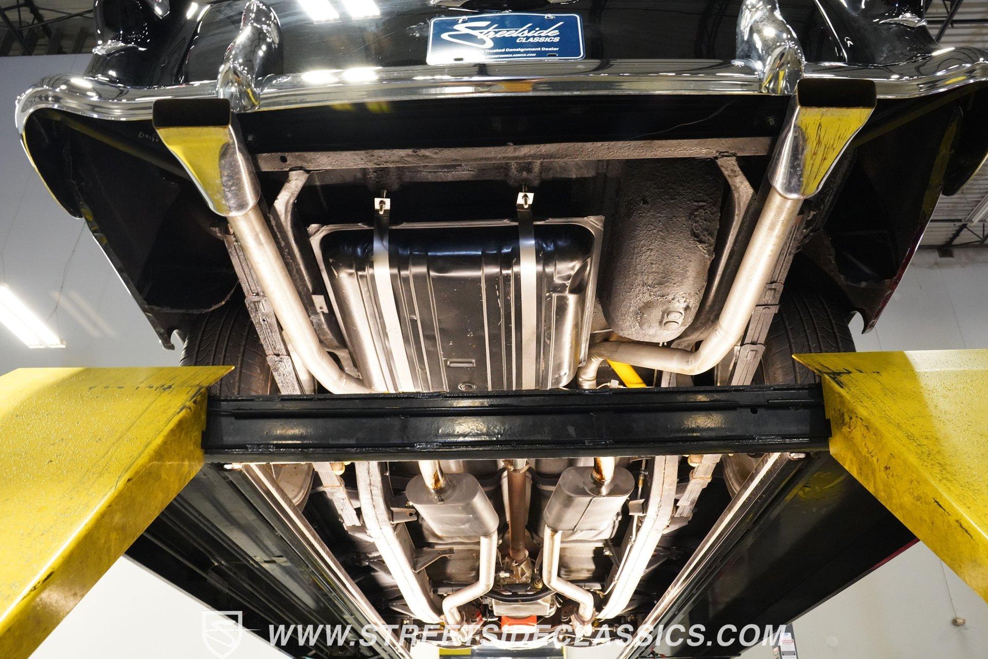 A full frame-off restoration brings this 1955 Chevrolet Bel Air back to life with black paint that flows across every panel and chrome brightwork that reflects decades of automotive evolution. Staggered American Racing wheels fill the wells with 18-inch fronts wearing 225/40ZR18 rubber and 20-inch rears mounted with 245/35ZR20 tires. The lowered stance gives this Bel Air an aggressive posture while dual exhaust exits provide the soundtrack. Chrome bumpers and trim pieces complete the exterior package on this two-door sedan. Inside, red vinyl split-bench seating dominates the cabin with matching rear bench and headliner creating a monochromatic interior theme. Classic Industries gauges replace the original cluster while a comfort grip steering wheel sits behind the column shifter. An AM/FM cassette deck handles entertainment duties while red carpeting and door panels maintain the color scheme throughout the cabin. Power steering makes maneuvering effortless while the black painted dash contrasts with the red appointments. The 327 V8 engine features a 1967 date code with Edelbrock single four-barrel carburetor feeding the small block. A TH350 three-speed automatic transmission handles shifting duties while power disc brakes provide stopping power up front. Long tube headers feed into the dual exhaust system while the lowered suspension includes coil springs with shocks front and leaf springs with shocks rear. An aluminum intake manifold and valve covers dress up the engine bay along with a chrome air cleaner. Power steering and power brakes complete the mechanical upgrades. HIGHLIGHTS: 327 V8 Engine Edelbrock Single 4 Barrel Carburetor TH350 3 Speed Automatic Transmission Power Disc Brakes Power Steering Long Tube Headers Dual Exhaust Lowered Suspension Aluminum Intake Manifold Chrome Valve Covers Black Paint 18" Front, 20" Rear American Racing Wheels 225/40ZR18 Front, 245/35ZR20 Rear Tires Chrome Bumpers and Trim Full Frame-Off Restoration Red Interior With Split-Bench Seats Classic Industries Gauges Comfort Grip Steering Wheel AM/FM Cassette Player Column Shifter Black Painted Dash Full Frame-Off Restoration Complete frame-off restoration, strong running 327 small block, and period-correct styling make this 1955 Chevrolet Bel Air a solid choice for cruising or showing. The combination of classic looks and modern reliability creates an appealing package. Call today!