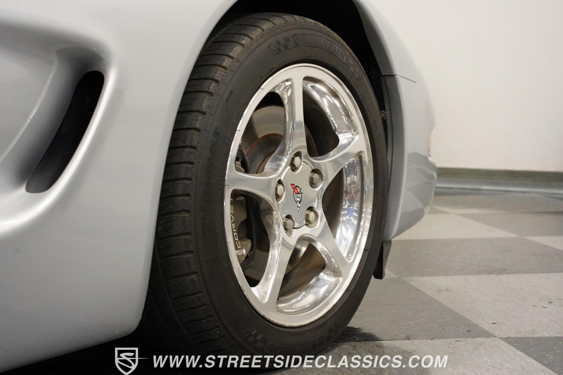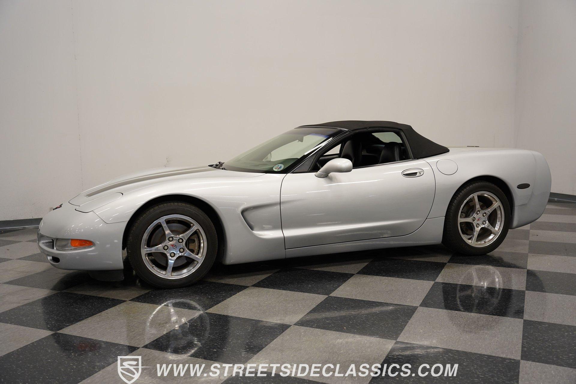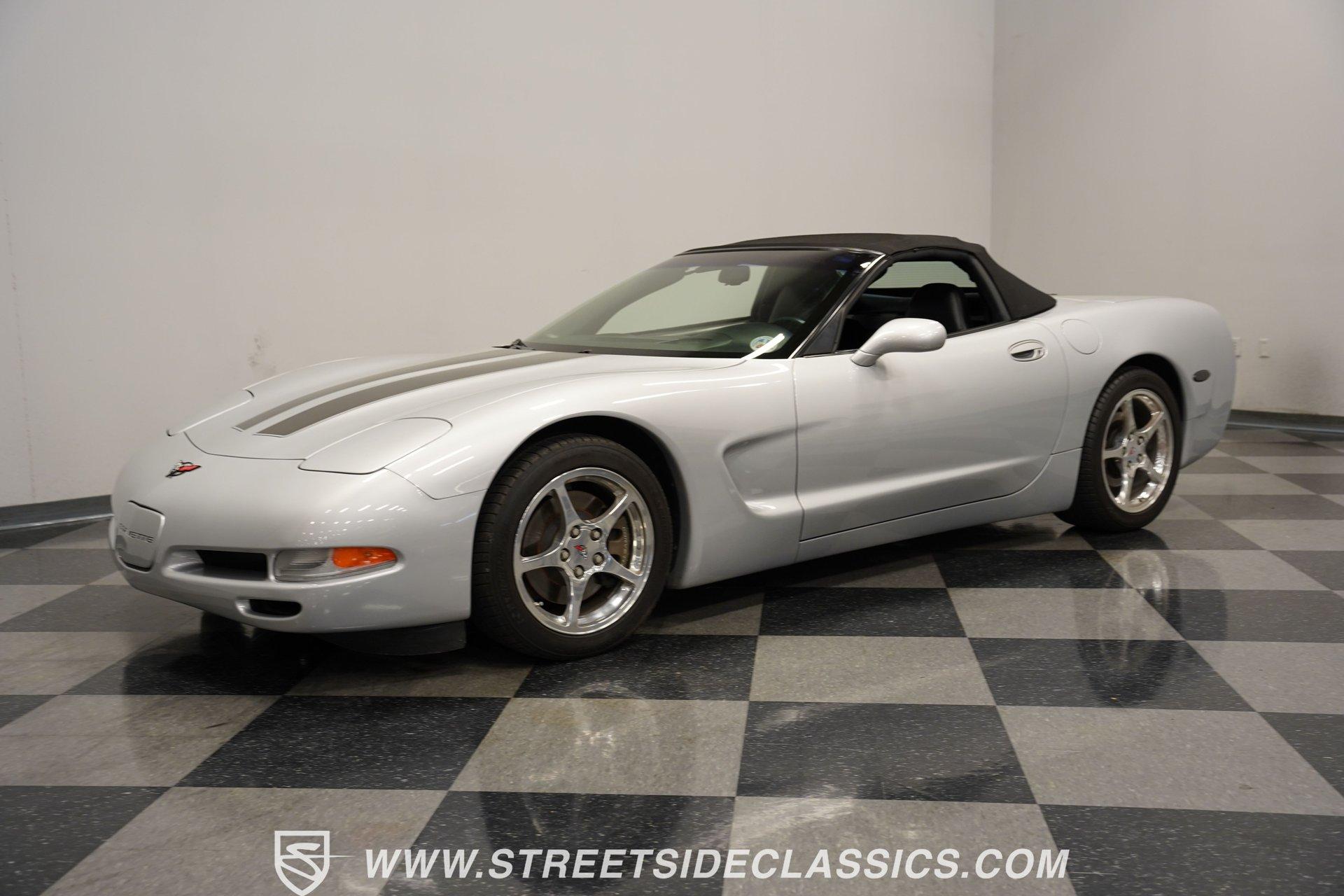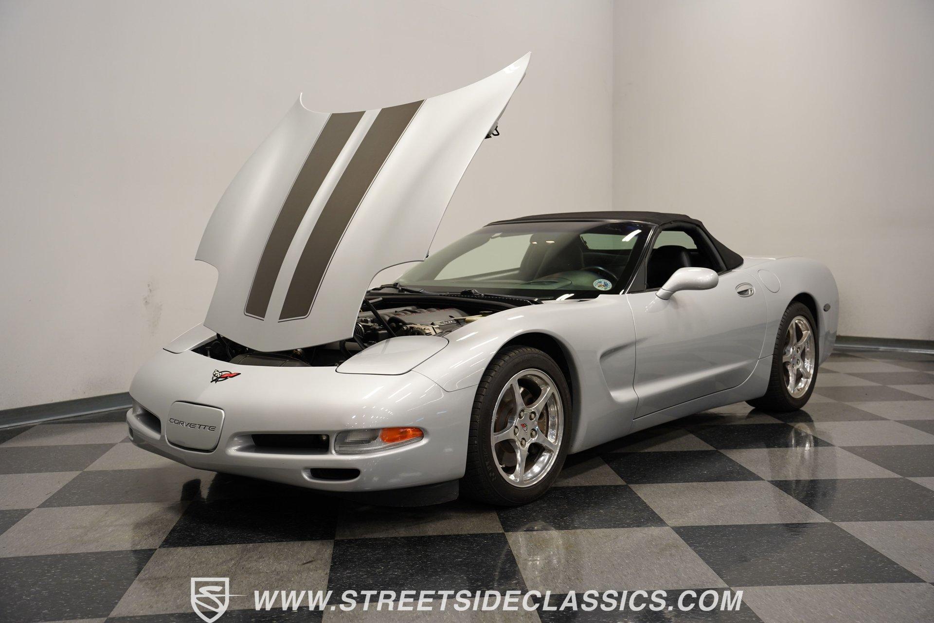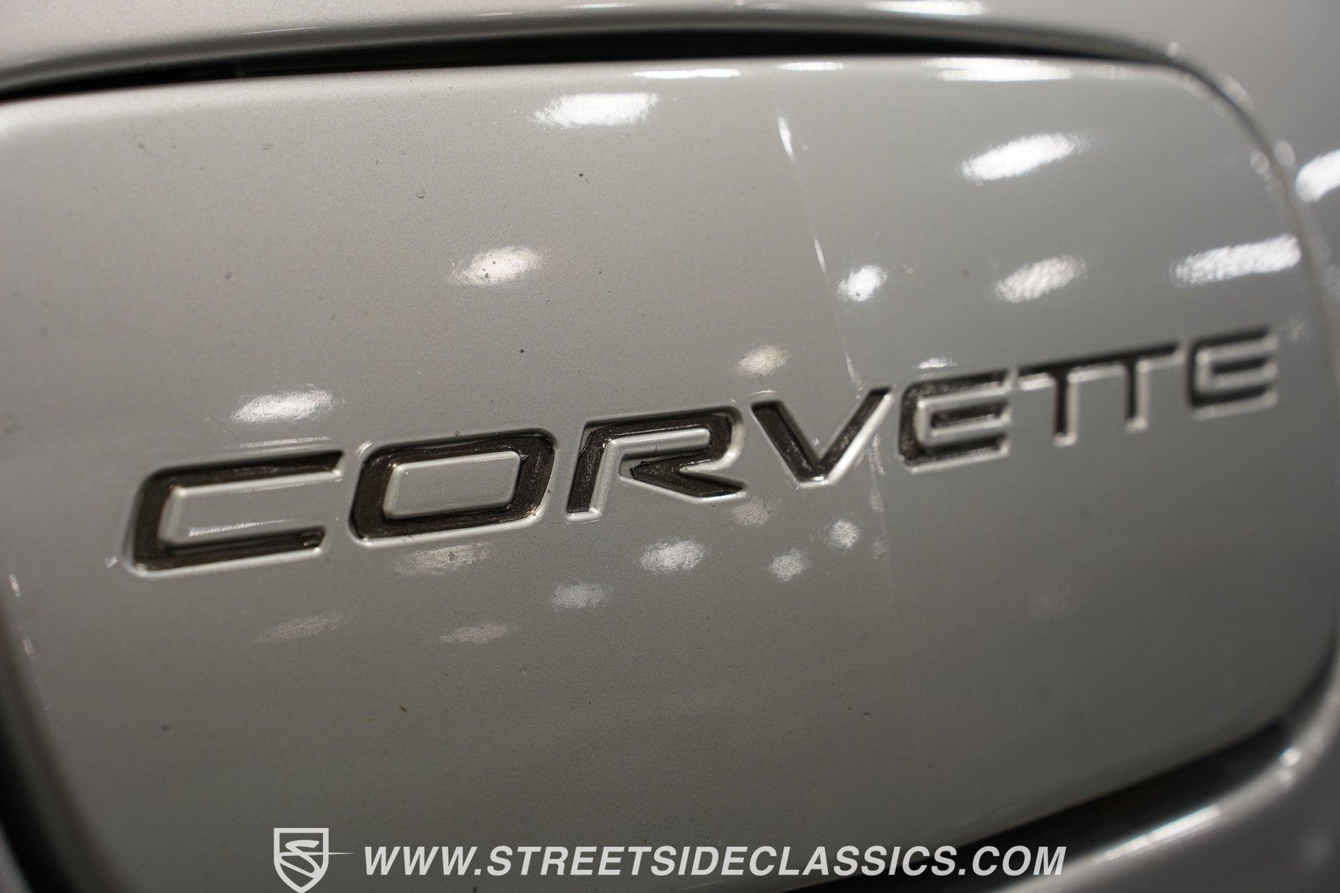 Sleek curves and aerodynamic lines flow across this 2000 Chevrolet Corvette Convertible in its Silver Metallic finish. Custom decal stripes run along this sports car, adding a personalized racing-inspired accent against this silver background. When adventure calls, this black cloth convertible top folds away for an open-air driving experience. Chrome wheels - 17 inches up front and 18 inches in the rear - give this Corvette a well-planted look. Wide 245/45ZR17 front and 275/40ZR18 rear tires connect firmly with the pavement, highlighting this vehicle's performance capabilities. This black vinyl interior offers a driver-centric layout with excellent visibility. Bucket seats provide lateral support during cornering while remaining comfortable for longer trips. A floor shifter mounted on this center console puts gear selection at your fingertips. This heads-up display projects important information directly on this windshield for easy viewing. Additional interior amenities include power windows, locks, and seats, plus air conditioning and an AM/FM CD player. This 5.7L LS1 V8 engine sits up front, an aluminum block powerhouse mated to a 4-speed automatic 4L60E transmission and dual exhaust system with aftermarket mufflers. This chassis features coil springs with shocks up front and a mono leaf spring rear suspension setup. Handling remains precise thanks to power steering, while stopping power comes from four-wheel power disc brakes with anti-lock capability. HIGHLIGHTS: 5.7L LS1 V8 Engine 4-Speed Automatic Transmission (4L60E) Electronic Fuel Injection Power Disc Brakes Dual Exhaust with Aftermarket Mufflers Front Suspension: Coils with Shocks Silver Metallic Paint Custom Decal Stripes 17" Front, 18" Rear Chrome Wheels 245/45ZR17 Front, 275/40ZR18 Rear Tires Black Cloth Convertible Top Glass Rear Window Black Interior with Power Bucket Seats Power Windows, Locks Tilt Wheel Power Steering Heads-Up Display Air Conditioning Cruise Control AM/FM Single CD Player Floor Shifter Anti-Theft System Driver and Passenger Airbags Owner's Manual Wheel Lock Maintenance Records Only 63,397 actual miles on this odometer makes this 2000 Chevrolet Corvette Convertible even more desirable. This combination of V8 power, automatic transmission, and convertible top offers year-round fun and performance. Call today!