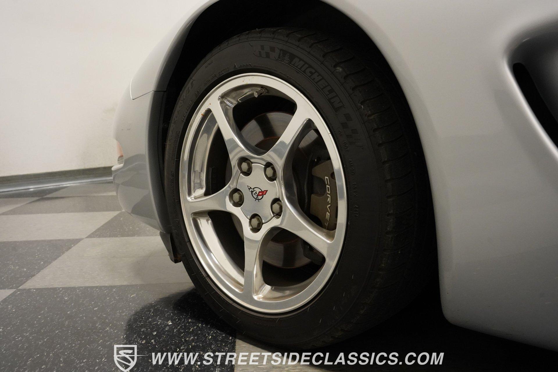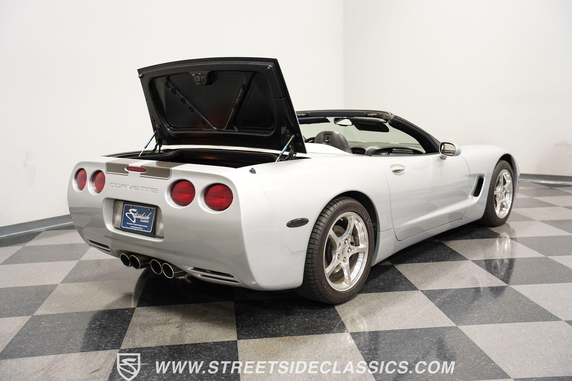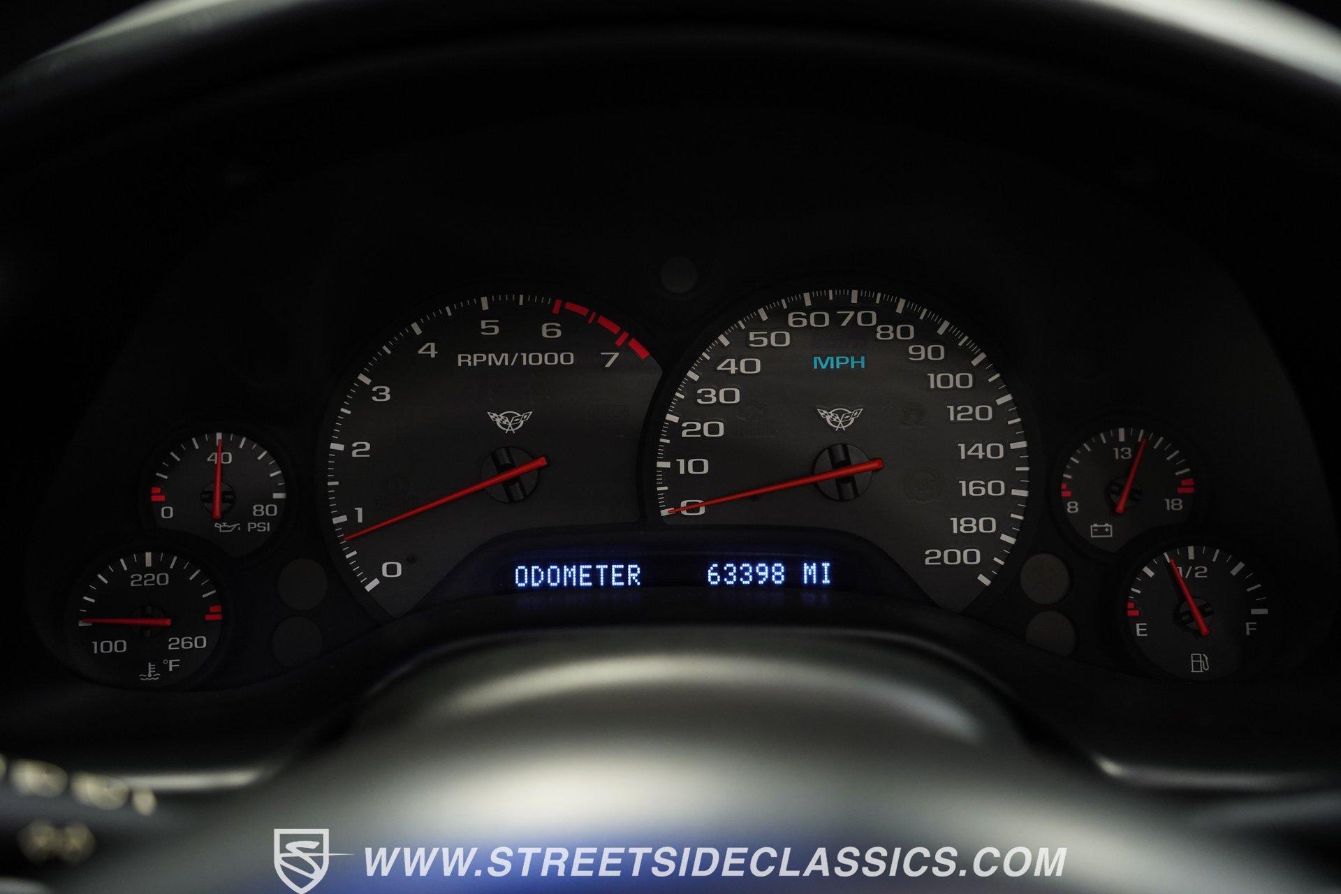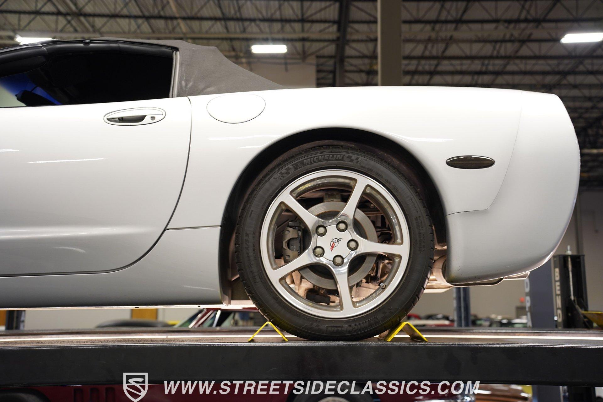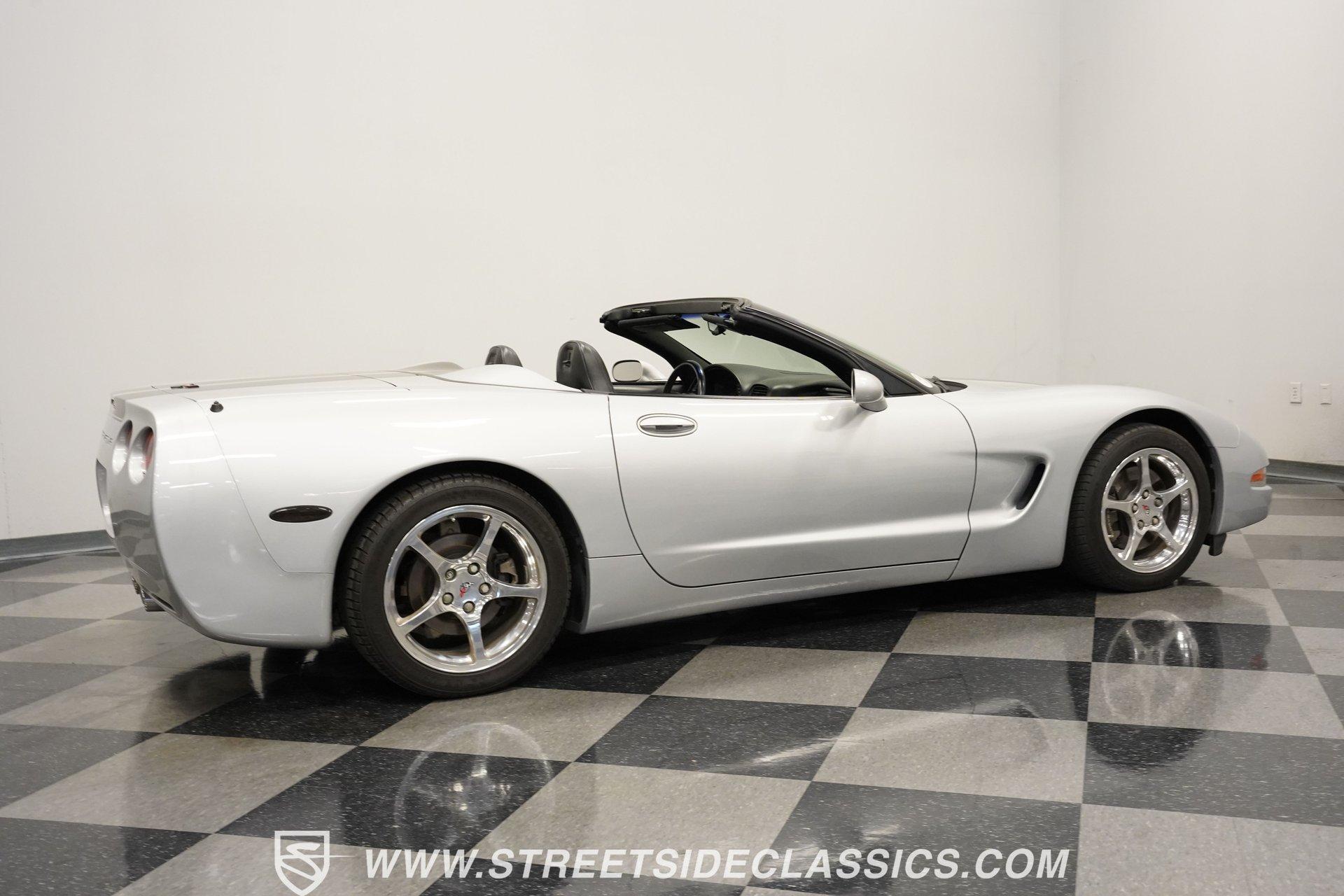 Sleek curves and aerodynamic lines flow across this 2000 Chevrolet Corvette Convertible in its Silver Metallic finish. Custom decal stripes run along this sports car, adding a personalized racing-inspired accent against this silver background. When adventure calls, this black cloth convertible top folds away for an open-air driving experience. Chrome wheels - 17 inches up front and 18 inches in the rear - give this Corvette a well-planted look. Wide 245/45ZR17 front and 275/40ZR18 rear tires connect firmly with the pavement, highlighting this vehicle's performance capabilities. This black vinyl interior offers a driver-centric layout with excellent visibility. Bucket seats provide lateral support during cornering while remaining comfortable for longer trips. A floor shifter mounted on this center console puts gear selection at your fingertips. This heads-up display projects important information directly on this windshield for easy viewing. Additional interior amenities include power windows, locks, and seats, plus air conditioning and an AM/FM CD player. This 5.7L LS1 V8 engine sits up front, an aluminum block powerhouse mated to a 4-speed automatic 4L60E transmission and dual exhaust system with aftermarket mufflers. This chassis features coil springs with shocks up front and a mono leaf spring rear suspension setup. Handling remains precise thanks to power steering, while stopping power comes from four-wheel power disc brakes with anti-lock capability. HIGHLIGHTS: 5.7L LS1 V8 Engine 4-Speed Automatic Transmission (4L60E) Electronic Fuel Injection Power Disc Brakes Dual Exhaust with Aftermarket Mufflers Front Suspension: Coils with Shocks Silver Metallic Paint Custom Decal Stripes 17" Front, 18" Rear Chrome Wheels 245/45ZR17 Front, 275/40ZR18 Rear Tires Black Cloth Convertible Top Glass Rear Window Black Interior with Power Bucket Seats Power Windows, Locks Tilt Wheel Power Steering Heads-Up Display Air Conditioning Cruise Control AM/FM Single CD Player Floor Shifter Anti-Theft System Driver and Passenger Airbags Owner's Manual Wheel Lock Maintenance Records Only 63,397 actual miles on this odometer makes this 2000 Chevrolet Corvette Convertible even more desirable. This combination of V8 power, automatic transmission, and convertible top offers year-round fun and performance. Call today!
