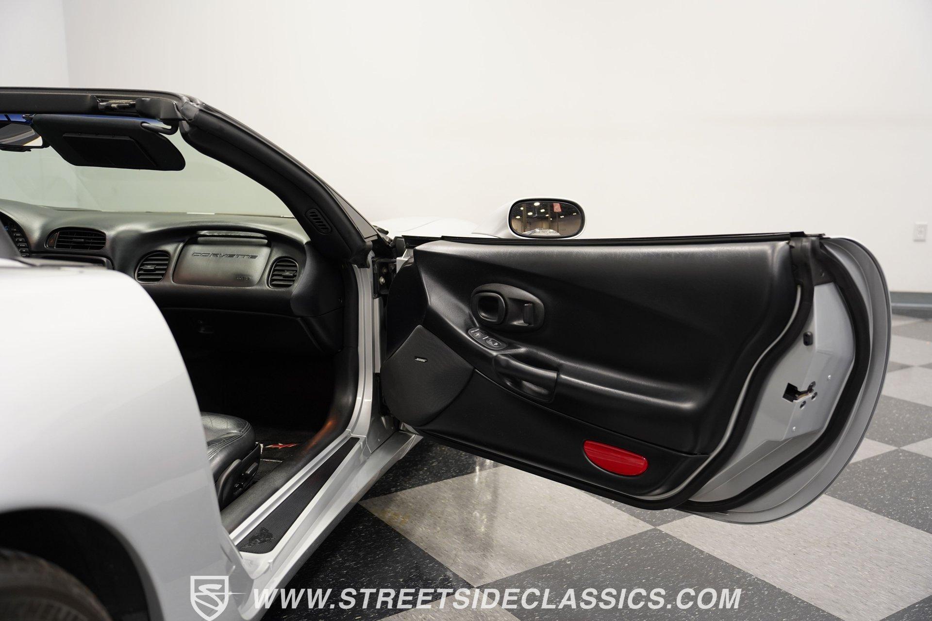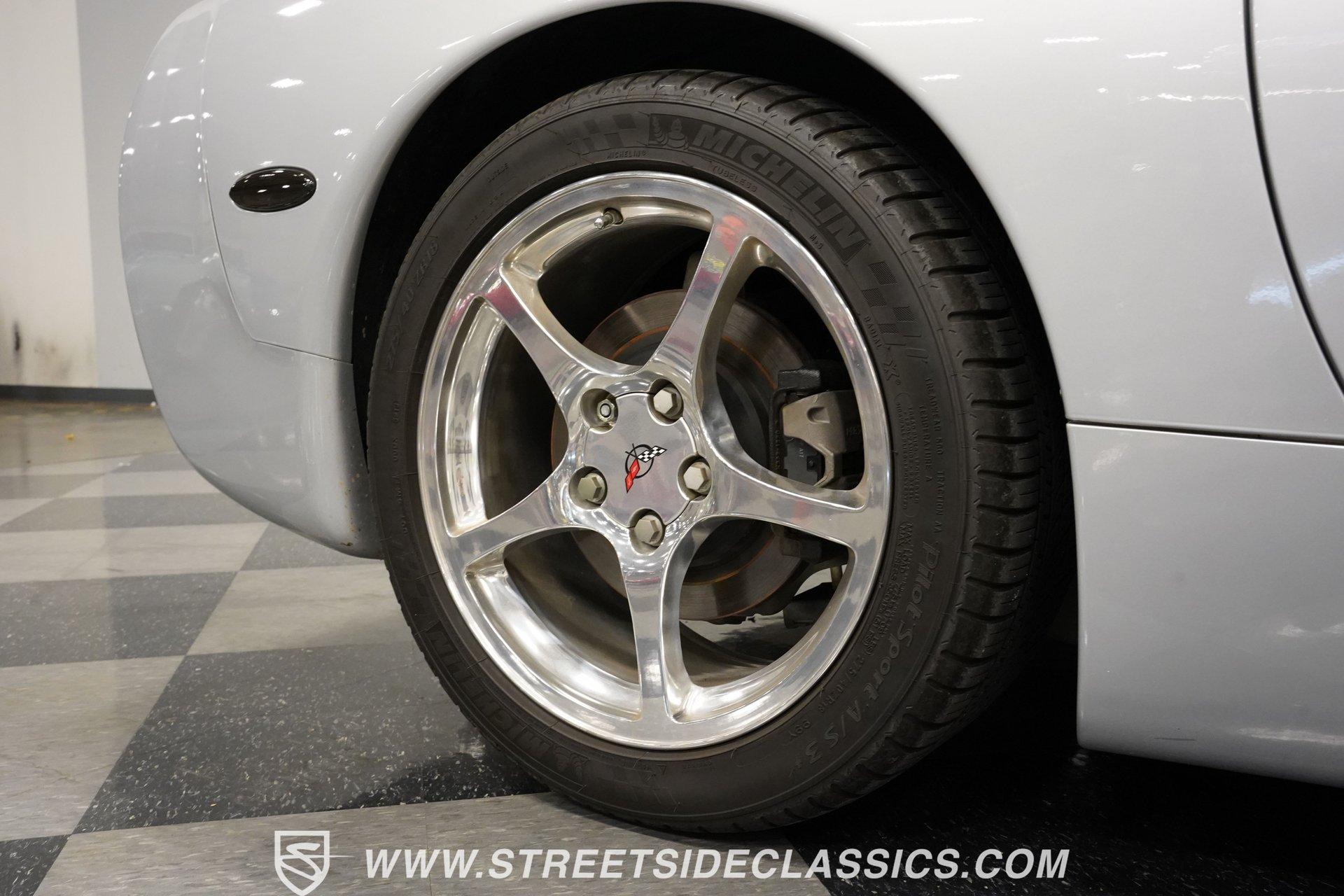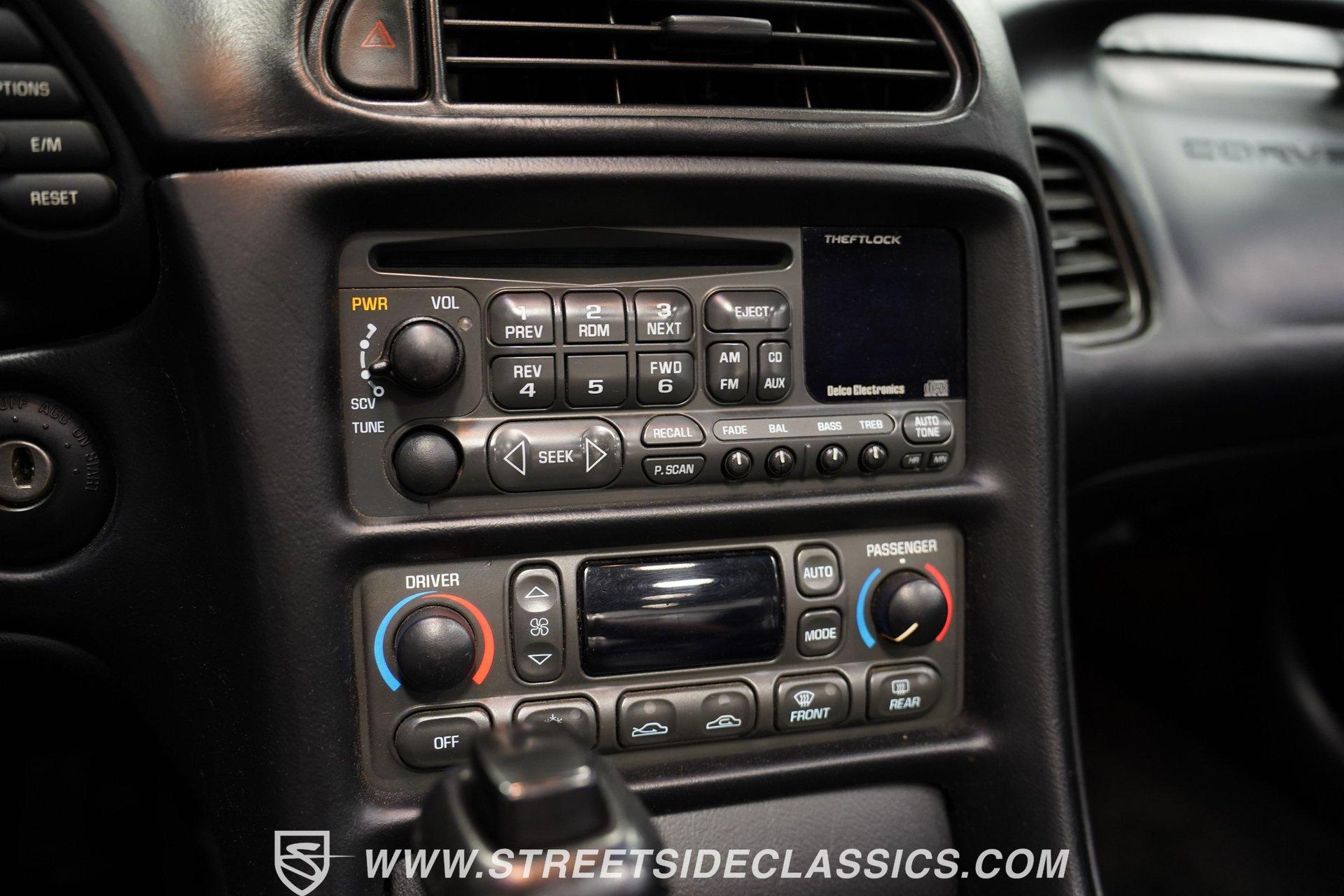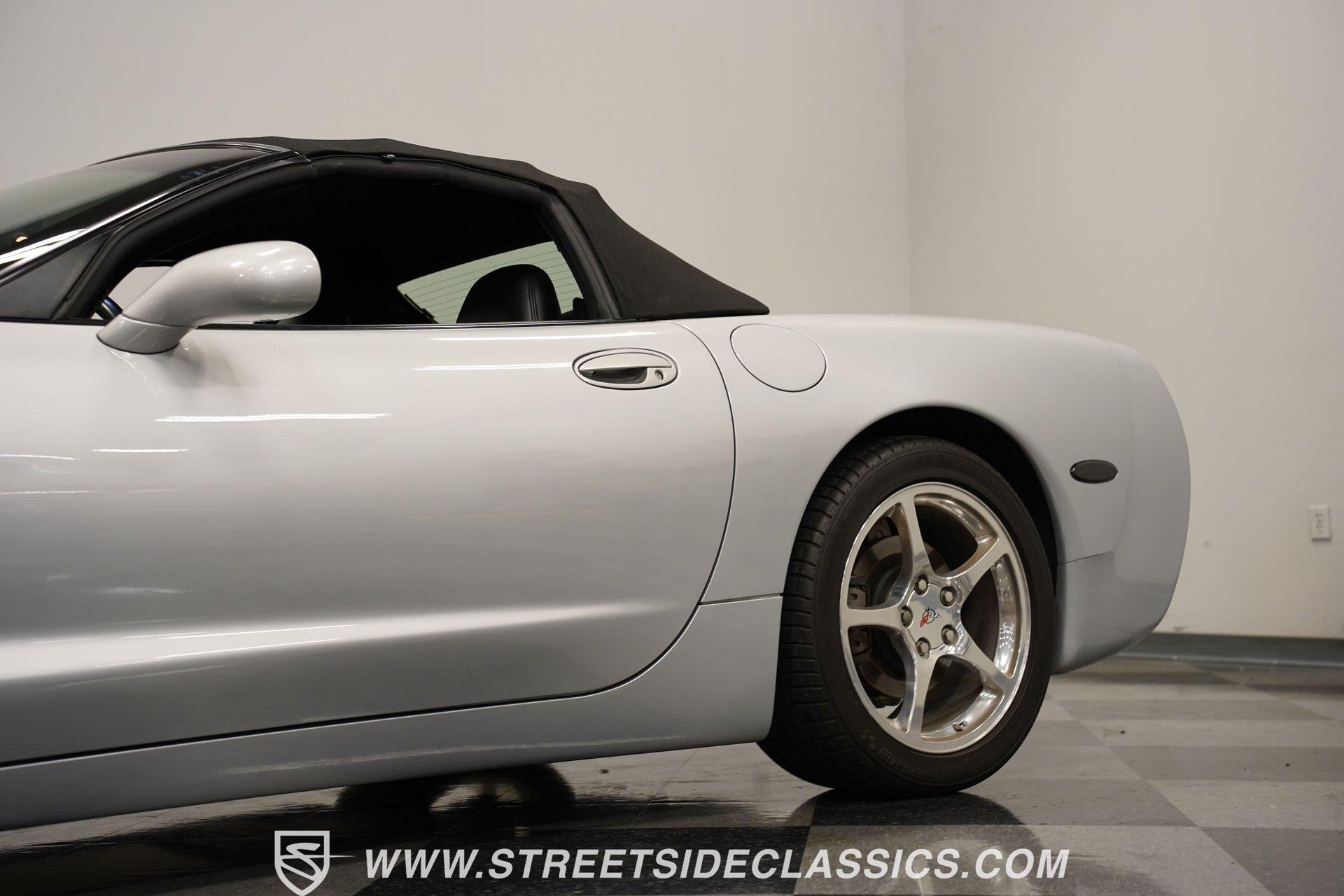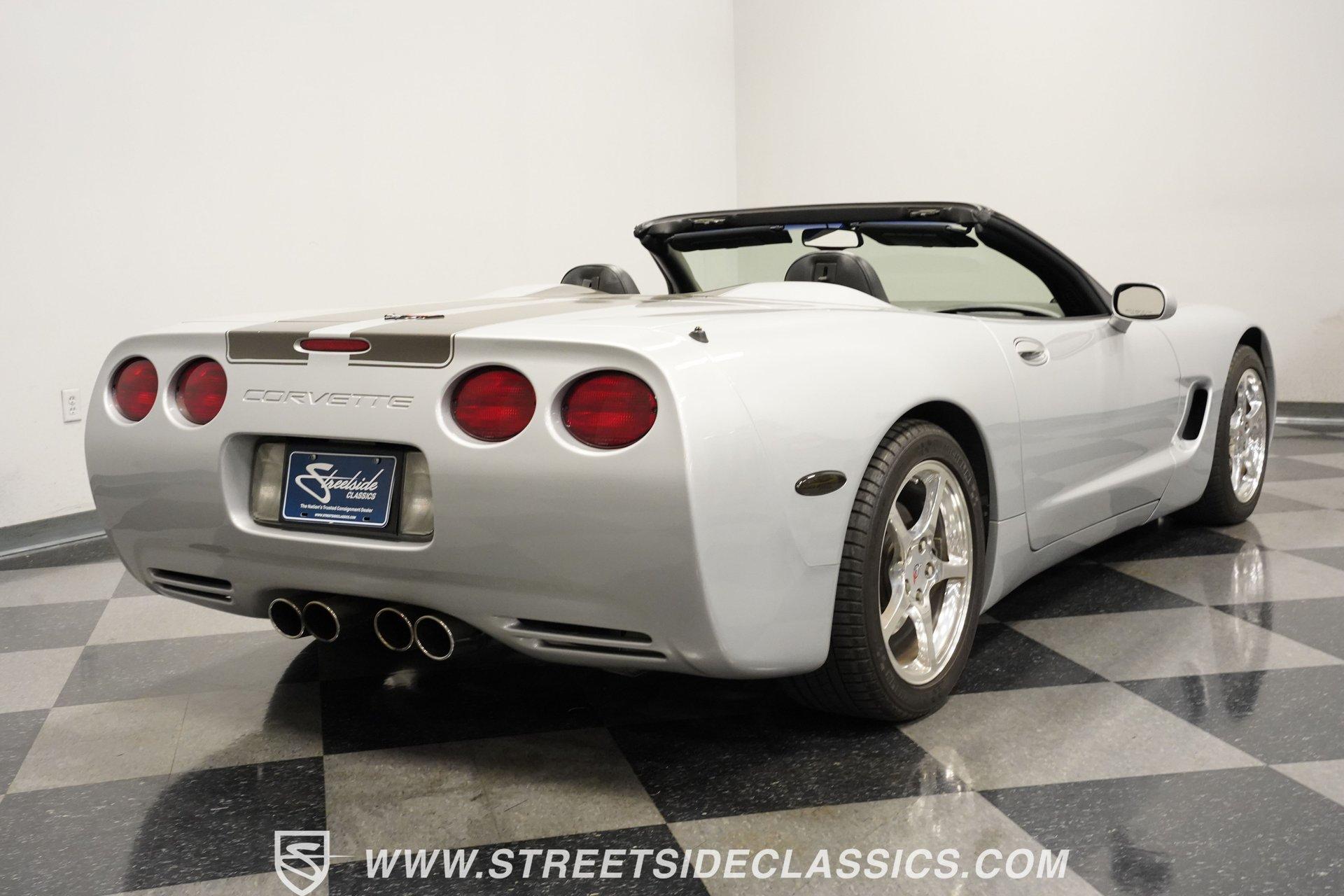 Sleek curves and aerodynamic lines flow across this 2000 Chevrolet Corvette Convertible in its Silver Metallic finish. Custom decal stripes run along this sports car, adding a personalized racing-inspired accent against this silver background. When adventure calls, this black cloth convertible top folds away for an open-air driving experience. Chrome wheels - 17 inches up front and 18 inches in the rear - give this Corvette a well-planted look. Wide 245/45ZR17 front and 275/40ZR18 rear tires connect firmly with the pavement, highlighting this vehicle's performance capabilities. This black vinyl interior offers a driver-centric layout with excellent visibility. Bucket seats provide lateral support during cornering while remaining comfortable for longer trips. A floor shifter mounted on this center console puts gear selection at your fingertips. This heads-up display projects important information directly on this windshield for easy viewing. Additional interior amenities include power windows, locks, and seats, plus air conditioning and an AM/FM CD player. This 5.7L LS1 V8 engine sits up front, an aluminum block powerhouse mated to a 4-speed automatic 4L60E transmission and dual exhaust system with aftermarket mufflers. This chassis features coil springs with shocks up front and a mono leaf spring rear suspension setup. Handling remains precise thanks to power steering, while stopping power comes from four-wheel power disc brakes with anti-lock capability. HIGHLIGHTS: 5.7L LS1 V8 Engine 4-Speed Automatic Transmission (4L60E) Electronic Fuel Injection Power Disc Brakes Dual Exhaust with Aftermarket Mufflers Front Suspension: Coils with Shocks Silver Metallic Paint Custom Decal Stripes 17" Front, 18" Rear Chrome Wheels 245/45ZR17 Front, 275/40ZR18 Rear Tires Black Cloth Convertible Top Glass Rear Window Black Interior with Power Bucket Seats Power Windows, Locks Tilt Wheel Power Steering Heads-Up Display Air Conditioning Cruise Control AM/FM Single CD Player Floor Shifter Anti-Theft System Driver and Passenger Airbags Owner's Manual Wheel Lock Maintenance Records Only 63,397 actual miles on this odometer makes this 2000 Chevrolet Corvette Convertible even more desirable. This combination of V8 power, automatic transmission, and convertible top offers year-round fun and performance. Call today!