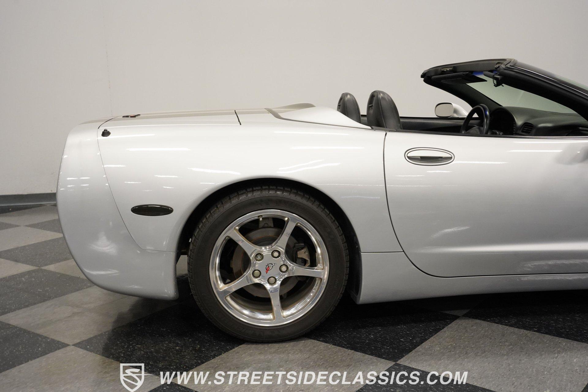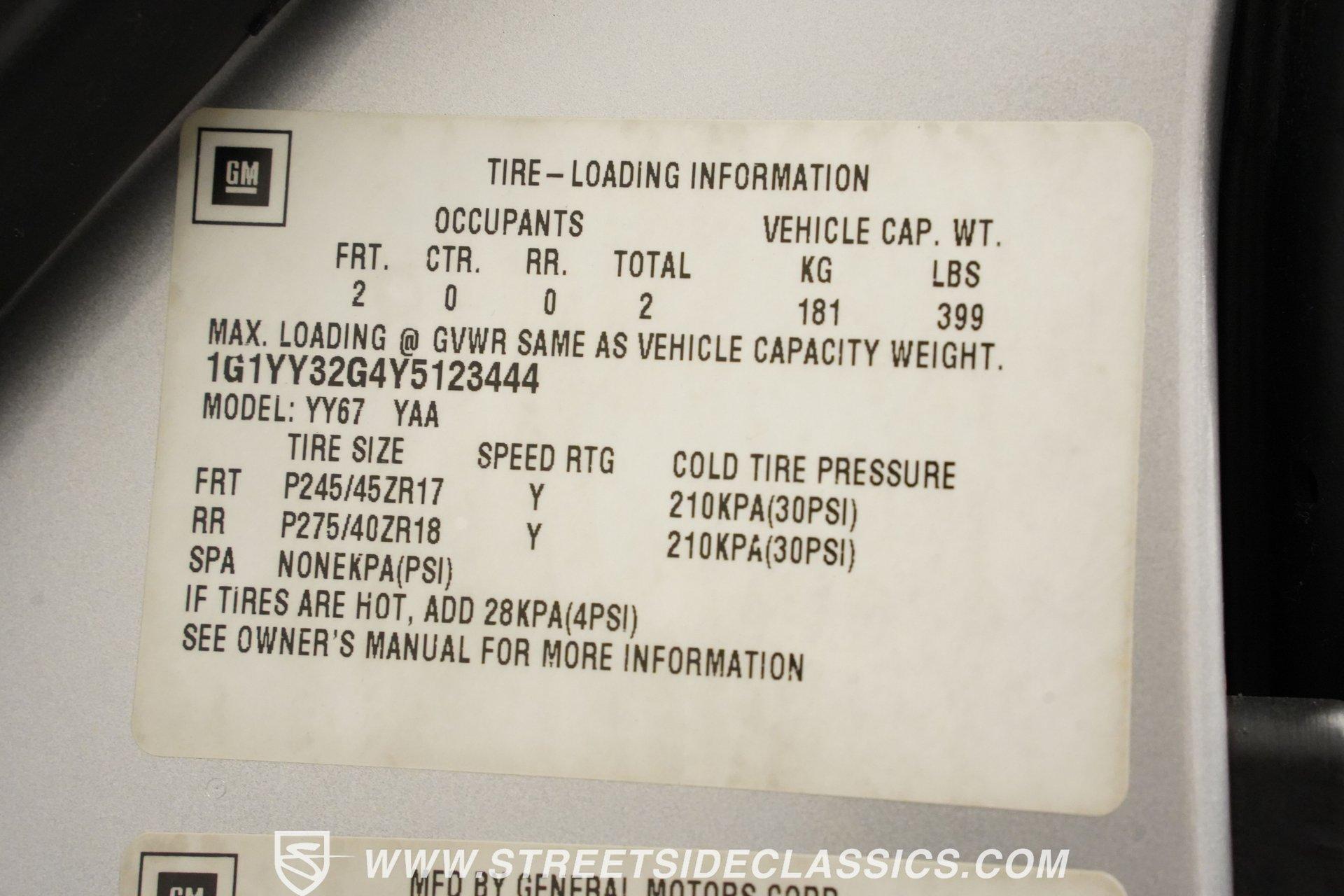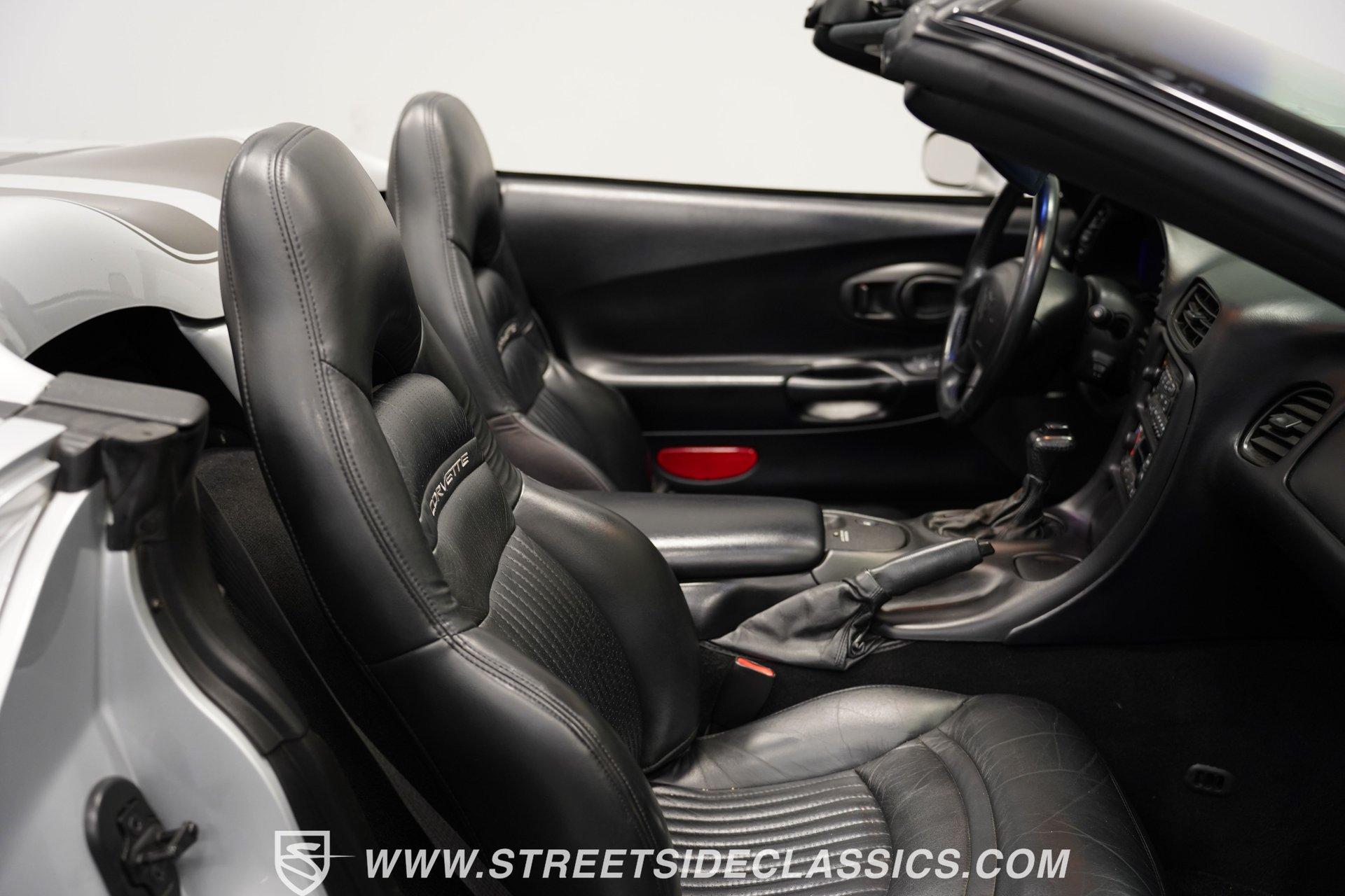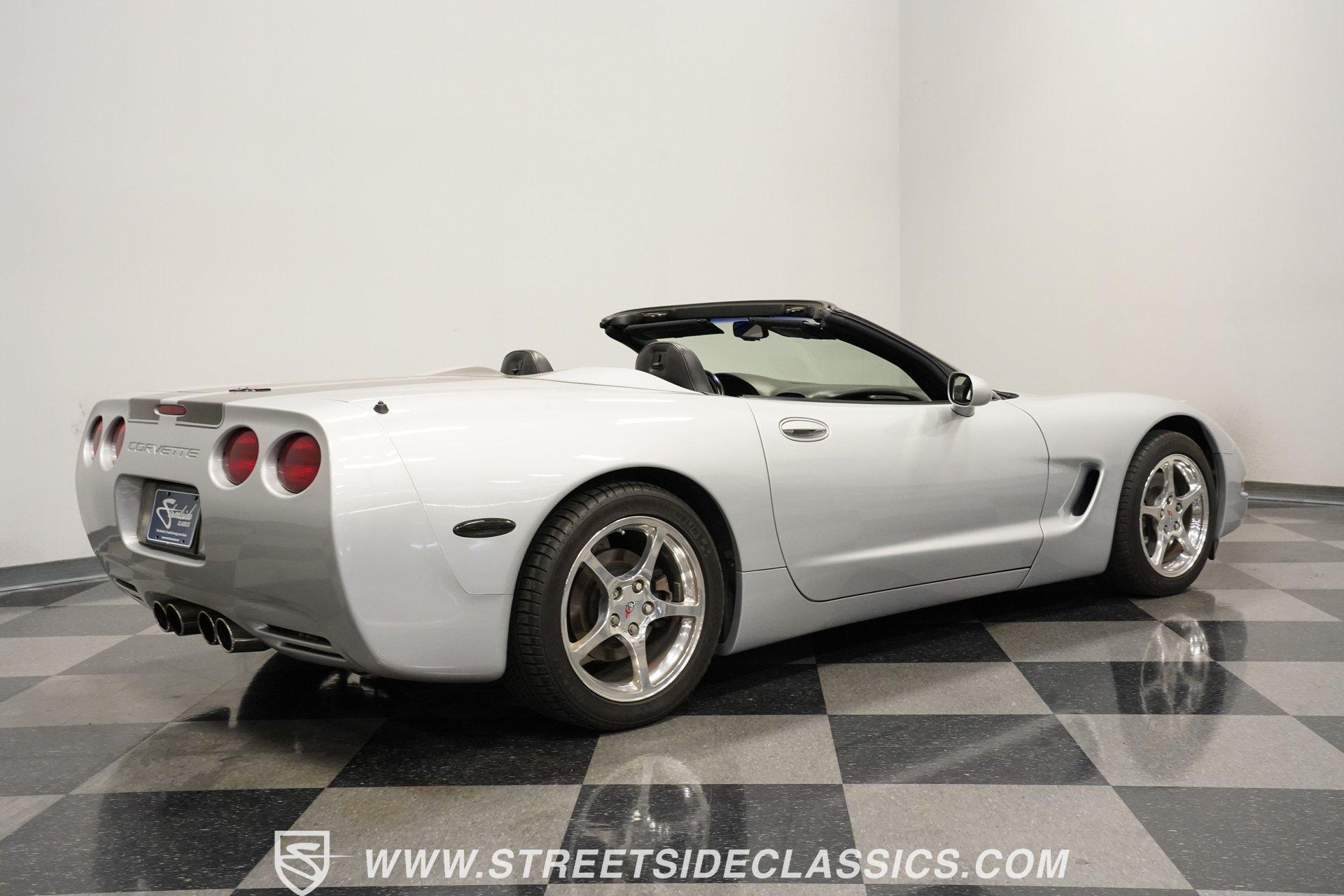 Sleek curves and aerodynamic lines flow across this 2000 Chevrolet Corvette Convertible in its Silver Metallic finish. Custom decal stripes run along this sports car, adding a personalized racing-inspired accent against this silver background. When adventure calls, this black cloth convertible top folds away for an open-air driving experience. Chrome wheels - 17 inches up front and 18 inches in the rear - give this Corvette a well-planted look. Wide 245/45ZR17 front and 275/40ZR18 rear tires connect firmly with the pavement, highlighting this vehicle's performance capabilities. This black vinyl interior offers a driver-centric layout with excellent visibility. Bucket seats provide lateral support during cornering while remaining comfortable for longer trips. A floor shifter mounted on this center console puts gear selection at your fingertips. This heads-up display projects important information directly on this windshield for easy viewing. Additional interior amenities include power windows, locks, and seats, plus air conditioning and an AM/FM CD player. This 5.7L LS1 V8 engine sits up front, an aluminum block powerhouse mated to a 4-speed automatic 4L60E transmission and dual exhaust system with aftermarket mufflers. This chassis features coil springs with shocks up front and a mono leaf spring rear suspension setup. Handling remains precise thanks to power steering, while stopping power comes from four-wheel power disc brakes with anti-lock capability. HIGHLIGHTS: 5.7L LS1 V8 Engine 4-Speed Automatic Transmission (4L60E) Electronic Fuel Injection Power Disc Brakes Dual Exhaust with Aftermarket Mufflers Front Suspension: Coils with Shocks Silver Metallic Paint Custom Decal Stripes 17" Front, 18" Rear Chrome Wheels 245/45ZR17 Front, 275/40ZR18 Rear Tires Black Cloth Convertible Top Glass Rear Window Black Interior with Power Bucket Seats Power Windows, Locks Tilt Wheel Power Steering Heads-Up Display Air Conditioning Cruise Control AM/FM Single CD Player Floor Shifter Anti-Theft System Driver and Passenger Airbags Owner's Manual Wheel Lock Maintenance Records Only 63,397 actual miles on this odometer makes this 2000 Chevrolet Corvette Convertible even more desirable. This combination of V8 power, automatic transmission, and convertible top offers year-round fun and performance. Call today!