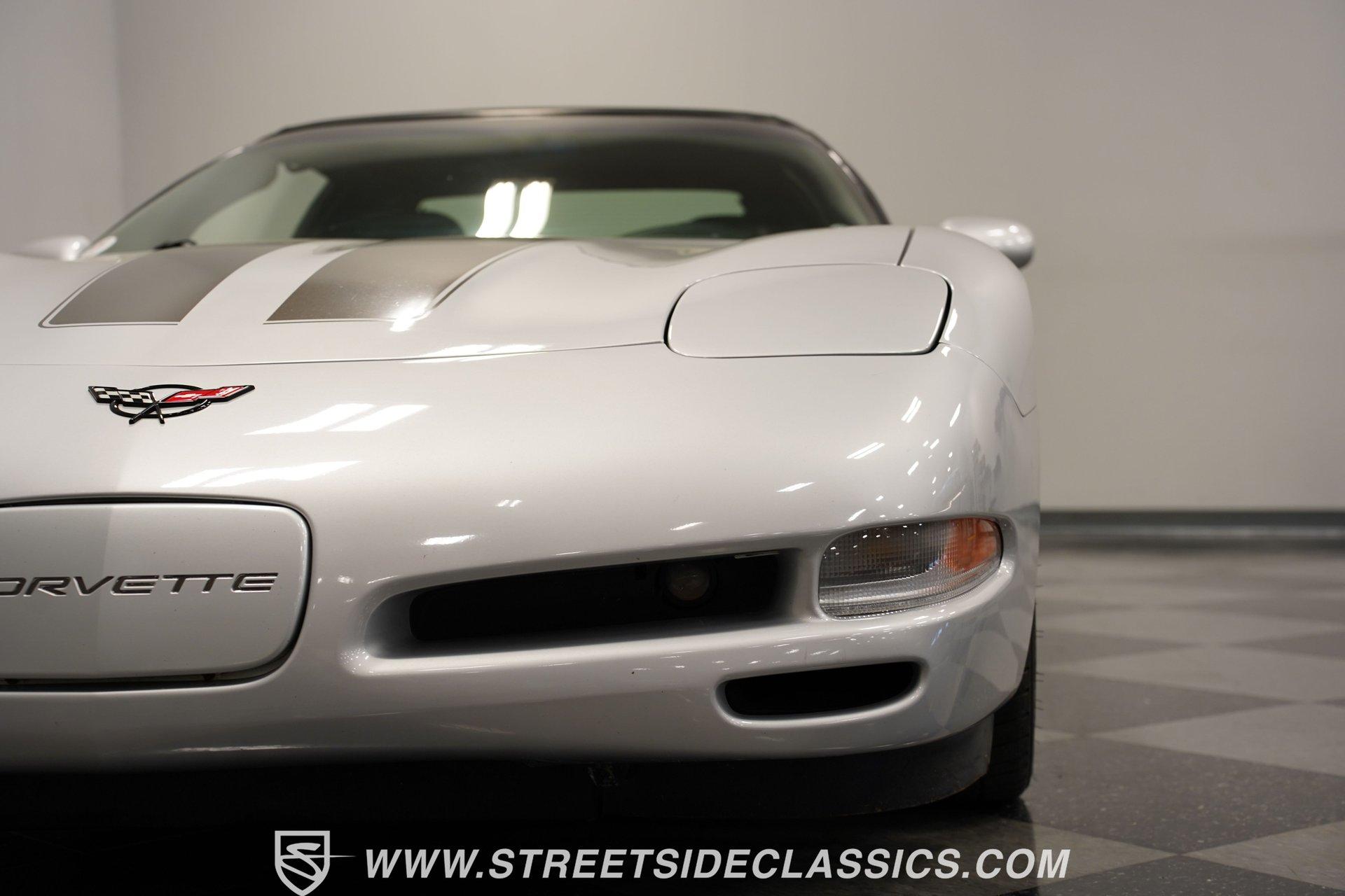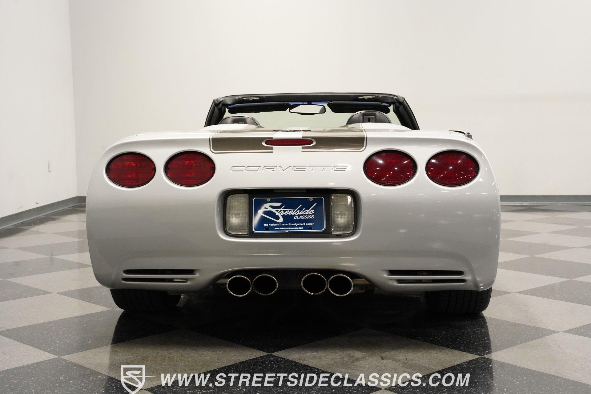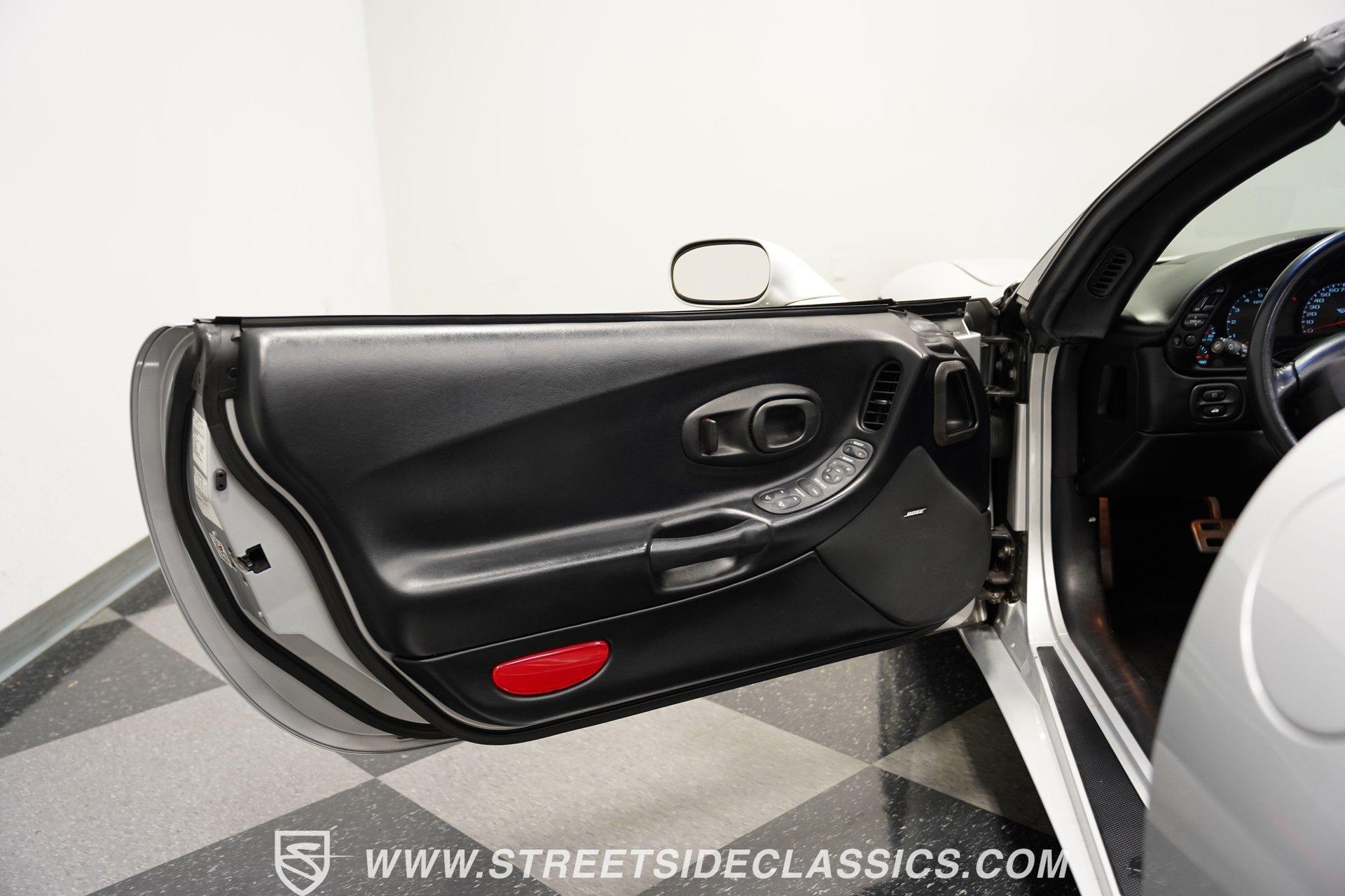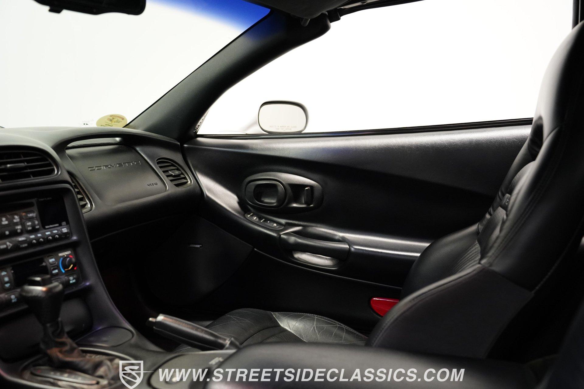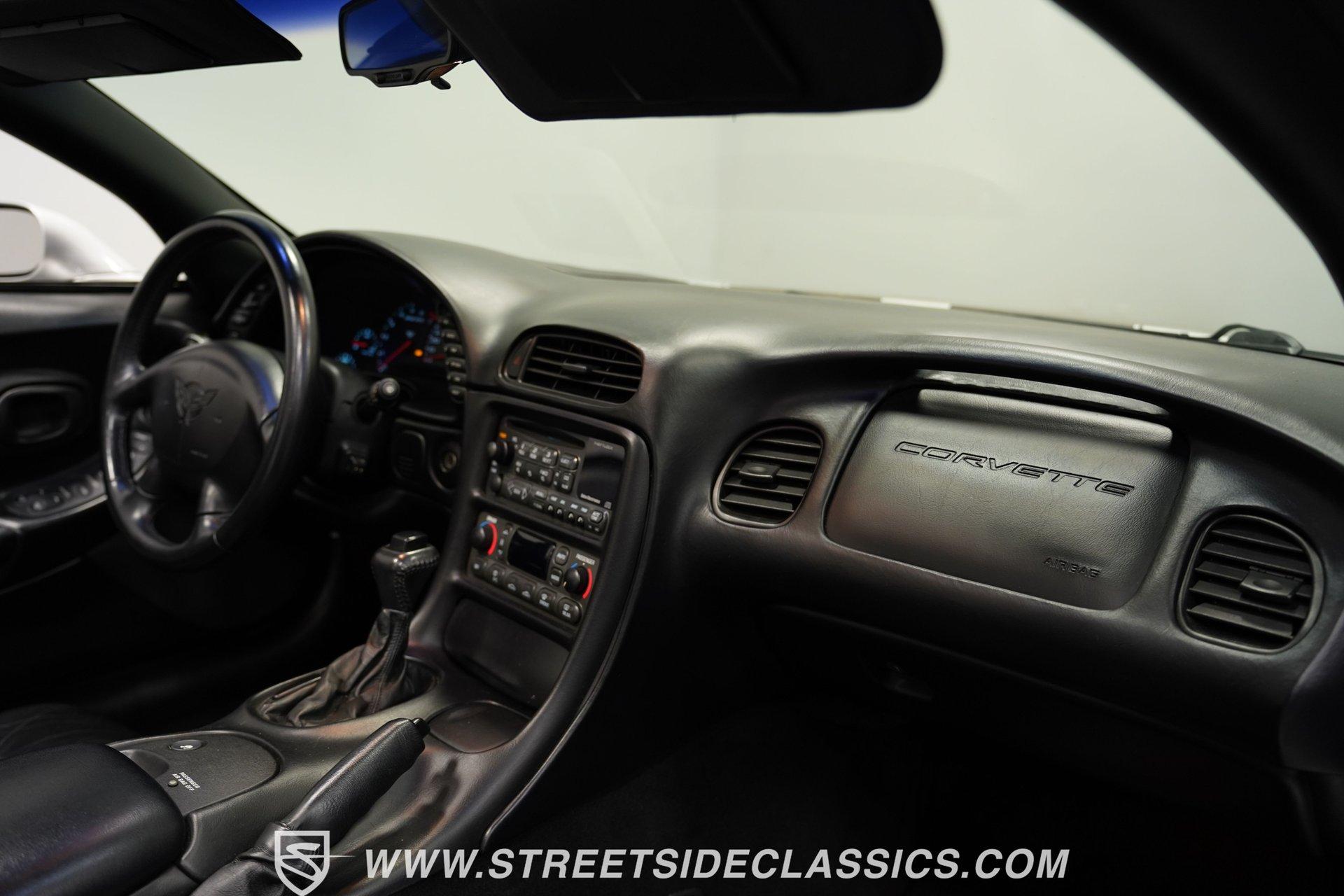 Sleek curves and aerodynamic lines flow across this 2000 Chevrolet Corvette Convertible in its Silver Metallic finish. Custom decal stripes run along this sports car, adding a personalized racing-inspired accent against this silver background. When adventure calls, this black cloth convertible top folds away for an open-air driving experience. Chrome wheels - 17 inches up front and 18 inches in the rear - give this Corvette a well-planted look. Wide 245/45ZR17 front and 275/40ZR18 rear tires connect firmly with the pavement, highlighting this vehicle's performance capabilities. This black vinyl interior offers a driver-centric layout with excellent visibility. Bucket seats provide lateral support during cornering while remaining comfortable for longer trips. A floor shifter mounted on this center console puts gear selection at your fingertips. This heads-up display projects important information directly on this windshield for easy viewing. Additional interior amenities include power windows, locks, and seats, plus air conditioning and an AM/FM CD player. This 5.7L LS1 V8 engine sits up front, an aluminum block powerhouse mated to a 4-speed automatic 4L60E transmission and dual exhaust system with aftermarket mufflers. This chassis features coil springs with shocks up front and a mono leaf spring rear suspension setup. Handling remains precise thanks to power steering, while stopping power comes from four-wheel power disc brakes with anti-lock capability. HIGHLIGHTS: 5.7L LS1 V8 Engine 4-Speed Automatic Transmission (4L60E) Electronic Fuel Injection Power Disc Brakes Dual Exhaust with Aftermarket Mufflers Front Suspension: Coils with Shocks Silver Metallic Paint Custom Decal Stripes 17" Front, 18" Rear Chrome Wheels 245/45ZR17 Front, 275/40ZR18 Rear Tires Black Cloth Convertible Top Glass Rear Window Black Interior with Power Bucket Seats Power Windows, Locks Tilt Wheel Power Steering Heads-Up Display Air Conditioning Cruise Control AM/FM Single CD Player Floor Shifter Anti-Theft System Driver and Passenger Airbags Owner's Manual Wheel Lock Maintenance Records Only 63,397 actual miles on this odometer makes this 2000 Chevrolet Corvette Convertible even more desirable. This combination of V8 power, automatic transmission, and convertible top offers year-round fun and performance. Call today!