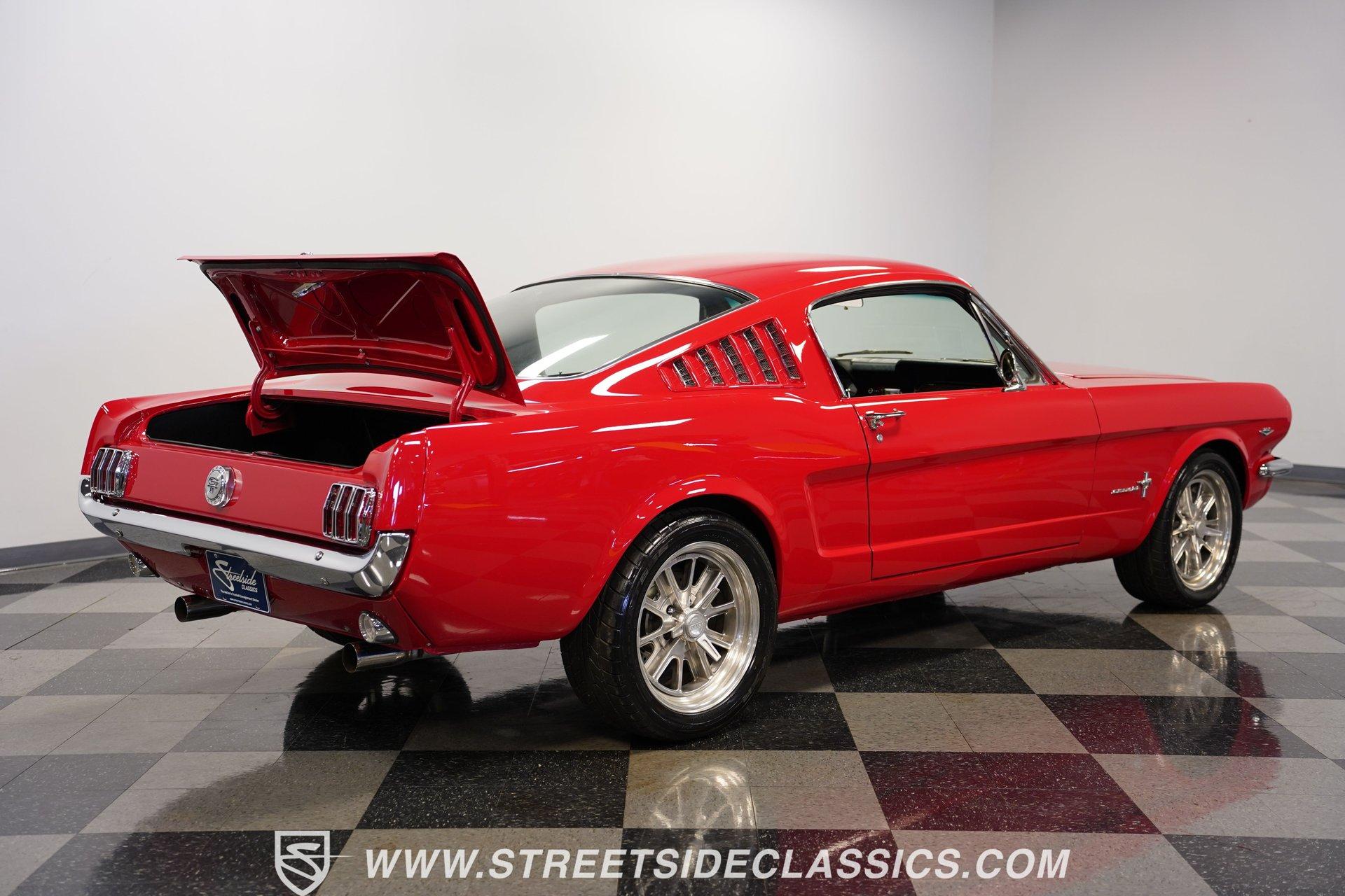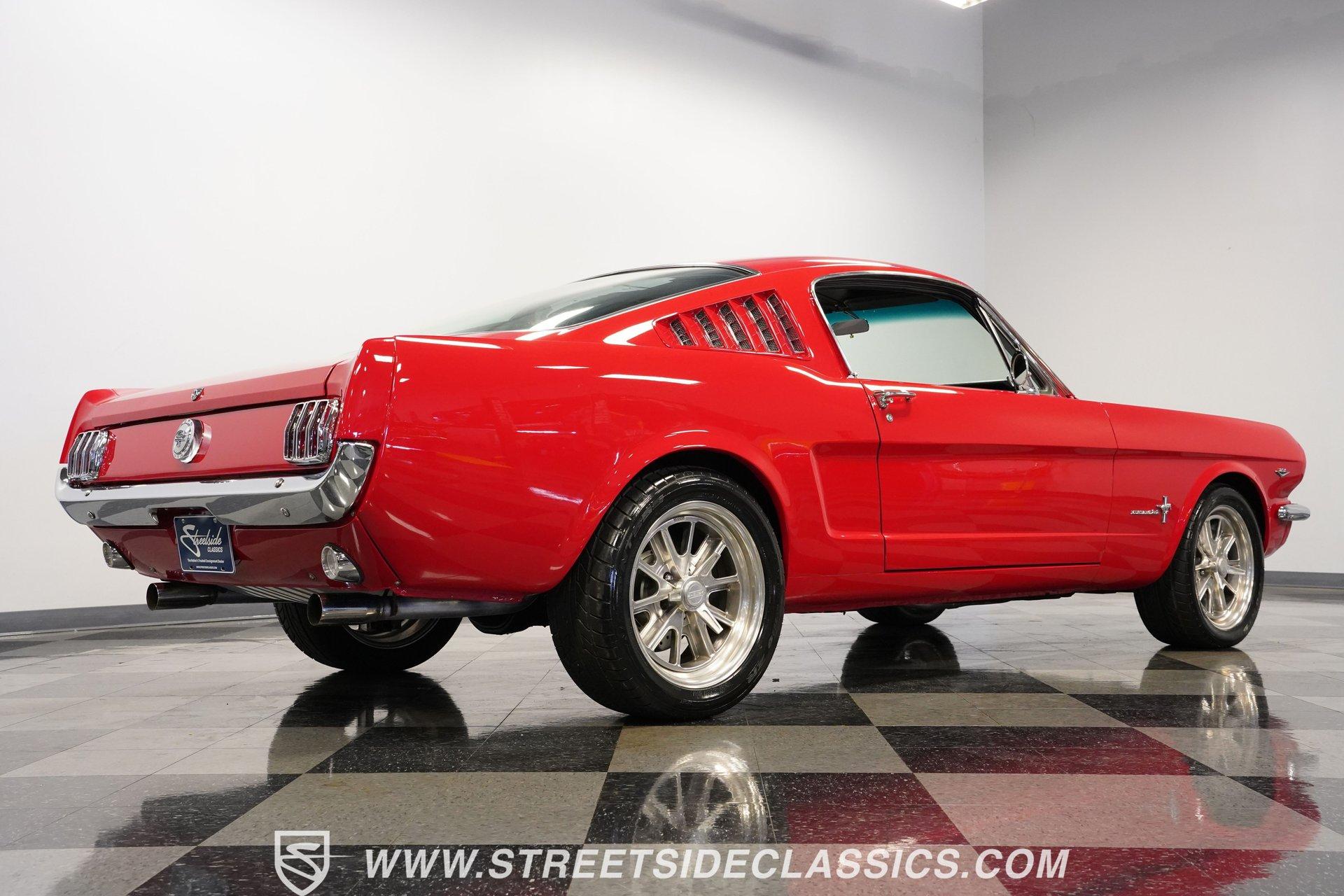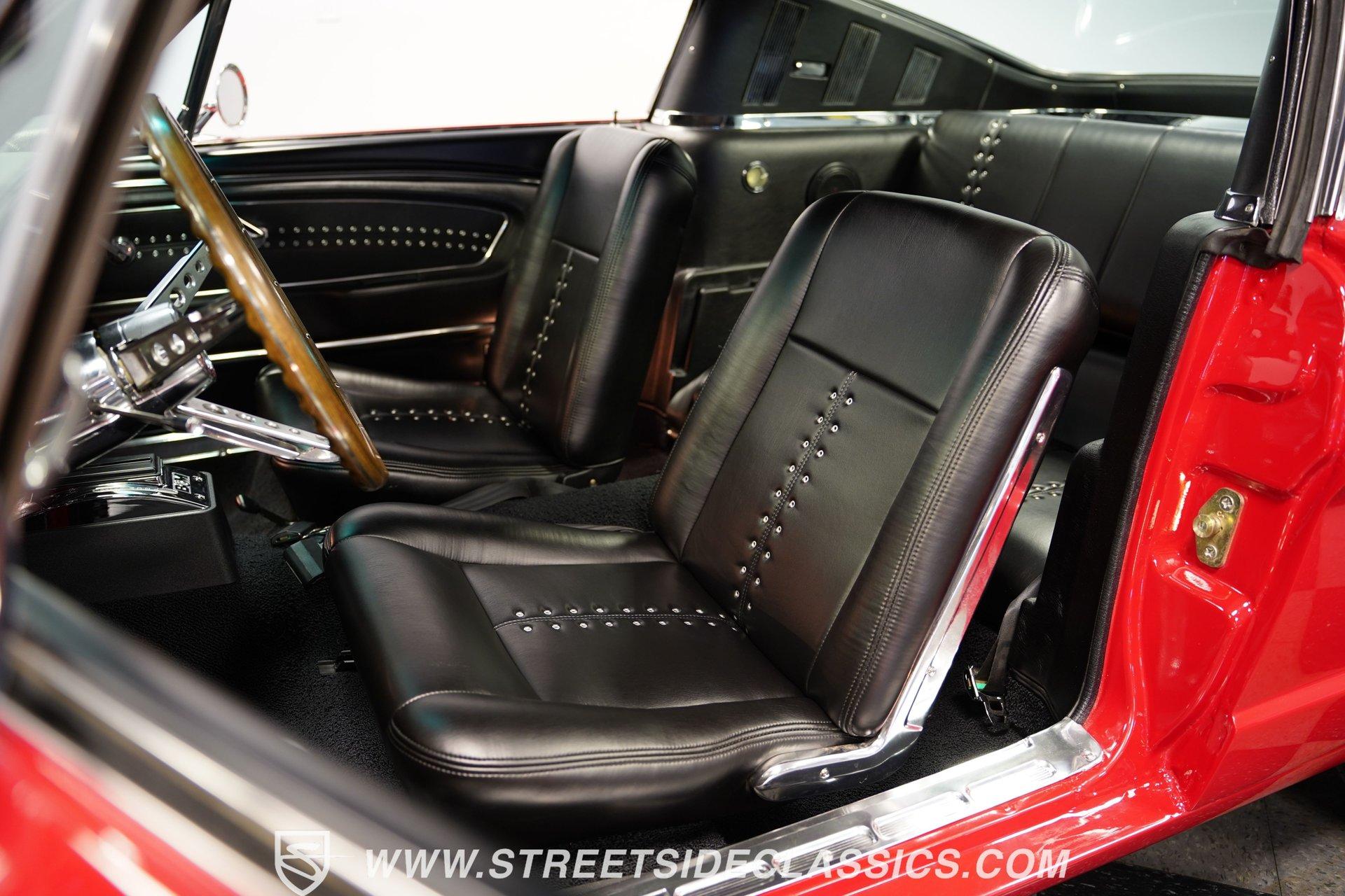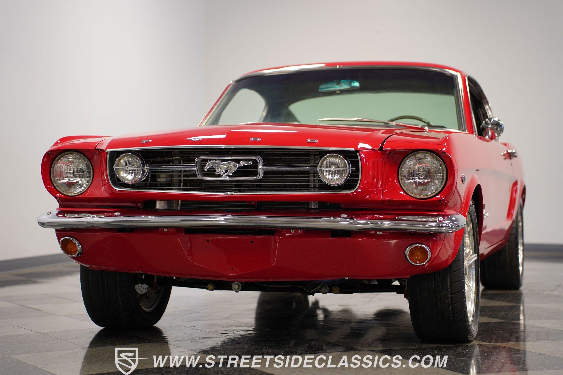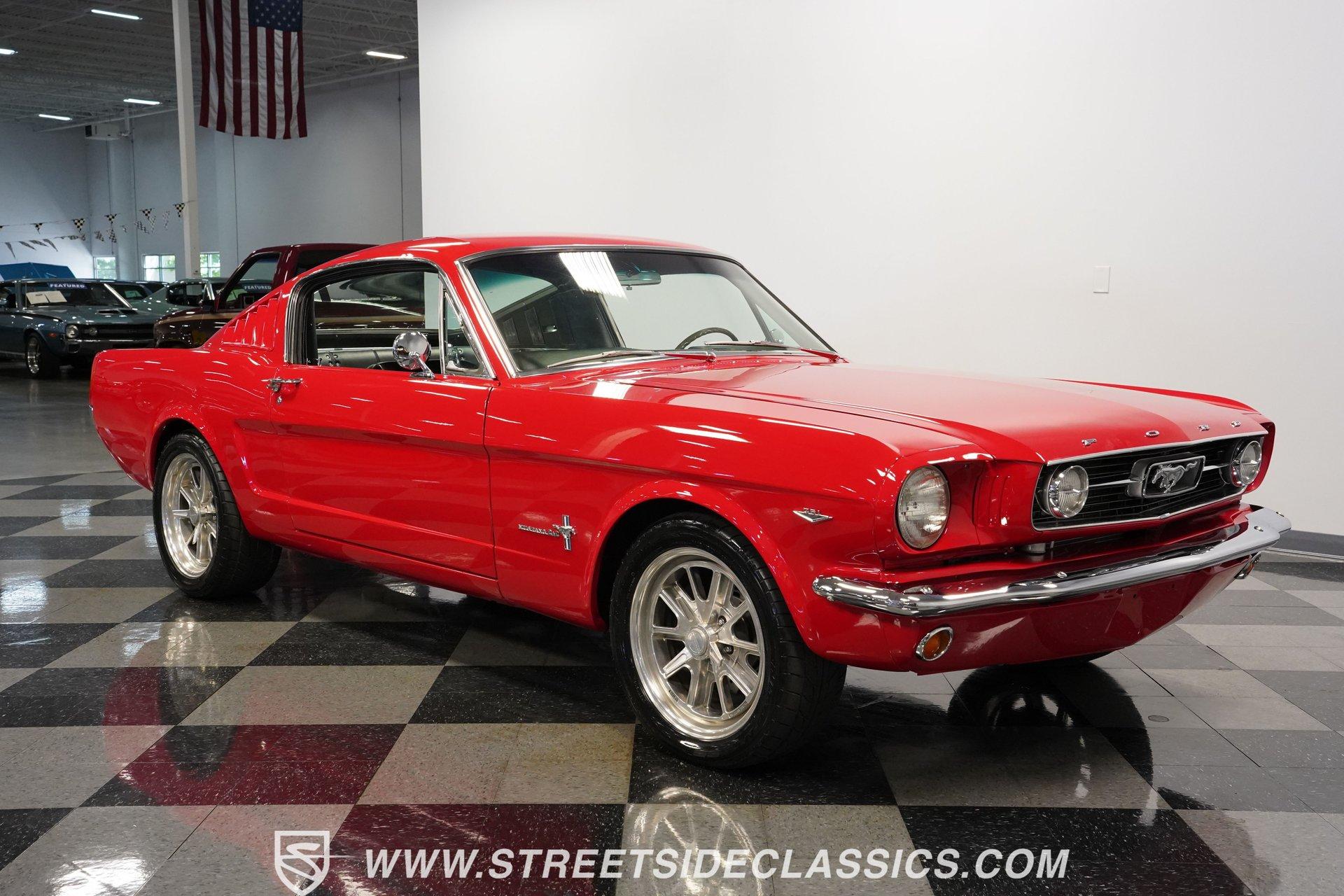 This 1966 Ford Mustang Fastback Restomod showcases a potent blend of classic style and modern performance. Sporting a vivid Red finish, this pony car's iconic fastback profile is accentuated by gleaming chrome brightwork, a GT lightbar in the grill and 17-inch American Racing Shelby Series wheels wrapped with performance tires staggered 235/45ZR17 front and P245/45ZR17 rear creating a confidant stance, hinting at the car's performance capabilities. This Mustang's exterior exemplifies the timeless appeal of Ford's original design, now enhanced with contemporary upgrades that elevate its presence on the road. Inside, the black interior presents a thoughtfully refreshed cabin. Custom leather bucket seats and door panels with lighting offer modern comfort, while cold modern air conditioning and a chrome tilt steering column adds a touch of refinement. The dashboard features upgraded MP round gauges and an upgraded Mustang logo AM/FM/cassette player radio with Bluetooth. A B&M Quick Silver floor shifter provides control of the upgraded transmission. This high-quality interior successfully combines classic Mustang elements with modern conveniences for an improved driving experience. Examining the engine bay reveals a healthy 351 Windsor V8 engine mated to a 4-speed automatic transmission that sends power back to a 9-inch rear end. This powerplant is equipped with aluminum heads, an Edelbrock intake, and electronic fuel injection for improved performance and reliability. Hedman long tube headers feed into a dual exhaust system fitted with Xceleraor mufflers, creating an unmistakable V8 soundtrack. Additional performance enhancements include an aluminum radiator, Ford Racing valve covers, power steering and a belt drive with March pulley brackets. With power assisted Wilwood disc brakes at all four corners and a well-tuned suspension featuring tubular front control arms and a coil triangulated four-link rear suspension with adjustable overs, this Mustang is equally adept at carving corners or dominating straight-line acceleration. HIGHLIGHTS: 351 Windsor V8 Engine 4-speed Automatic Transmission Electronic Fuel Injection Aluminum Cylinder Heads Edelbrock Intake Manifold Long Tube Hedman Headers Dual Exhaust System Aluminum Radiator Xceleraor Mufflers Wilwood Four-Wheel Disc Power Brakes Belt Drive Engine Accessories March Pull Brackets Ford 9-Inch Rear End Red Paint Ford Racing Valve Covers 17-inch American Racing Shelby Series Wheels Cold Air Conditioning Fastback Body Style Black Leather Bucket Seats Tubular Front Control Arms Upgraded MP Round Gauges Triangulated Four-Link Rear Suspension with Adjustable Coil Overs AM/FM/Cassette Radio with Bluetooth This 1966 Ford Mustang Fastback Restomod offers an enticing combination of classic styling and modern performance. Its potent 351 V8, precise 4-speed automatic, and carefully selected upgrades create an exhilarating driving experience wrapped in an iconic American design. Call today!