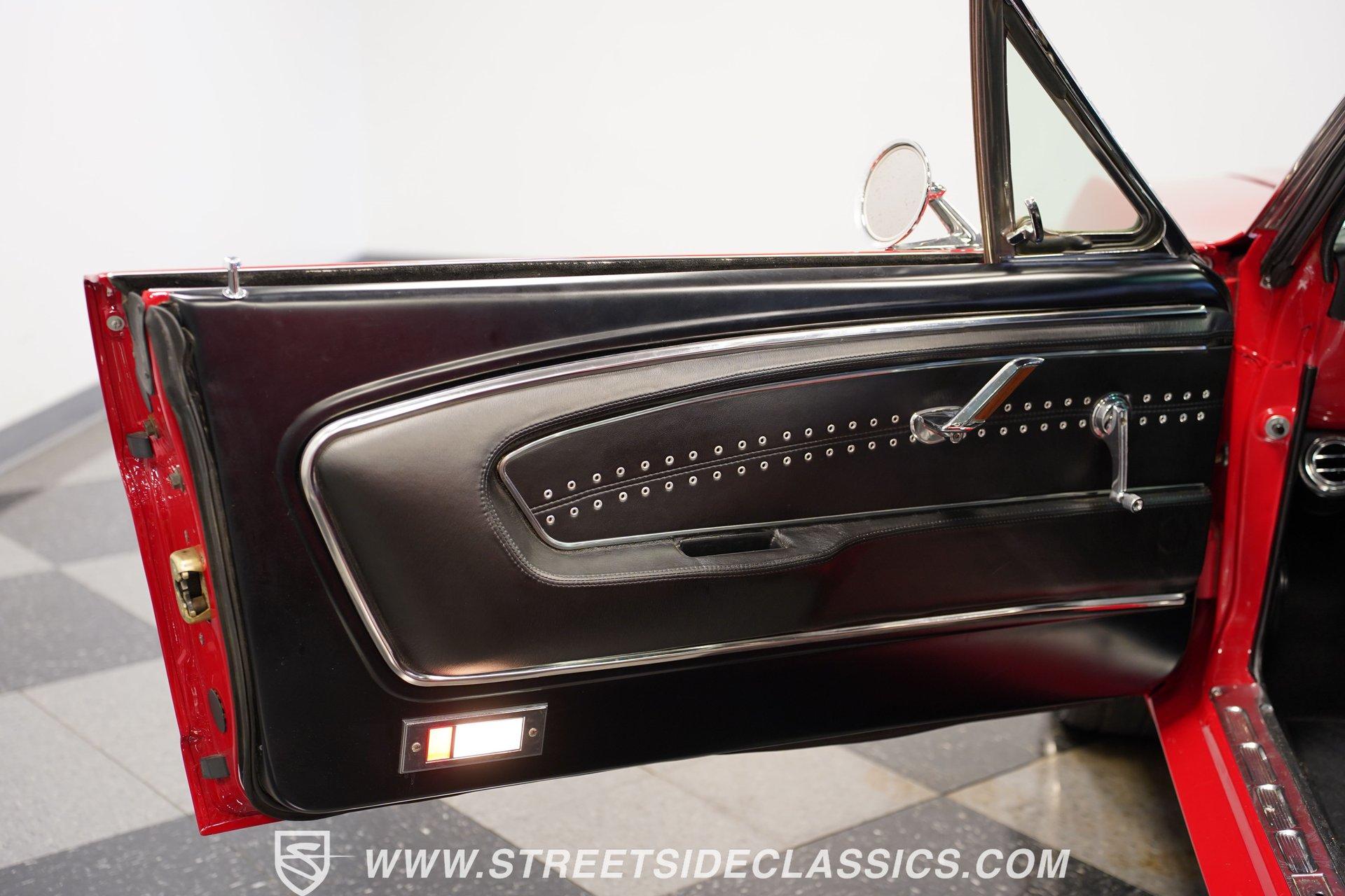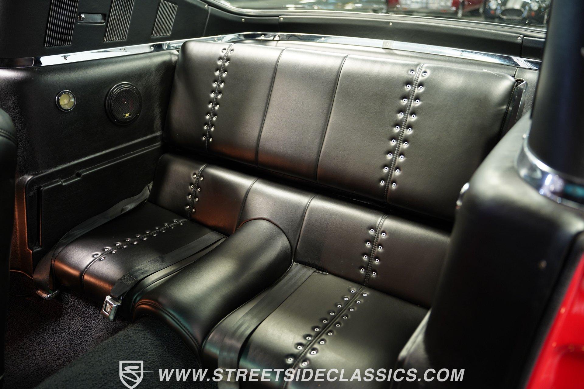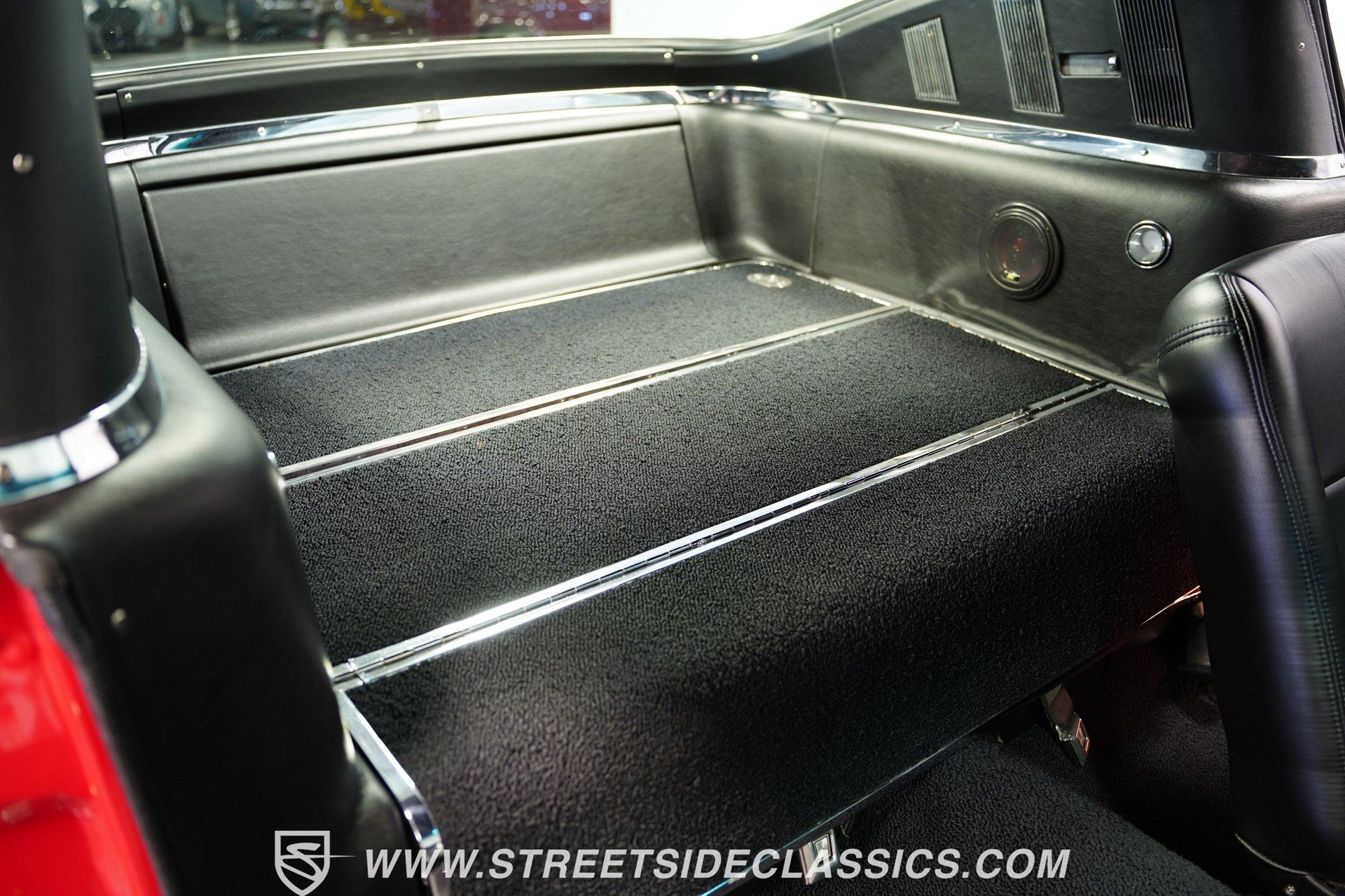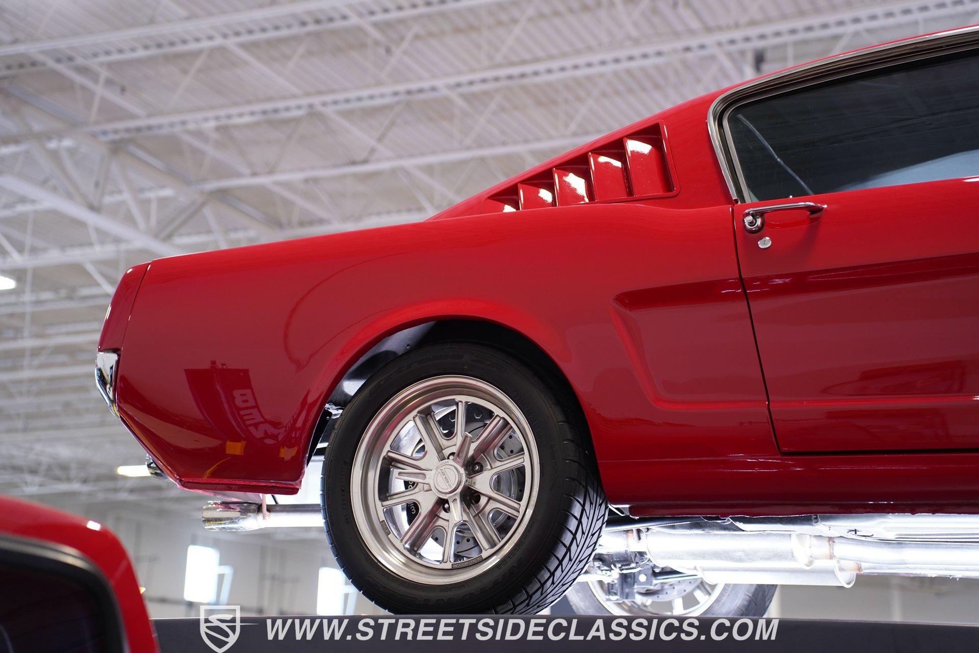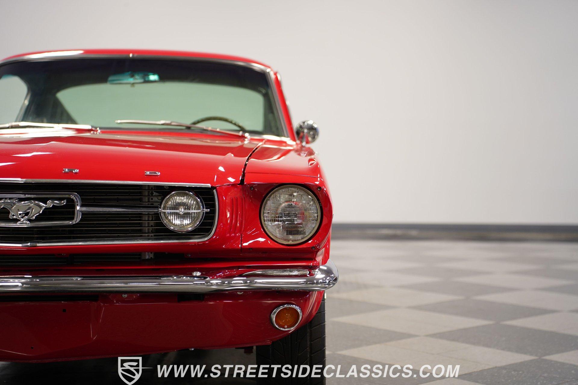 This 1966 Ford Mustang Fastback Restomod showcases a potent blend of classic style and modern performance. Sporting a vivid Red finish, this pony car's iconic fastback profile is accentuated by gleaming chrome brightwork, a GT lightbar in the grill and 17-inch American Racing Shelby Series wheels wrapped with performance tires staggered 235/45ZR17 front and P245/45ZR17 rear creating a confidant stance, hinting at the car's performance capabilities. This Mustang's exterior exemplifies the timeless appeal of Ford's original design, now enhanced with contemporary upgrades that elevate its presence on the road. Inside, the black interior presents a thoughtfully refreshed cabin. Custom leather bucket seats and door panels with lighting offer modern comfort, while cold modern air conditioning and a chrome tilt steering column adds a touch of refinement. The dashboard features upgraded MP round gauges and an upgraded Mustang logo AM/FM/cassette player radio with Bluetooth. A B&M Quick Silver floor shifter provides control of the upgraded transmission. This high-quality interior successfully combines classic Mustang elements with modern conveniences for an improved driving experience. Examining the engine bay reveals a healthy 351 Windsor V8 engine mated to a 4-speed automatic transmission that sends power back to a 9-inch rear end. This powerplant is equipped with aluminum heads, an Edelbrock intake, and electronic fuel injection for improved performance and reliability. Hedman long tube headers feed into a dual exhaust system fitted with Xceleraor mufflers, creating an unmistakable V8 soundtrack. Additional performance enhancements include an aluminum radiator, Ford Racing valve covers, power steering and a belt drive with March pulley brackets. With power assisted Wilwood disc brakes at all four corners and a well-tuned suspension featuring tubular front control arms and a coil triangulated four-link rear suspension with adjustable overs, this Mustang is equally adept at carving corners or dominating straight-line acceleration. HIGHLIGHTS: 351 Windsor V8 Engine 4-speed Automatic Transmission Electronic Fuel Injection Aluminum Cylinder Heads Edelbrock Intake Manifold Long Tube Hedman Headers Dual Exhaust System Aluminum Radiator Xceleraor Mufflers Wilwood Four-Wheel Disc Power Brakes Belt Drive Engine Accessories March Pull Brackets Ford 9-Inch Rear End Red Paint Ford Racing Valve Covers 17-inch American Racing Shelby Series Wheels Cold Air Conditioning Fastback Body Style Black Leather Bucket Seats Tubular Front Control Arms Upgraded MP Round Gauges Triangulated Four-Link Rear Suspension with Adjustable Coil Overs AM/FM/Cassette Radio with Bluetooth This 1966 Ford Mustang Fastback Restomod offers an enticing combination of classic styling and modern performance. Its potent 351 V8, precise 4-speed automatic, and carefully selected upgrades create an exhilarating driving experience wrapped in an iconic American design. Call today!