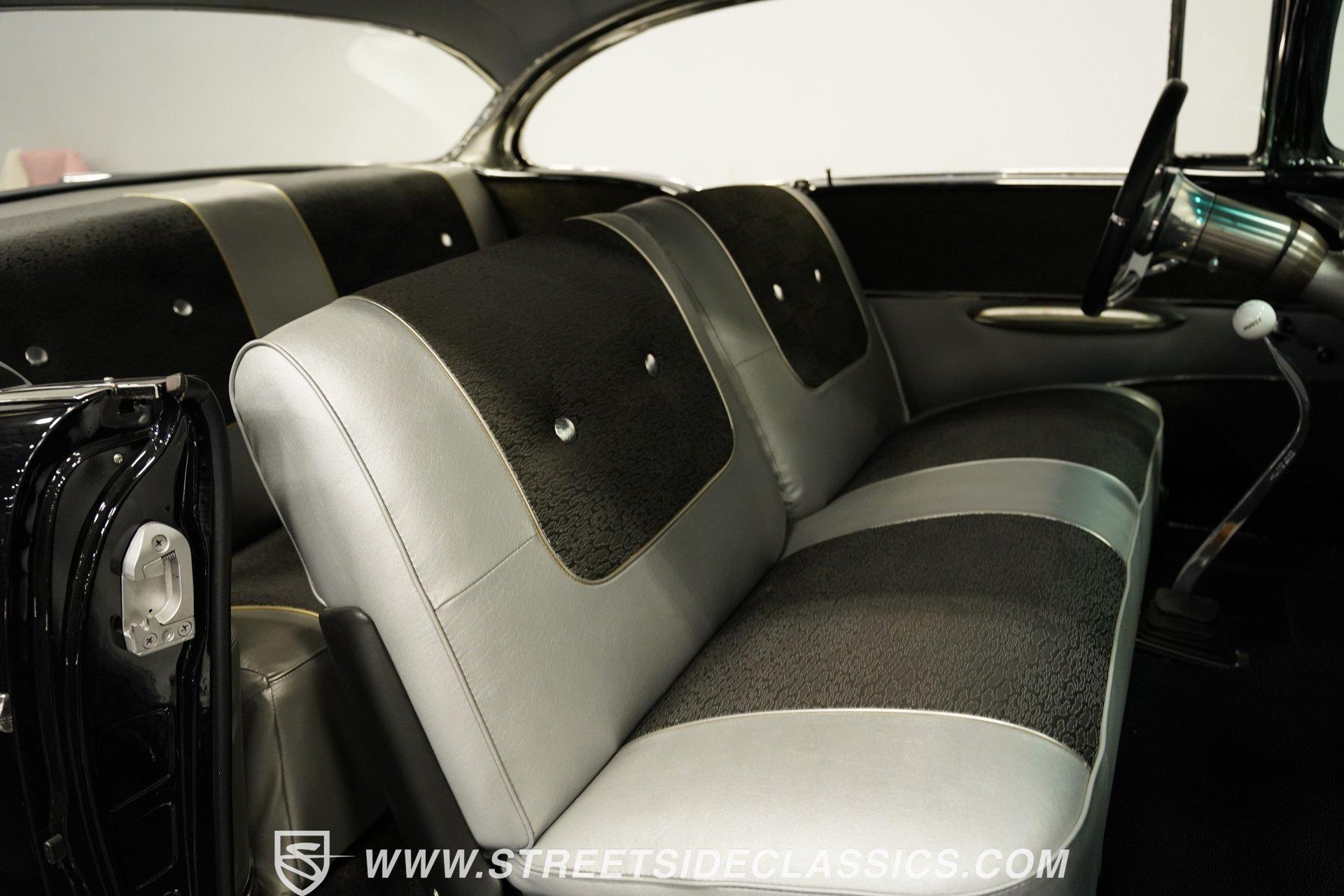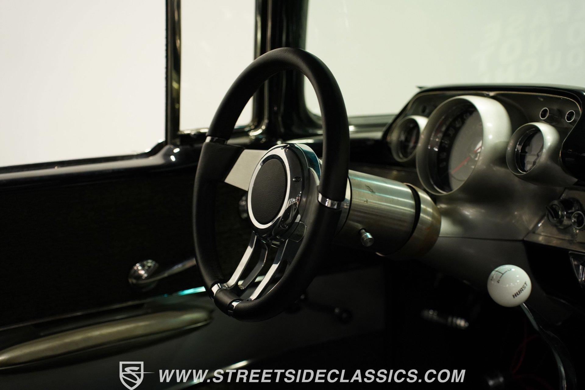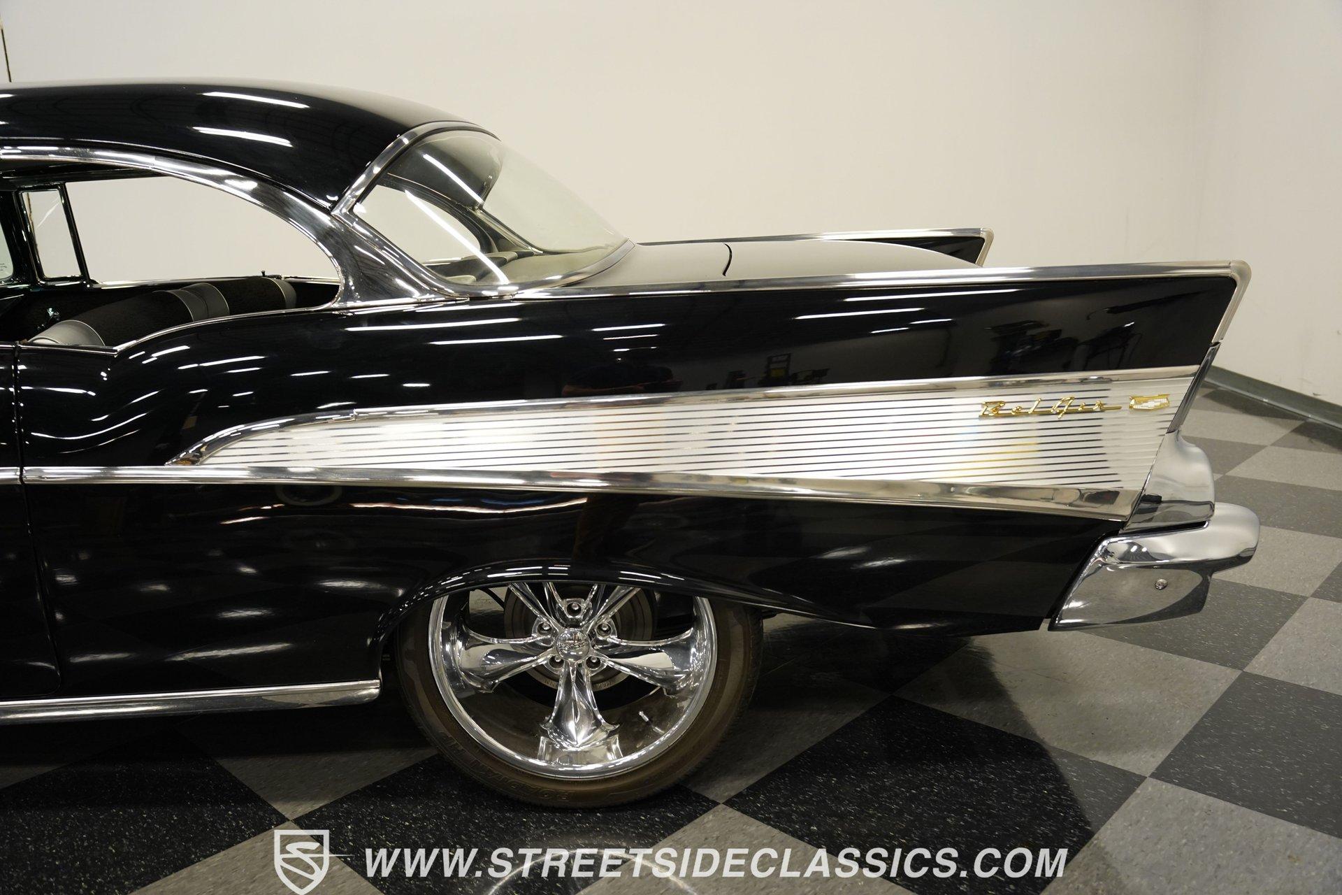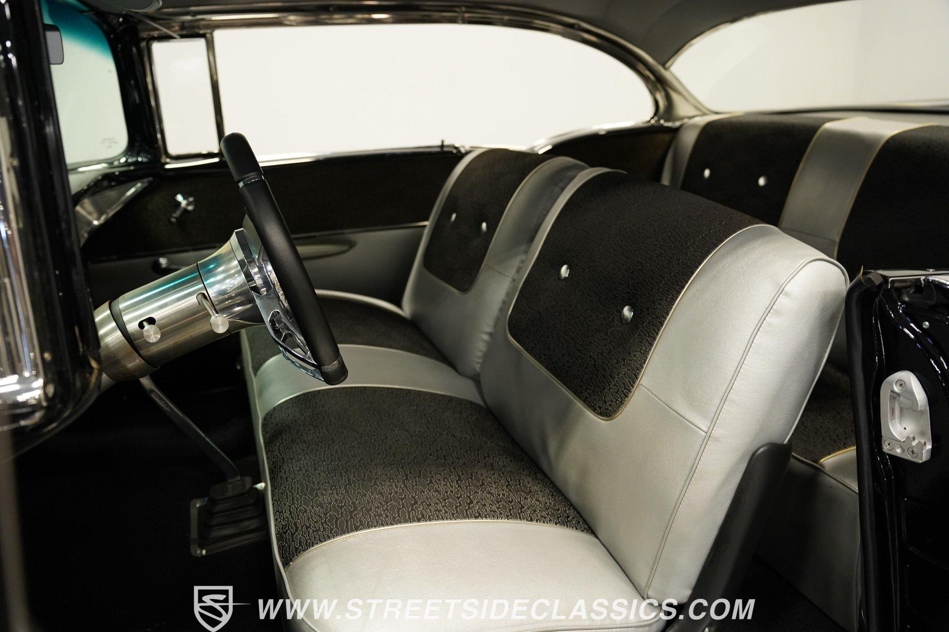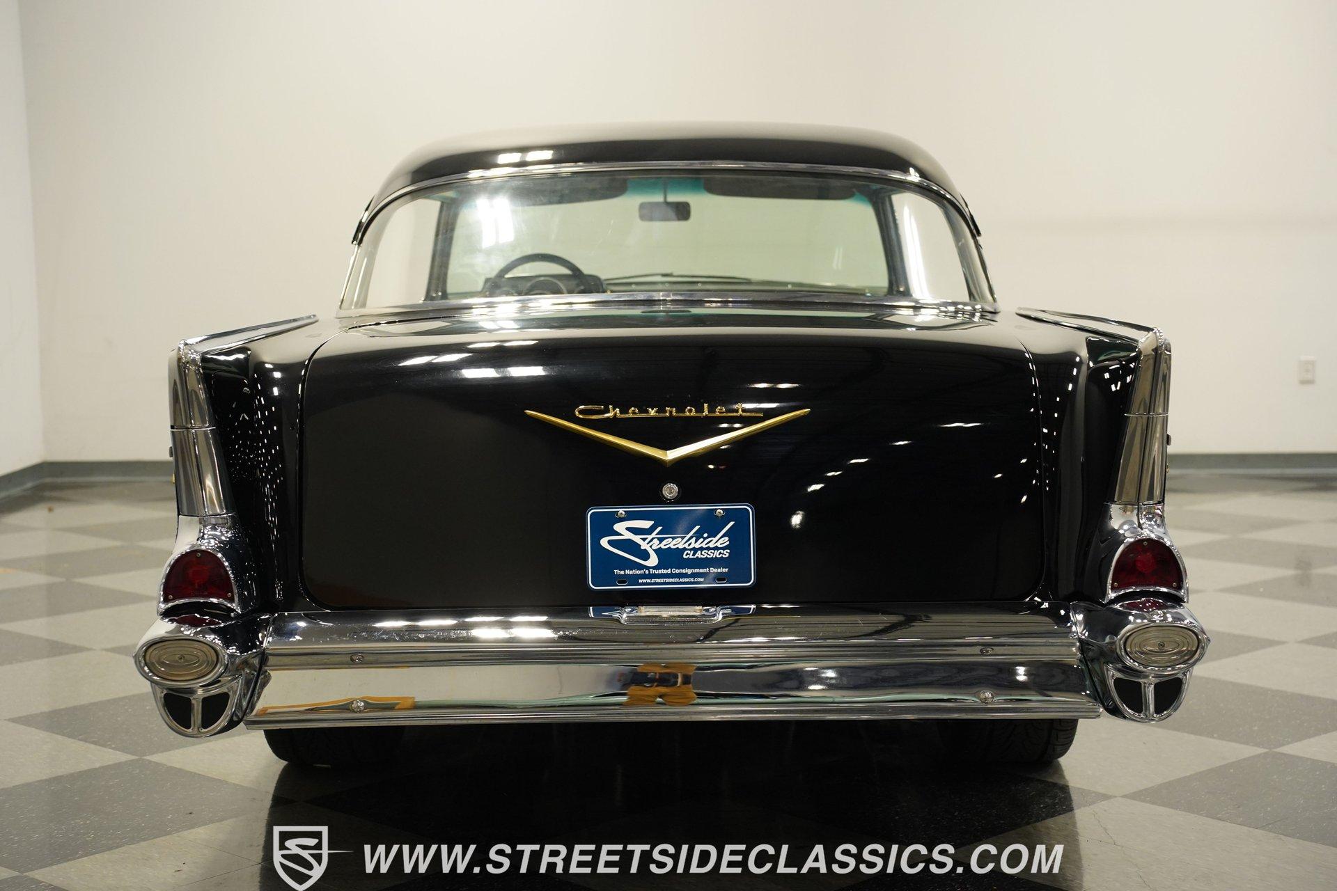 One of America's most celebrated Tri-Five Chevys, this 1957 Chevrolet Bel Air Hard Top comes dressed in Onyx Black with India Ivory accents. Chrome bumpers and bright work add depth to the two-tone color scheme, while the low-riding profile creates a lasting impression. Modified with a 2-inch drop in the rear, this Bel Air rolls on staggered Foose wheels - 18 inches up front and 20 inches in the rear, wrapped in 245/40ZR18 front and 275/40R20 rear tires. Inside, a full replacement gray interior blends classic style with modern touches. The two-tone gray vinyl and cloth split-bench seat provides ample room for long drives with passengers. A gray-painted dash displays gauges with excellent clarity, complemented by an aftermarket steering wheel for improved grip and control. The floor-mounted shifter for the 4-speed manual transmission sits within easy reach, and the AM radio remains in place for that authentic sound. A 383 Stroker V8 produces substantial power, appearing as a fresh build with minimal miles. A Holley 4-barrel carburetor manages fuel delivery, while Sanderson shorty headers feed into a dual exhaust system for improved breathing. The Borg Warner T10 4-speed manual transmission transfers power to the factory rear end. Handling benefits from tubular upper and lower CPP control arms, new steering components, ball joints, and body bushings, while power disc brakes up front give you plenty of stopping power. HIGHLIGHTS: 383 Stroker V8 Engine Holley 4-Barrel Carburetor Borg Warner T10 4-Speed Manual Transmission Sanderson Shorty Headers Dual Exhaust System Power Front Disc Brakes Tubular Upper and Lower CPP Control Arms New Steering Components and Ball Joints New Body Bushings Updated Radiator with Electric Fan CPP Steering Box Onyx Black with India Ivory Two-Tone Paint 18" Front, 20" Rear Foose Wheels 245/40ZR18 Front, 275/40R20 Rear Tires Chrome Bumpers Bright Work Trim Rear Lowered Approximately 2 Inches Two-Tone Gray Interior with Split-Bench Seat Gray-Painted Dash Clear Gauges Floor Shifter Aftermarket Steering Wheel AM Radio Power Steering Tilt Wheel From the 383 Stroker V8 to the 4-speed manual transmission and upgraded suspension, this 1957 Chevrolet Bel Air Hard Top combines classic American style with modern performance upgrades for a truly unique driving machine. Call today!