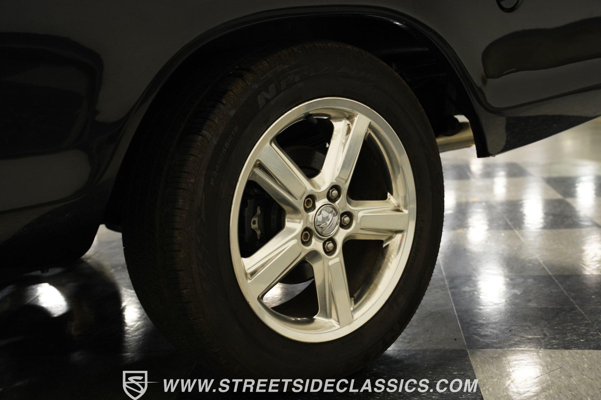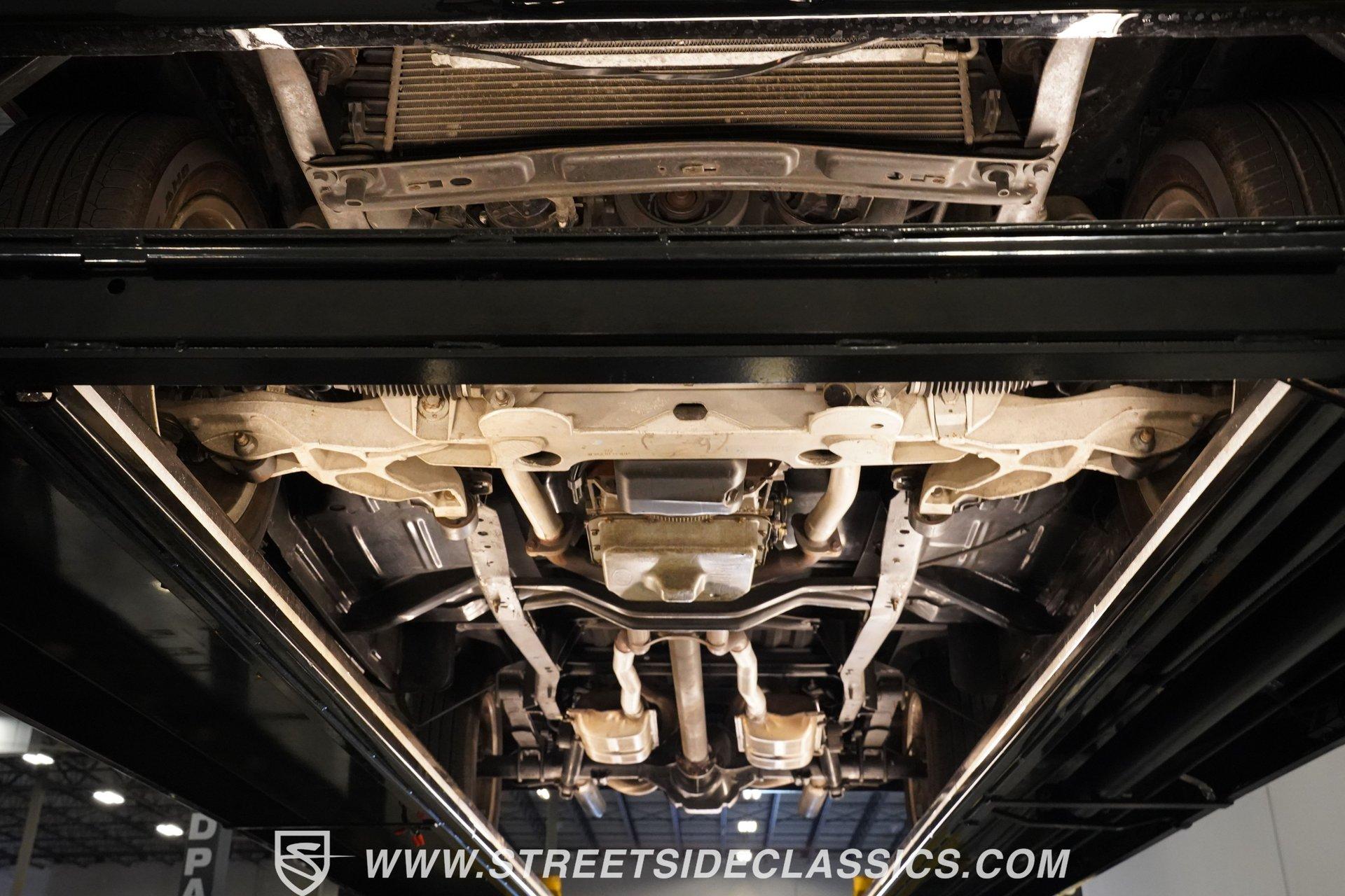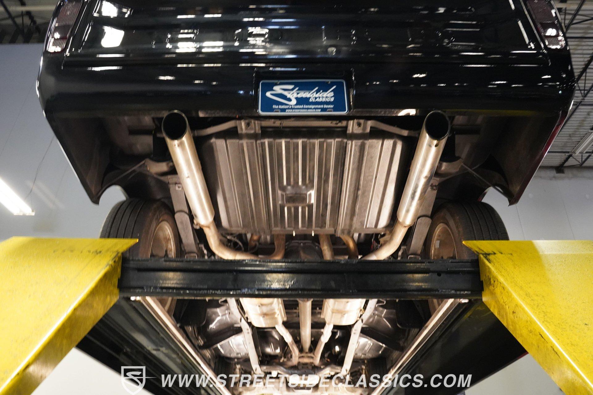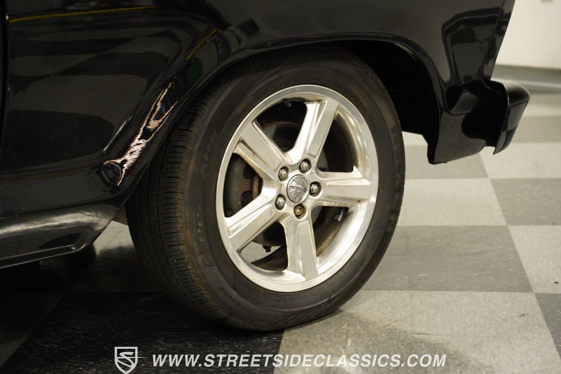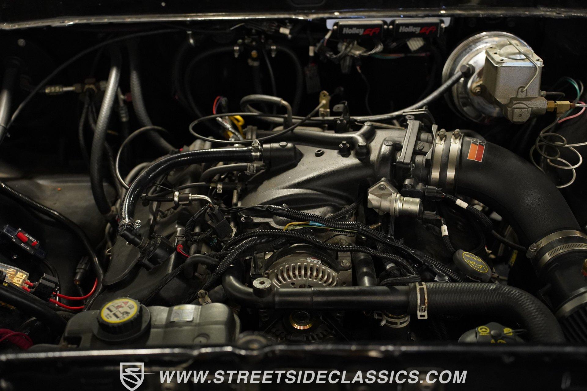 Midnight black from front to back, the 1975 Ford F-100 Restomod got a full makeover with a deep black paint job. Blacked out grille, painted bumpers, and darkened emblems create a complete blackout look that works exceptionally well on Ford's classic pickup design. Tinted windows add an extra layer of darkness to the overall appearance. 18" wheels and P245/55R18 tires give this F-100 an updated stance while maintaining the truck's tough character. Black vinyl wraps the bench seat and continues throughout the cabin for a factory-correct appearance. The dash shows excellent upkeep with zero cracks and a clean layout. Aftermarket gaugage placement gives the driver all necessary information at a glance. A JVC AM/FM/AUX stereo tucked away in the headliner adds modern audio capability without changing the original dashboard configuration. The floor-mounted shifter controls the four-speed automatic transmission with ease. A 4.6 liter 3-valve V8 engine sits in a clean engine bay, offering substantial power for this classic pickup. Holley Terminator electronic fuel injection improves starting, idle quality, and overall drivability compared to a carburetor. The AOD four-speed automatic transmission handles the power distribution. Mercury Marauder front-end components upgrade the handling characteristics. Four-wheel power disc brakes stop this truck with authority. Power steering is included for better control during all driving situations. HIGHLIGHTS: 4.6 Liter V8 3-Valve Engine 4 Speed Automatic AOD Transmission Holley Terminator Electronic Fuel Injection Mercury Marauder Front End Four Wheel Power Disc Brakes 8.8 Rear Axle Dual Exhaust With Aftermarket Mufflers Black Full Repaint 18" Wheels P245/55R18 Tires Blacked Out Grille Black Painted Bumpers Blacked Out Emblems And Trim Tinted Windows Black Interior With Bench Seat Clean Dash And Door Panels Aftermarket Gauges Power Steering JVC AM/FM/AUX Stereo In Headliner Floor Shifter Classic looks and modern muscle come together in this 1975 Ford F-100 Restomod. The 4.6L V8 engine and four-speed automatic transmission make for an excellent driving truck while the black-on-black color scheme gives it a tough, custom look that will never go out of style. Call today!