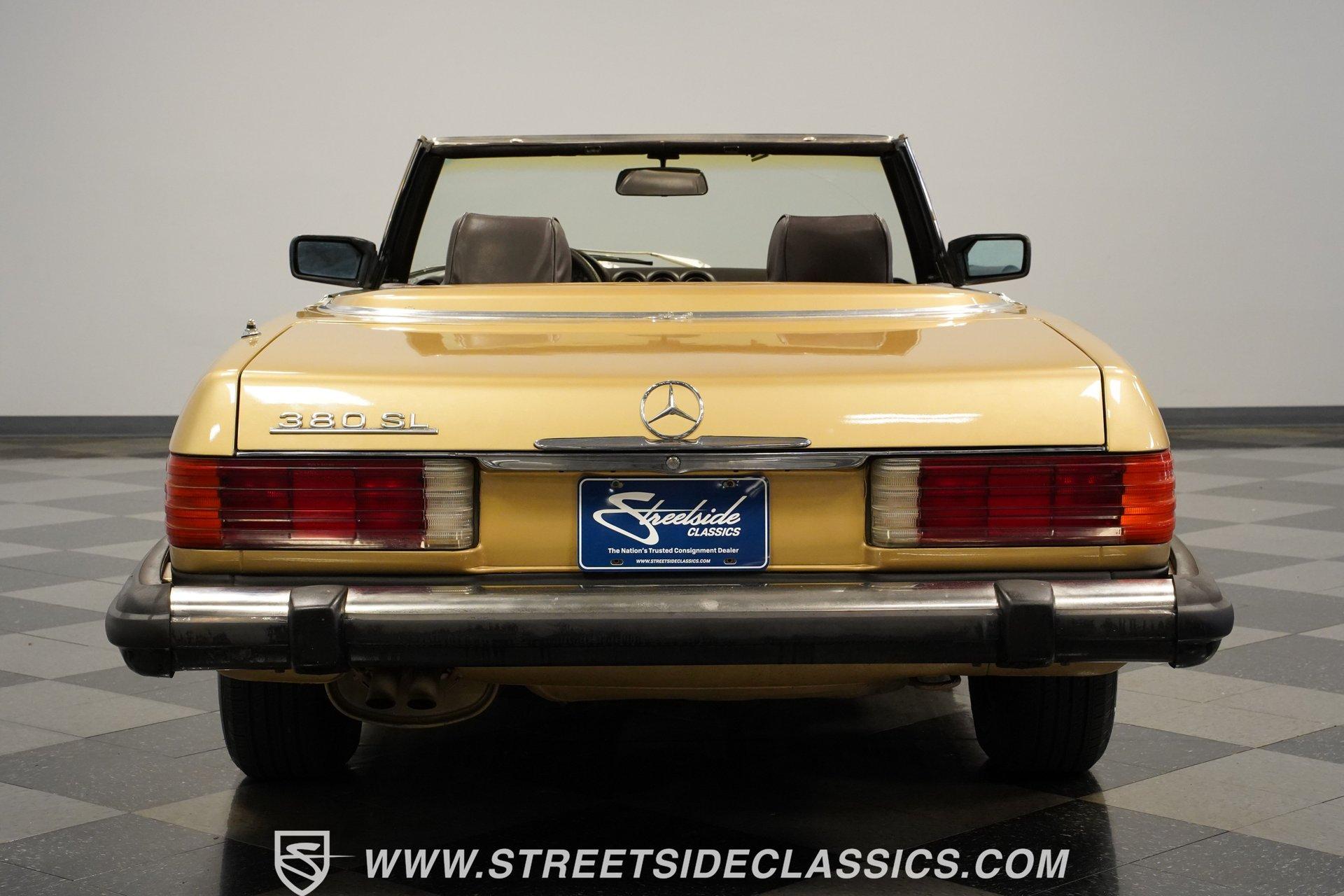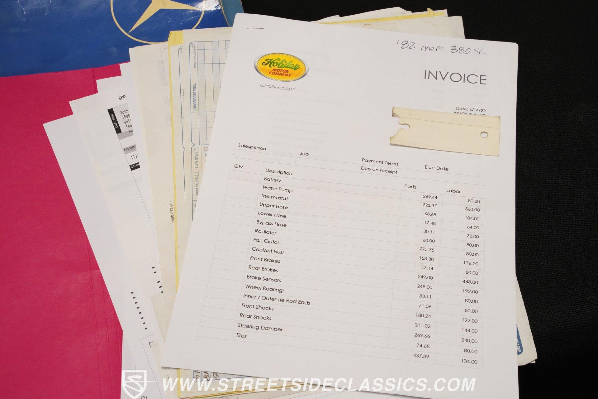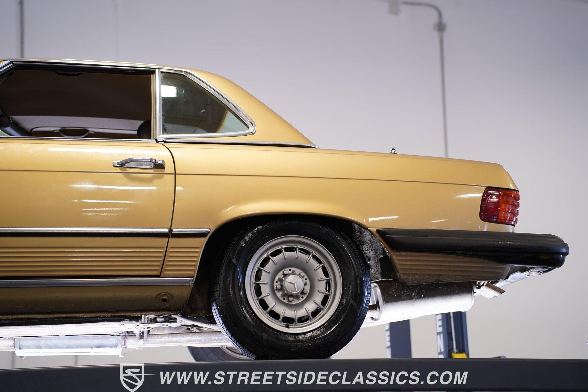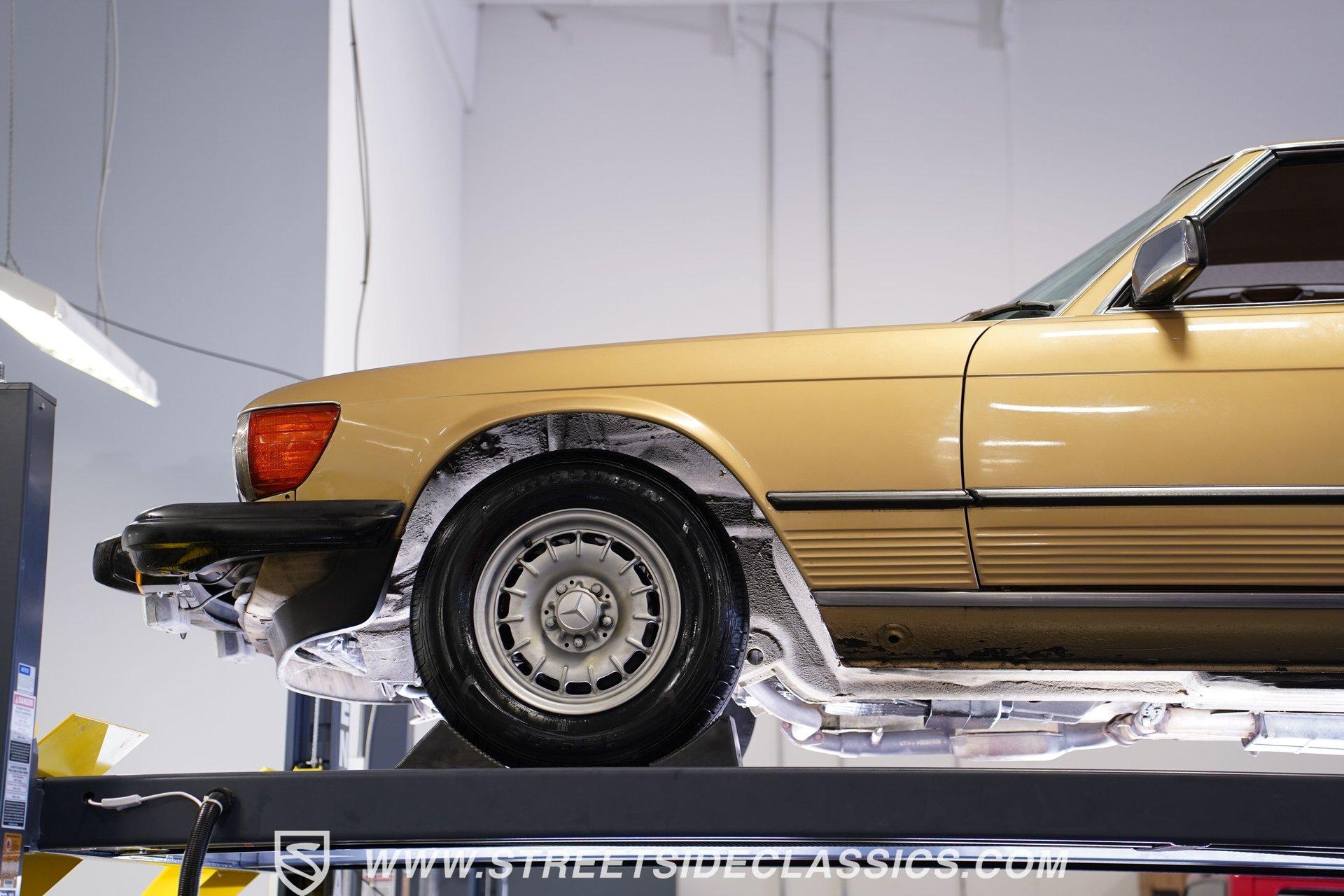 A professional repaint in 2022-2023 gave this 1982 Mercedes-Benz 380SL 107 its current Champagne Metallic finish. The convertible configuration includes a removable hardtop for all-weather options. Factory 14" wheels hold 205/70R14 tires, creating a proper German road stance. A manual convertible top allows quick changes to open-air driving. Chrome trim remains well-kept throughout, giving this German roadster a clean appearance from every view. Brown vinyl bucket seats form the foundation of this German interior. The center console positions the shifter for easy gear selection, and power windows add comfort to daily use. An updated audio system features AM/FM radio with Bluetooth and satellite functions, playing through Pioneer speakers mounted behind the seats. Original Mercedes-Benz steering wheel and gauges maintain factory authenticity throughout the cabin. A 3.8L V8 engine works alongside a 4-speed automatic transmission for strong performance. New mechanical upgrades include fresh shocks, sway bar, water pump, belt, brakes, and a complete engine tune-up. The dual-to-single-to-dual exhaust system produces a suitable sound for a German luxury automobile. Four-wheel power disc brakes handle stopping duties, while coil spring suspension with those new shocks provides control across varied road conditions. HIGHLIGHTS: 3.8L V8 Engine 4 Speed Automatic Transmission Electronic Fuel Injection Four Wheel Power Disc Brakes Coil Spring Suspension with Shocks New Water Pump and Belt New Shocks and Sway Bar Dual to Single to Dual Exhaust Champagne Metallic Paint 14" Wheels with 205/70R14 Tires Manual Convertible Top Removable Hardtop Brown Interior with Bucket Seats Power Steering Power Windows Console Shifter AM/FM/Bluetooth/Satellite Stereo Pioneer Speakers Owner's Manual and Maintenance Booklet Service Receipts Mercedes Tool Kit Floor Mats Recent Engine Tune-Up German engineering and open-air freedom come together in this 1982 Mercedes-Benz 380SL 107. With its V8 engine, Champagne Metallic finish, and substantial mechanical work, this Mercedes roadster wants a spot in your garage. Call today!