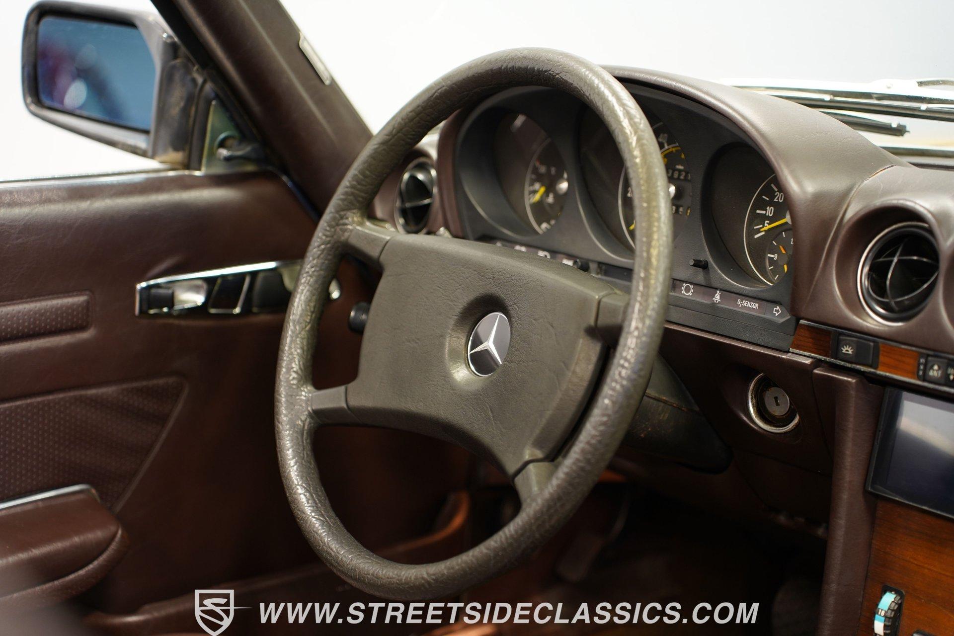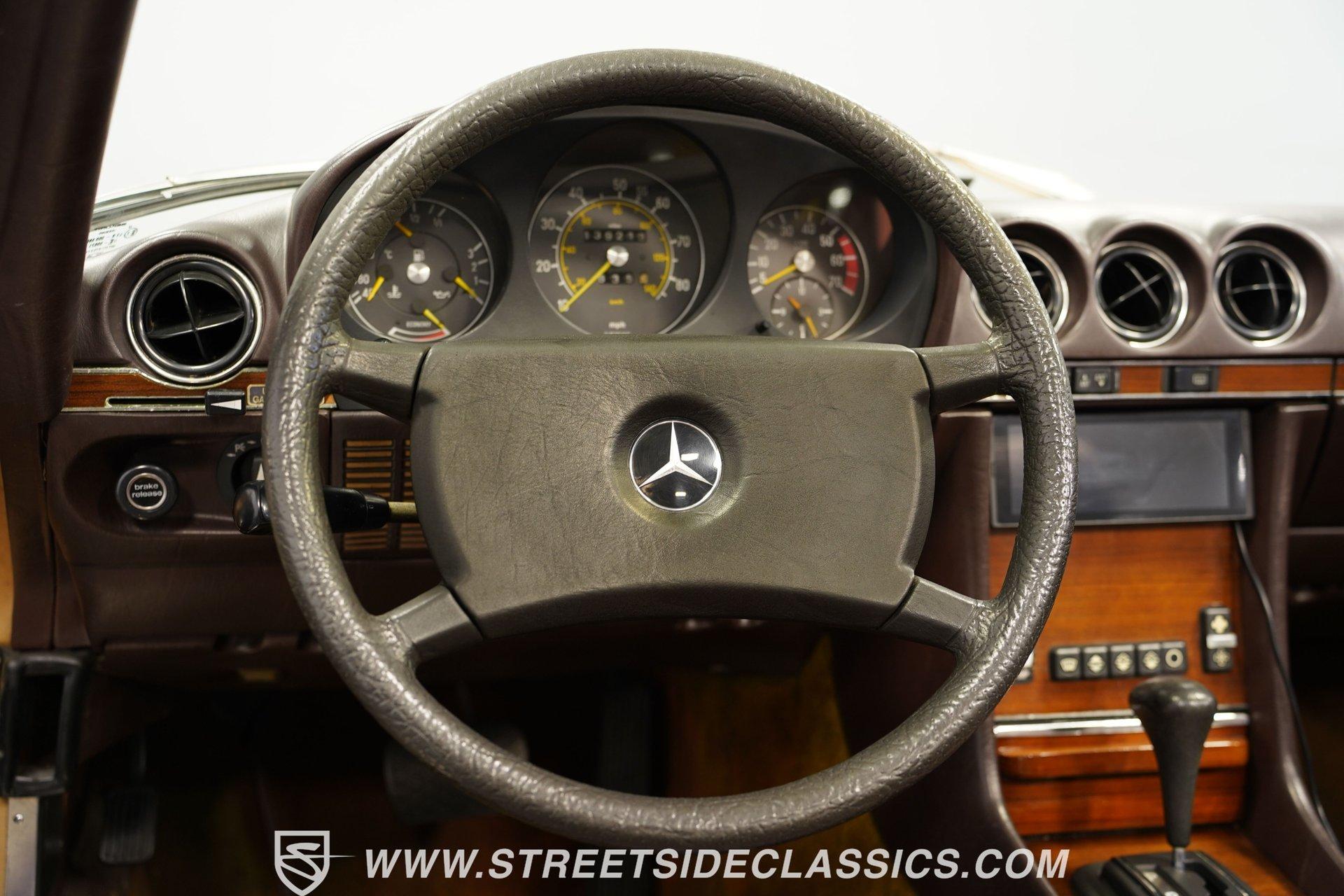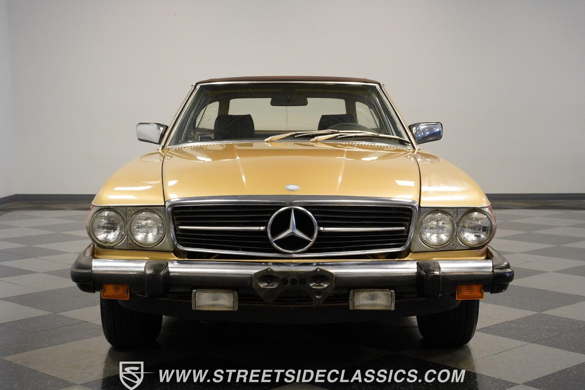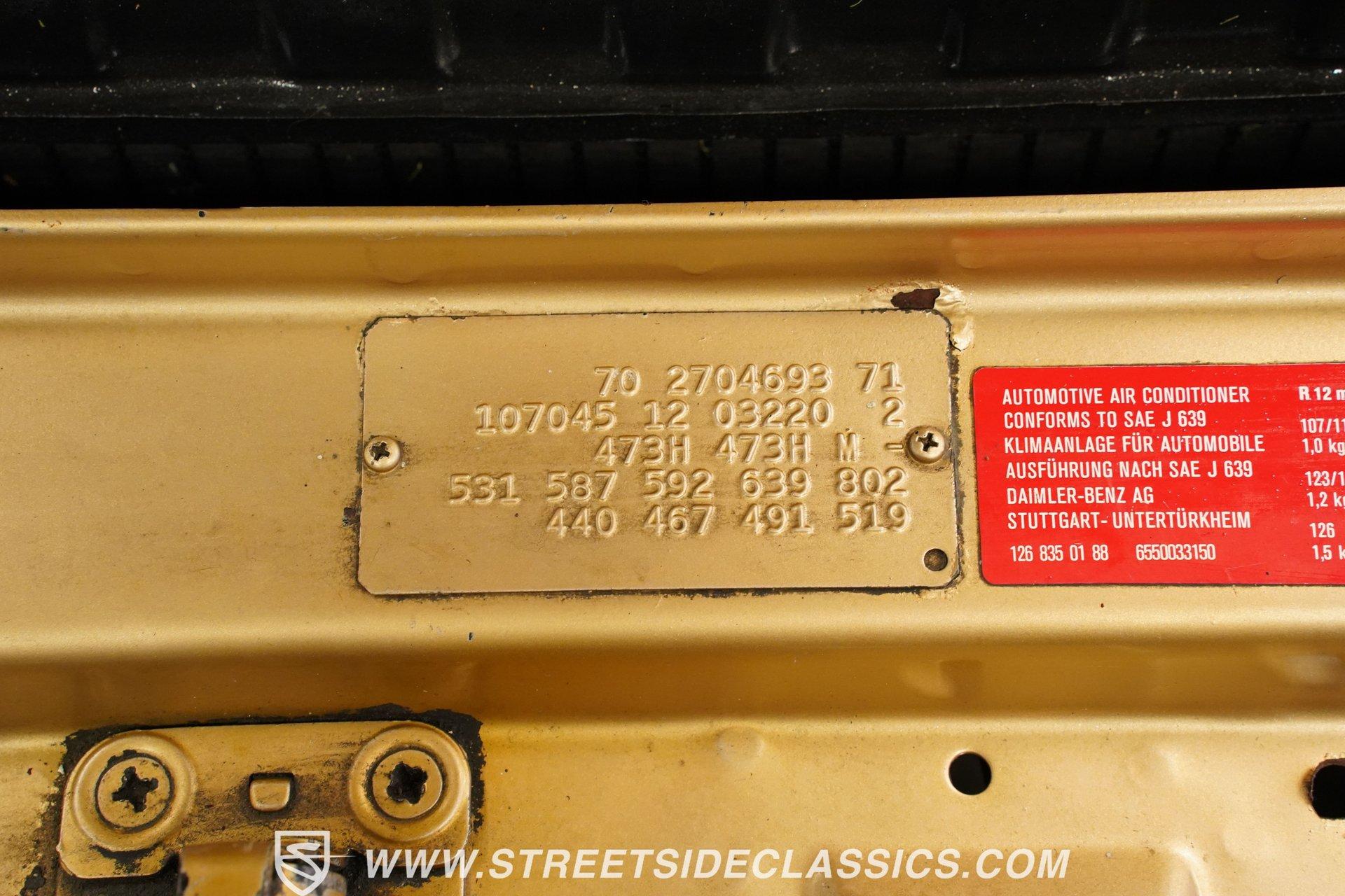 A professional repaint in 2022-2023 gave this 1982 Mercedes-Benz 380SL 107 its current Champagne Metallic finish. The convertible configuration includes a removable hardtop for all-weather options. Factory 14" wheels hold 205/70R14 tires, creating a proper German road stance. A manual convertible top allows quick changes to open-air driving. Chrome trim remains well-kept throughout, giving this German roadster a clean appearance from every view. Brown vinyl bucket seats form the foundation of this German interior. The center console positions the shifter for easy gear selection, and power windows add comfort to daily use. An updated audio system features AM/FM radio with Bluetooth and satellite functions, playing through Pioneer speakers mounted behind the seats. Original Mercedes-Benz steering wheel and gauges maintain factory authenticity throughout the cabin. A 3.8L V8 engine works alongside a 4-speed automatic transmission for strong performance. New mechanical upgrades include fresh shocks, sway bar, water pump, belt, brakes, and a complete engine tune-up. The dual-to-single-to-dual exhaust system produces a suitable sound for a German luxury automobile. Four-wheel power disc brakes handle stopping duties, while coil spring suspension with those new shocks provides control across varied road conditions. HIGHLIGHTS: 3.8L V8 Engine 4 Speed Automatic Transmission Electronic Fuel Injection Four Wheel Power Disc Brakes Coil Spring Suspension with Shocks New Water Pump and Belt New Shocks and Sway Bar Dual to Single to Dual Exhaust Champagne Metallic Paint 14" Wheels with 205/70R14 Tires Manual Convertible Top Removable Hardtop Brown Interior with Bucket Seats Power Steering Power Windows Console Shifter AM/FM/Bluetooth/Satellite Stereo Pioneer Speakers Owner's Manual and Maintenance Booklet Service Receipts Mercedes Tool Kit Floor Mats Recent Engine Tune-Up German engineering and open-air freedom come together in this 1982 Mercedes-Benz 380SL 107. With its V8 engine, Champagne Metallic finish, and substantial mechanical work, this Mercedes roadster wants a spot in your garage. Call today!