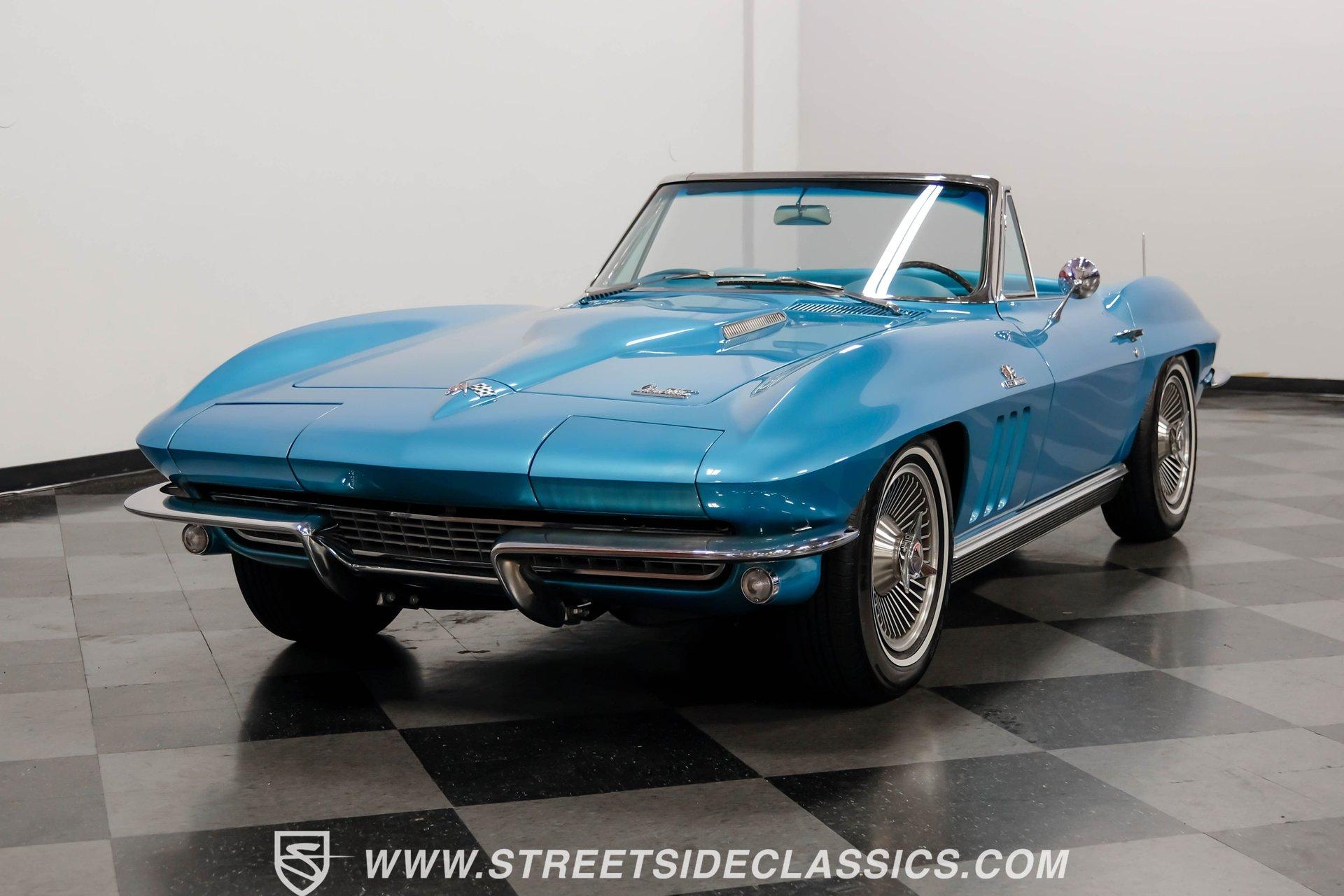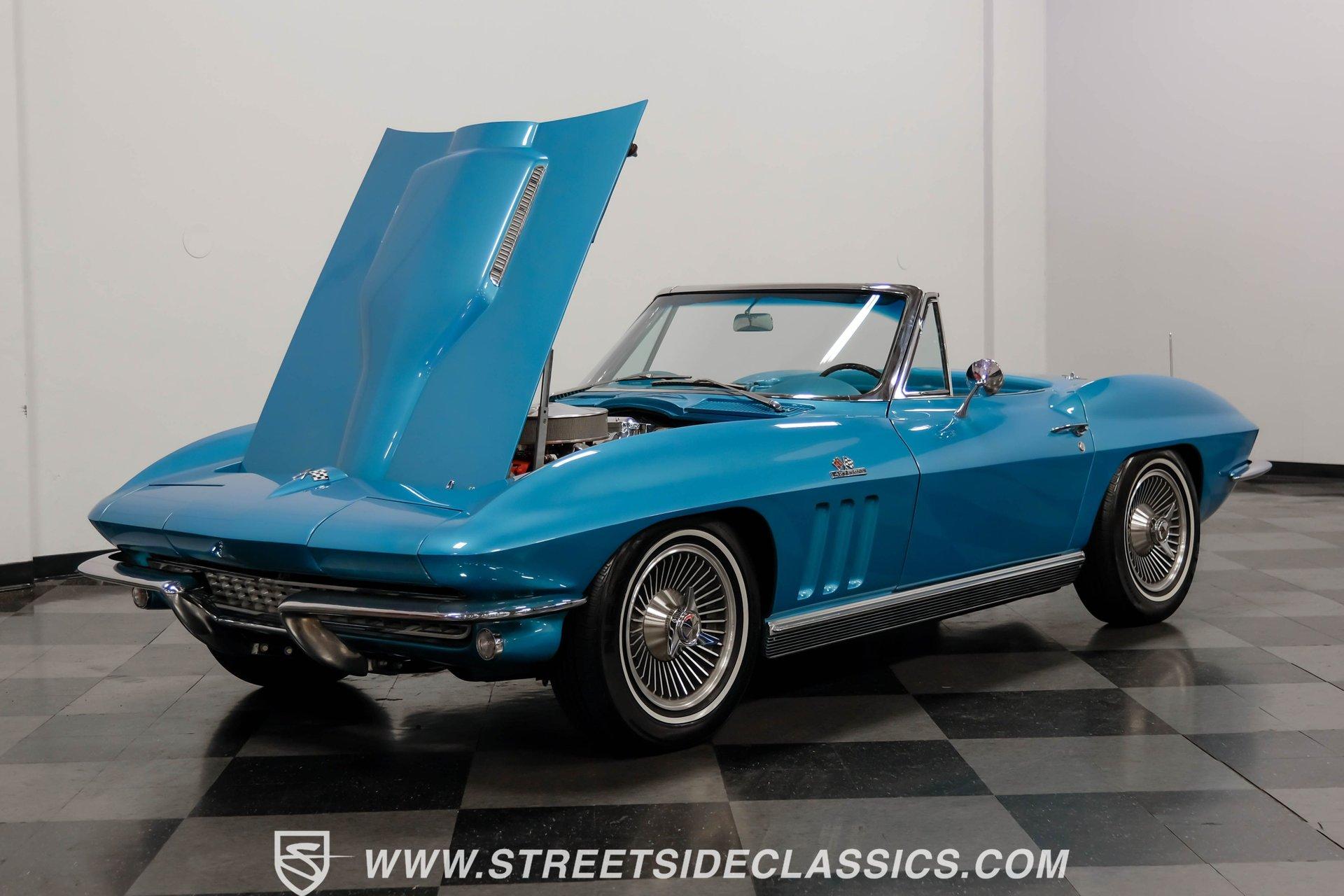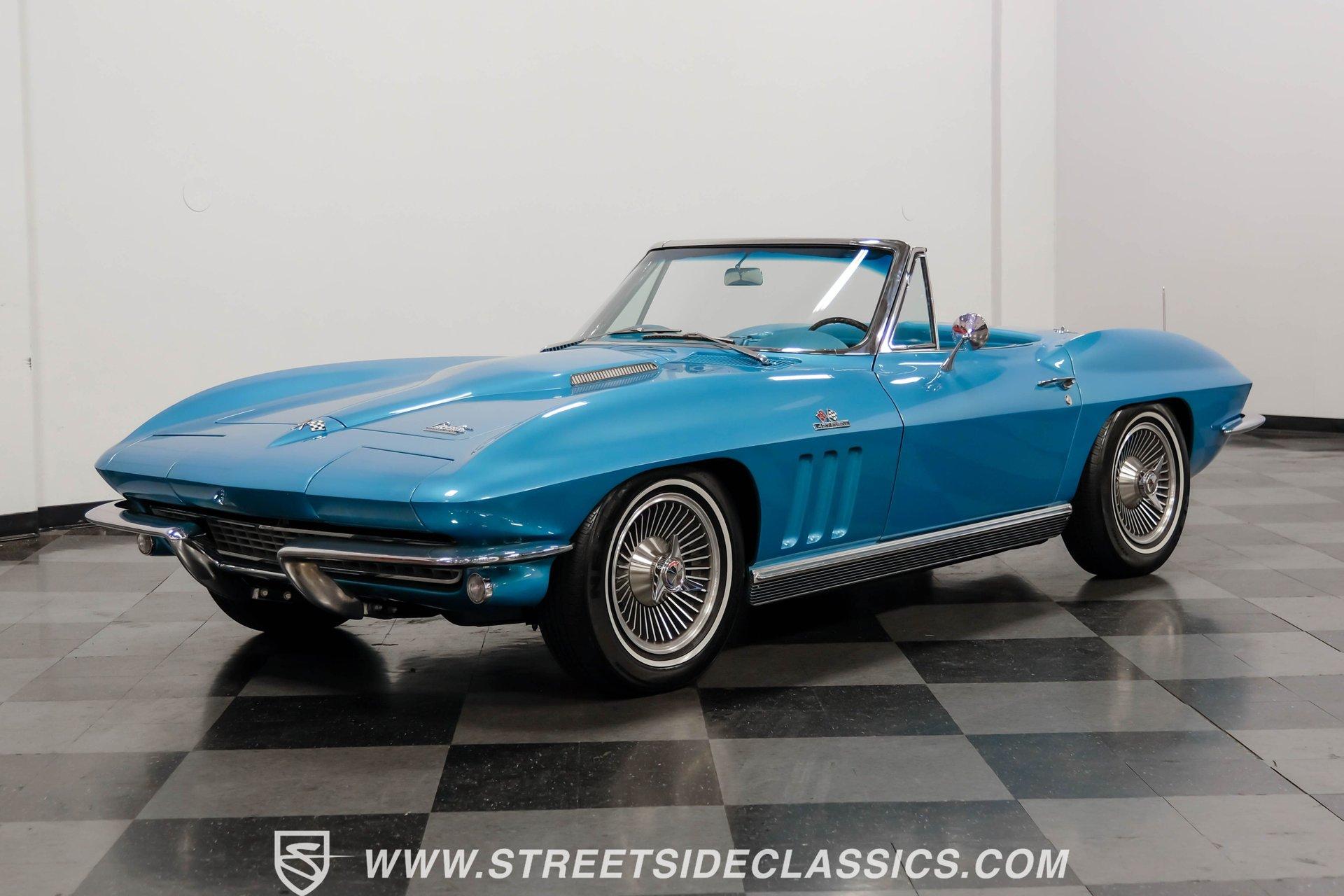 The numbers matching engine makes this 1966 Chevrolet Corvette 427 Convertible a verified big block machine finished in factory correct Nassau Blue paint. This convertible features both a white vinyl soft top and blue fiberglass removable hard top for versatility. Rolling on 15-inch wheels wrapped in 205/75R15 Nexen tires, dual exhaust exits complete the setup. Glass and rubber components maintain their integrity while classic Corvette proportions remain true to form. Blue leather bucket seats with center console create this driving environment inside this Corvette. This shifter has been modified to display the overdrive position for the upgraded transmission. Custom audio system includes speakers, amplifier, and subwoofer for modern sound quality. Wood grip steering wheel, power antenna, and vintage air conditioning round out this interior appointments. Power steering and power disc brakes are included. This numbers matching 427 L36 V8 engine produces 390 horsepower through a 4 barrel carburetor and connects to a Silver Sport 4-speed automatic transmission with overdrive. EPAS electric power steering replaces this original setup for improved handling and four-wheel power disc brakes handle stopping duties. A DeWitt radiator with dual electric fans manages cooling while this Corvette rear end transfers power to this pavement through this mono leaf spring rear suspension and coil spring front setup. HIGHLIGHTS: 427 L36 V8 Engine (Numbers Matching) 4 Speed Automatic Silver Sport Overdrive Transmission 4 Barrel Carburetor Four-Wheel Power Disc Brakes EPAS Electric Power Steering DeWitt Radiator with Dual Electric Fans Dual Exhaust System Nassau Blue Paint 15" Wheels 205/75R15 Nexen Tires White Vinyl Convertible Top Blue Fiberglass Removable Hard Top Blue Interior with Leather Bucket Seats Custom Audio System with Speakers, Amp, and Sub Wood Grip Steering Wheel Power Antenna Vintage Air Conditioning Original 4-Speed Muncie and Holley Carburetor Available This 1966 Chevrolet Corvette 427 Convertible combines numbers matching 427 power with modern upgrades for improved drivability. This overdrive transmission, electric power steering, and vintage air conditioning make this classic Corvette ready for regular use and both tops offer open-air or closed driving options. Call today!