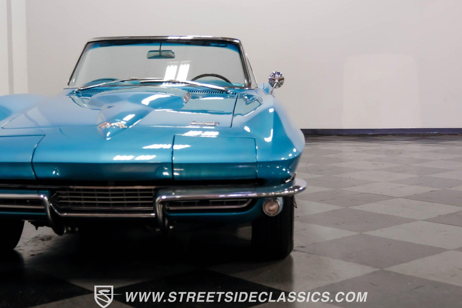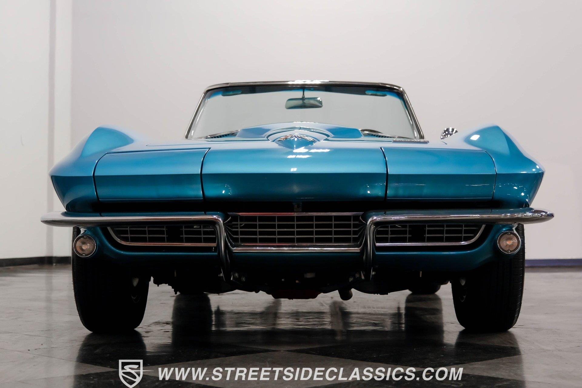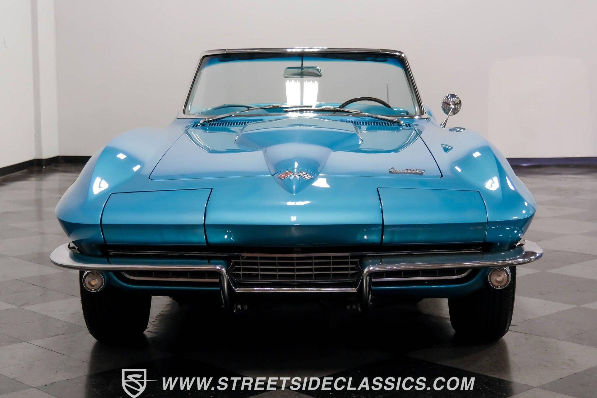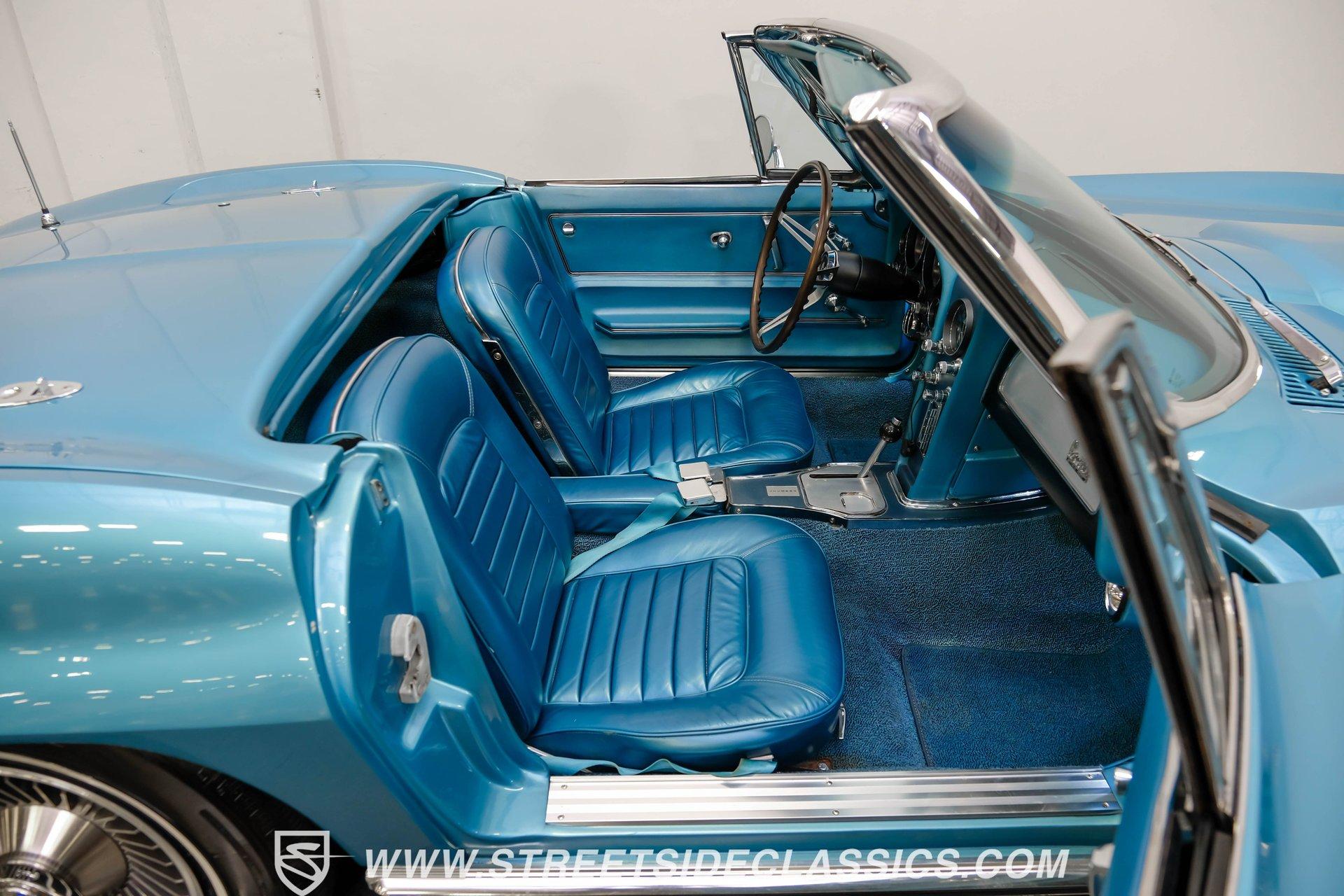The numbers matching engine makes this 1966 Chevrolet Corvette 427 Convertible a verified big block machine finished in factory correct Nassau Blue paint. This convertible features both a white vinyl soft top and blue fiberglass removable hard top for versatility. Rolling on 15-inch wheels wrapped in 205/75R15 Nexen tires, dual exhaust exits complete the setup. Glass and rubber components maintain their integrity while classic Corvette proportions remain true to form. Blue leather bucket seats with center console create this driving environment inside this Corvette. This shifter has been modified to display the overdrive position for the upgraded transmission. Custom audio system includes speakers, amplifier, and subwoofer for modern sound quality. Wood grip steering wheel, power antenna, and vintage air conditioning round out this interior appointments. Power steering and power disc brakes are included. This numbers matching 427 L36 V8 engine produces 390 horsepower through a 4 barrel carburetor and connects to a Silver Sport 4-speed automatic transmission with overdrive. EPAS electric power steering replaces this original setup for improved handling and four-wheel power disc brakes handle stopping duties. A DeWitt radiator with dual electric fans manages cooling while this Corvette rear end transfers power to this pavement through this mono leaf spring rear suspension and coil spring front setup. HIGHLIGHTS: 427 L36 V8 Engine (Numbers Matching) 4 Speed Automatic Silver Sport Overdrive Transmission 4 Barrel Carburetor Four-Wheel Power Disc Brakes EPAS Electric Power Steering DeWitt Radiator with Dual Electric Fans Dual Exhaust System Nassau Blue Paint 15" Wheels 205/75R15 Nexen Tires White Vinyl Convertible Top Blue Fiberglass Removable Hard Top Blue Interior with Leather Bucket Seats Custom Audio System with Speakers, Amp, and Sub Wood Grip Steering Wheel Power Antenna Vintage Air Conditioning Original 4-Speed Muncie and Holley Carburetor Available This 1966 Chevrolet Corvette 427 Convertible combines numbers matching 427 power with modern upgrades for improved drivability. This overdrive transmission, electric power steering, and vintage air conditioning make this classic Corvette ready for regular use and both tops offer open-air or closed driving options. Call today!