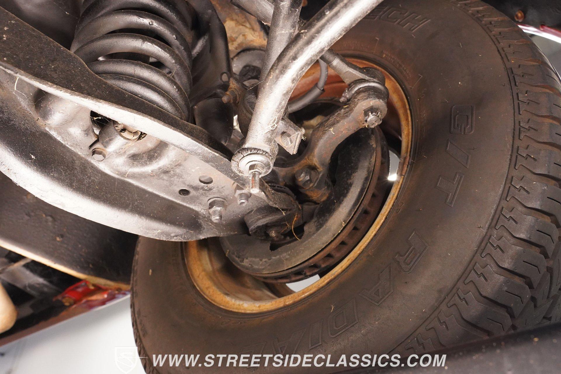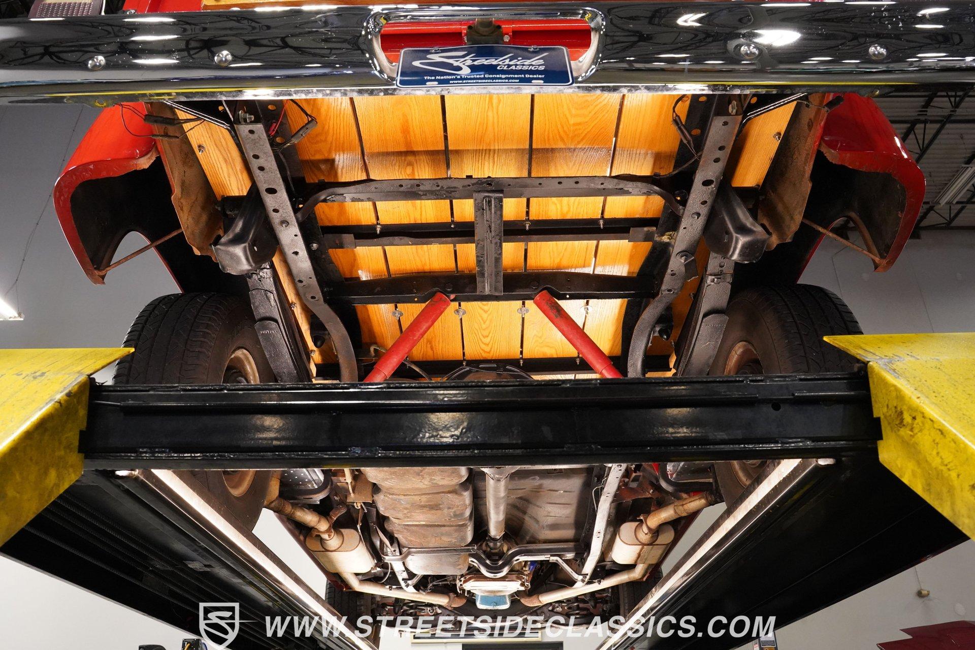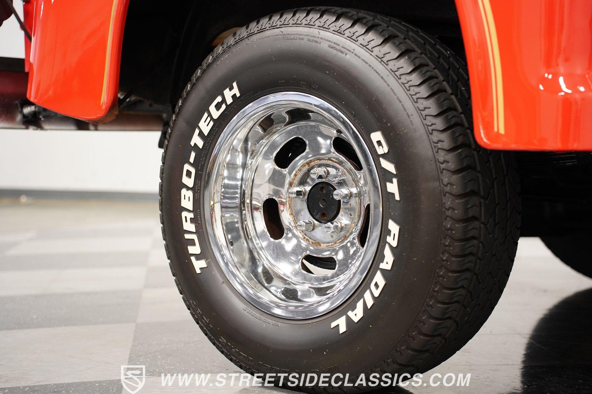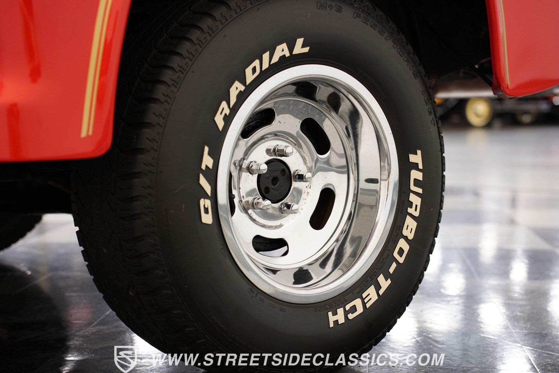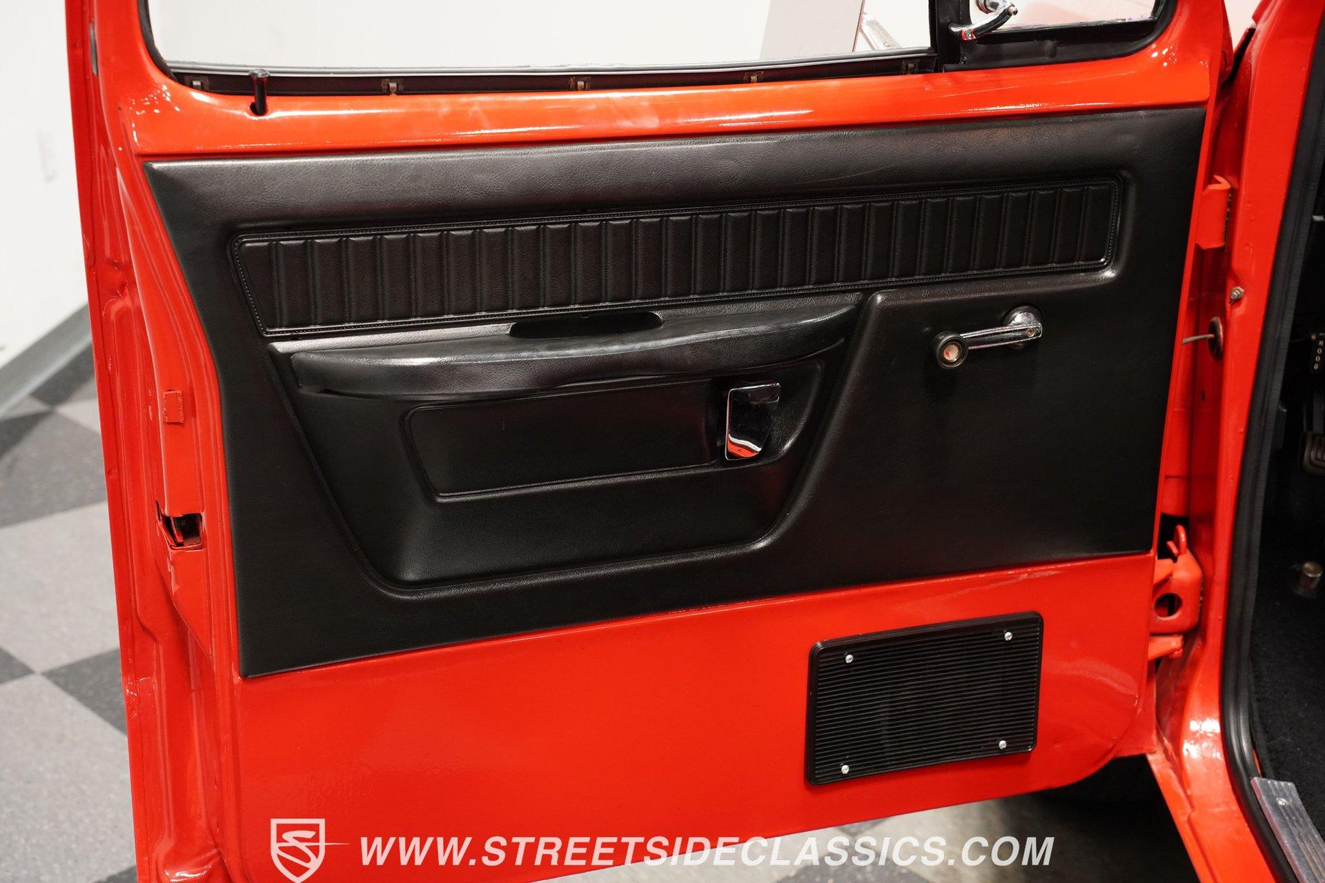 Limited to just two model years of production, this 1979 Dodge Lil Red Express features the signature red paint and Lil Red Express decals that mark its heritage. Chrome slotted wheels measuring 15 inches anchor each corner, wrapped in P255/70R15 tires that plant this pickup firmly to the pavement. The wood bed stretches behind the cab while chrome bumpers bookend the truck's profile, Side exit stacks punctuate the truck's flanks, creating the signature look that made these pickups so distinctive during their brief production run. Black vinyl covers the factory split bench seat, creating a workspace built for function over frills. The column shifter keeps the transmission controls within easy reach while auxiliary gauges mounted under the dash provide additional monitoring capabilities. Crack-free dash and door panels frame the interior space, complemented by clean carpet underfoot. The Pioneer AM/FM single CD player handles audio duties while crank windows and the absence of air conditioning keep things simple and mechanical in the cabin. The 360 V8 engine provides the power, fed by an Edelbrock AVS2 1906 carburetor that meters fuel delivery with precision. A 3-speed A727 Torqueflite automatic transmission transfers power to the rear wheels while power steering lightens the wheel effort during maneuvering. Power disc brakes up front handle stopping duties, and the side exit exhaust system creates its distinctive sound. Factory manifolds route exhaust gases through the system while power brakes assist with pedal effort during deceleration. HIGHLIGHTS: 360 V8 Engine 3-Speed A727 Torqueflite Automatic Transmission Edelbrock AVS2 1906 Carburetor Power Disc Brakes Side Exit Exhaust Stacks Factory Manifolds Red Paint 15" Chrome Slotted Wheels P255/70R15 Tires Wood Bed Chrome Bumpers Lil Red Express Decals Side Exit Stacks Black Interior with Split Bench Seat Column Shifter Pioneer AM/FM Single CD Player Auxiliary Gauges Under Dash Power Steering Clean Carpet Factory Buildsheet Owner's Manual This 1979 Dodge Lil Red Express combines the 360 V8 power, distinctive side exit stacks, and wood bed styling that made these limited production trucks collectible. The red exterior and black interior create the classic combination these trucks were known for. Call today!