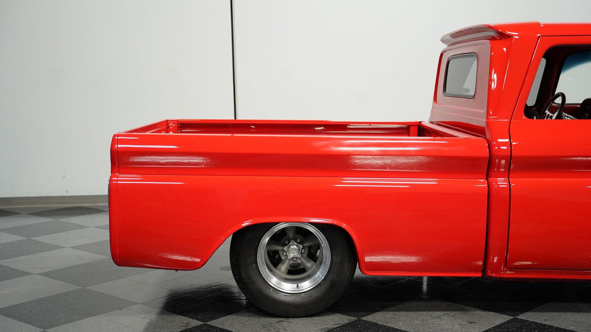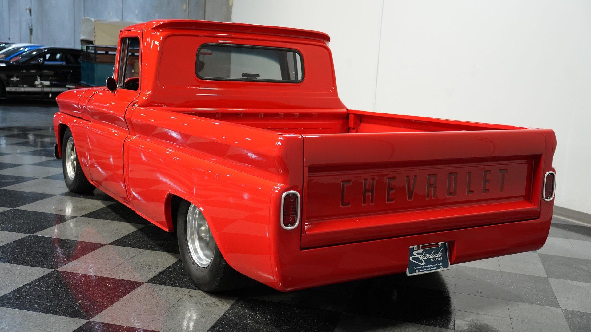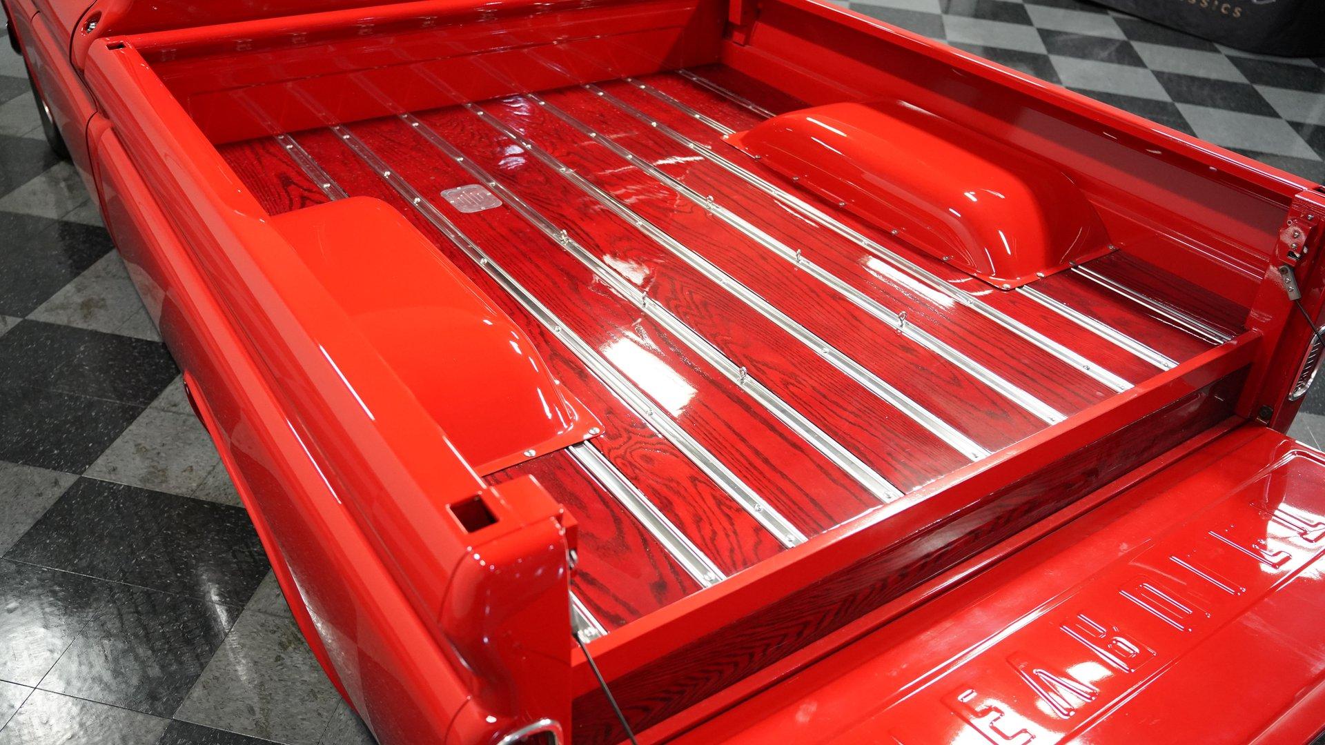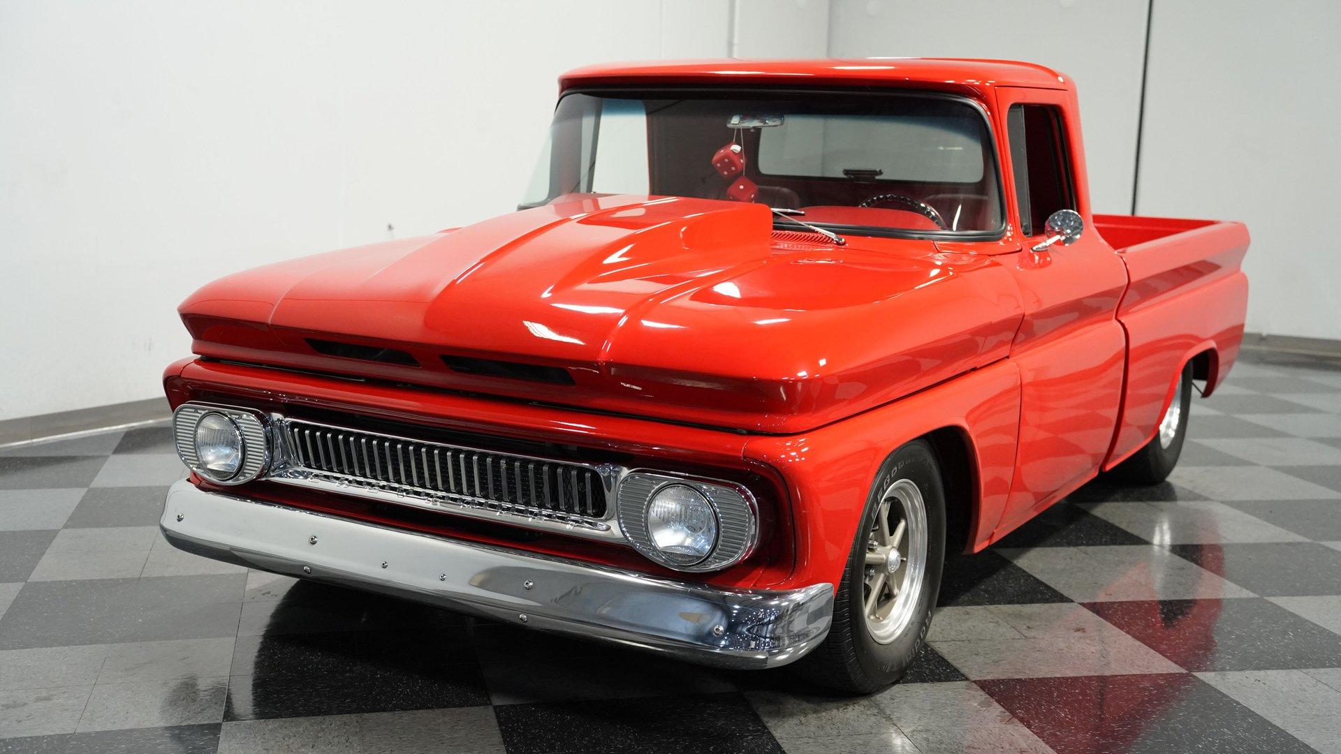 Featuring a restomod foundation with modern performance upgrades, this 1962 Chevrolet C10 LS1 Restomod wears red paint across its clean lines, complemented by a cowl hood that adds aggressive styling to the front end. Chrome inner fenders and radiator support shine when the hood is raised, while 15" wheels wrapped in 225/70R15 front and 29.0x15.0-15 rear tires provide the proper stance. The custom grille and short bed configuration complete the exterior package, with pinstriping on the frame adding subtle detail work. Red leather and cloth bucket seats with center console create a custom interior environment that balances classic truck appeal with modern comfort. Steve Holcomb crafted this interior to include air conditioning, power windows, and a tilt wheel for convenience. The TCI console shifter puts gear changes at your fingertips, while digital gauges provide clear information. An AM/FM single CD player with AUX input in the glovebox handles entertainment duties, and seatbelts provide safety. The red interior theme flows throughout the cabin, creating a cohesive color scheme that matches the exterior. The 5.7 liter LS1 V8 from a 1998 Camaro provides the motivation, fed by electronic fuel injection and backed by a 4L60E 4-speed automatic transmission. Edelbrock shorty headers feed into dual MagnaFlow exhaust with cutouts controlled by a switch below the driver seat. An aluminum radiator with electric fans keeps temperatures in check, while the Ford 9" rear axle handles power delivery. Power disc brakes at all four corners provide stopping power with drilled and slotted front rotors. Coil spring, shock, and sway bar front suspension pairs with 4-link adjustable coilovers in the rear. HIGHLIGHTS: 5.7 Liter LS1 V8 Engine Electronic Fuel Injection 4L60E 4 Speed Automatic Transmission Ford 9" Rear Axle Power Disc Brakes With Drilled & Slotted Front Rotors Coil Spring/Shock/Sway Bar Front Suspension 4 Link w/ Adjustable Coilovers Rear Suspension Dual Exhaust MagnaFlow Mufflers Edelbrock Shorty Headers Aluminum Radiator Electric Fans Exhaust Cutouts Red Paint Cowl Hood Custom Grille 15" Wheels 225/70R15 Front, 29.0x15.0-15 Rear Tires Chrome Inner Fenders And Radiator Support Red Leather & Cloth Interior With Bucket Seats TCI Console Shifter Air Conditioning Power Windows Tilt Wheel AM/FM Single CD Player w/ AUX Input Digital Gauges Power Steering Remote Door Openers Classic C10 styling with modern LS1 performance, this 1962 Chevrolet C10 LS1 Restomod delivers the perfect balance of vintage appeal and contemporary capability. Call today!