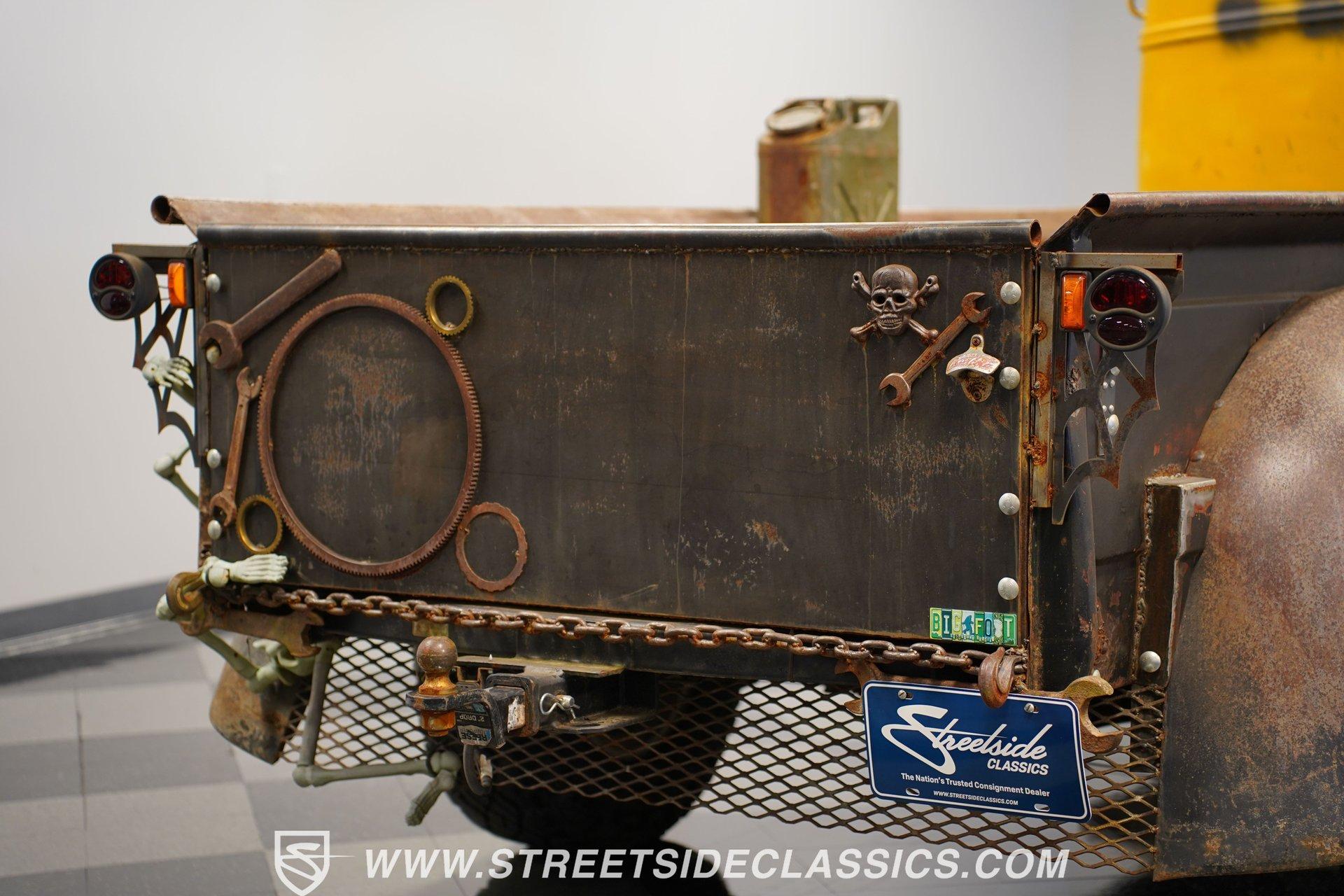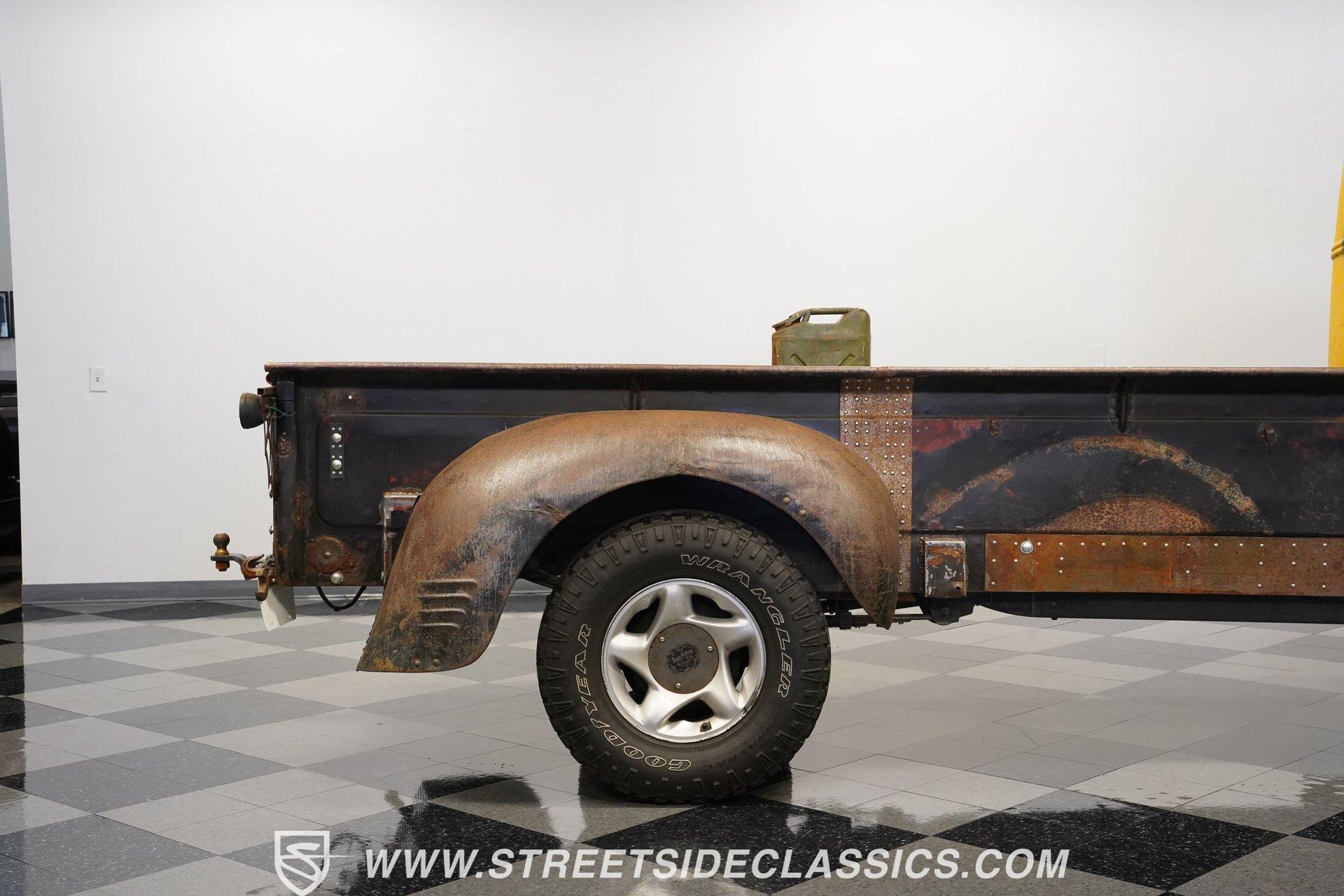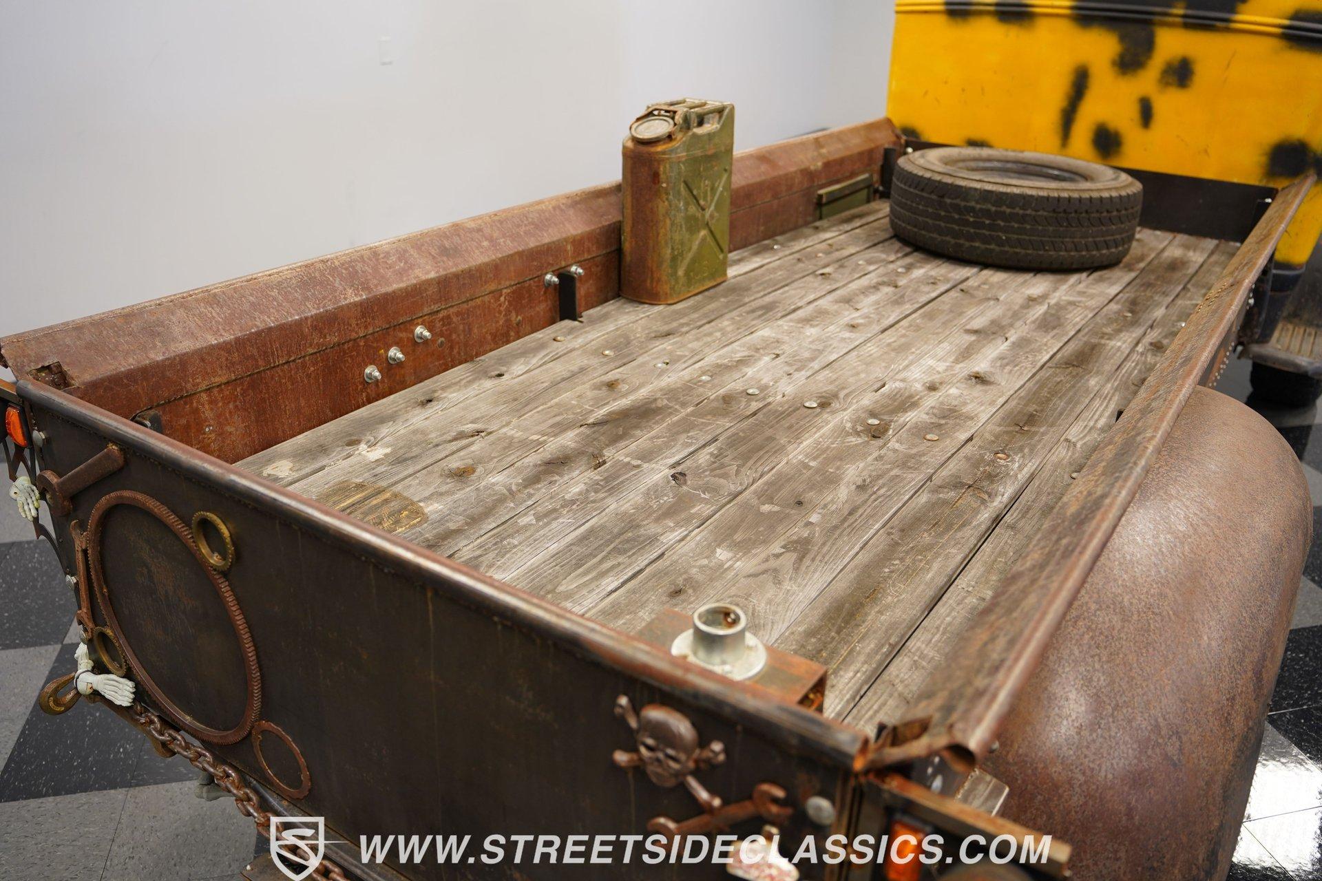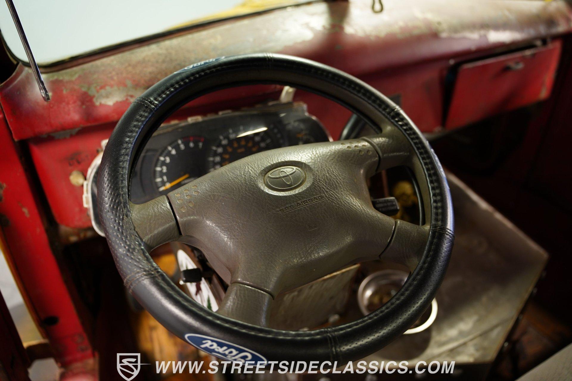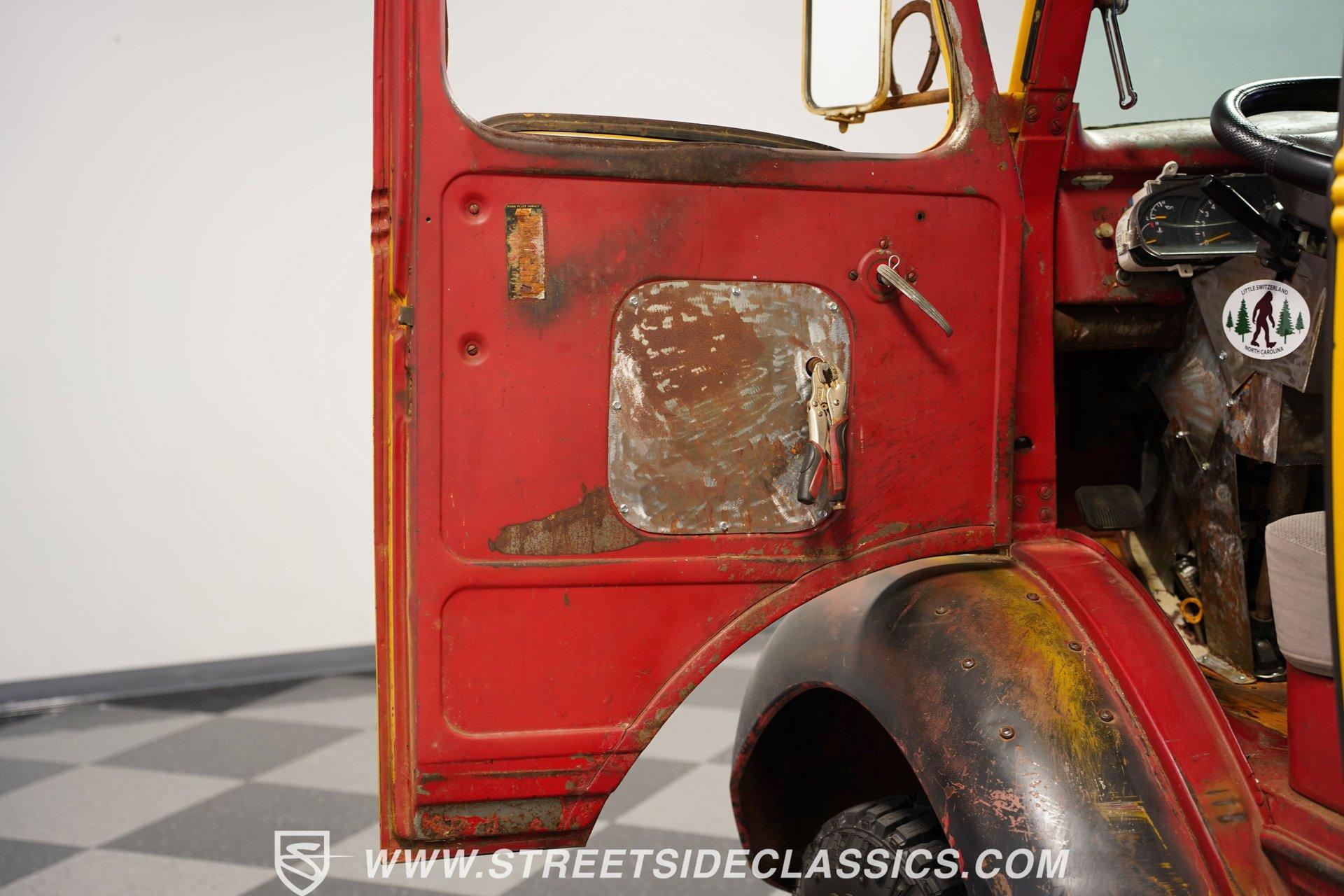 Custom crafted over three years using modern Toyota Tundra underpinnings, this 1947 Ford F-5 COE 4X4 Custom wears Patina Yellow finish that tells its own story. Clear tri-bar headlights with integrated turn signals anchor the front end, while a saw blade visor adds custom flair above. The weathered wood bed construction uses two beds bolted together, complete with a bolted-in gas can connected to the fuel system. Chain and piston front bumper, exposed welds, and surface rust create authentic rat rod character. LT265/75R16 tires mount on 16" wheels at all four corners, with a tow hitch and wiring plug completing the functional exterior package. Patina interior with red base continues the weathered aesthetic throughout the cabin. Bench seating uses cloth material sourced from the Toyota Tundra donor, providing fold-forward access to under-floor storage. Column shifter controls the automatic transmission, while the custom exposed steel center console houses the throttle pedal hand control. Toyota Tundra steering column and gauge cluster integrate modern reliability with vintage style. Power steering comes standard, though no radio keeps things simple and focused on the driving task at hand. Electronic fuel injection feeds the 4.7L V8 engine transplanted from the 2002 Toyota Tundra, paired with the matching 4-speed automatic transmission. Independent coilovers handle front suspension duties, while leaf springs with shocks control the rear axle movement. Power front disc brakes and rear drum brakes provide stopping power, with the dual-to-single exhaust system completing the drivetrain package. Factory-style manifolds and stock muffler keep the setup reliable, while 12V electrical system powers the essentials from a battery mounted under the driver seat. HIGHLIGHTS: 4.7 Liter V8 Engine 4 Speed Automatic Transmission Electronic Fuel Injection Independent Coilovers Front Suspension Leaf Springs With Shocks Rear Suspension Power Front Disc Brakes Dual To Single Exhaust 4X4 Drivetrain Patina Yellow Paint 16" Wheels With LT265/75R16 Tires Clear Tri-Bar Headlights With Turn Signals Saw Blade Visor Chain And Piston Front Bumper Custom Two-Bed Construction Weathered Wood Bed Tow Hitch With Wiring Plug Red Patina Interior With Tan Bench Seating Power Steering Custom Steel Center Console Toyota Tundra Steering Column Toyota Tundra Gauge Cluster Hand Throttle Control Under-Floor Storage Access Classic 1947 Ford F-5 COE styling with modern Toyota Tundra reliability creates this custom 4X4 truck, a unique machine with dependable performance and solid engineering. Three years of careful construction produced a one-of-a-kind build ready for work or weekend adventures. Call today!